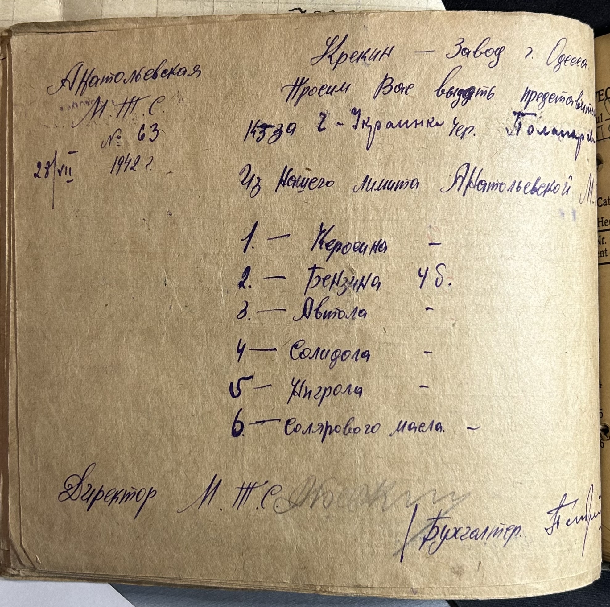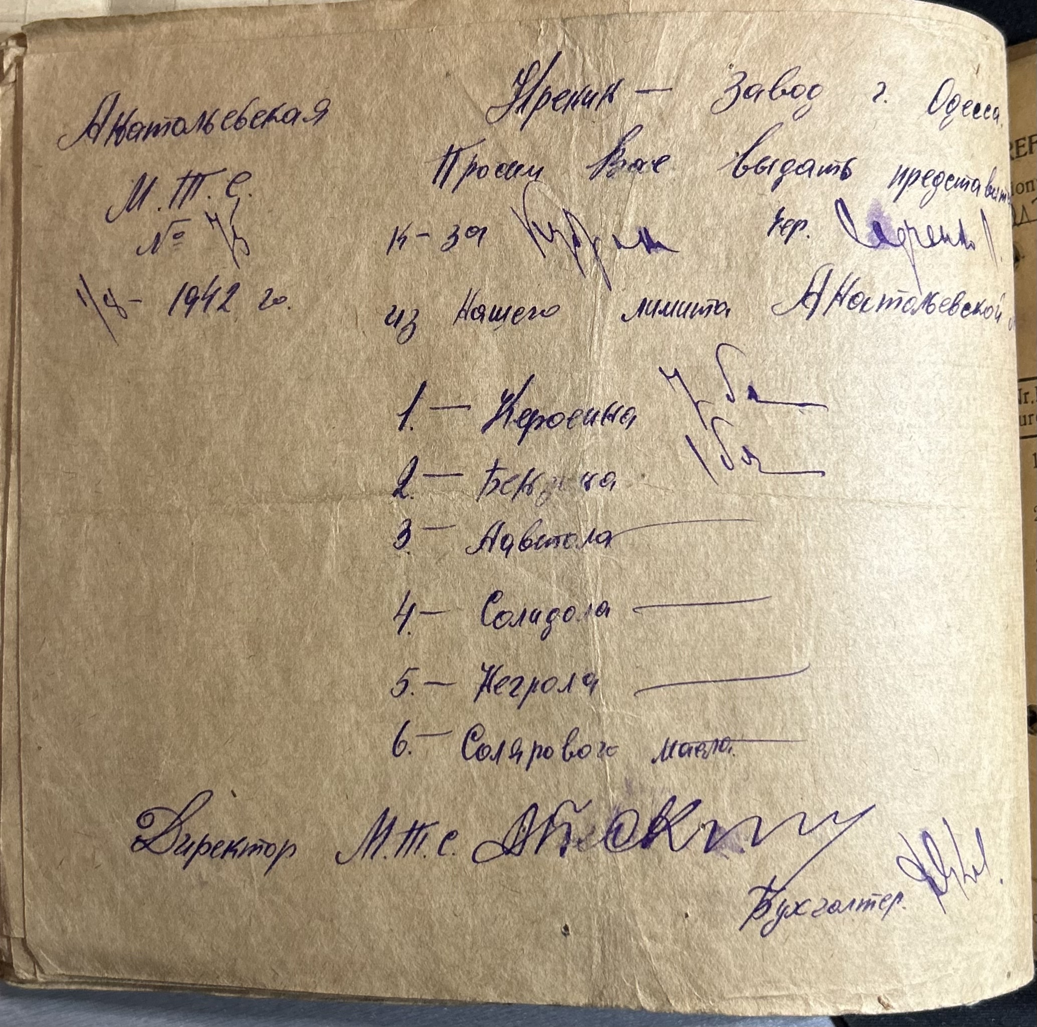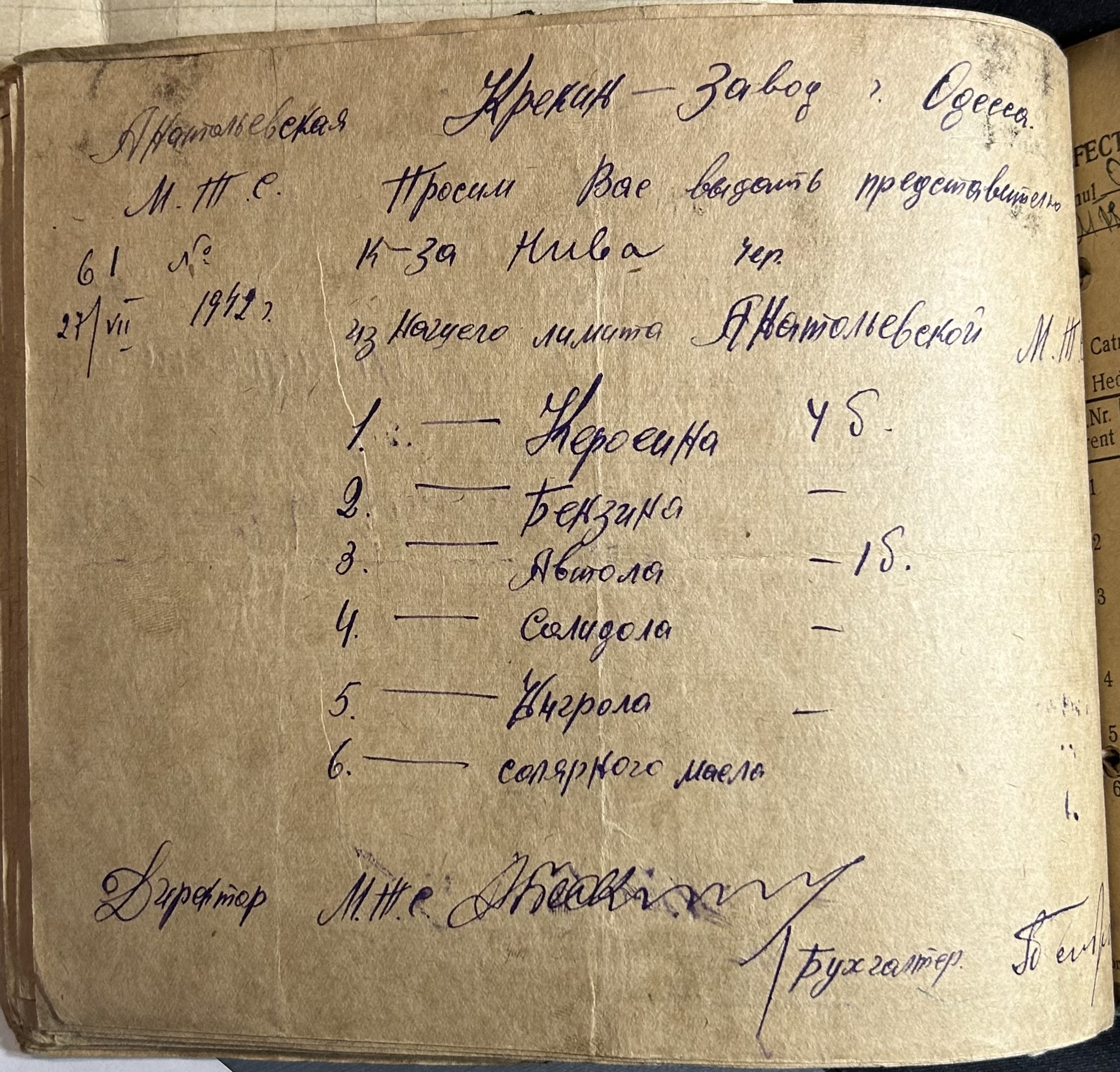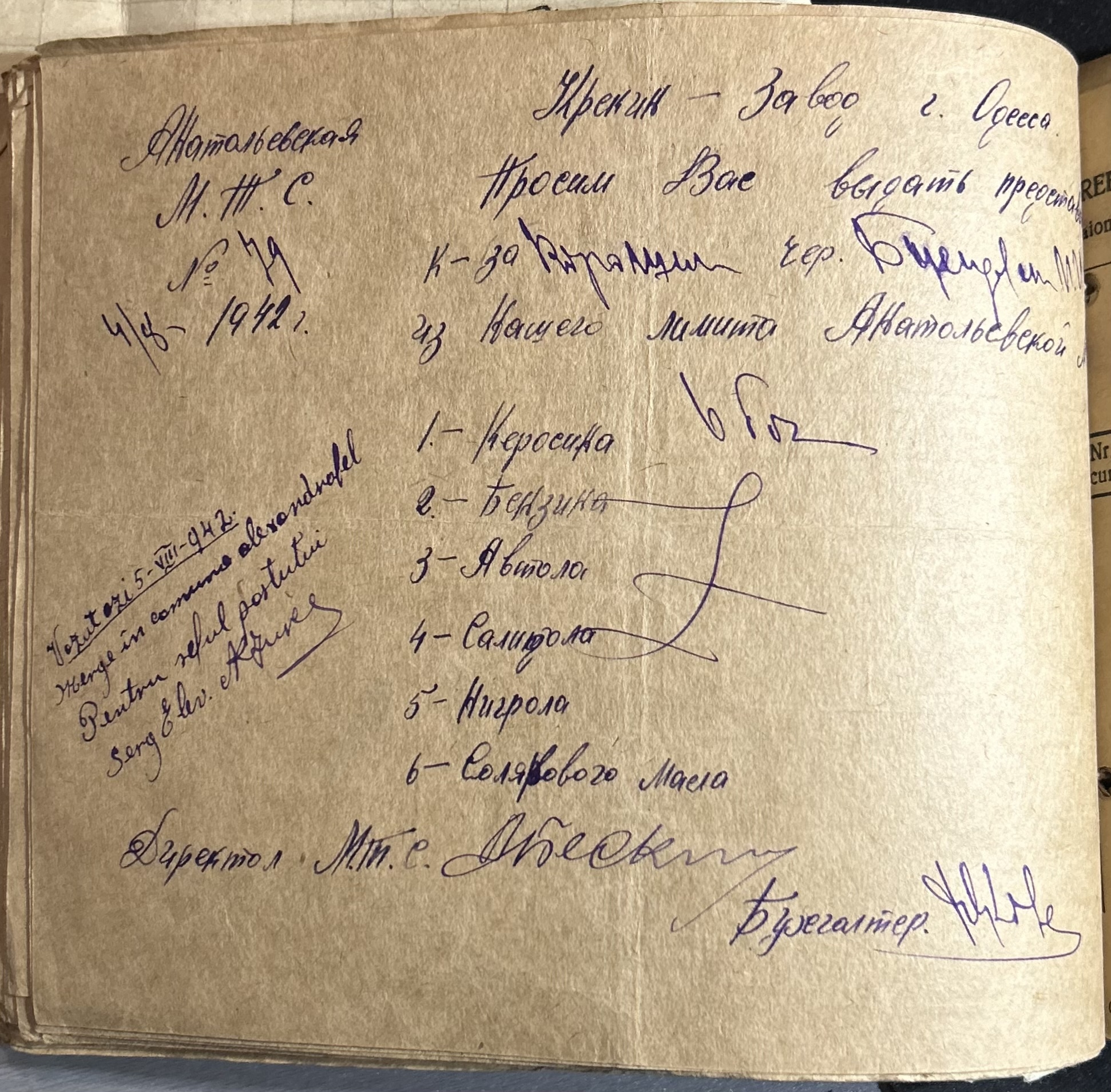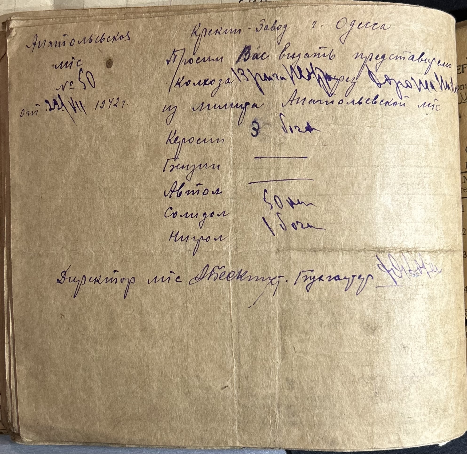 • • • • Справа № 7 “Ордери на отримання пального Анатоліівською МТС”