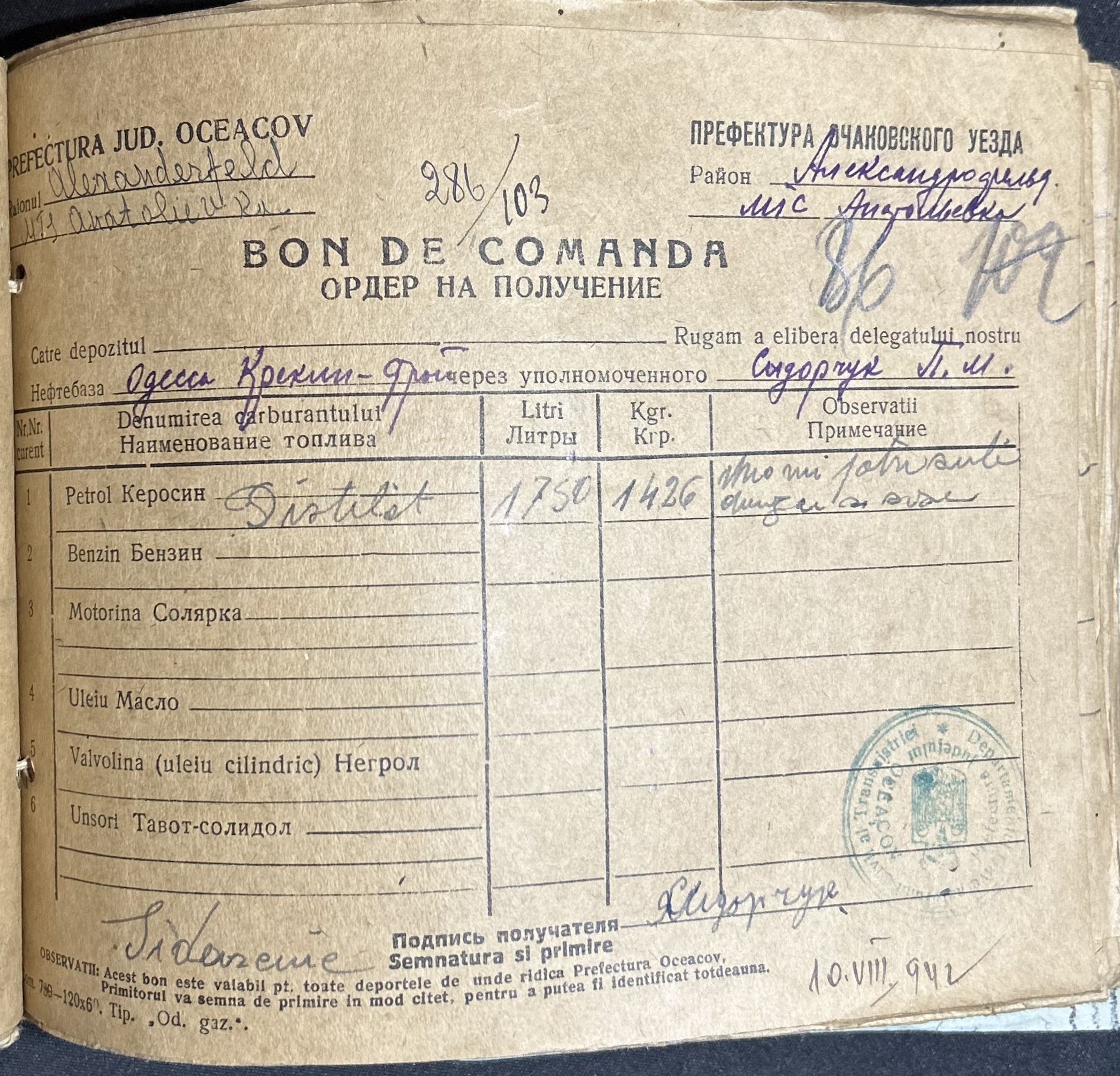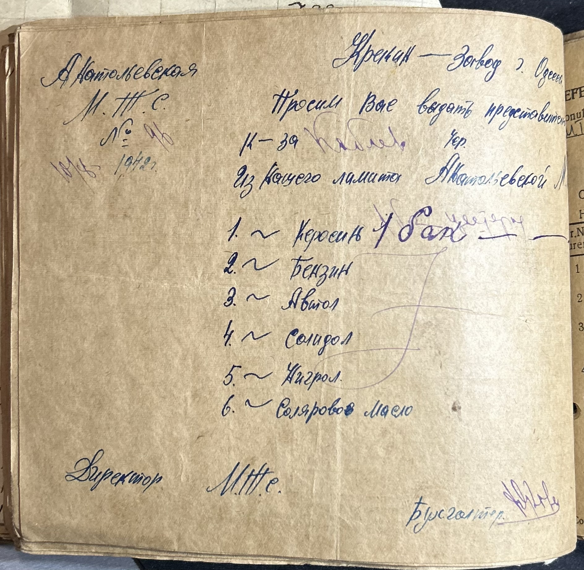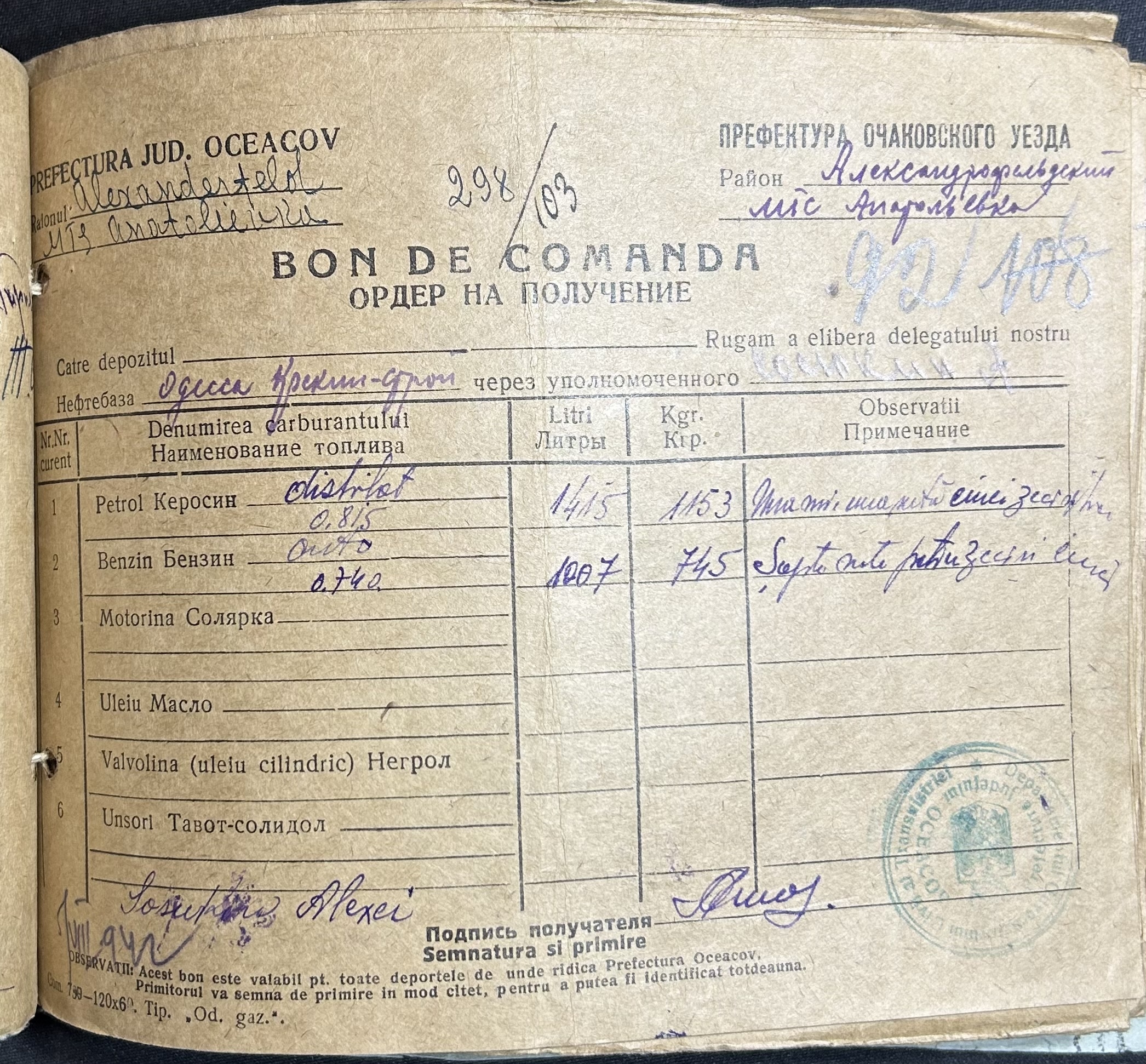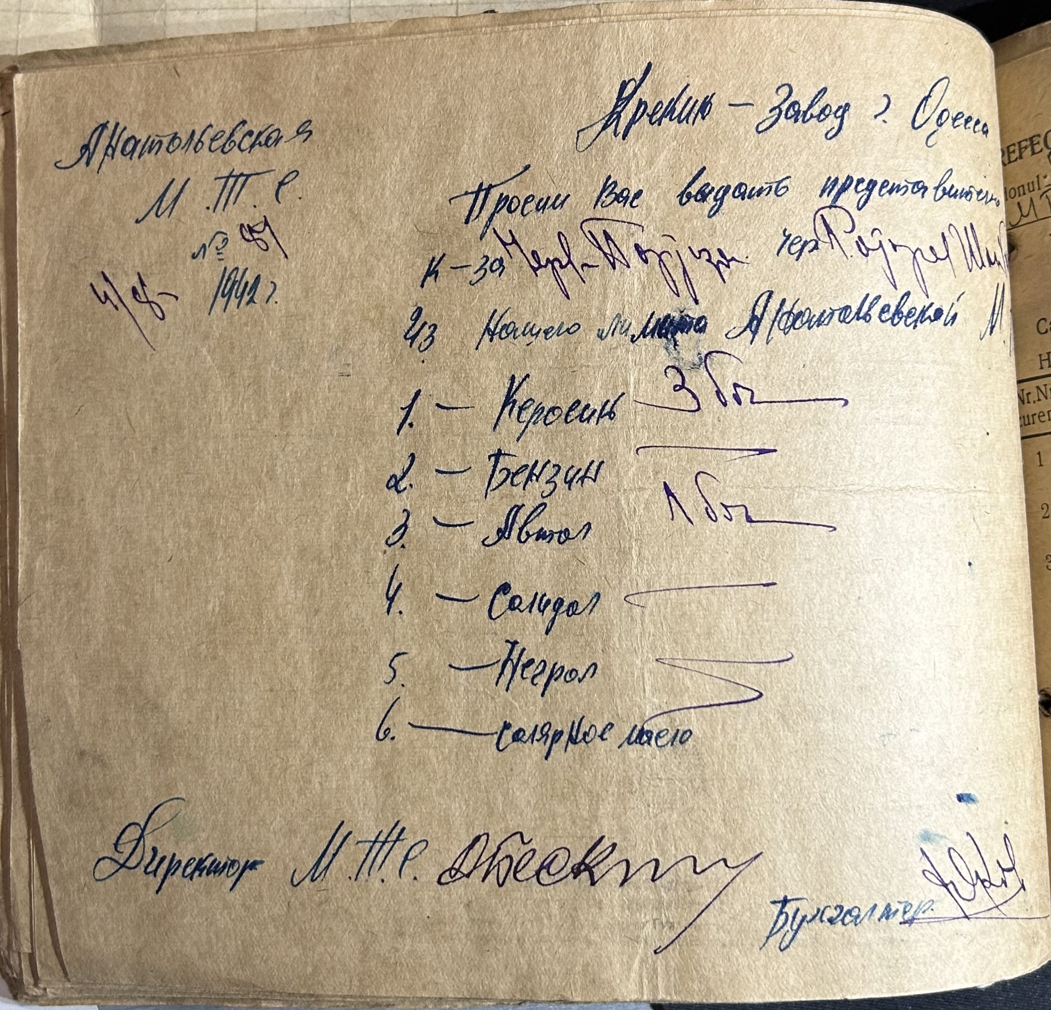• • • • Справа № 7 “Ордери на отримання пального Анатоліівською МТС”