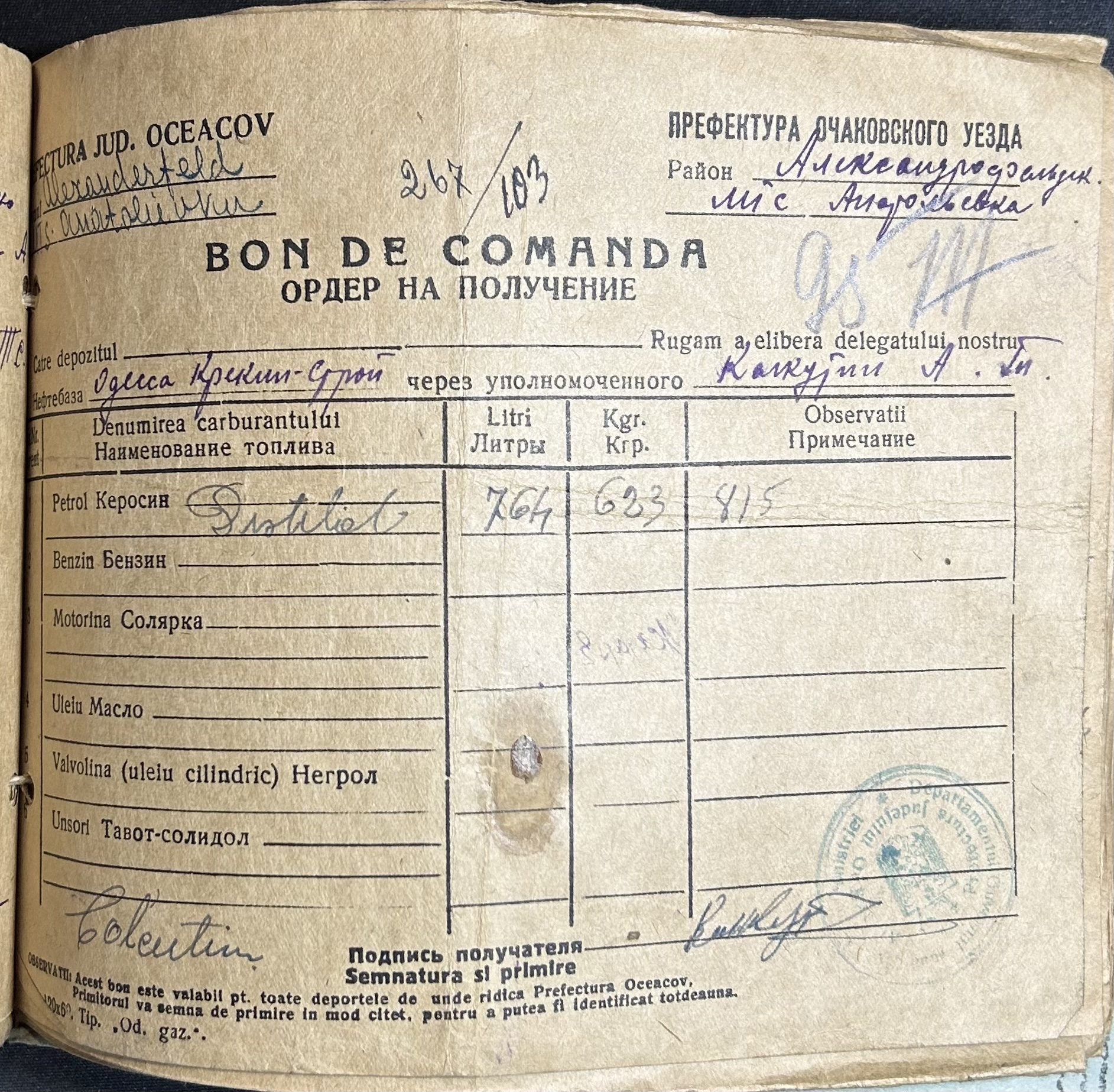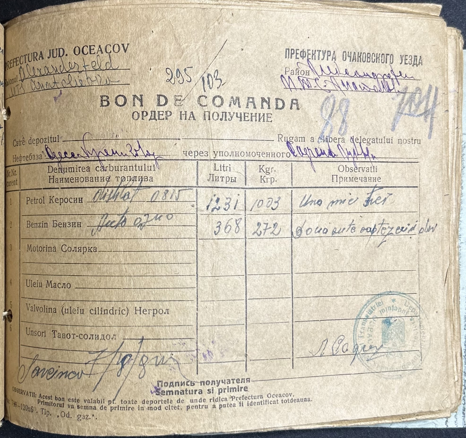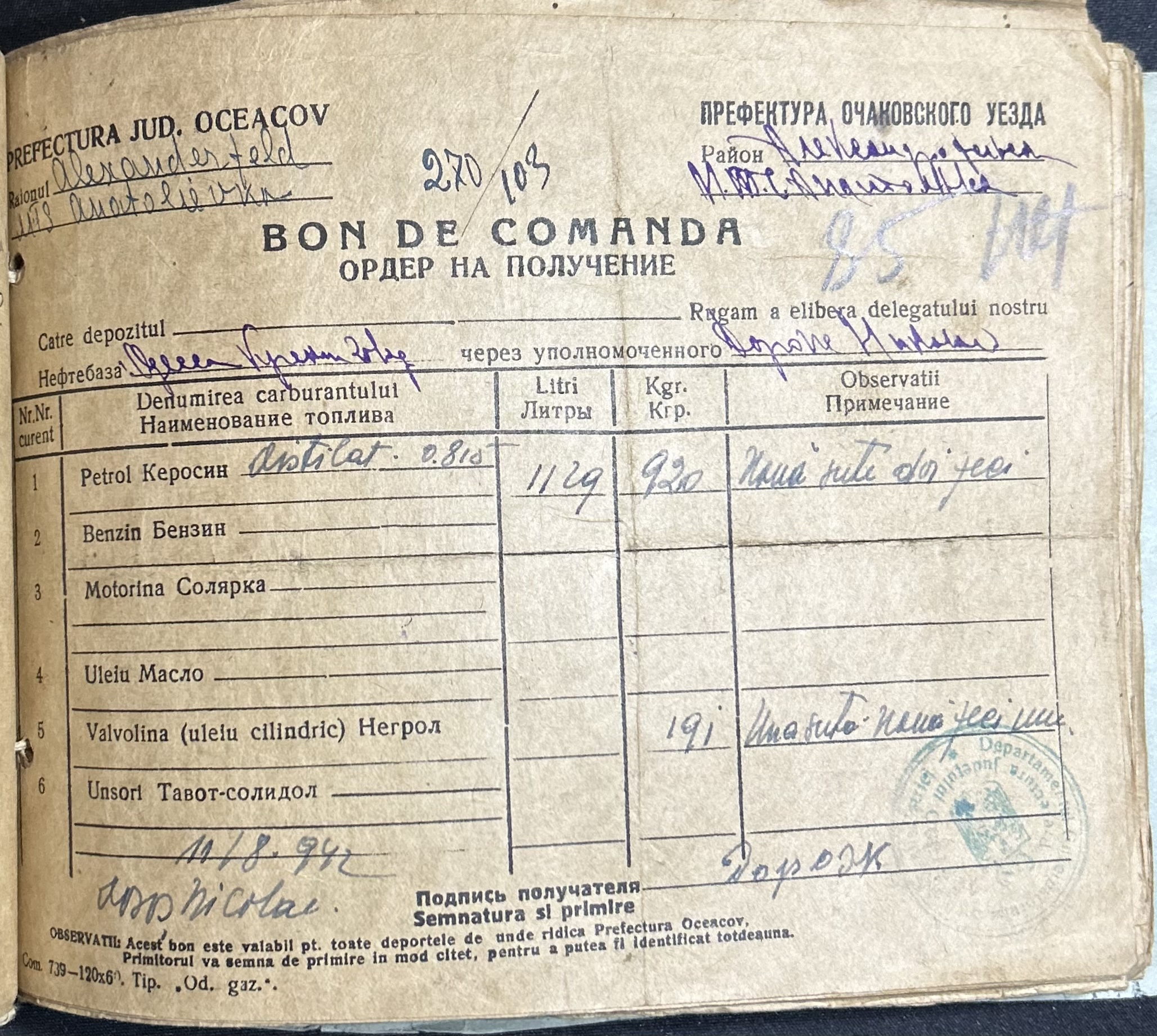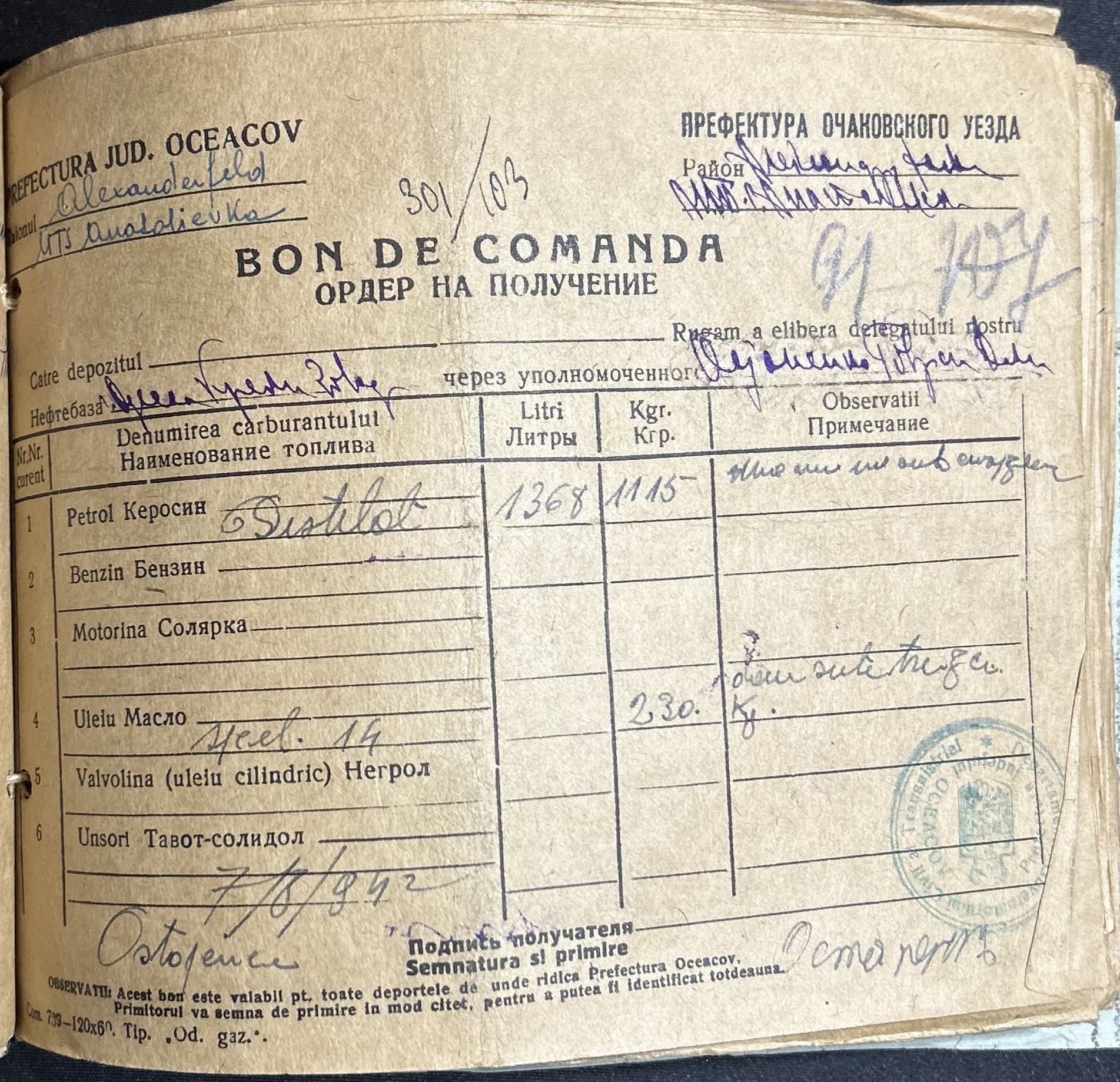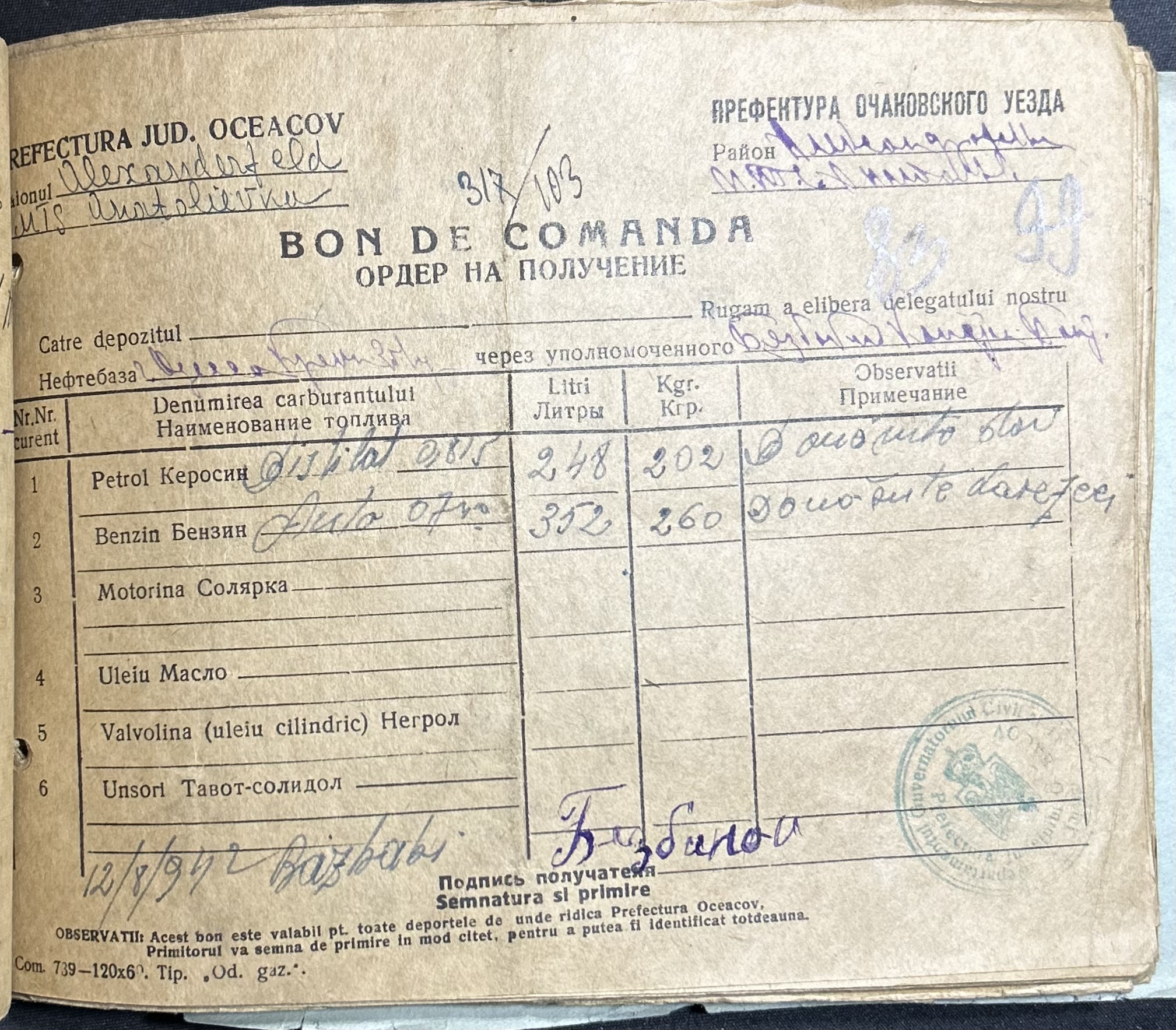 • • • • Справа № 7 “Ордери на отримання пального Анатоліівською МТС”