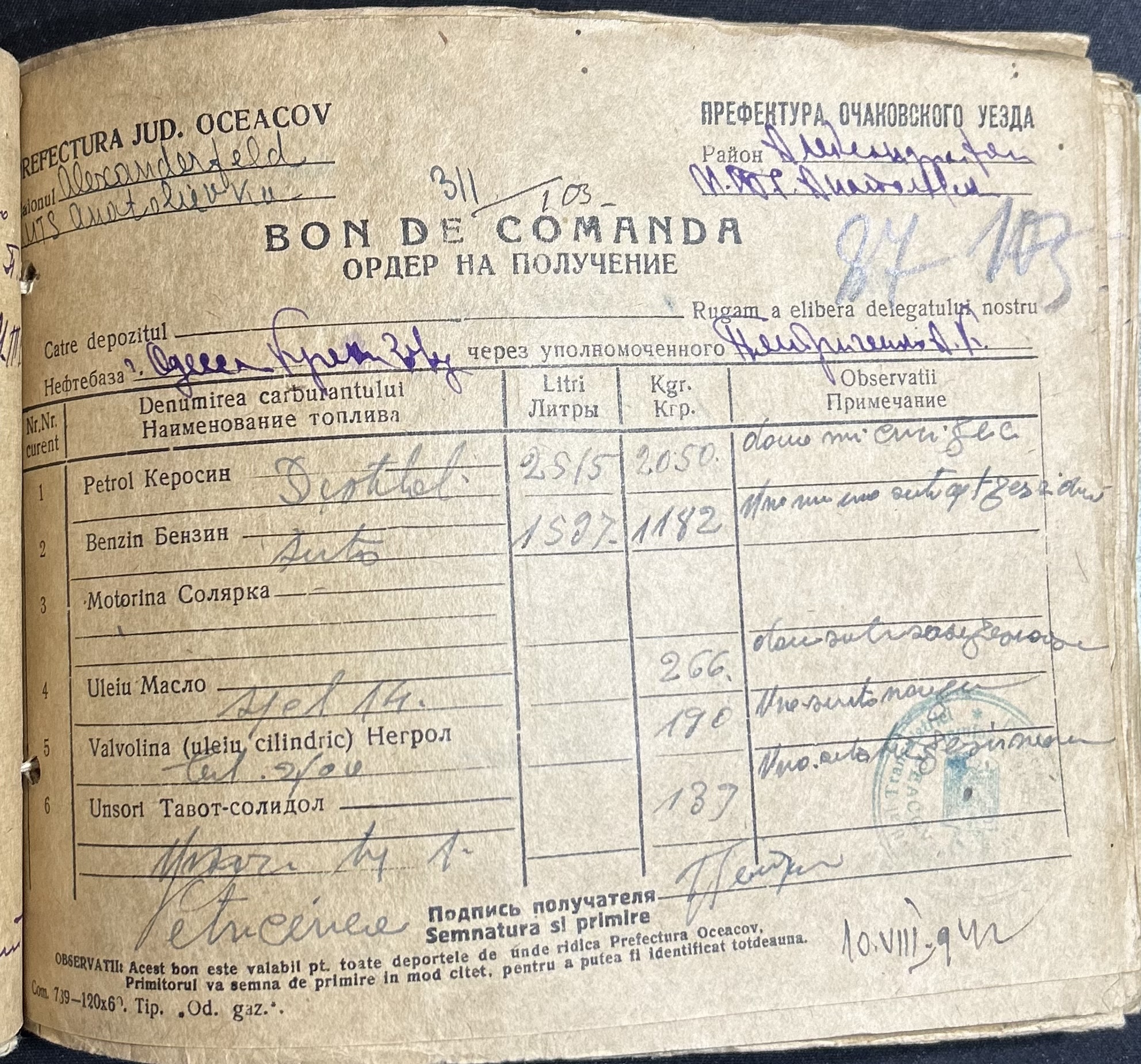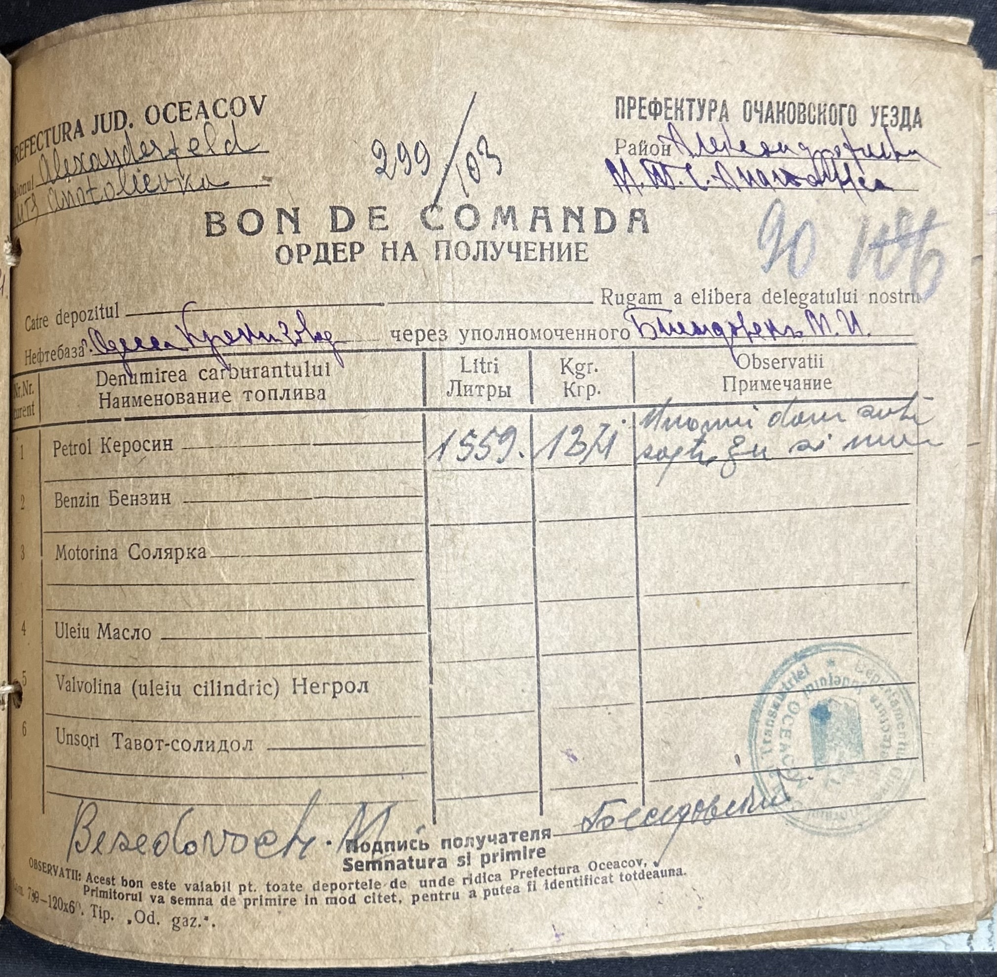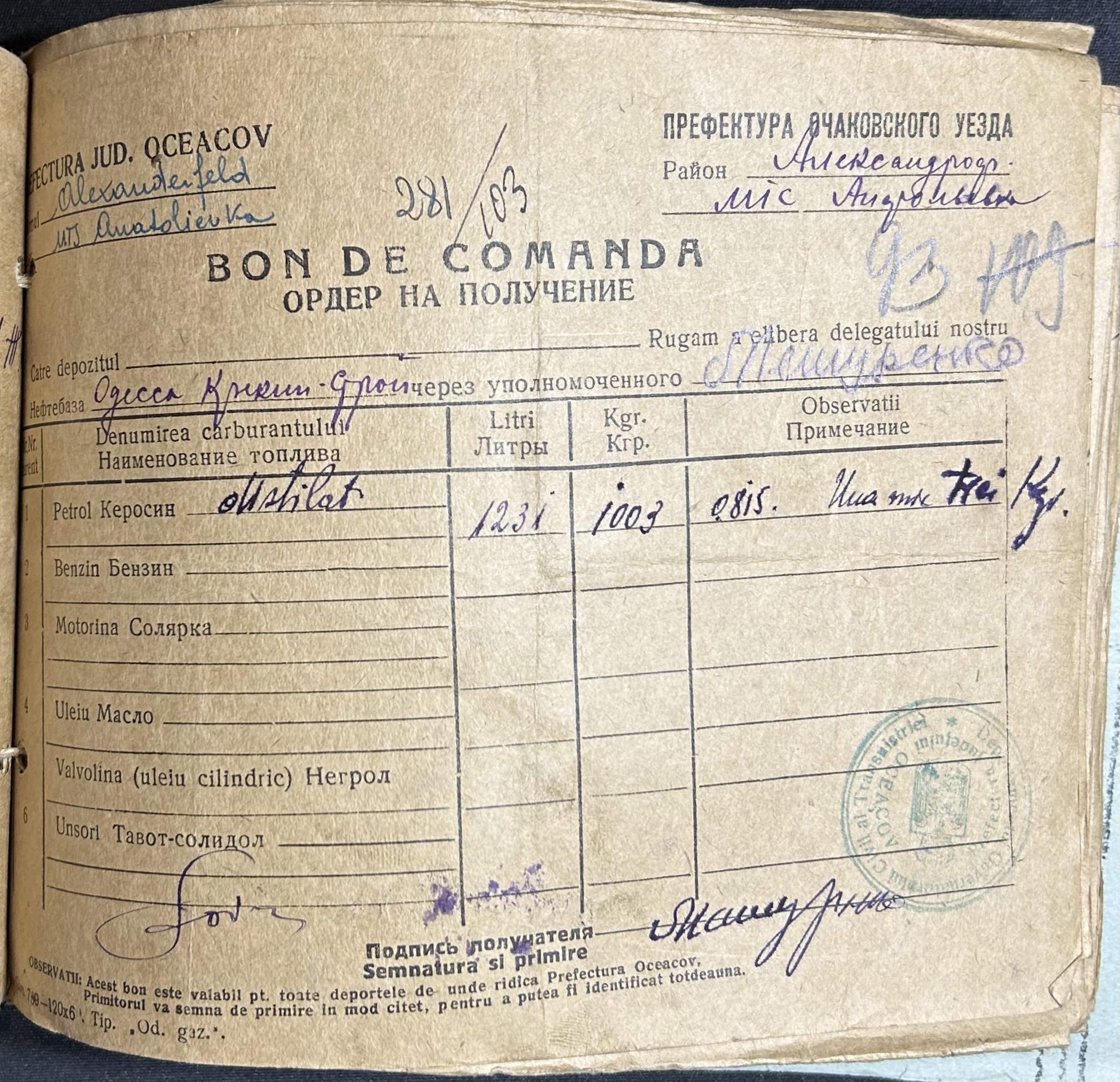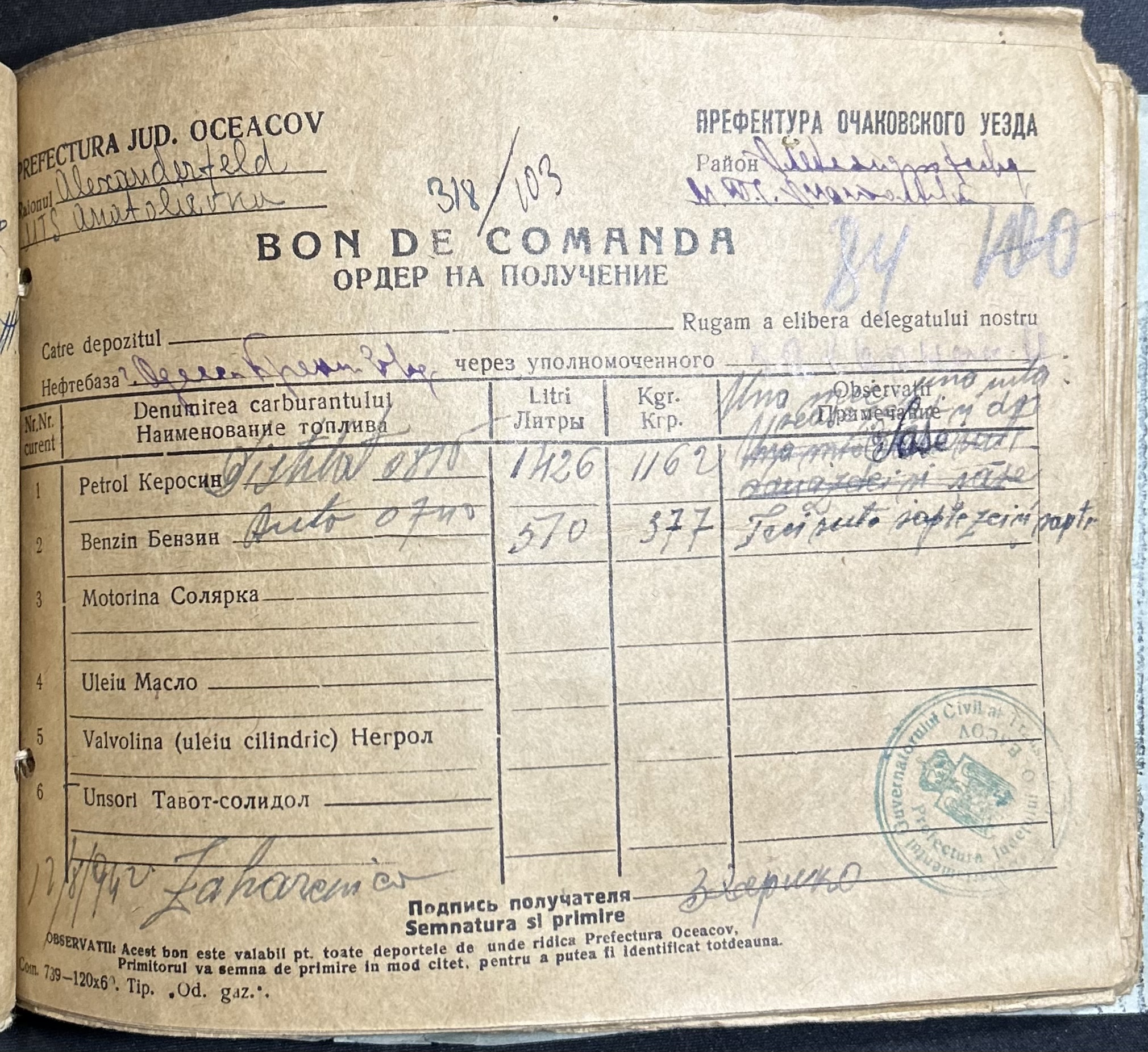 • • • • Справа № 7 “Ордери на отримання пального Анатоліівською МТС”