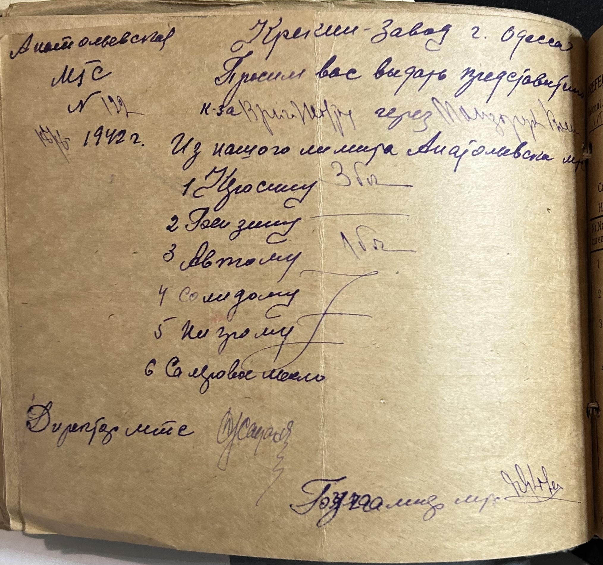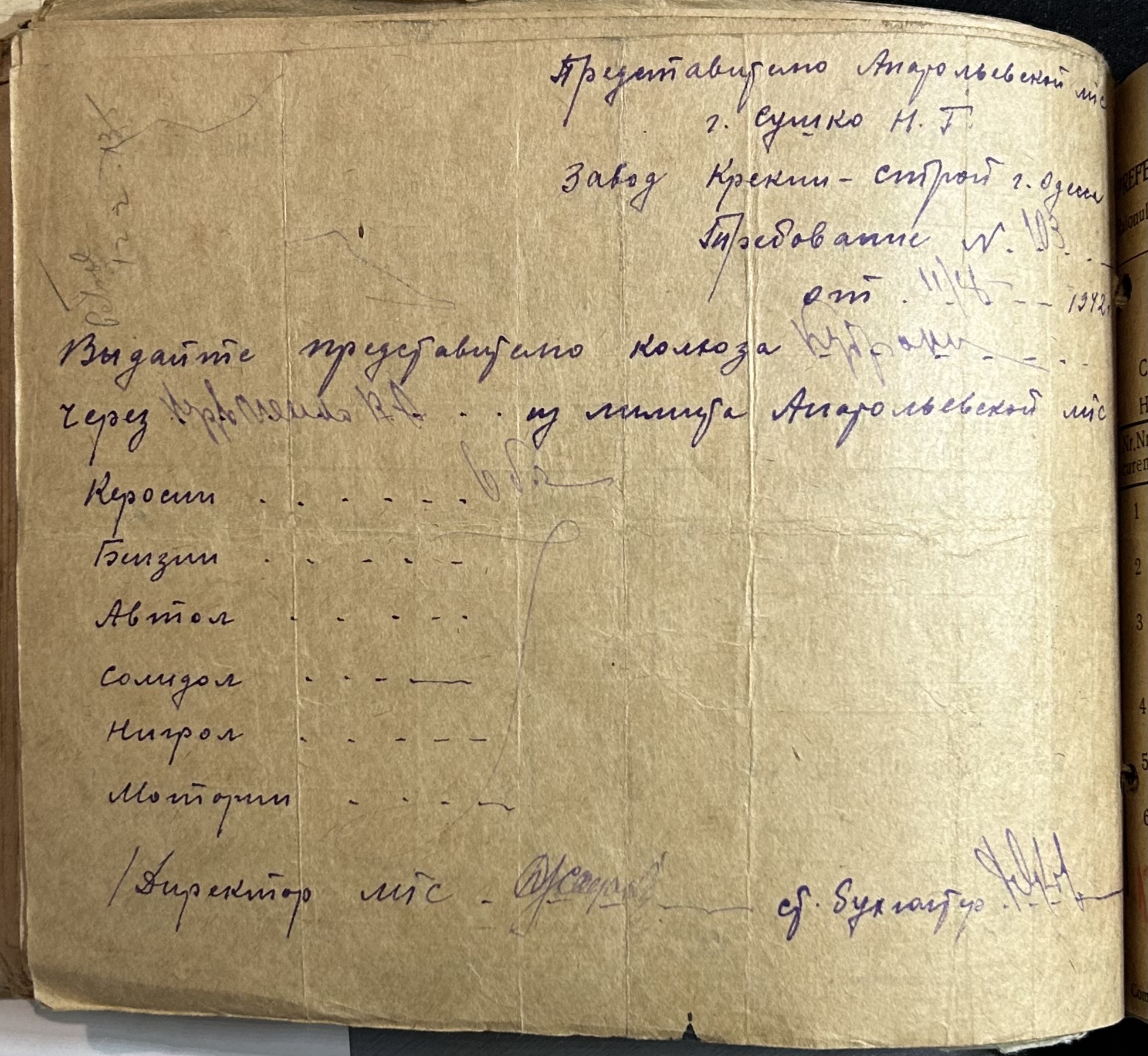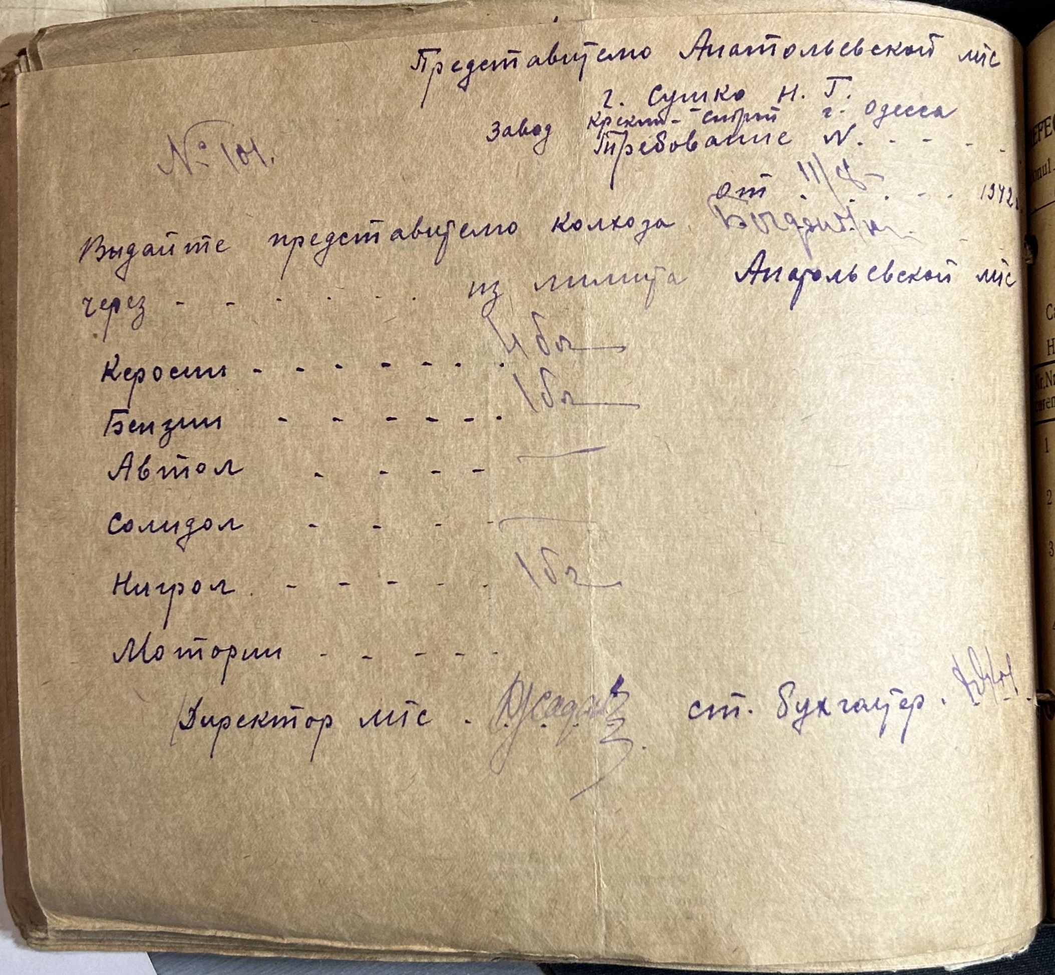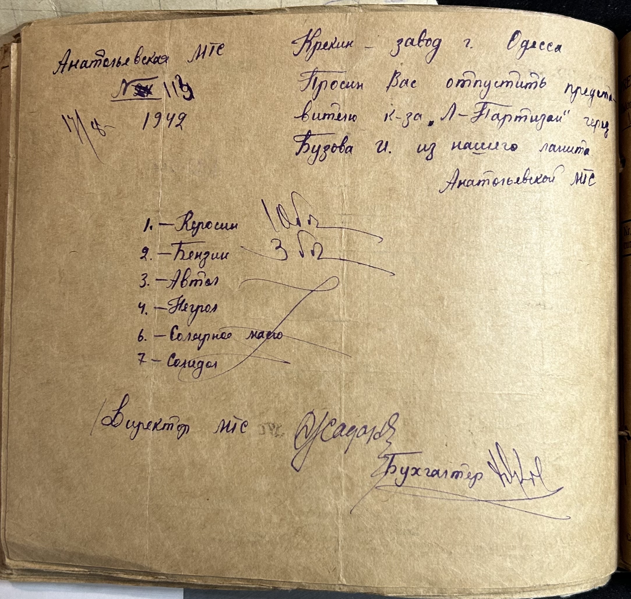 • • • • Справа № 7 “Ордери на отримання пального Анатоліівською МТС”
