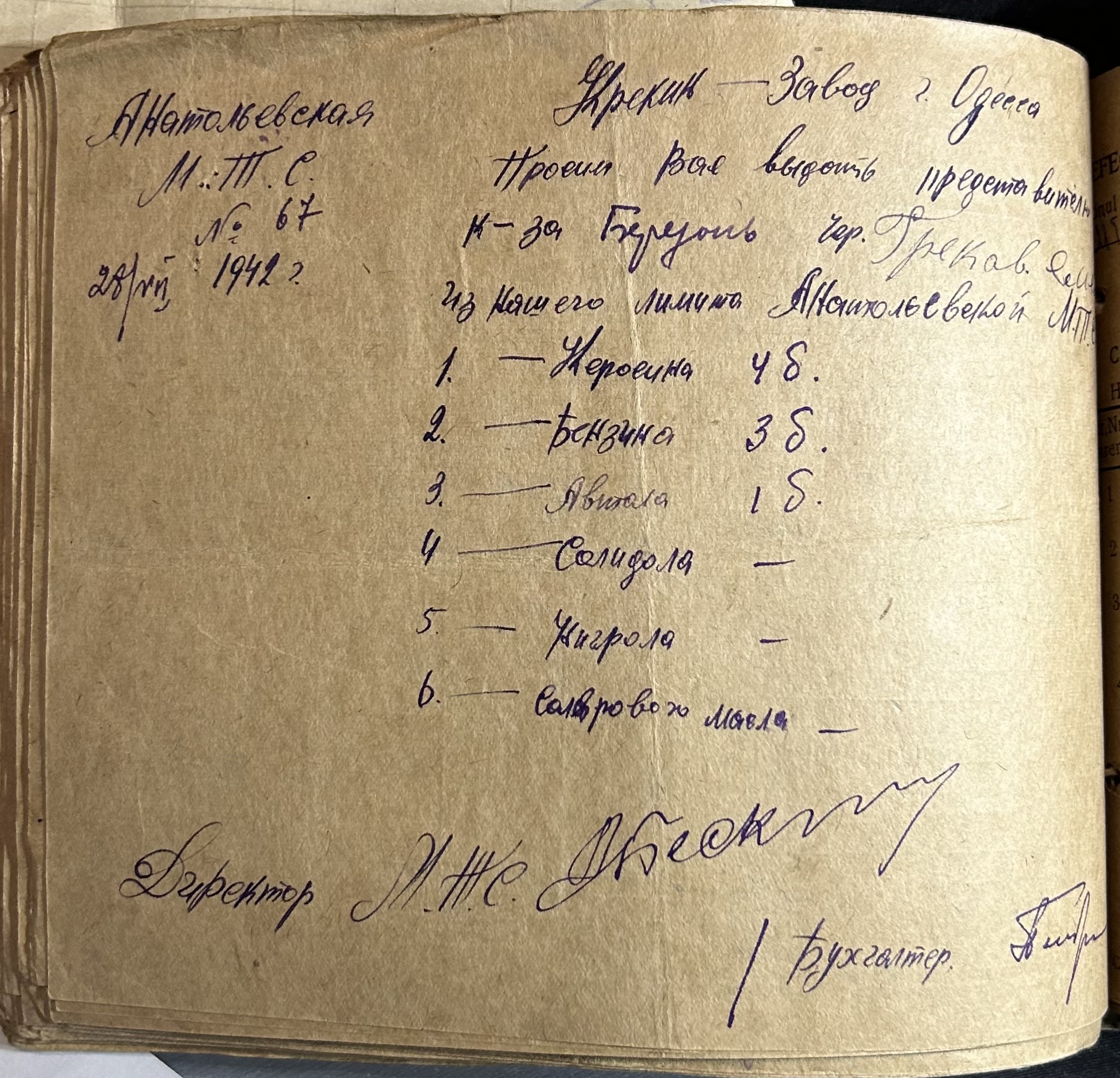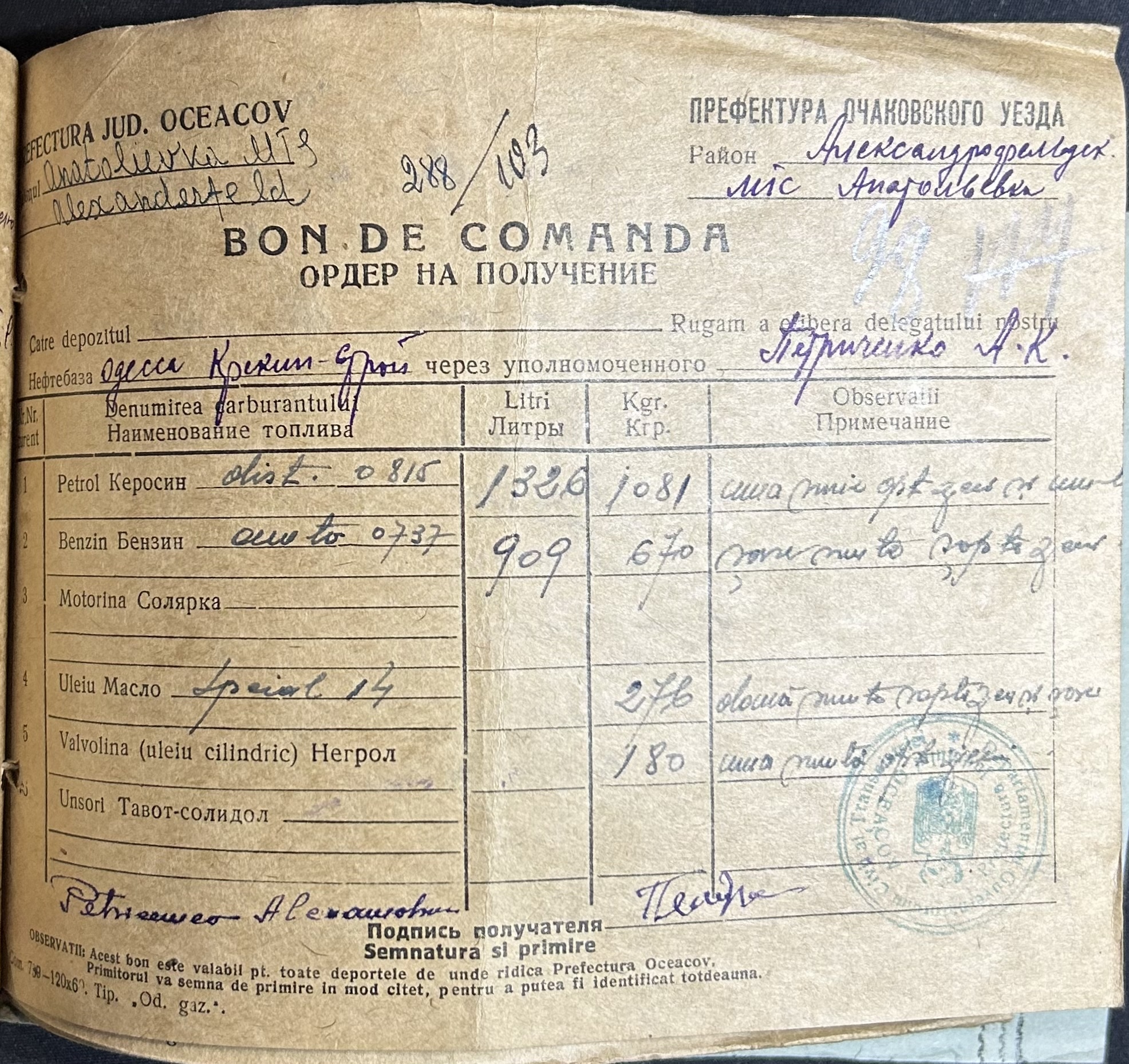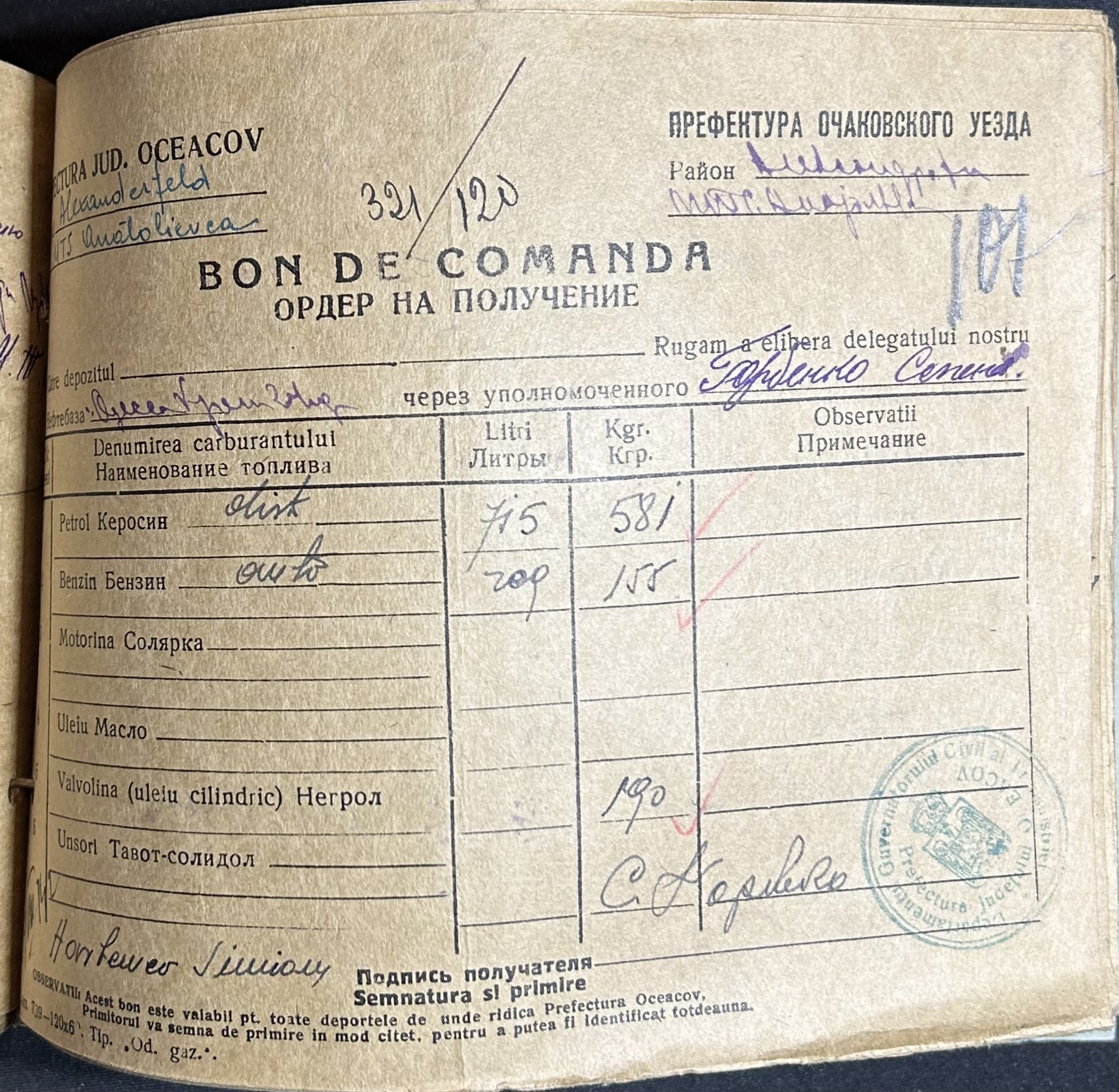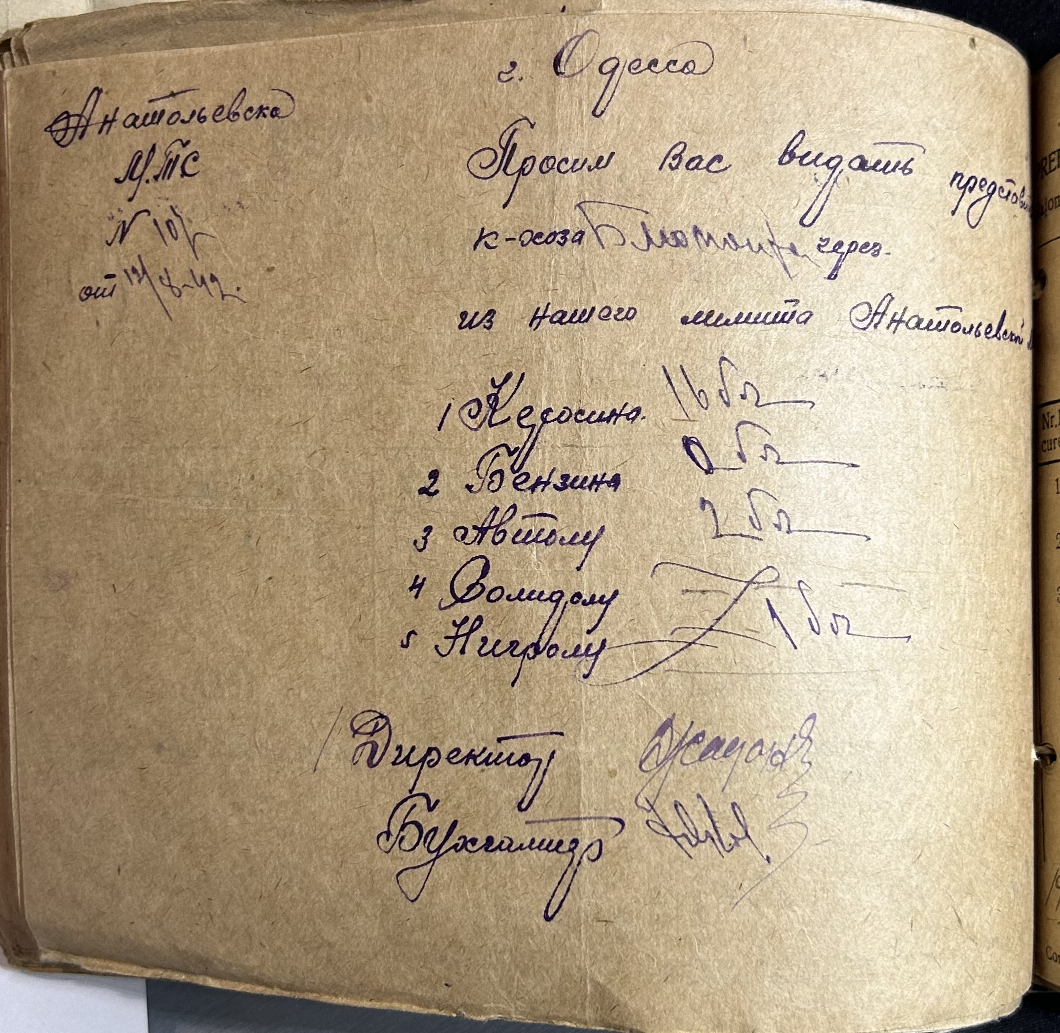 • • • • Справа № 7 “Ордери на отримання пального Анатоліівською МТС”