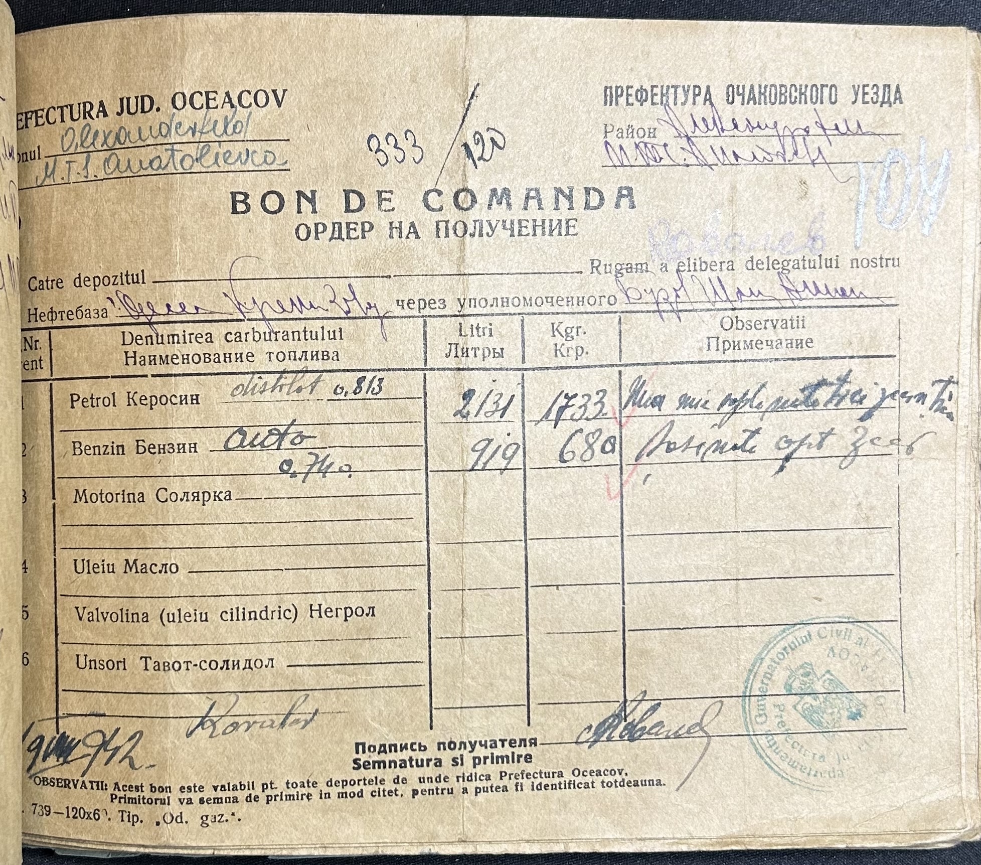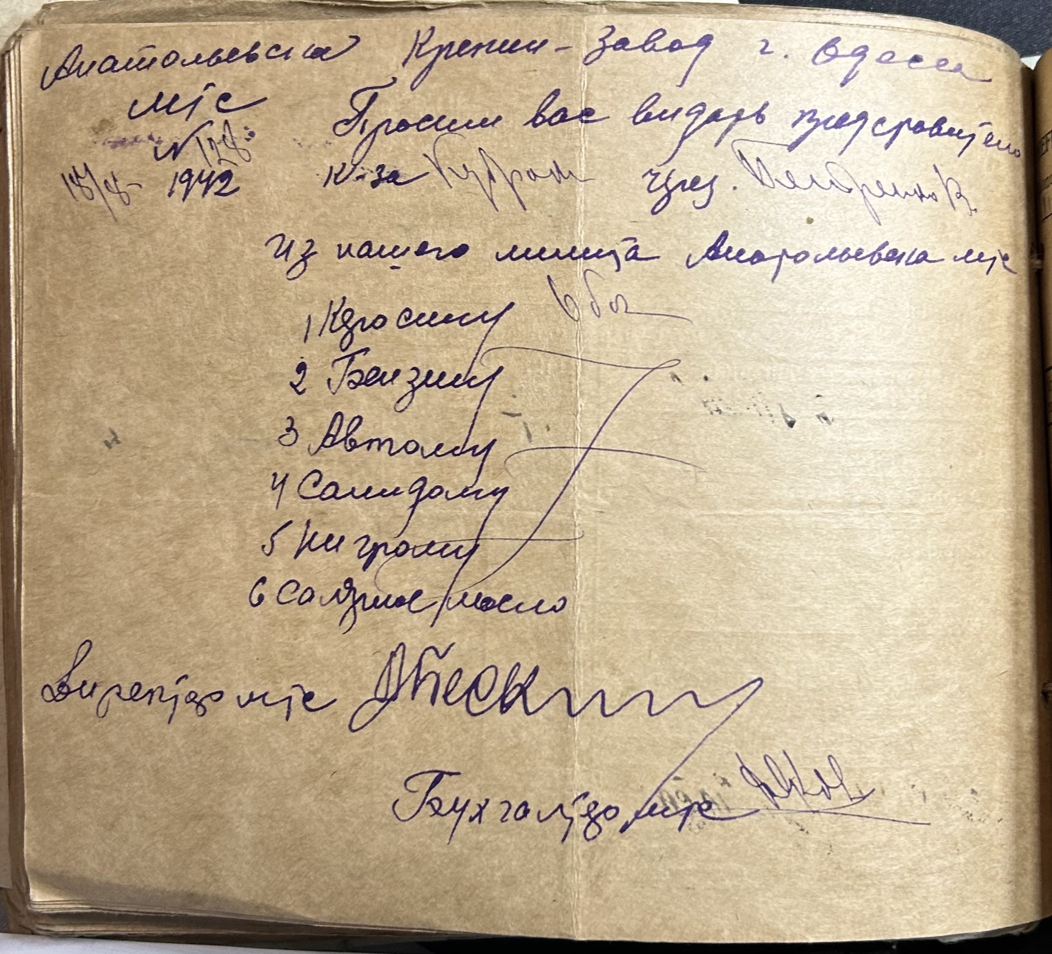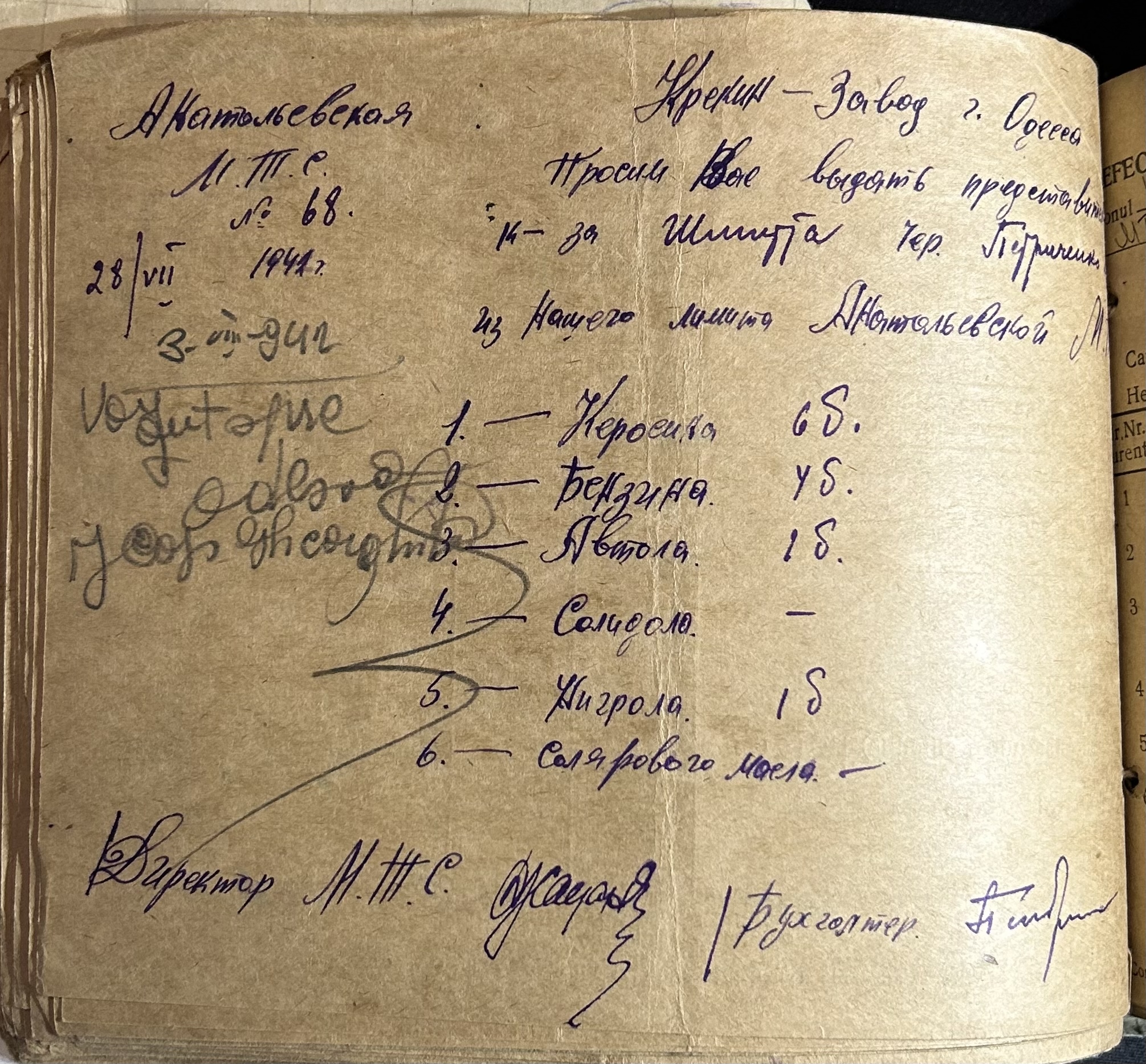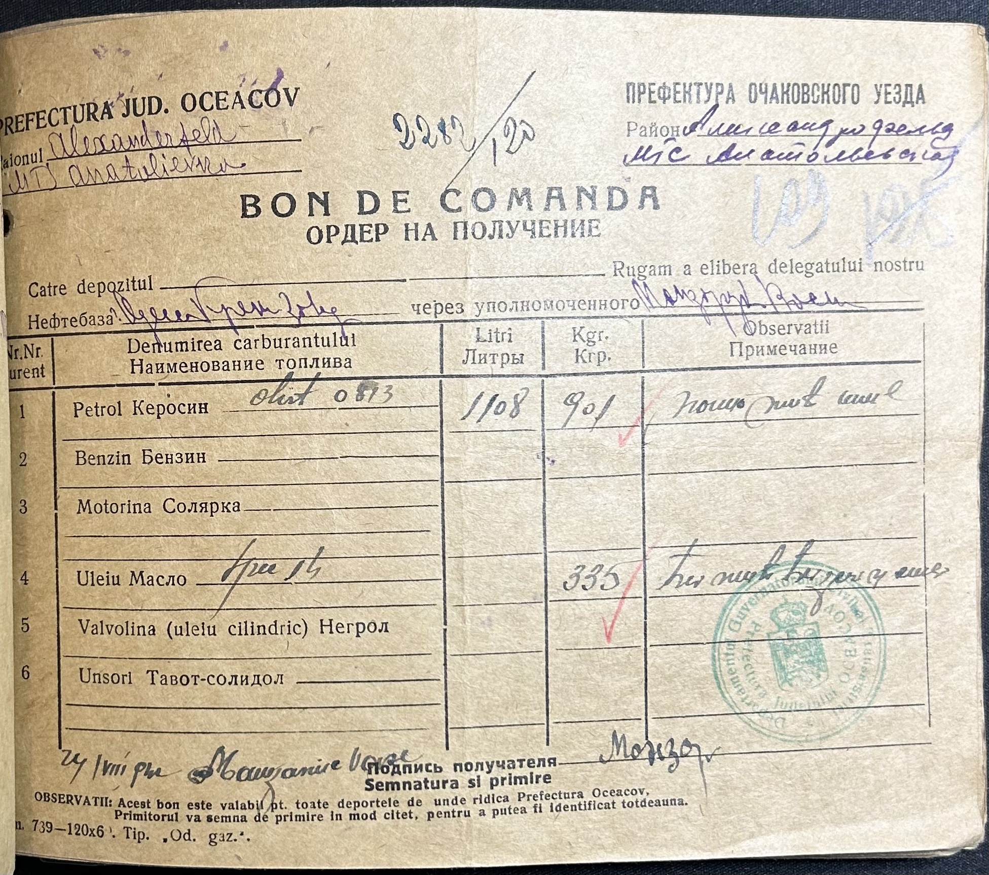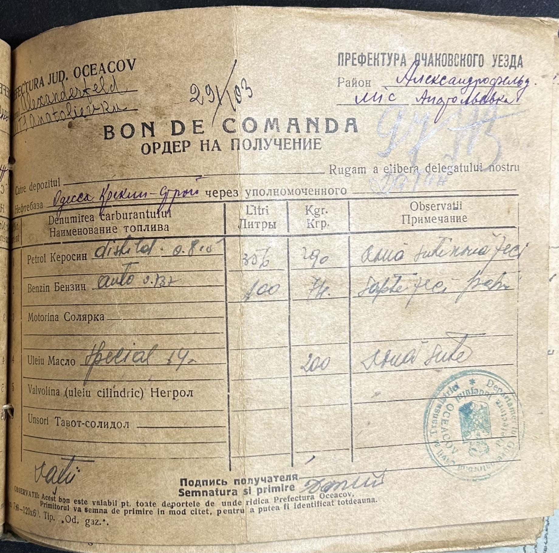 • • • • Справа № 7 “Ордери на отримання пального Анатоліівською МТС”