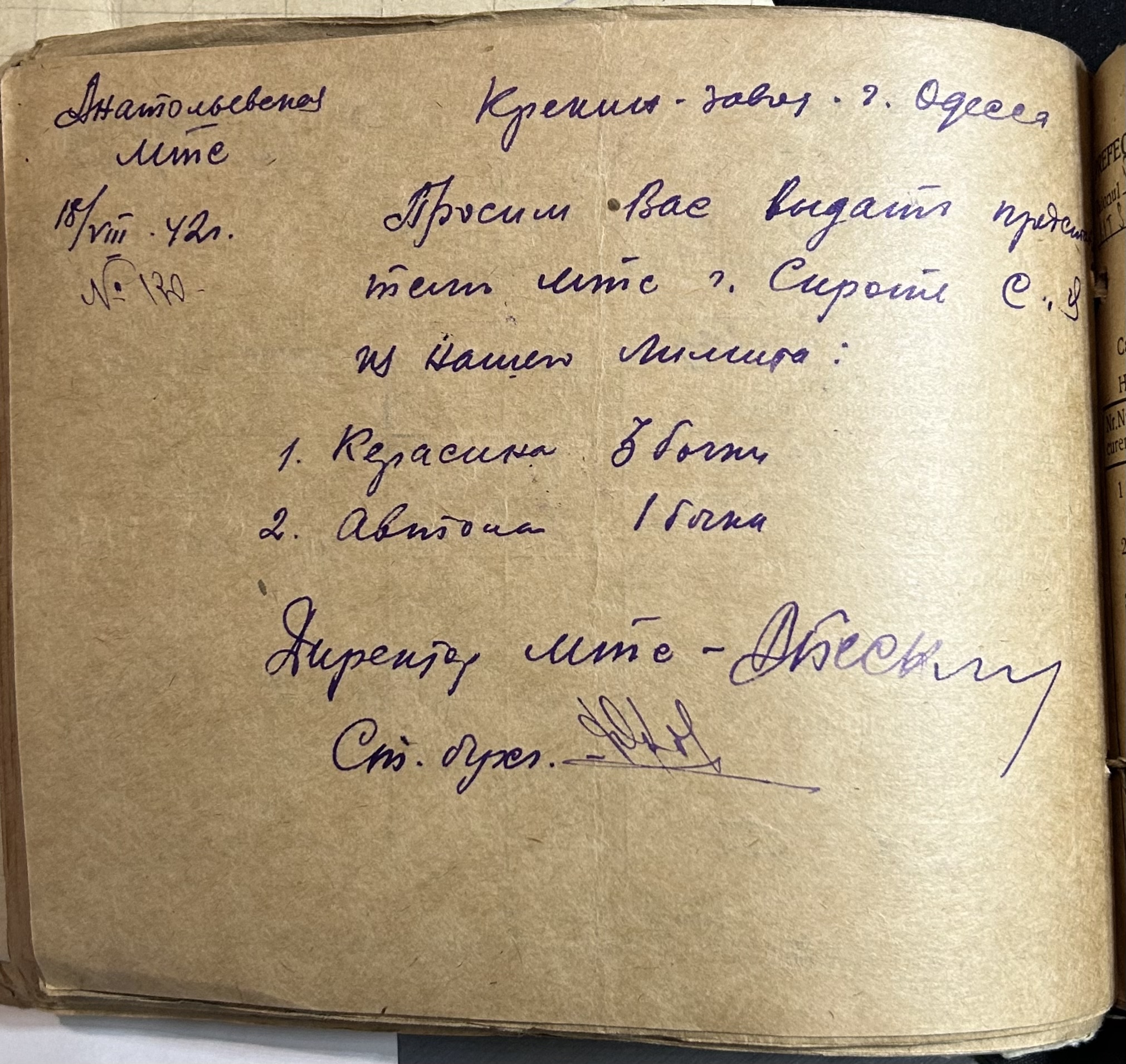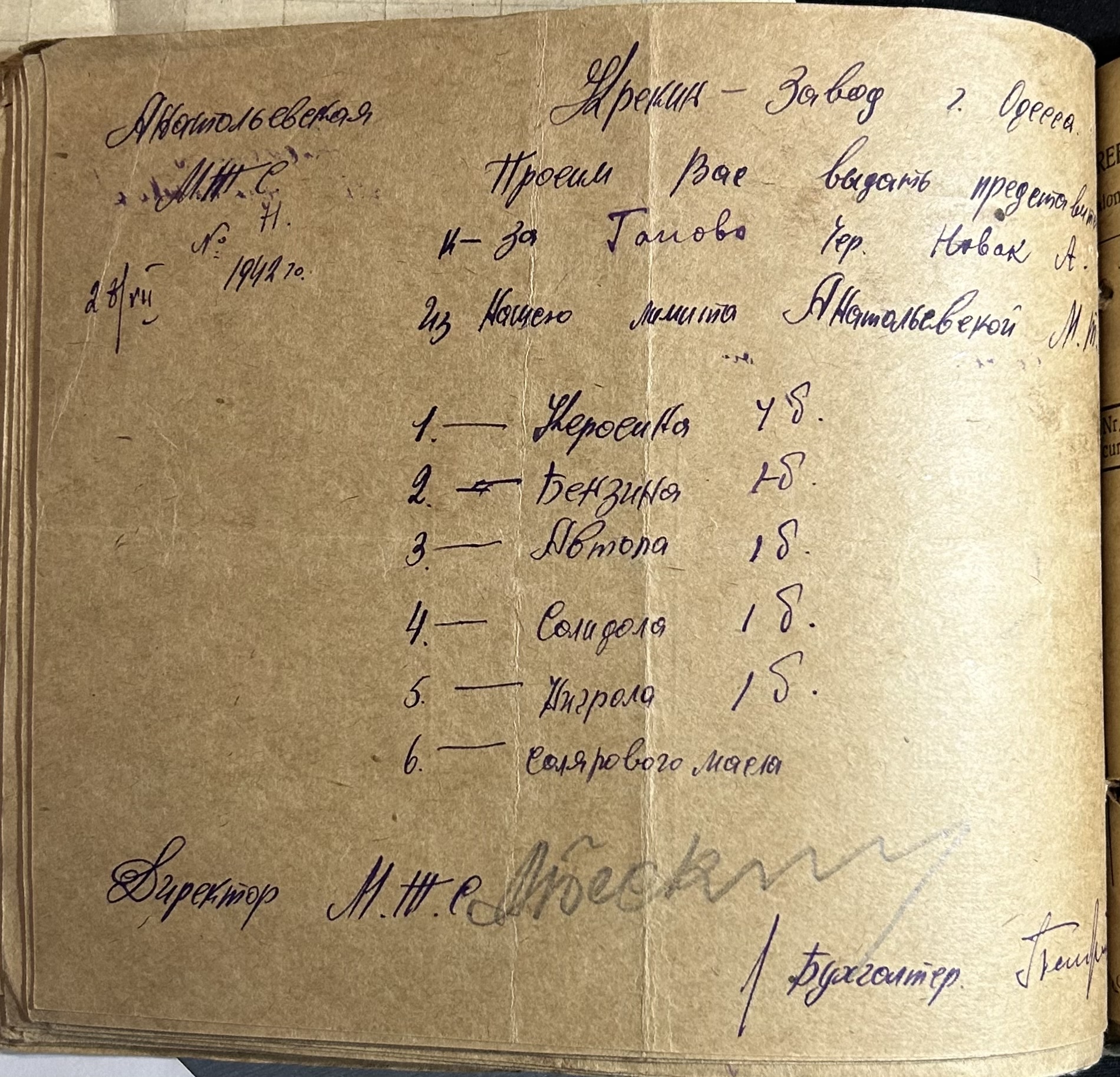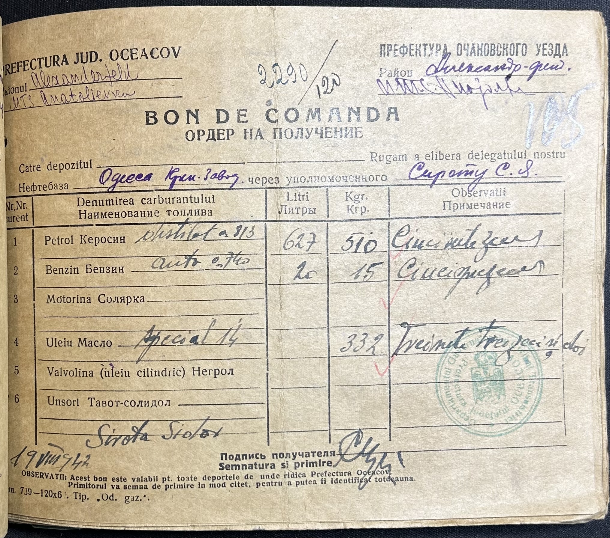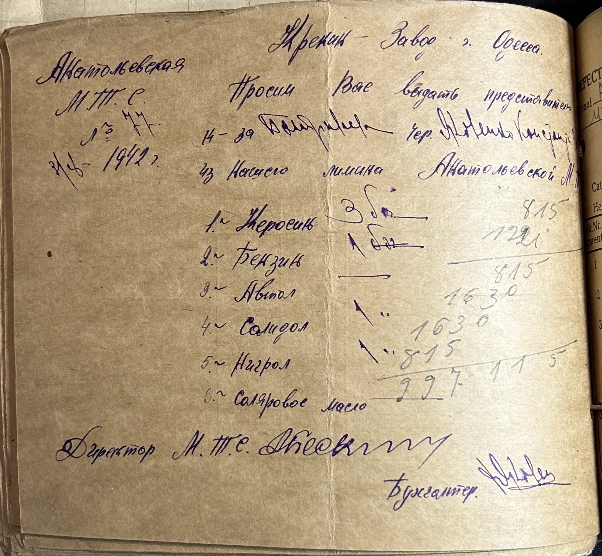 • • • • Справа № 7 “Ордери на отримання пального Анатоліівською МТС”
