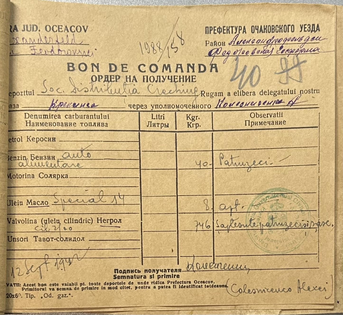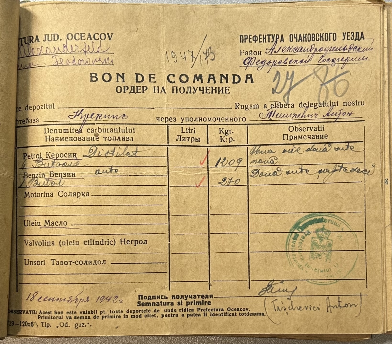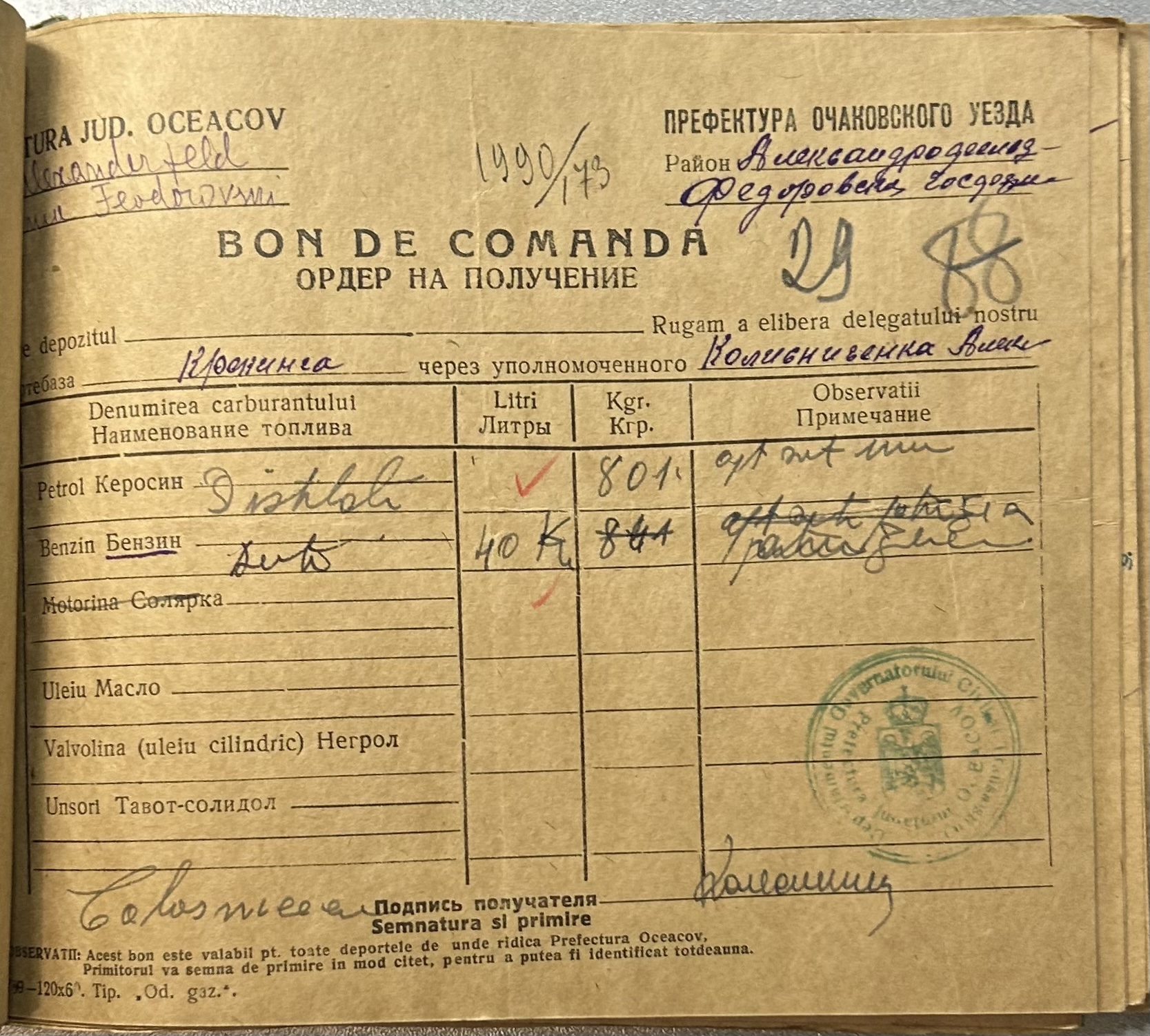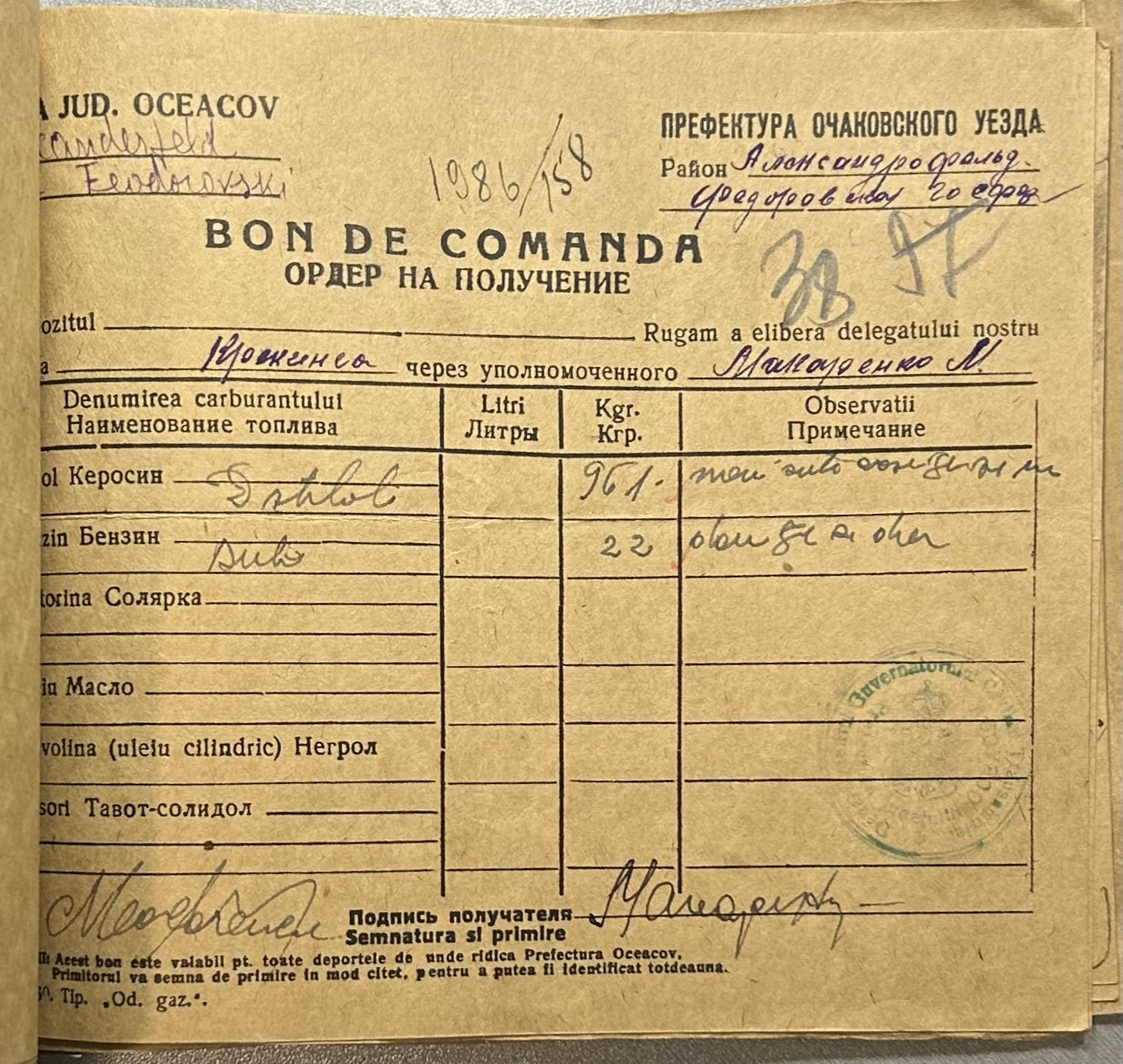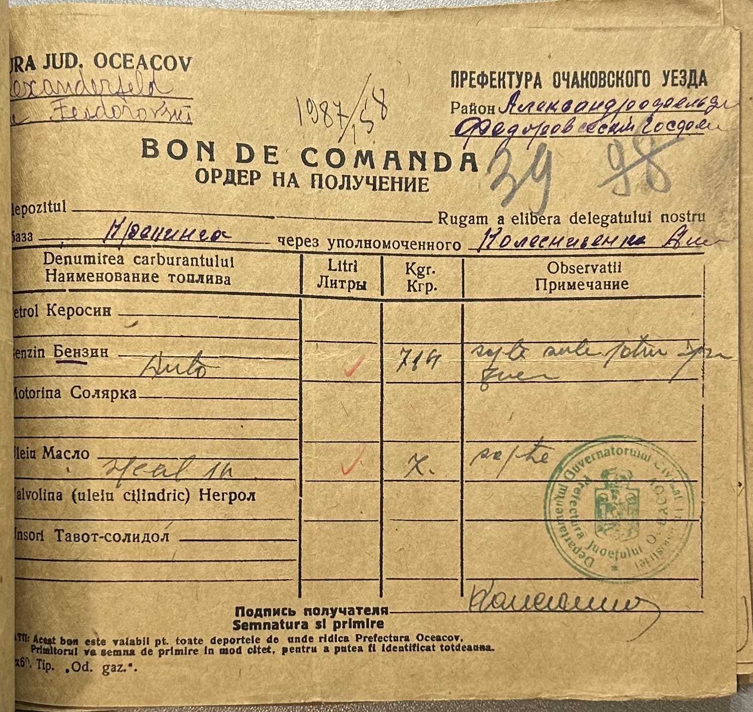 • • • • Справа № 9 “Ордери на отримання пального Федорівською державною фермою”