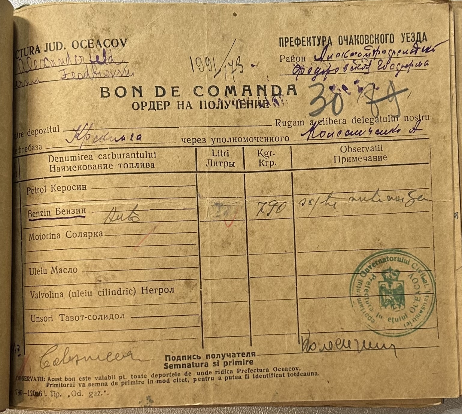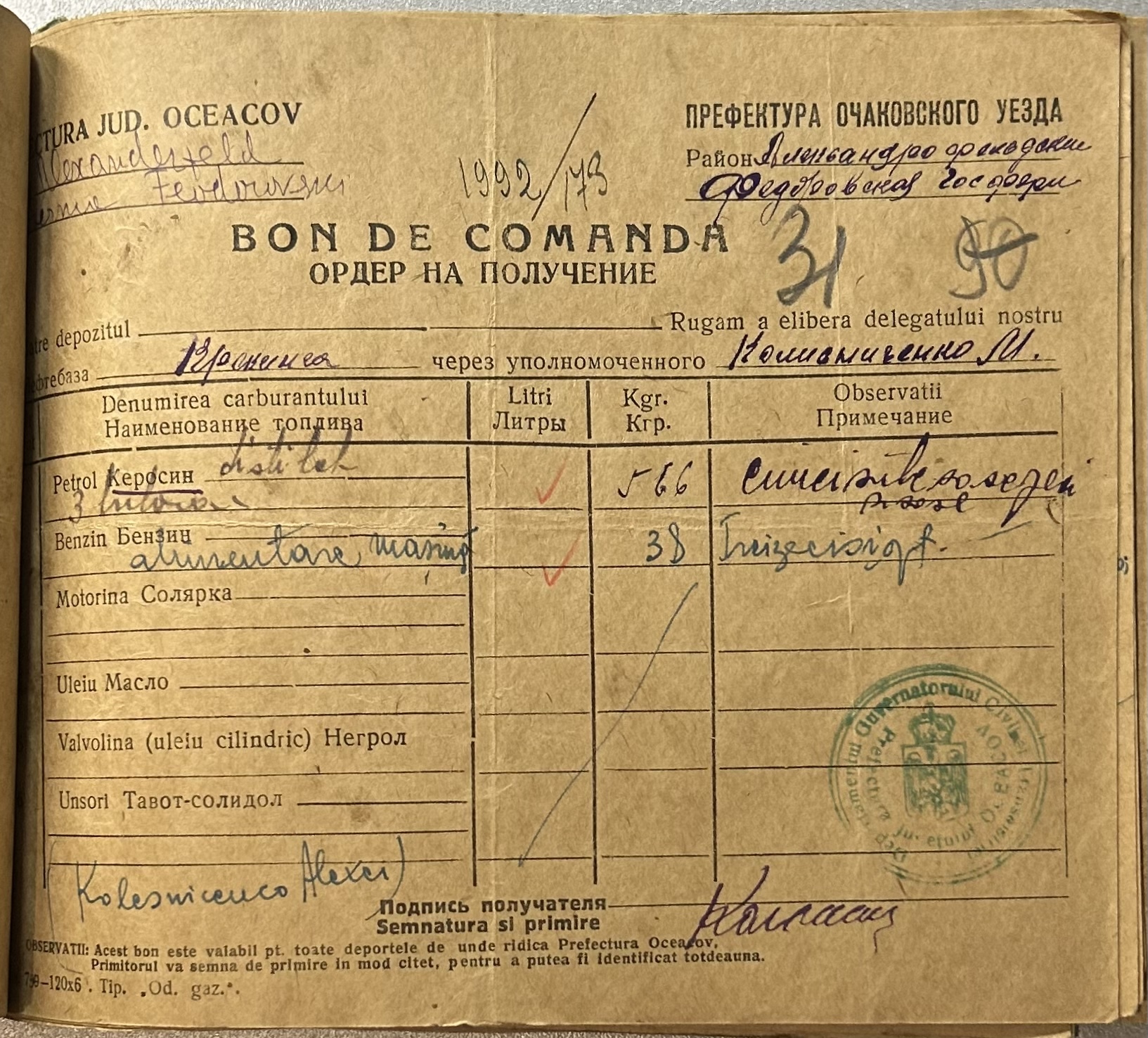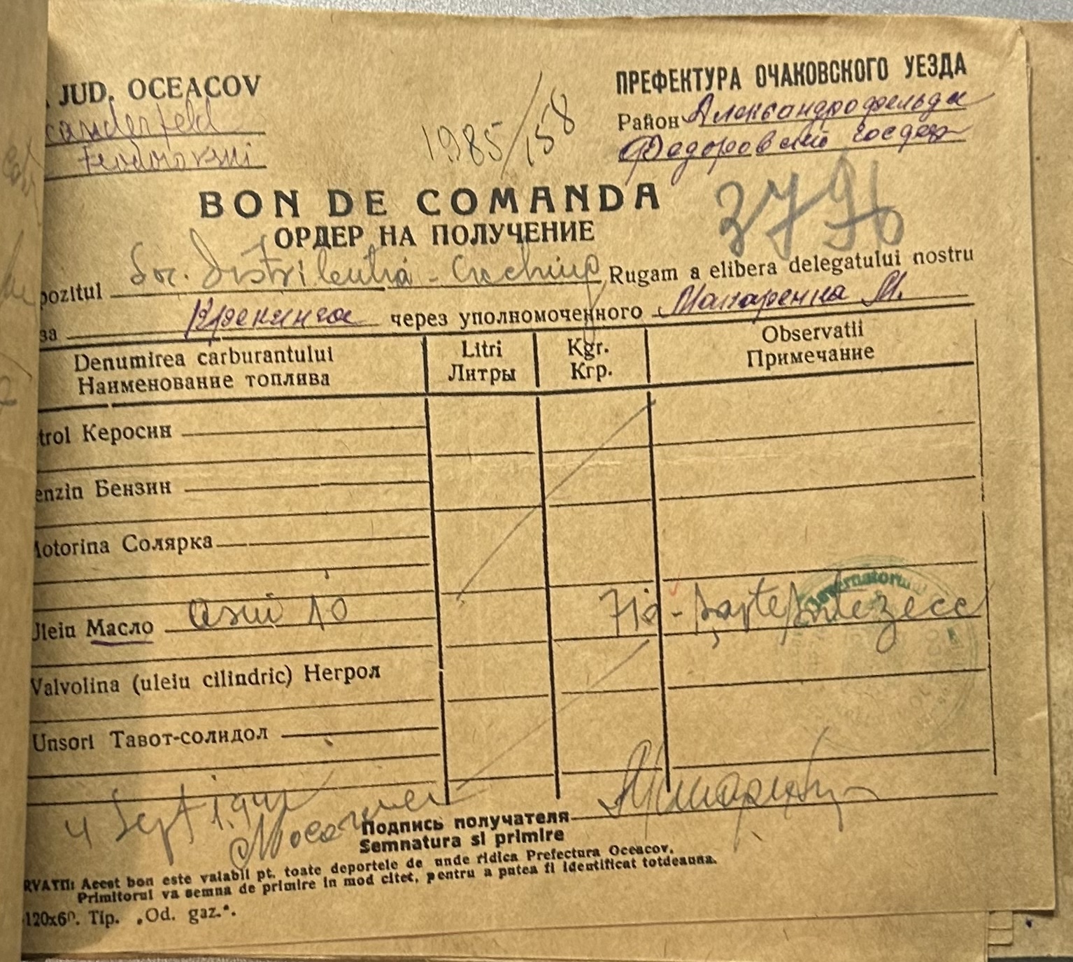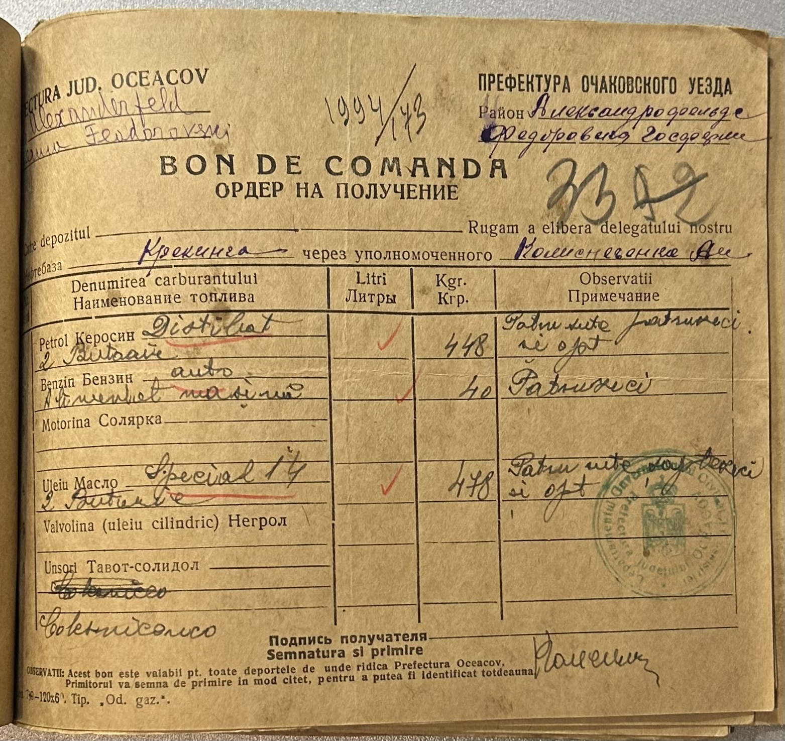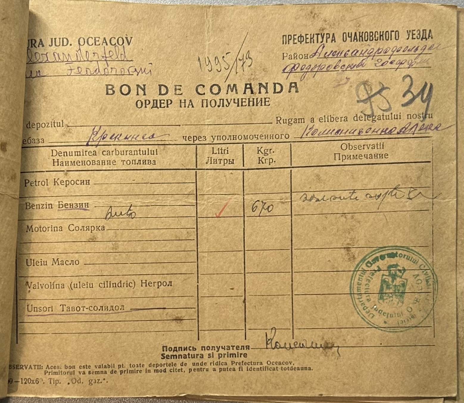 • • • • Справа № 9 “Ордери на отримання пального Федорівською державною фермою”