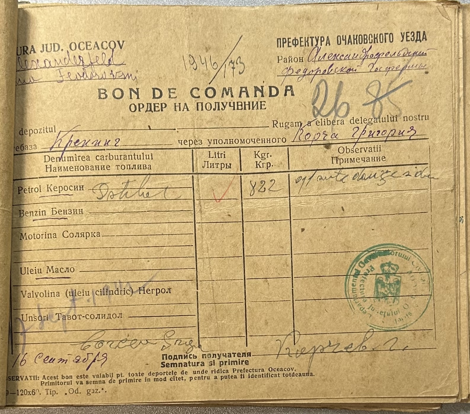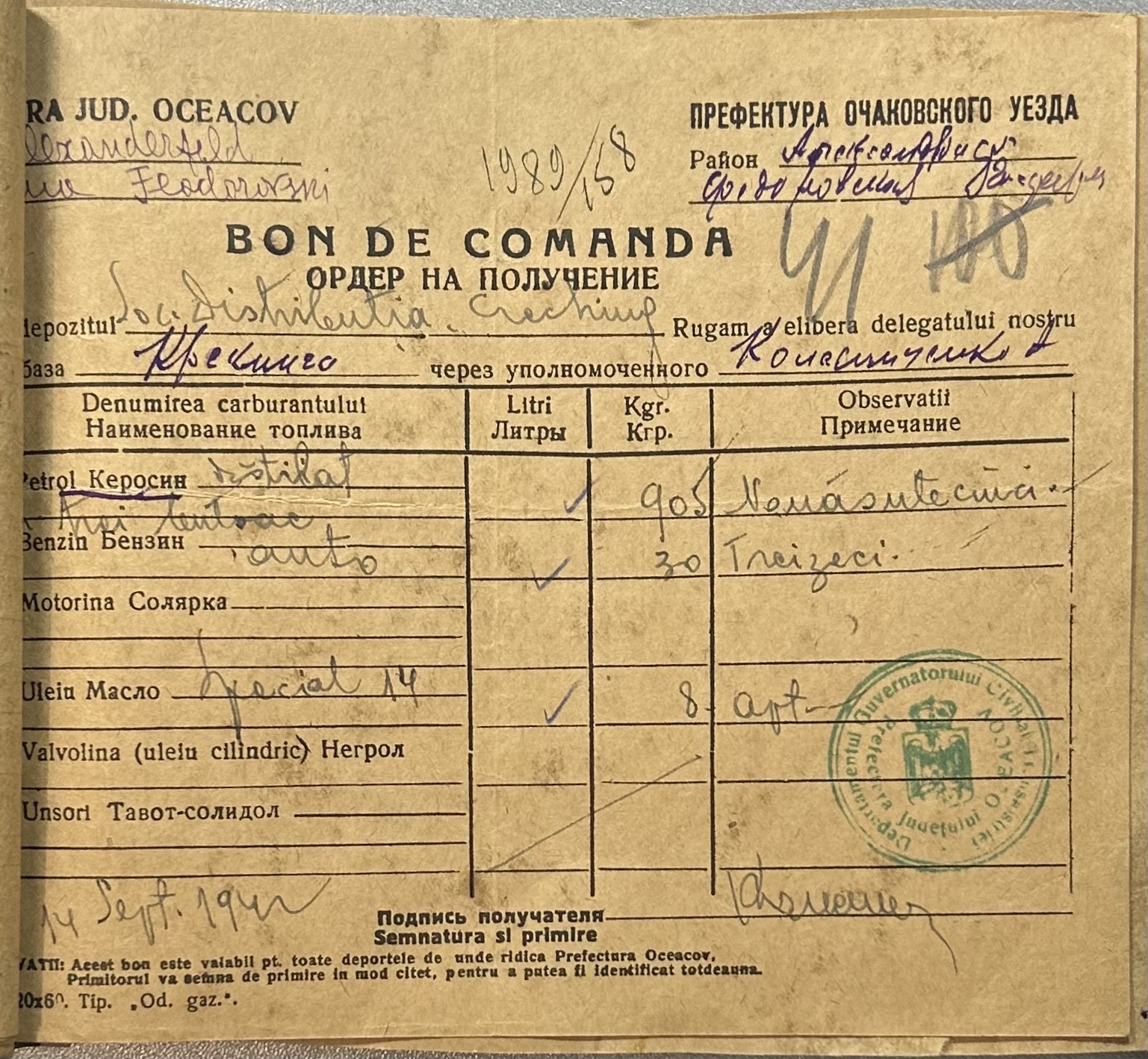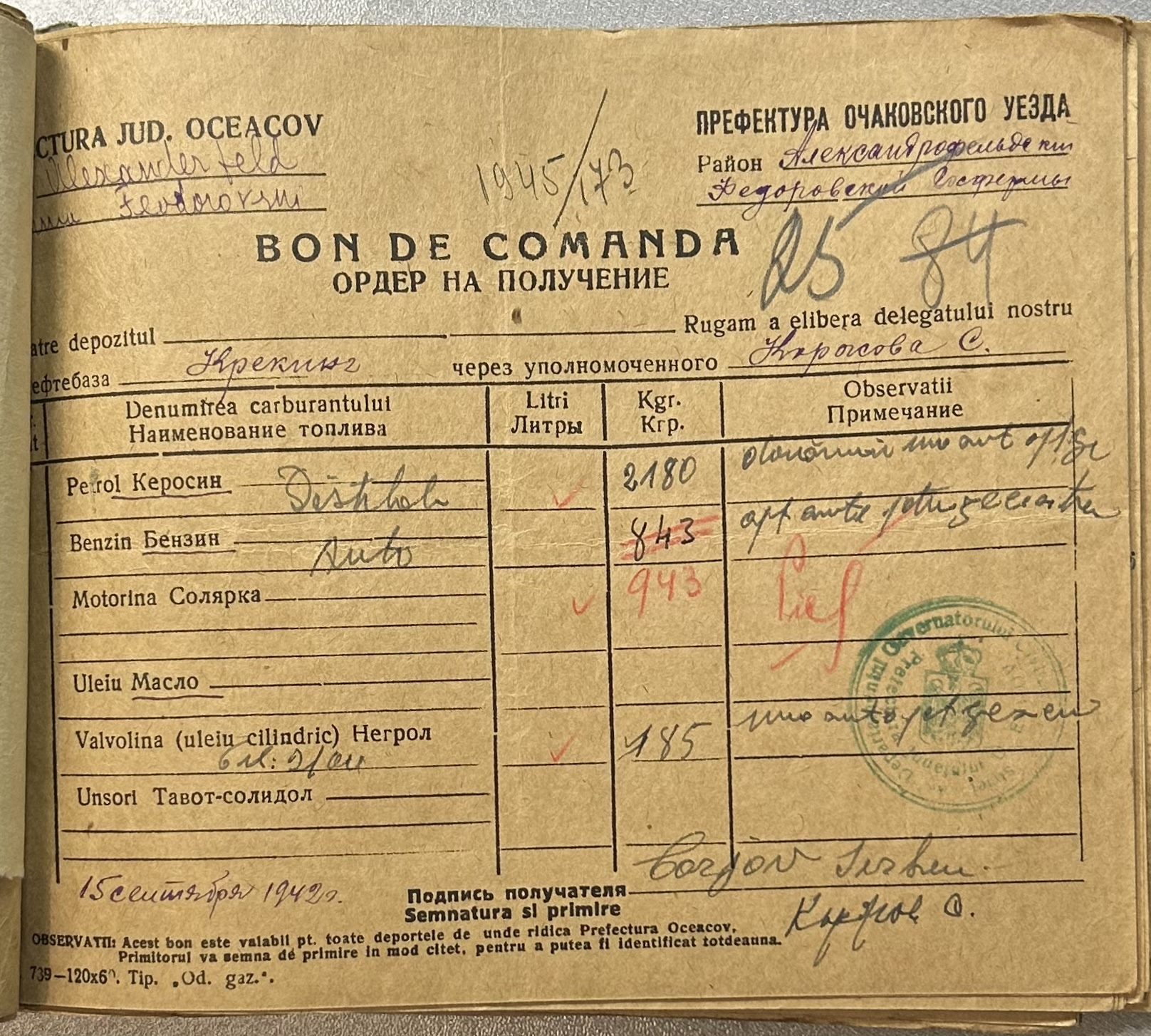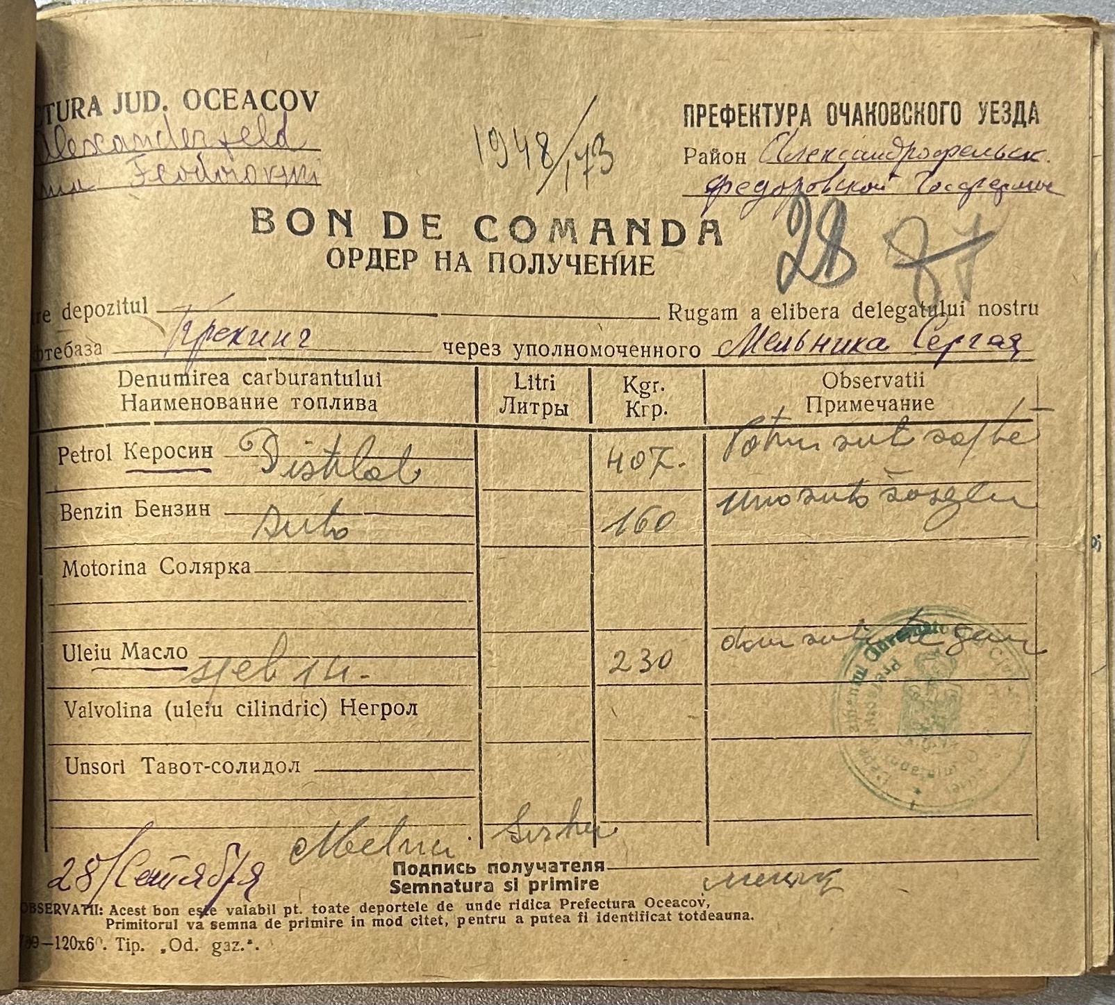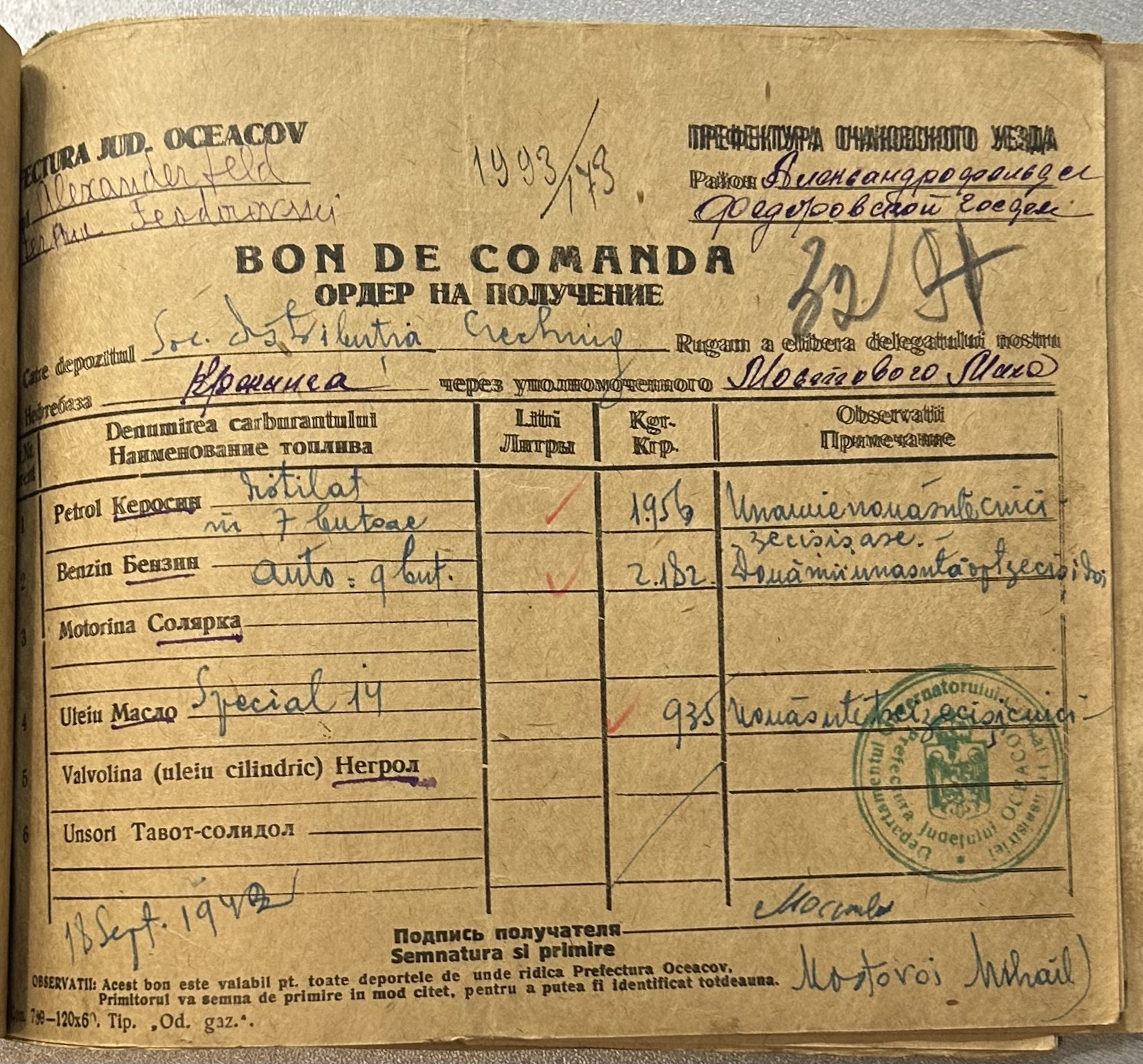 • • • • Справа № 9 “Ордери на отримання пального Федорівською державною фермою”