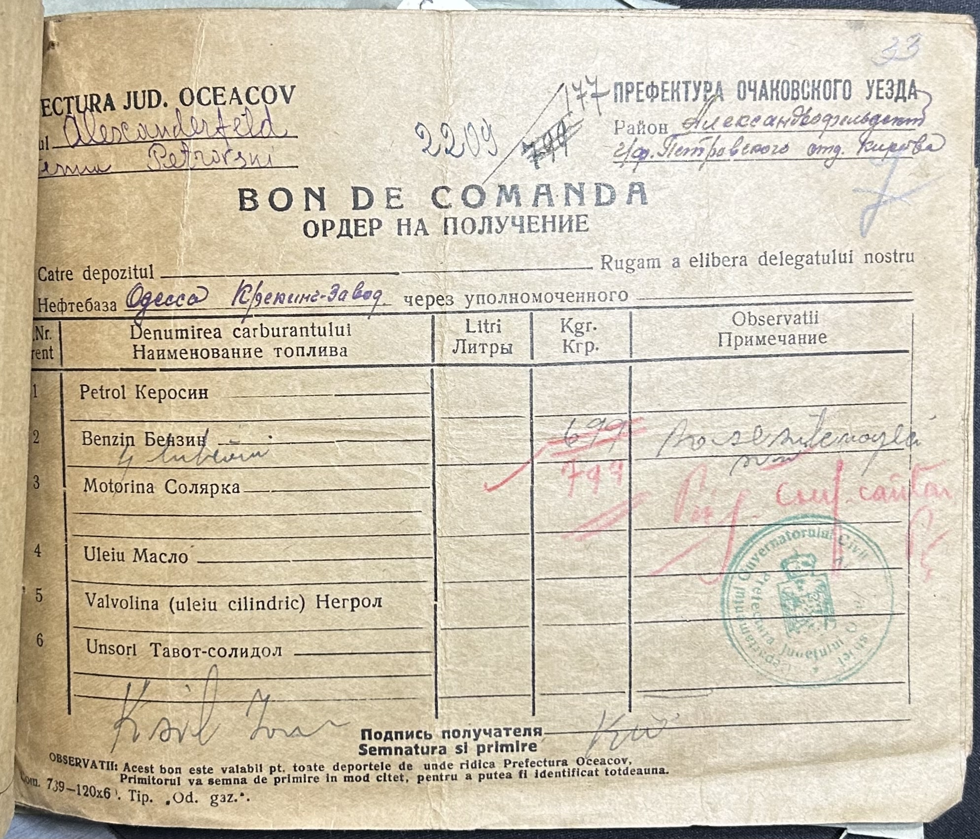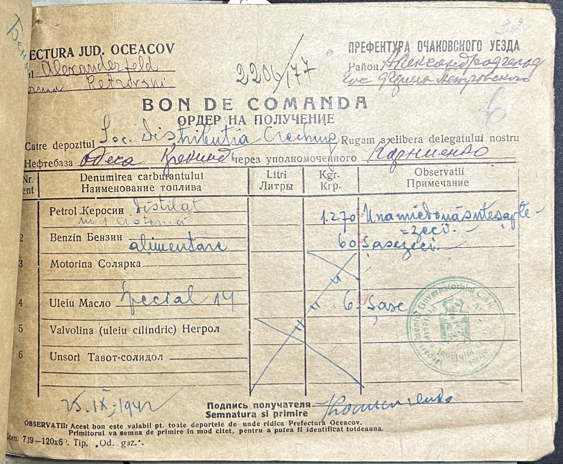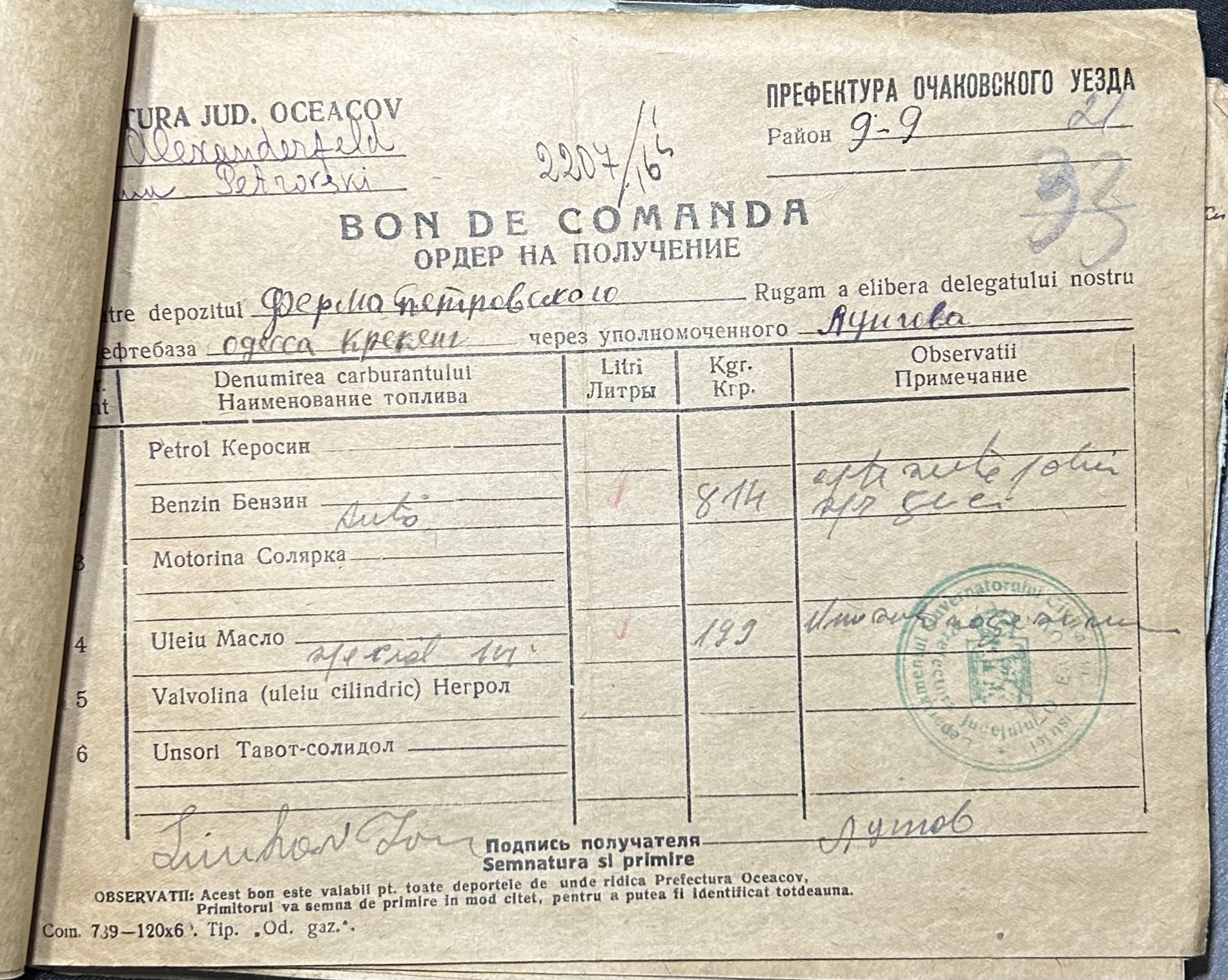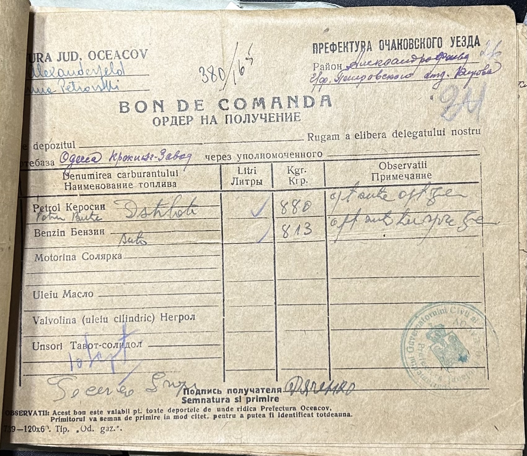 • • • • Справа № 12 “Ордери на отримання пального Петрівською державною фермою”