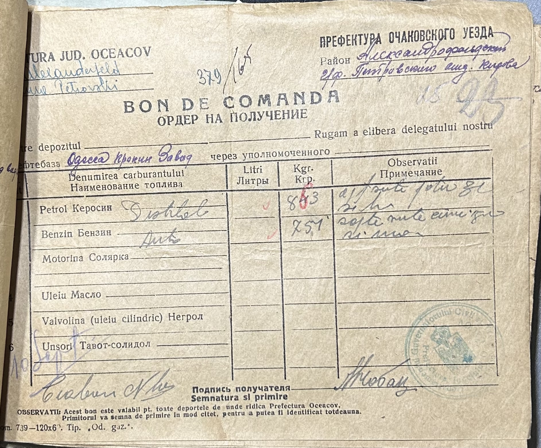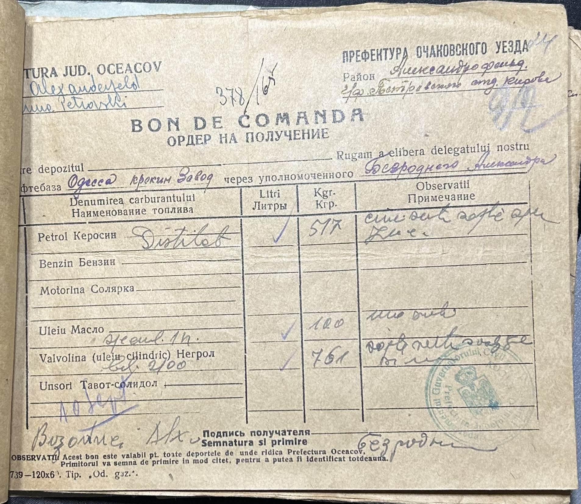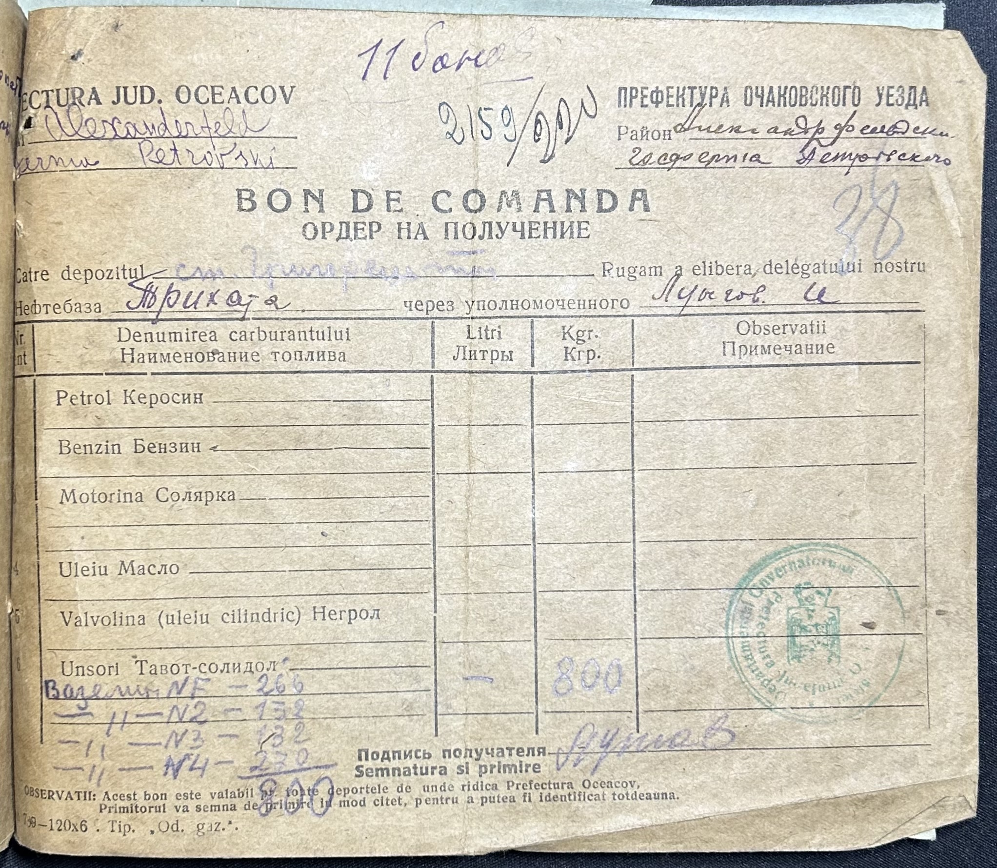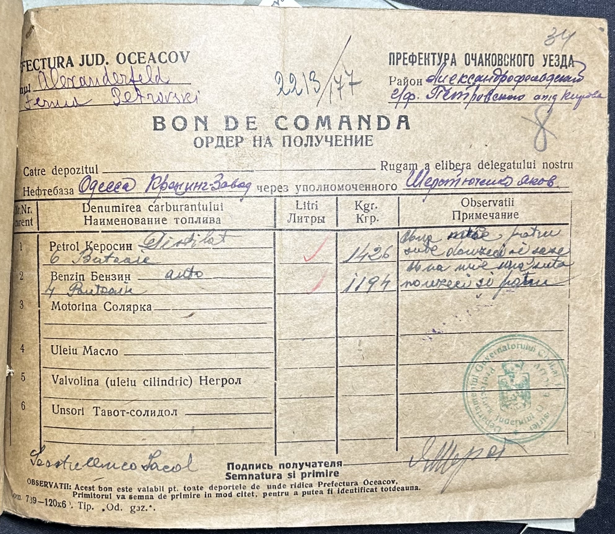 • • • • Справа № 12 “Ордери на отримання пального Петрівською державною фермою”