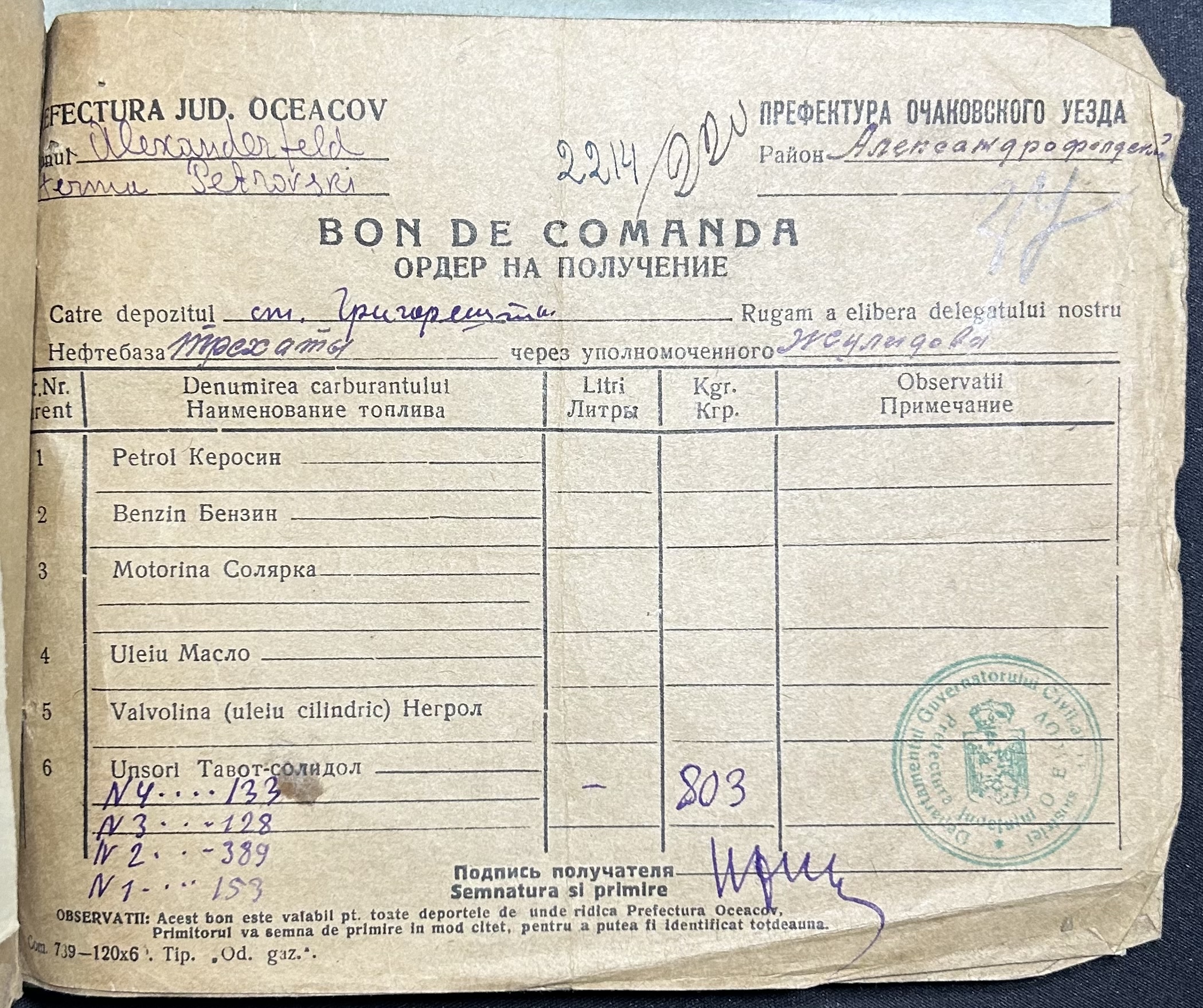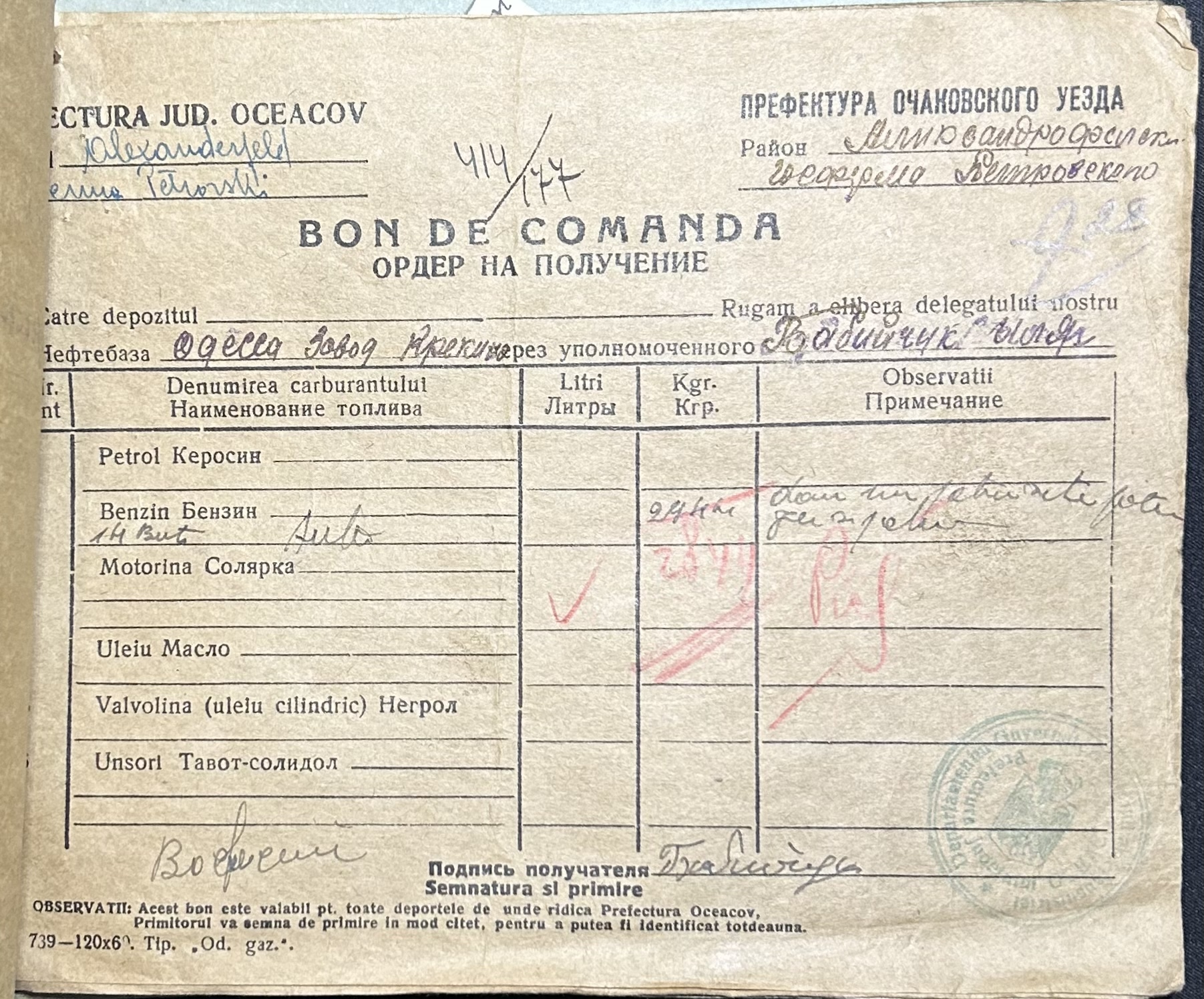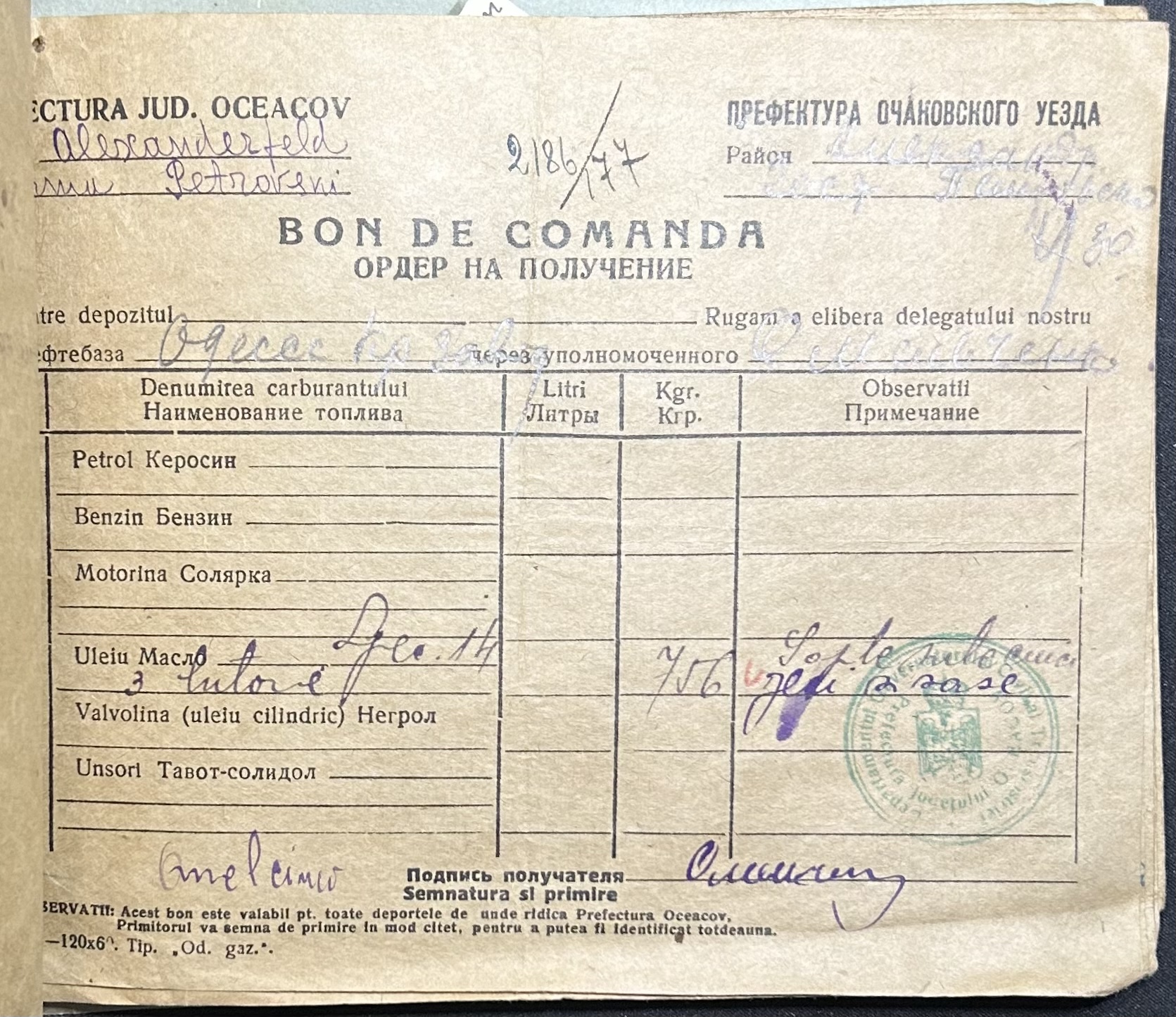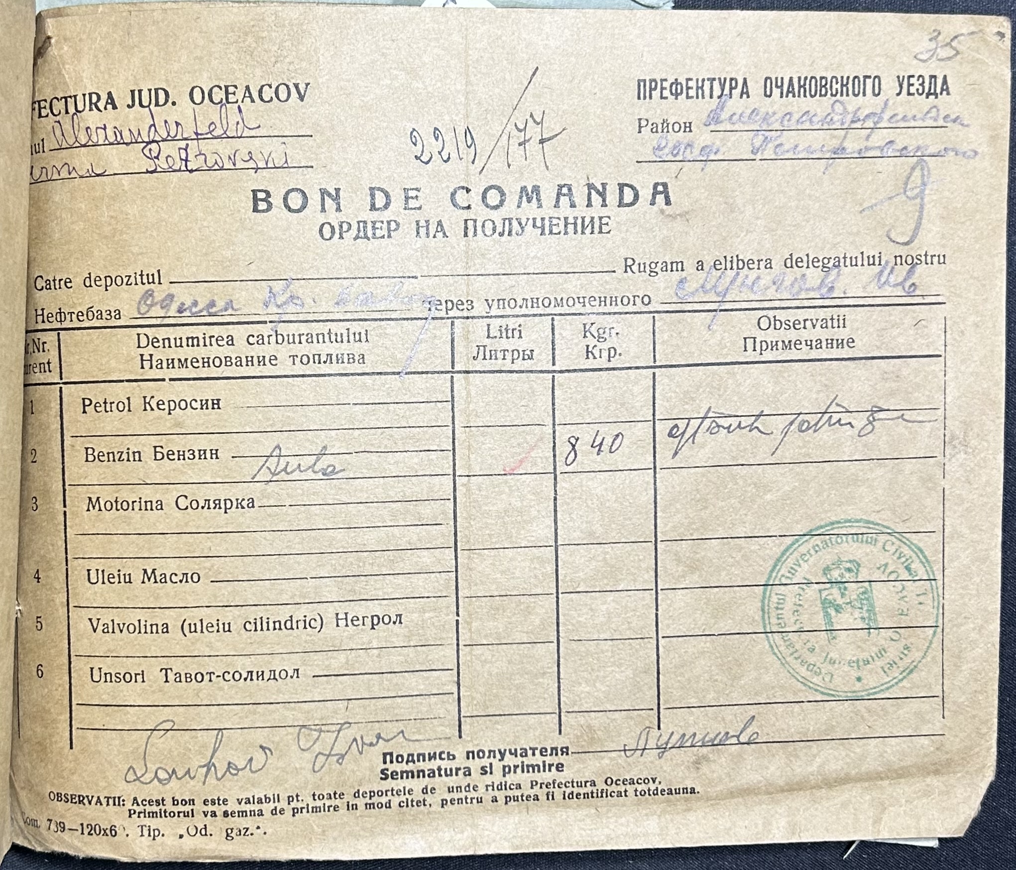 • • • • Справа № 12 “Ордери на отримання пального Петрівською державною фермою”