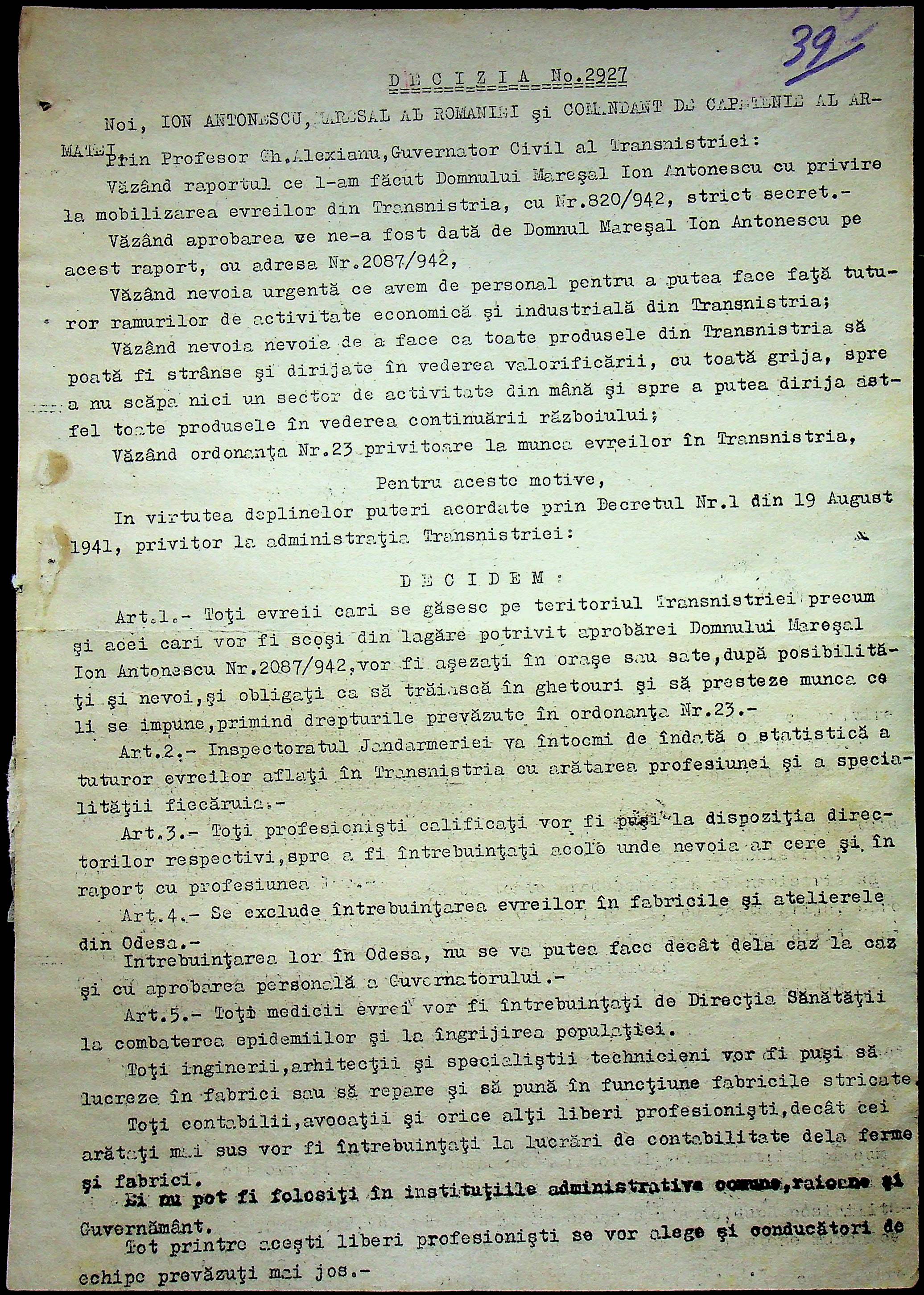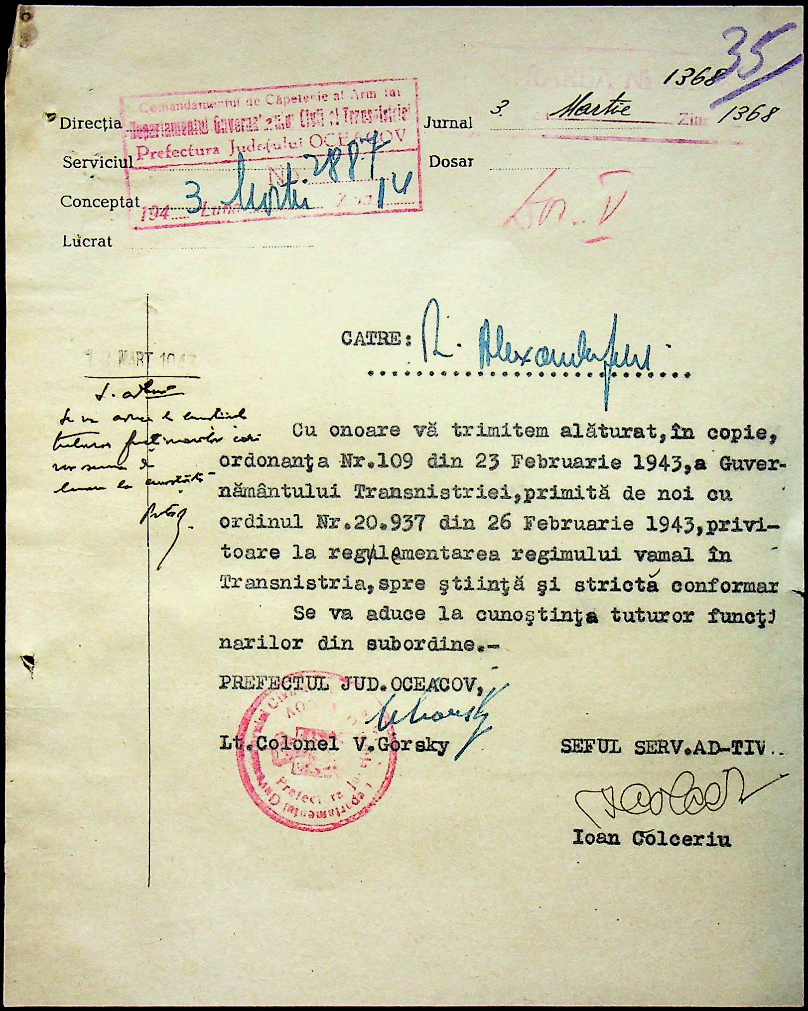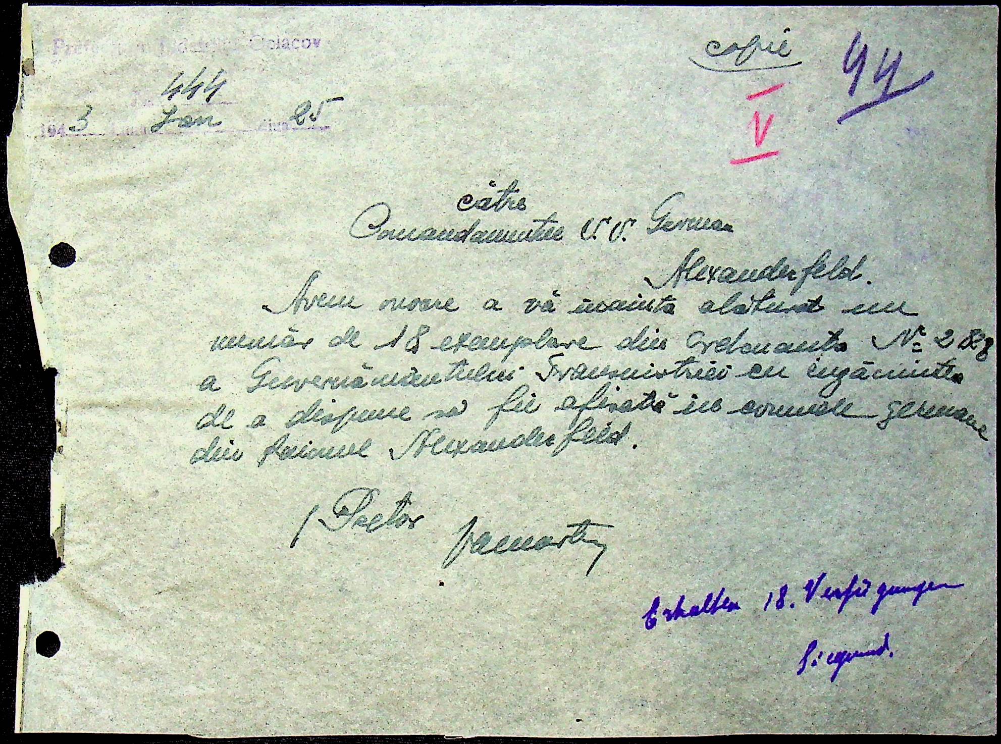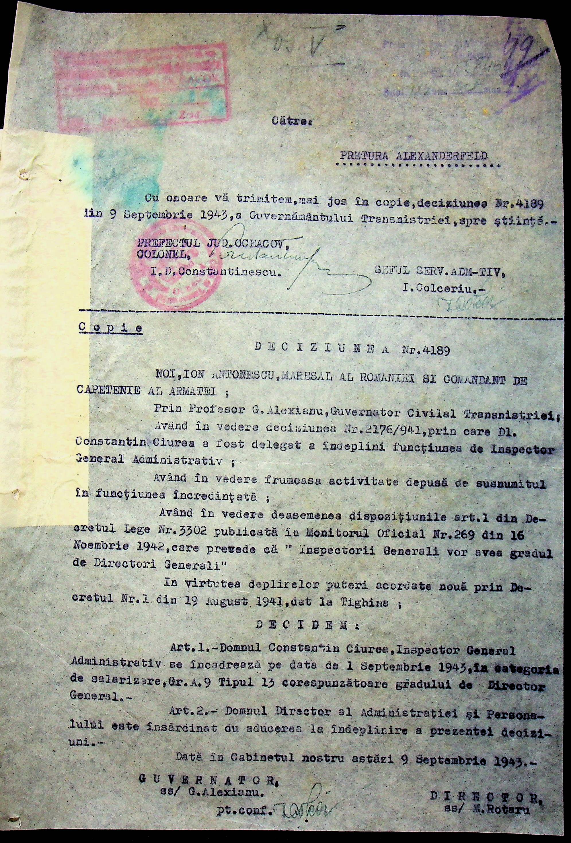 • • • • Справа № 5 “Накази, постанови цивільного губернатора Трансністрії (копії) та претора Александерфельдського району з питань основної діяльності