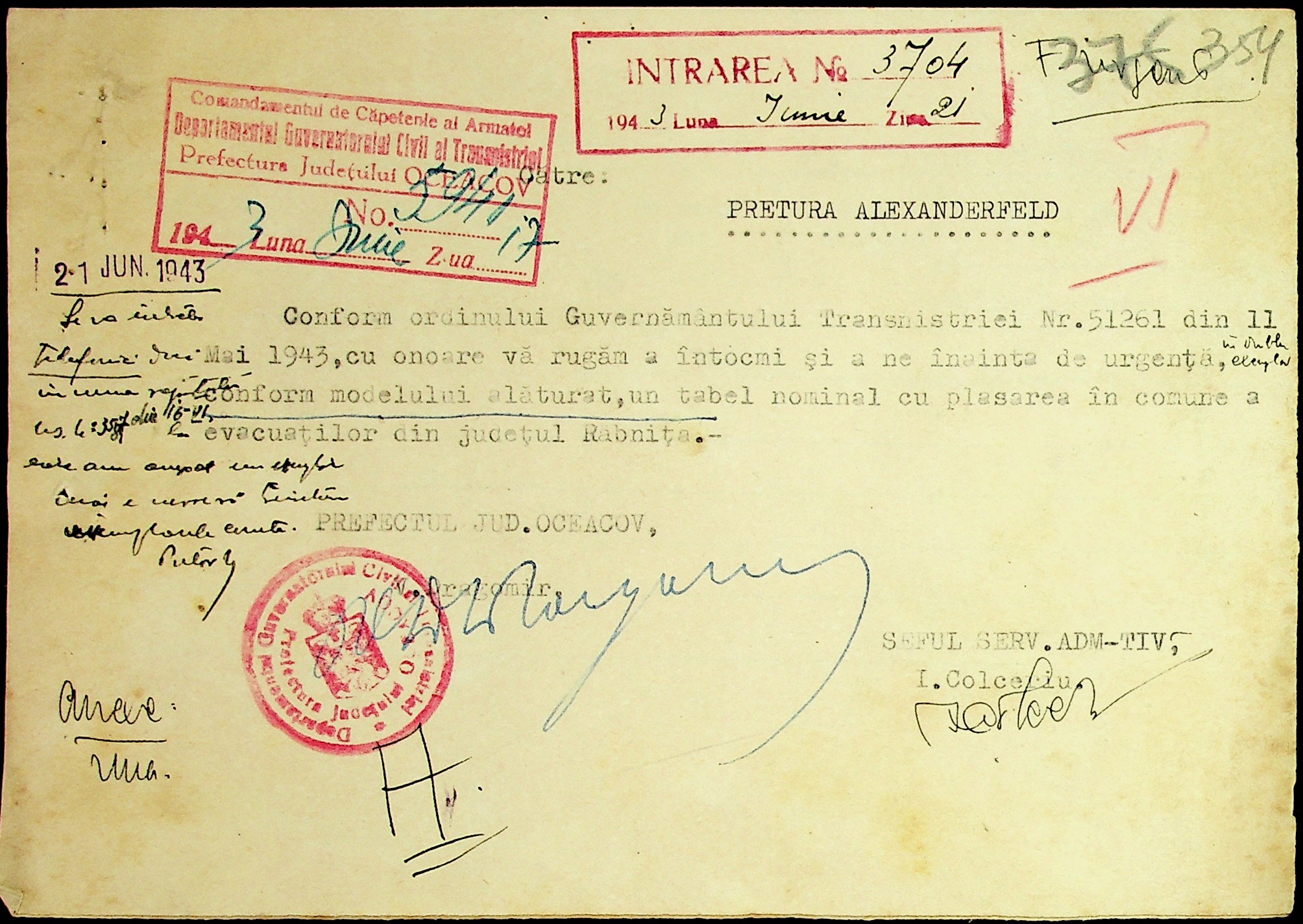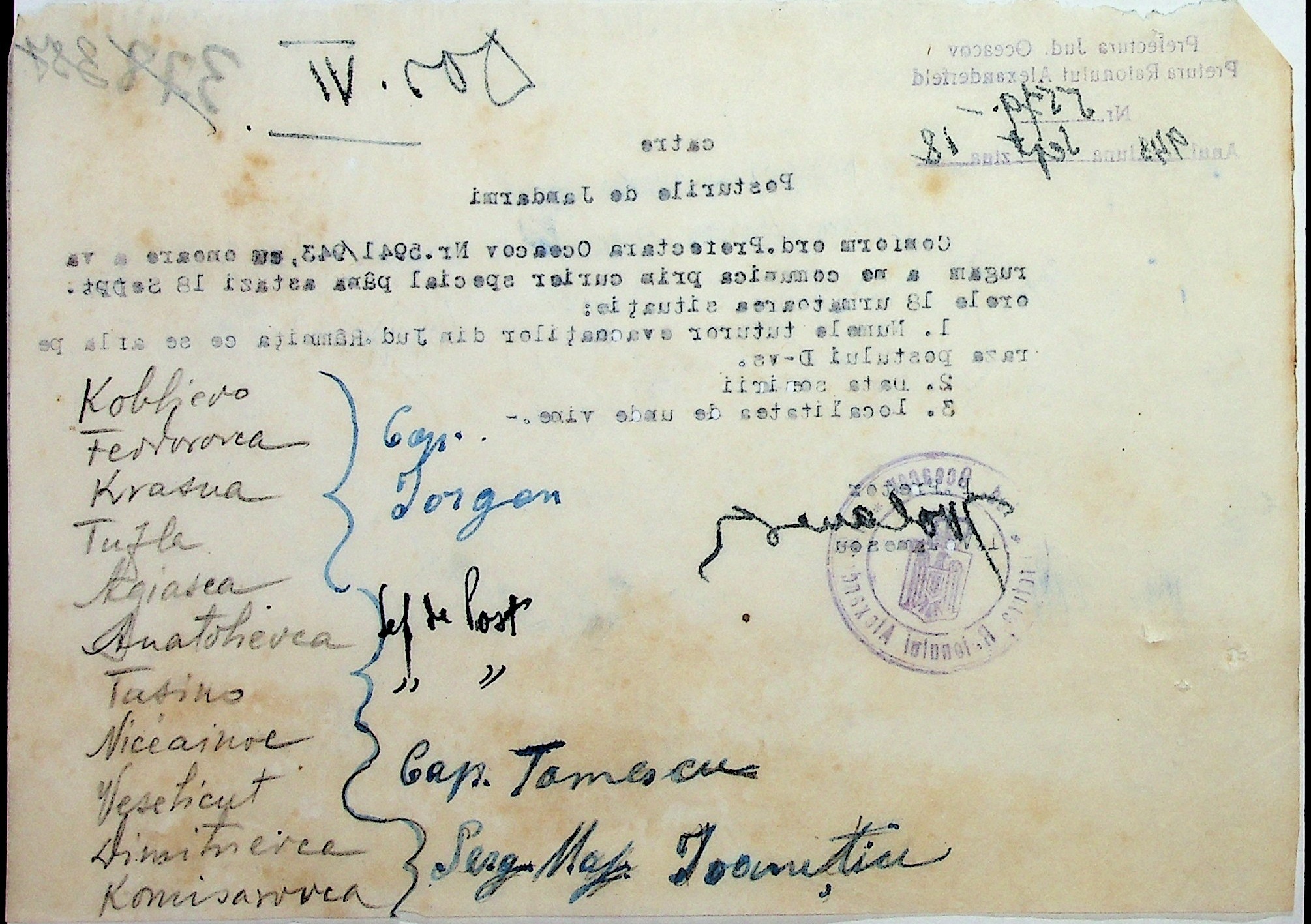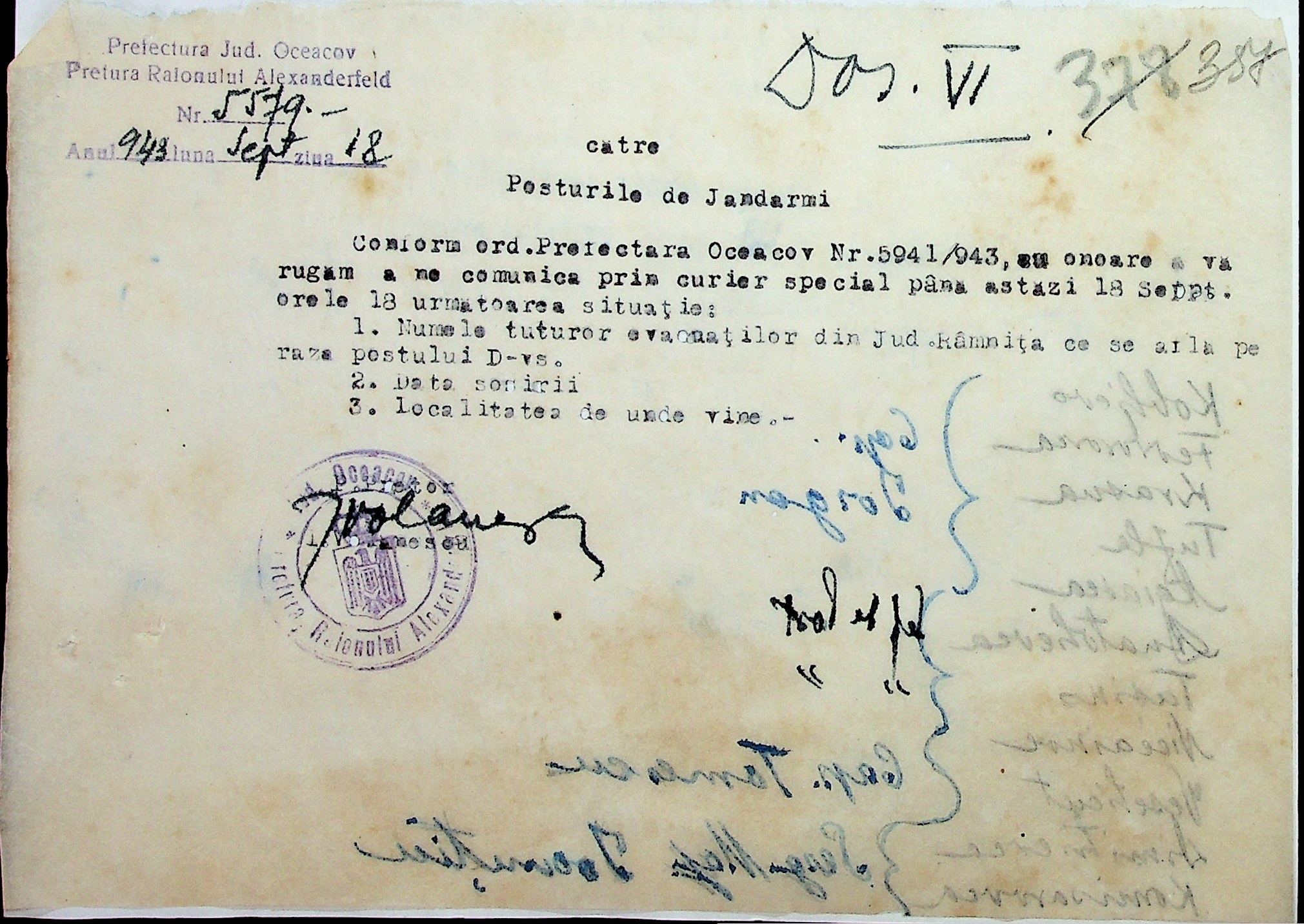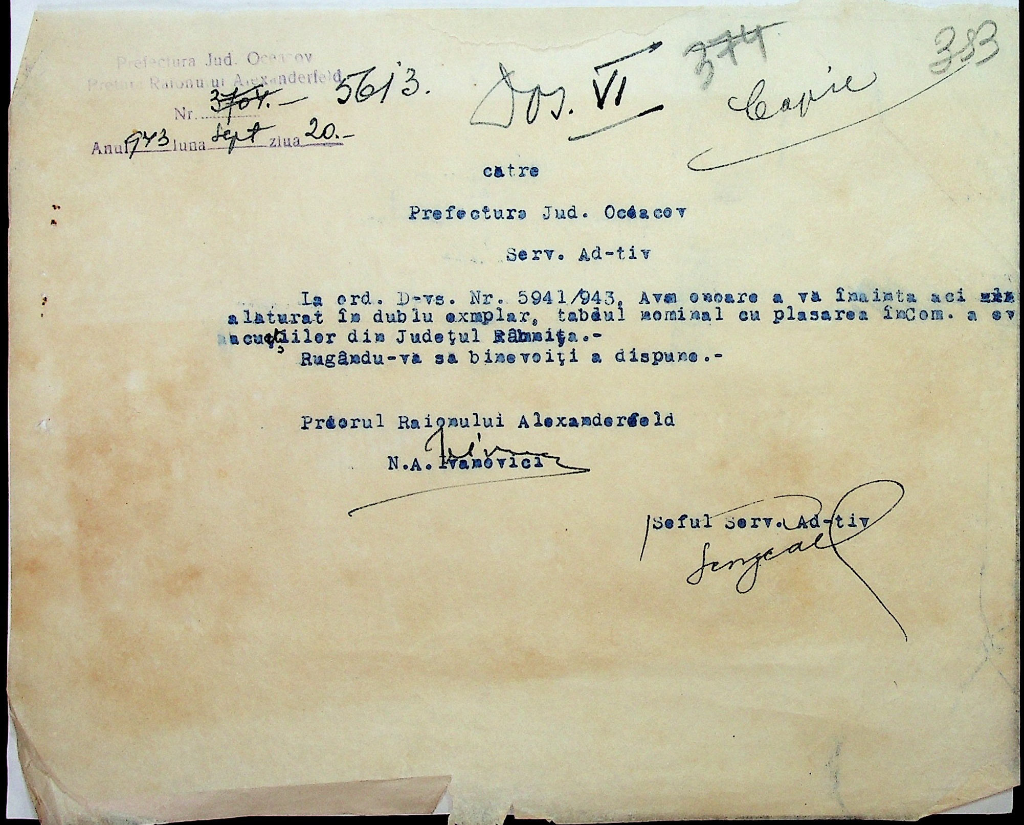 • • • • Справа № 7 “Накази, постанови цивільного губернатора Трансністрії (копії), листування з адміністративним відділом Очаківської префектури про використання місцевих співробітників на роботах під контролем румунської адміністрації, заведення російсько-румунських журналів для реєстрації актів громадянського стану, про надання канцелярського приладдя для сільськогосподарського відділу”