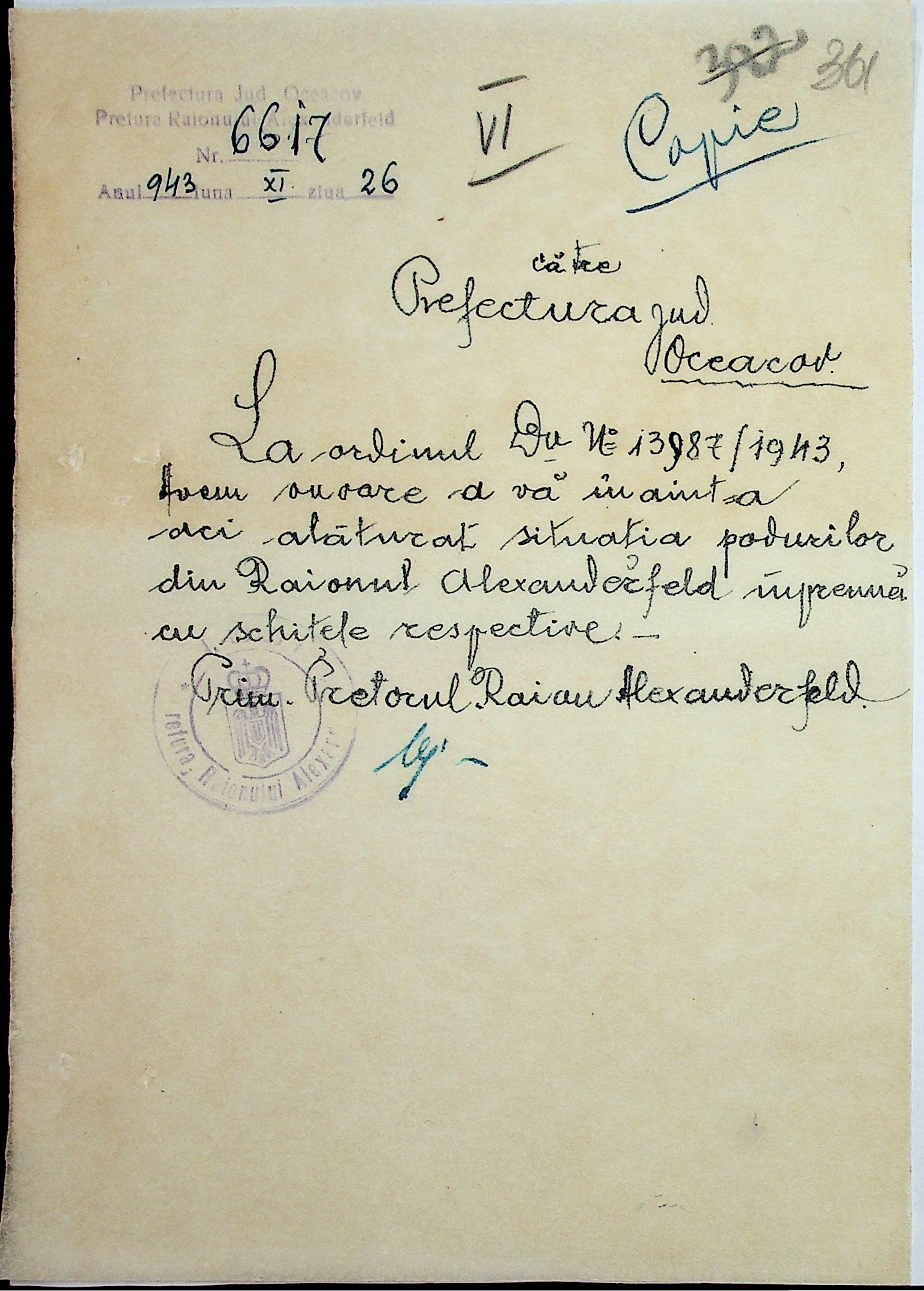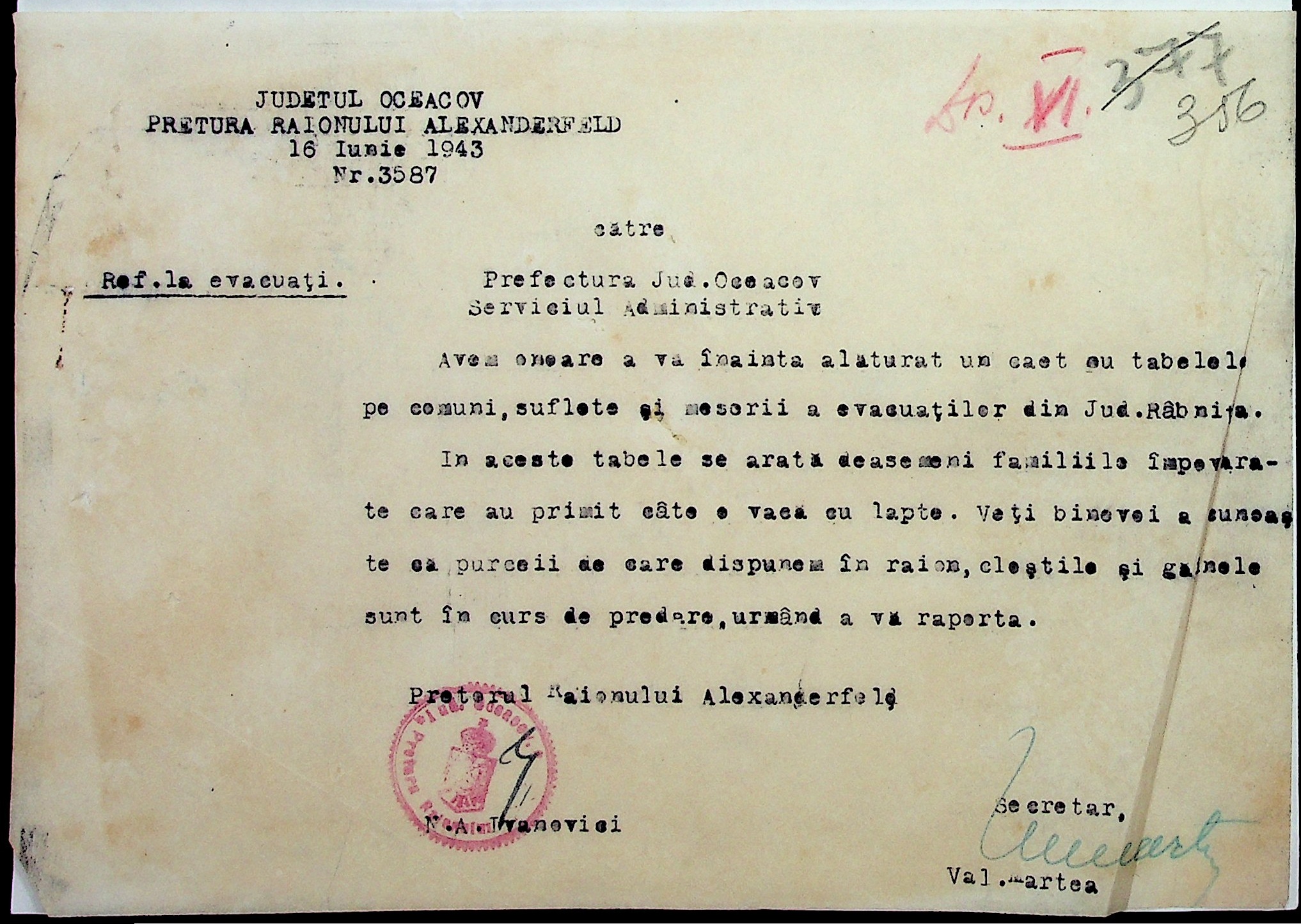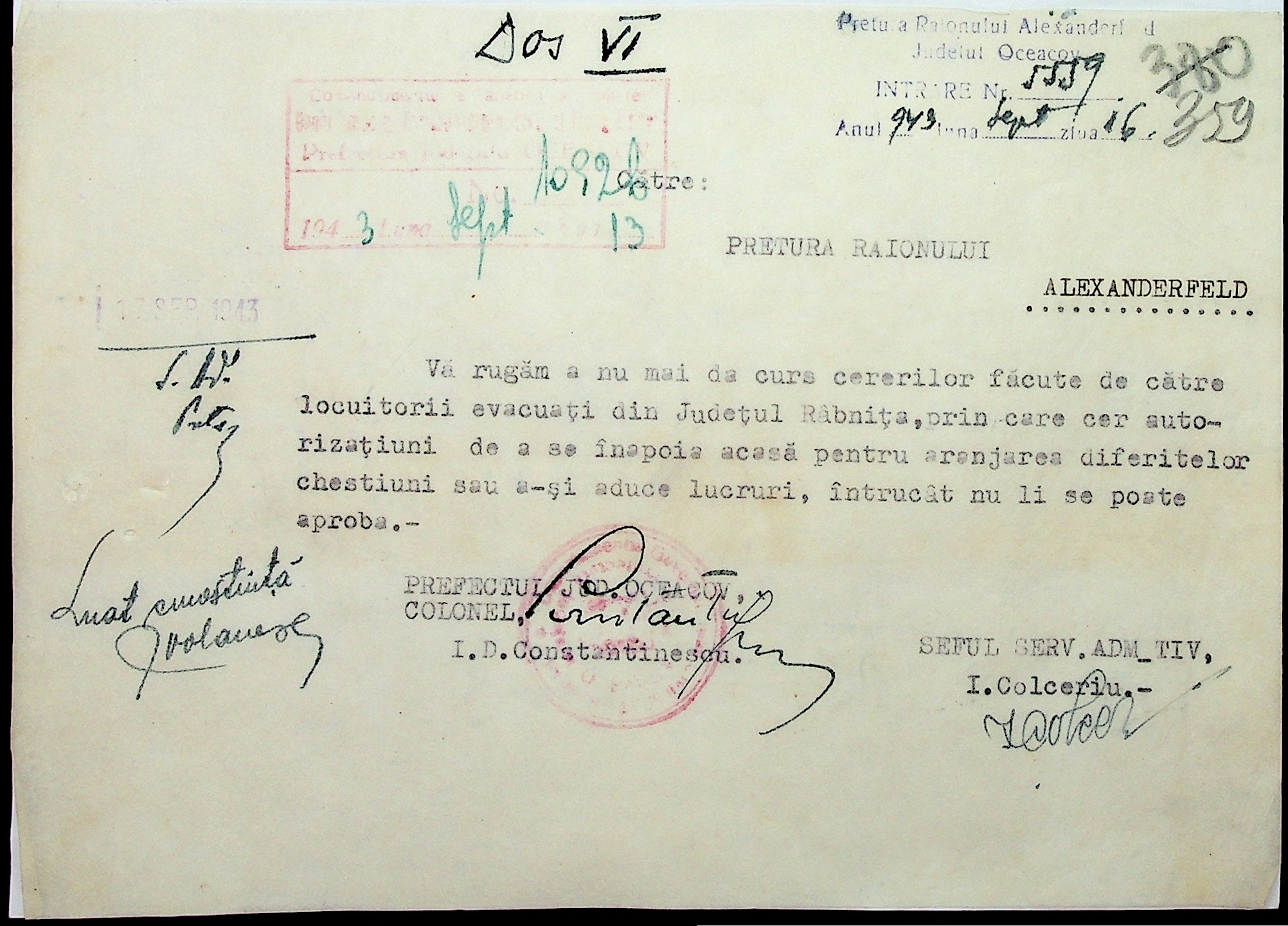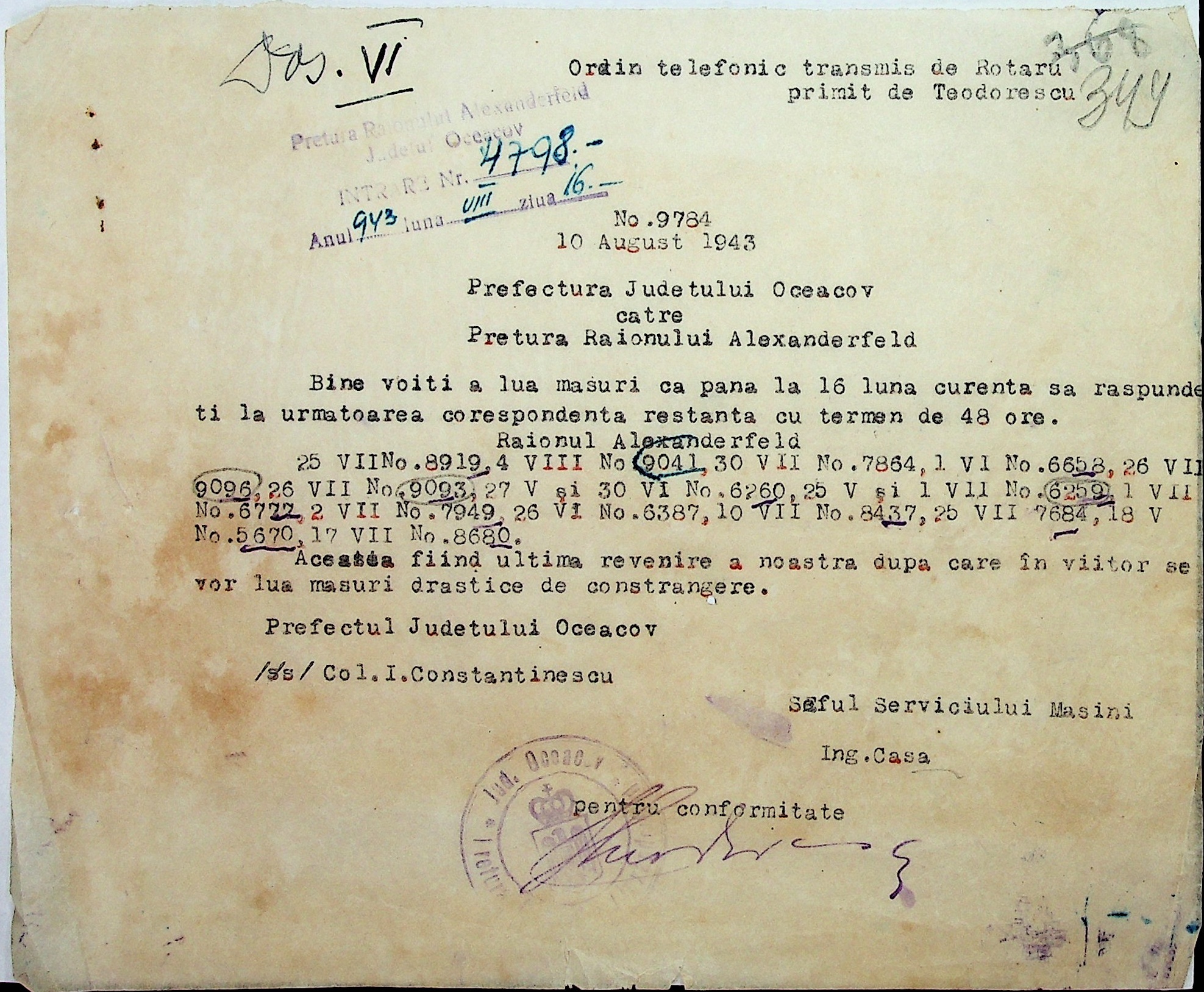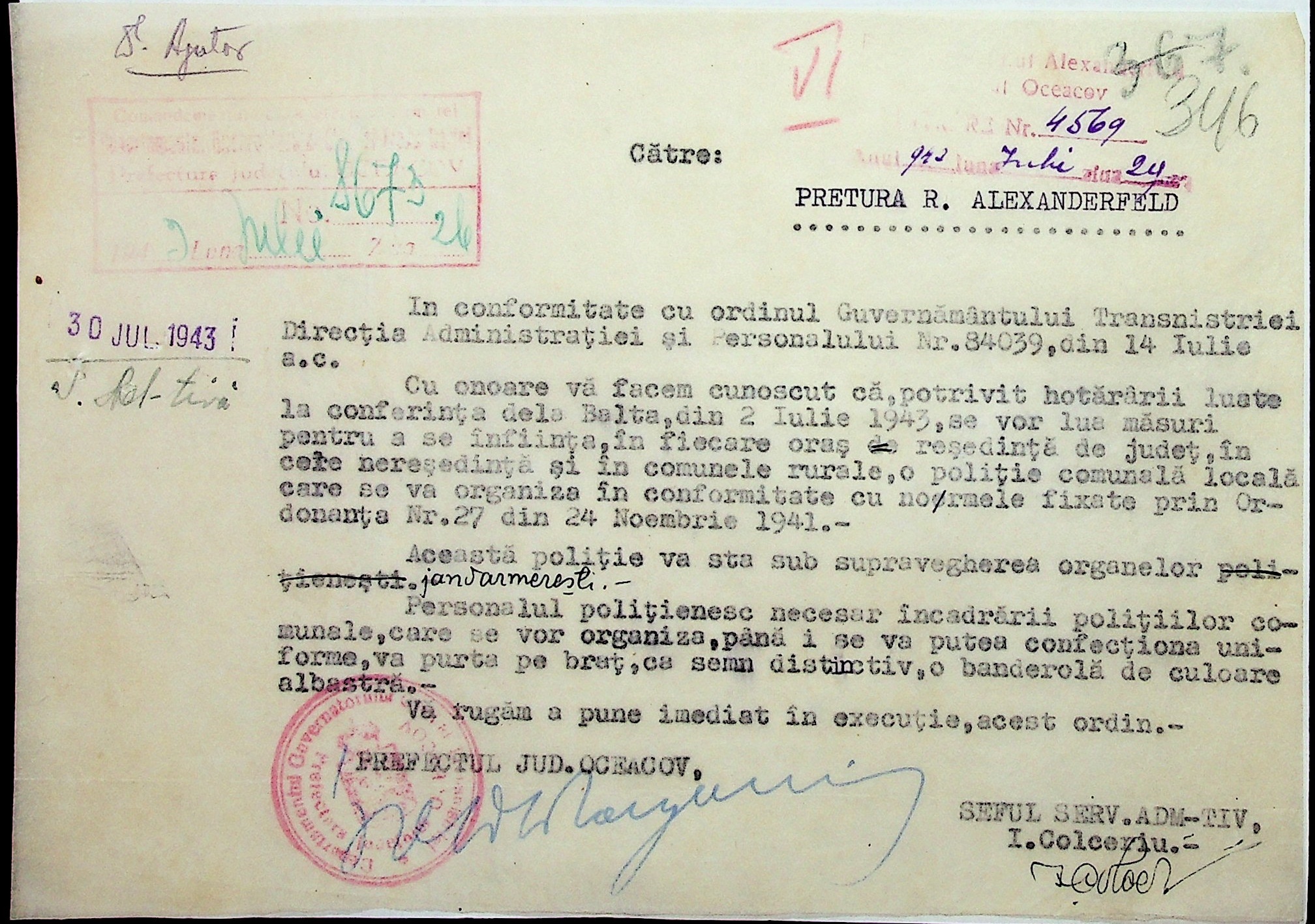 • • • • Справа № 7 “Накази, постанови цивільного губернатора Трансністрії (копії), листування з адміністративним відділом Очаківської префектури про використання місцевих співробітників на роботах під контролем румунської адміністрації, заведення російсько-румунських журналів для реєстрації актів громадянського стану, про надання канцелярського приладдя для сільськогосподарського відділу”