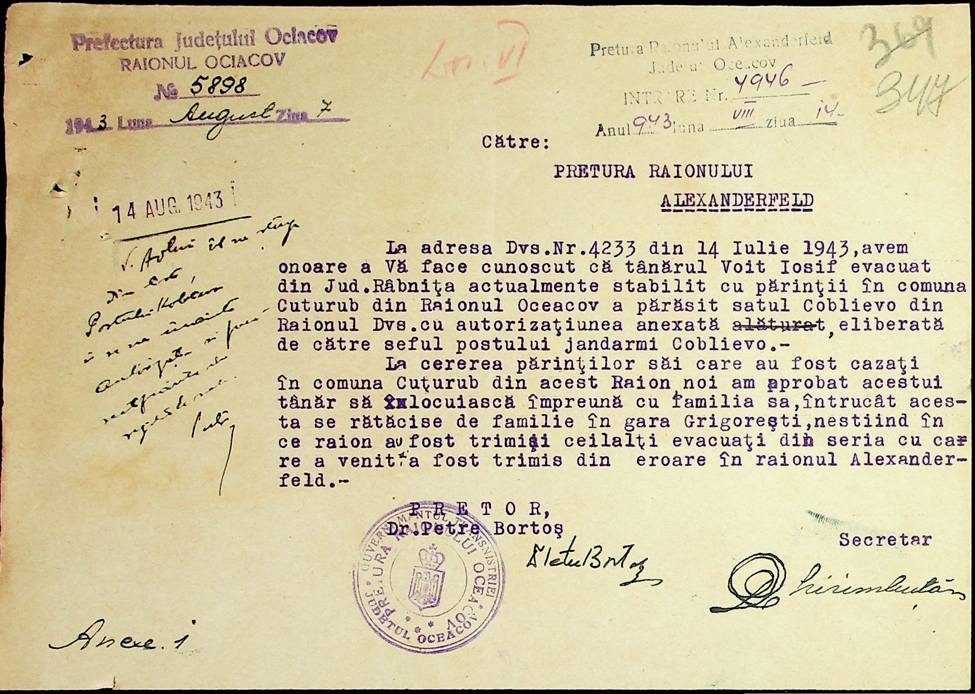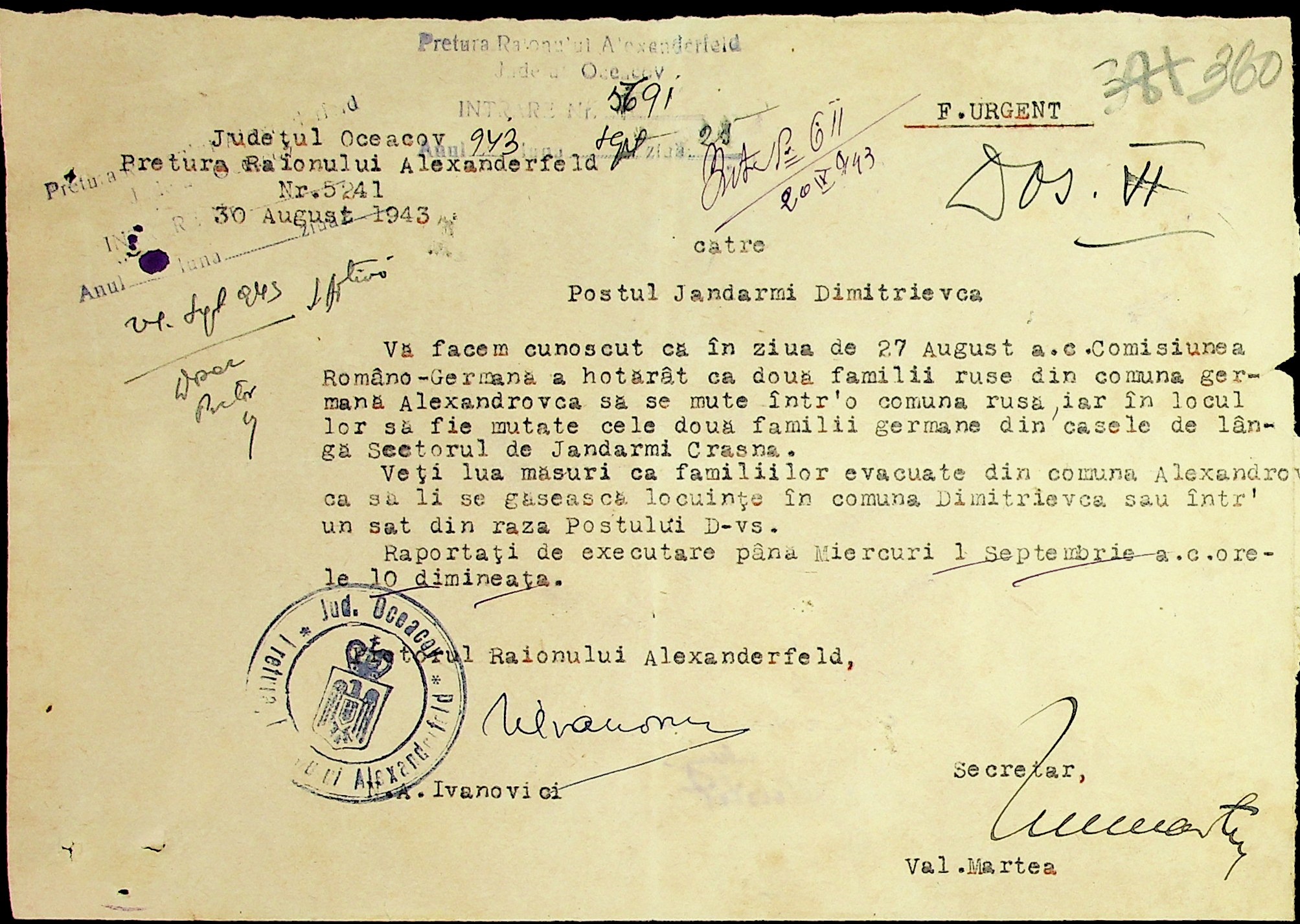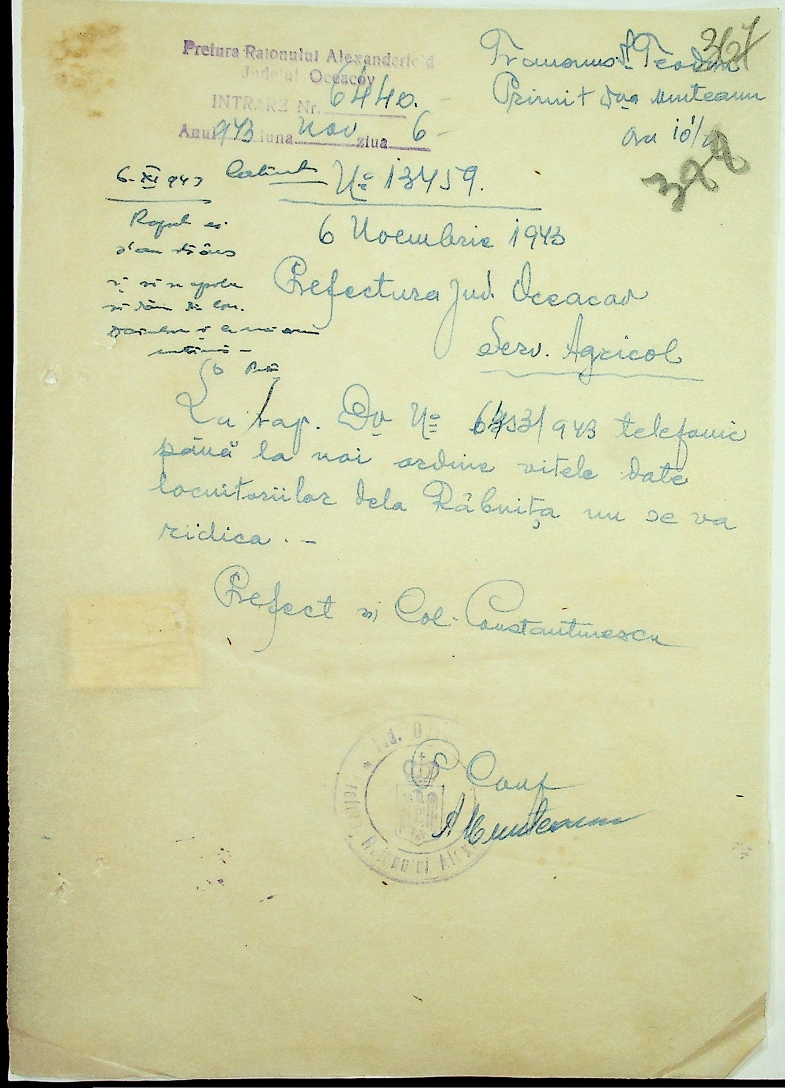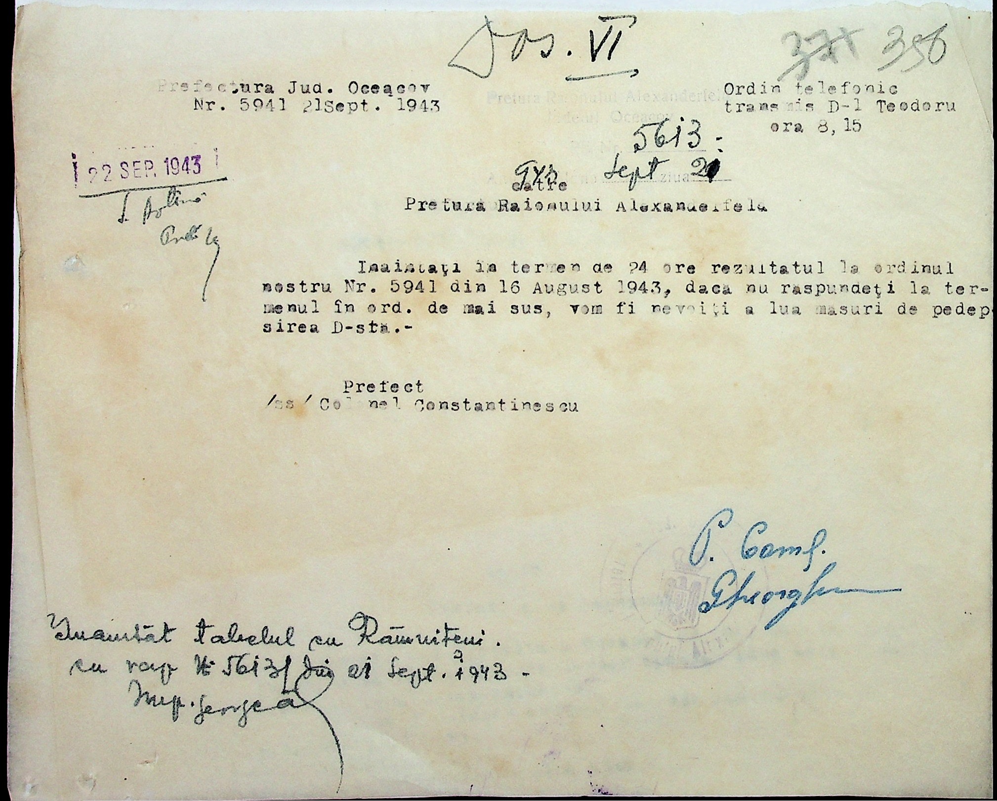 • • • • Справа № 7 “Накази, постанови цивільного губернатора Трансністрії (копії), листування з адміністративним відділом Очаківської префектури про використання місцевих співробітників на роботах під контролем румунської адміністрації, заведення російсько-румунських журналів для реєстрації актів громадянського стану, про надання канцелярського приладдя для сільськогосподарського відділу”