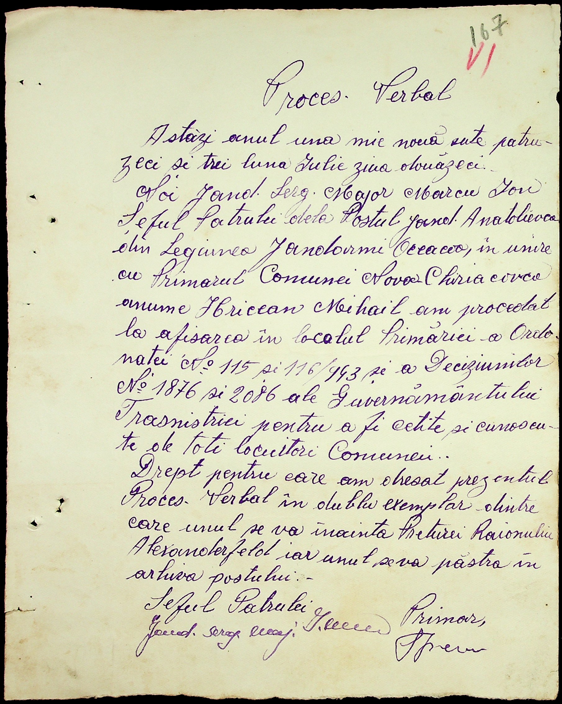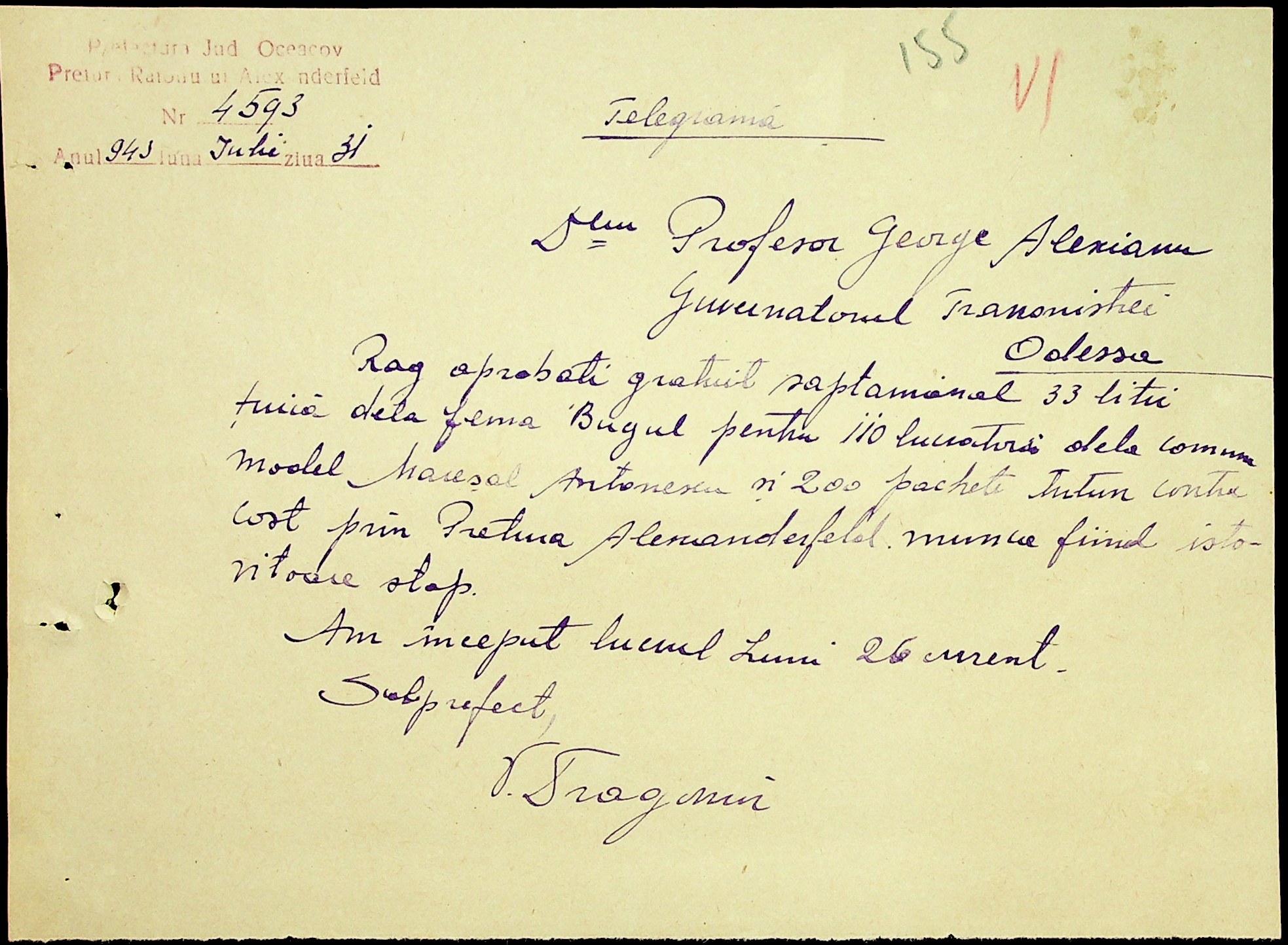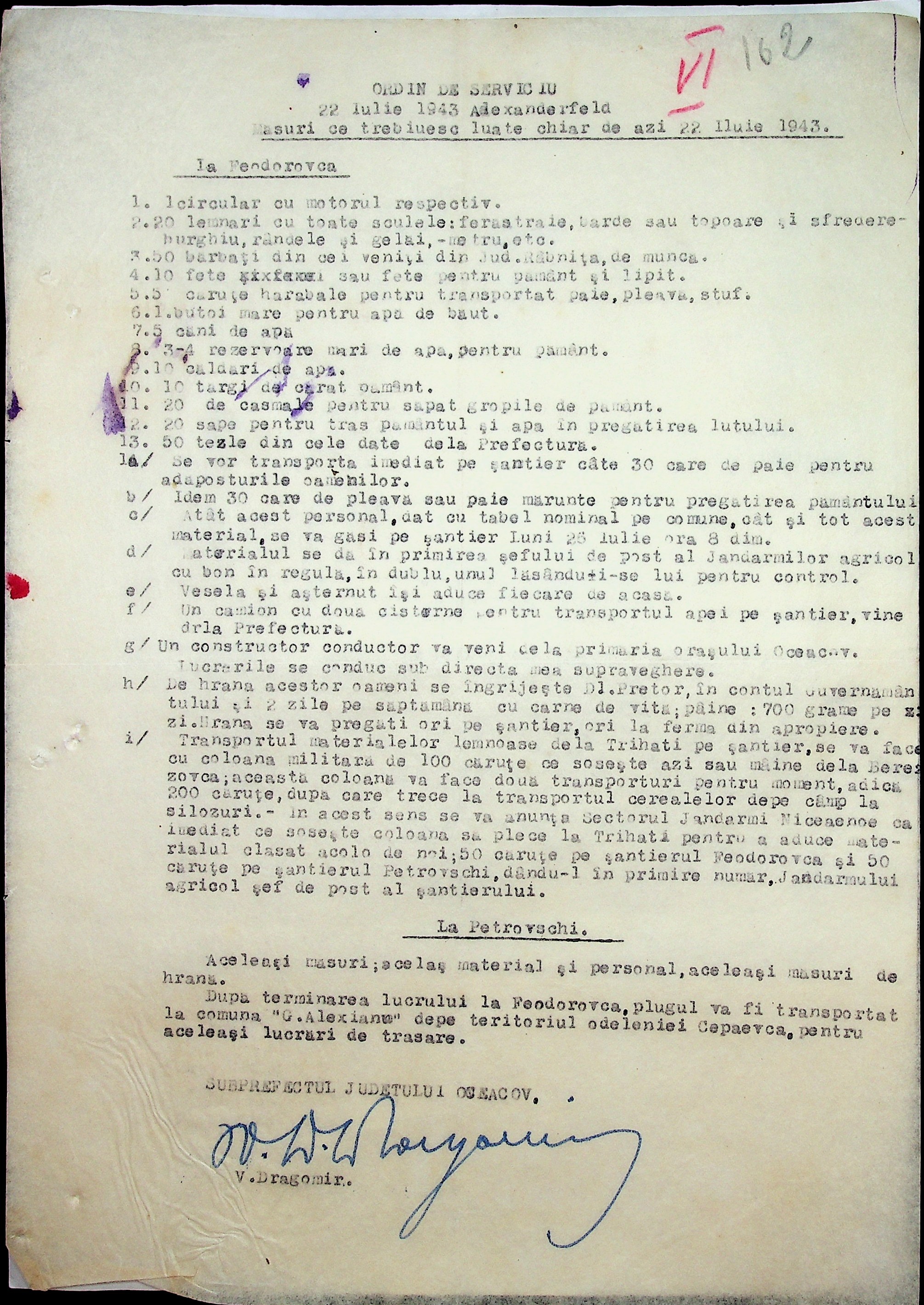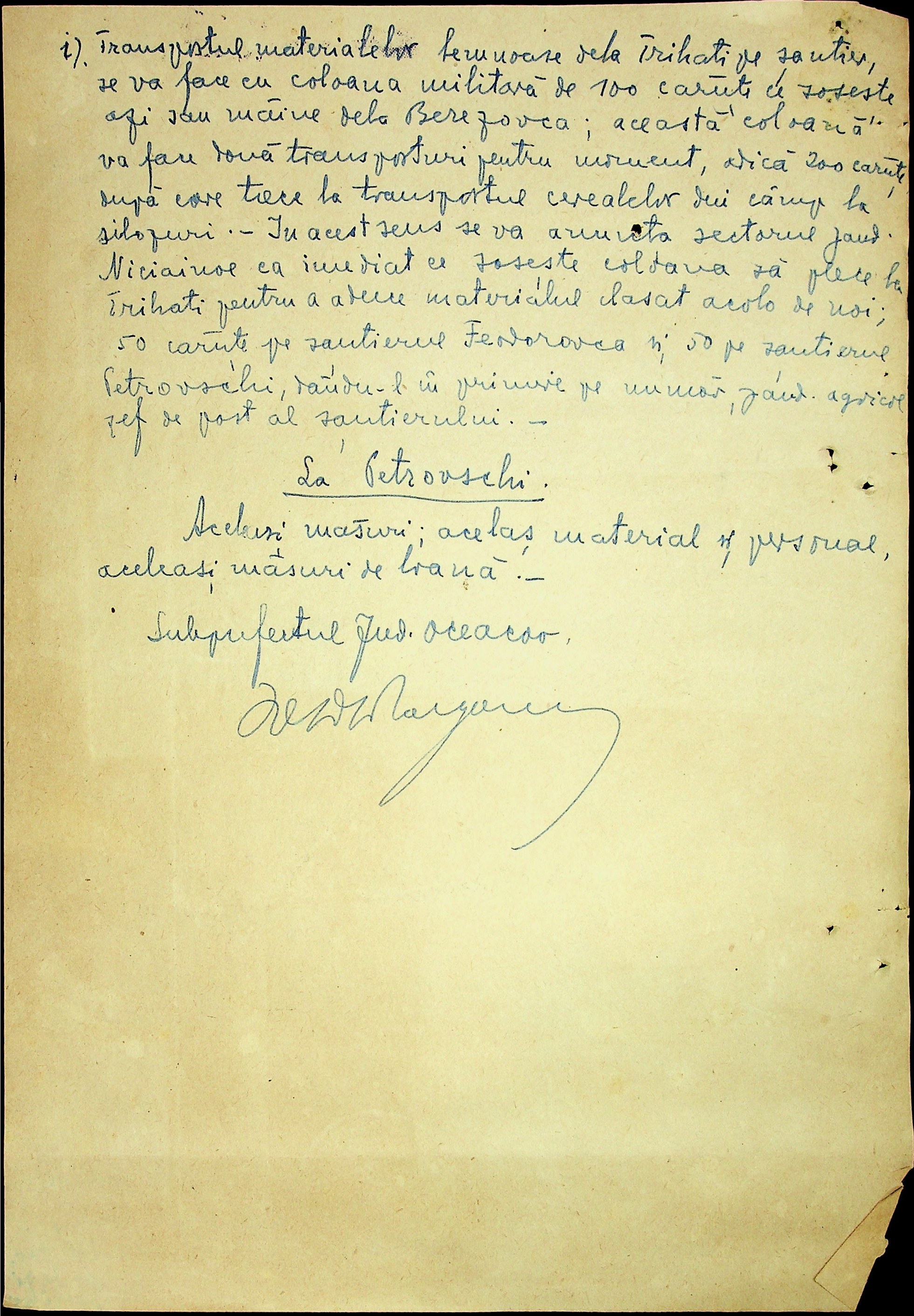 • • • • Справа № 7 “Накази, постанови цивільного губернатора Трансністрії (копії), листування з адміністративним відділом Очаківської префектури про використання місцевих співробітників на роботах під контролем румунської адміністрації, заведення російсько-румунських журналів для реєстрації актів громадянського стану, про надання канцелярського приладдя для сільськогосподарського відділу”