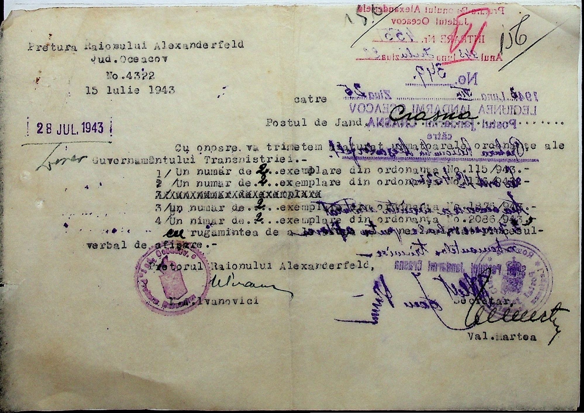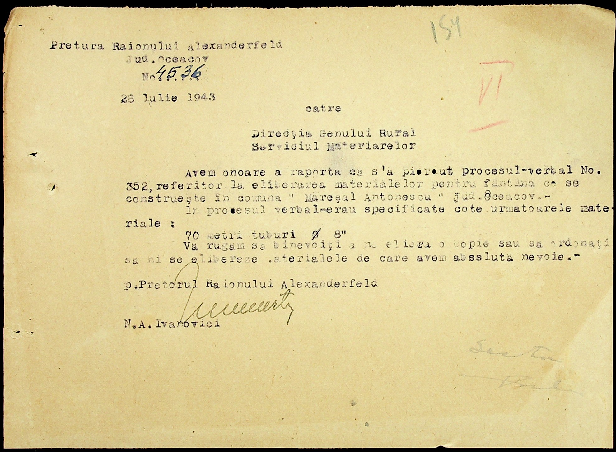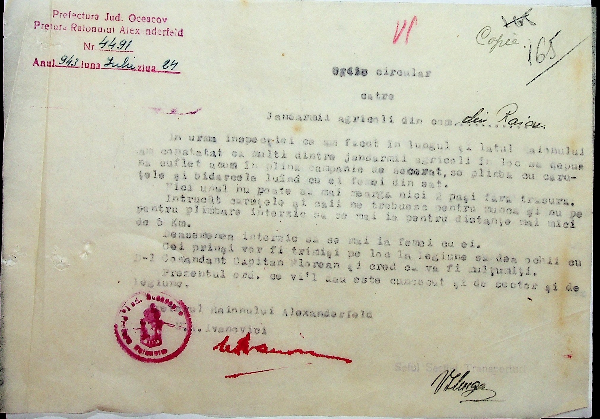 • • • • Справа № 7 “Накази, постанови цивільного губернатора Трансністрії (копії), листування з адміністративним відділом Очаківської префектури про використання місцевих співробітників на роботах під контролем румунської адміністрації, заведення російсько-румунських журналів для реєстрації актів громадянського стану, про надання канцелярського приладдя для сільськогосподарського відділу”