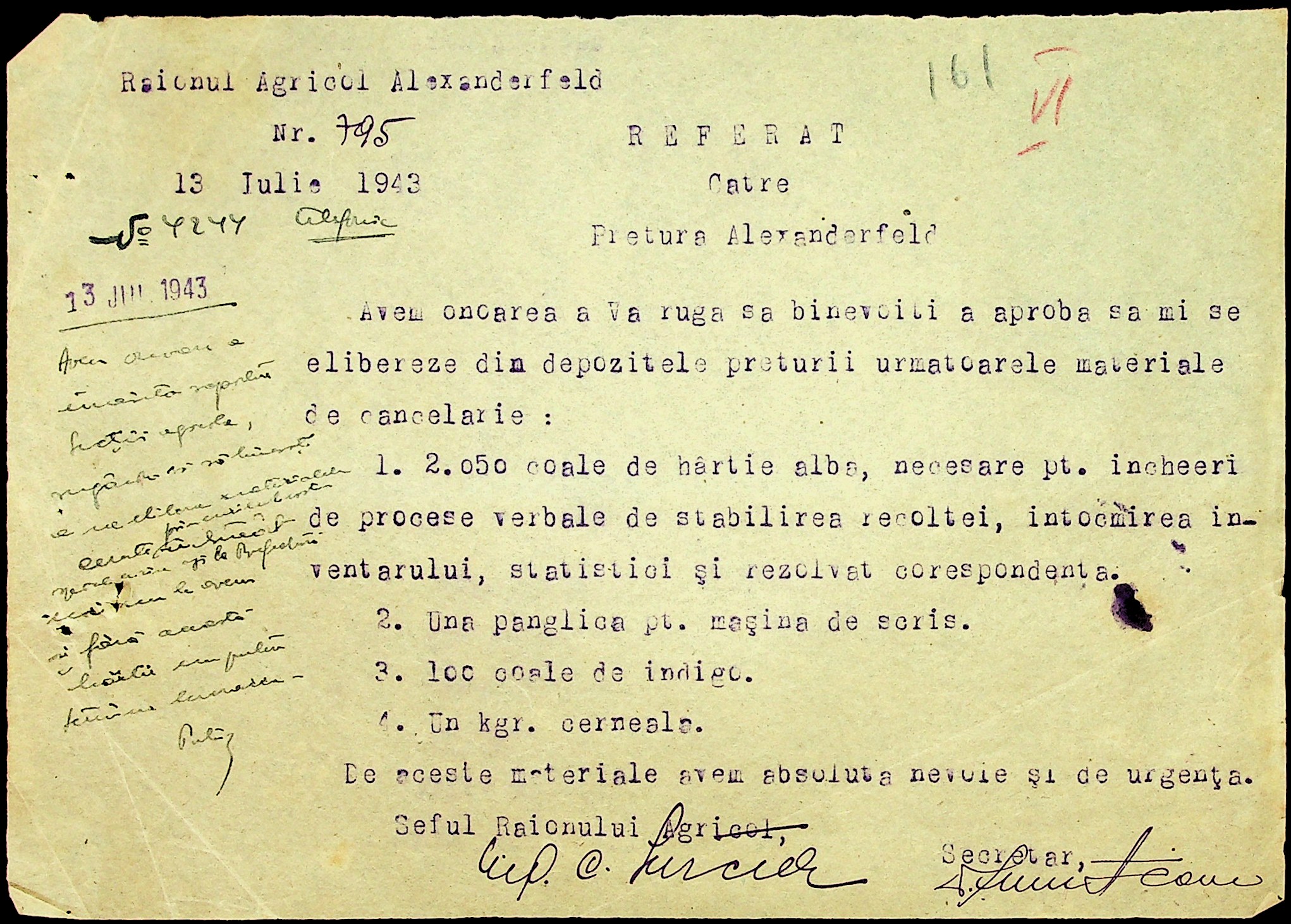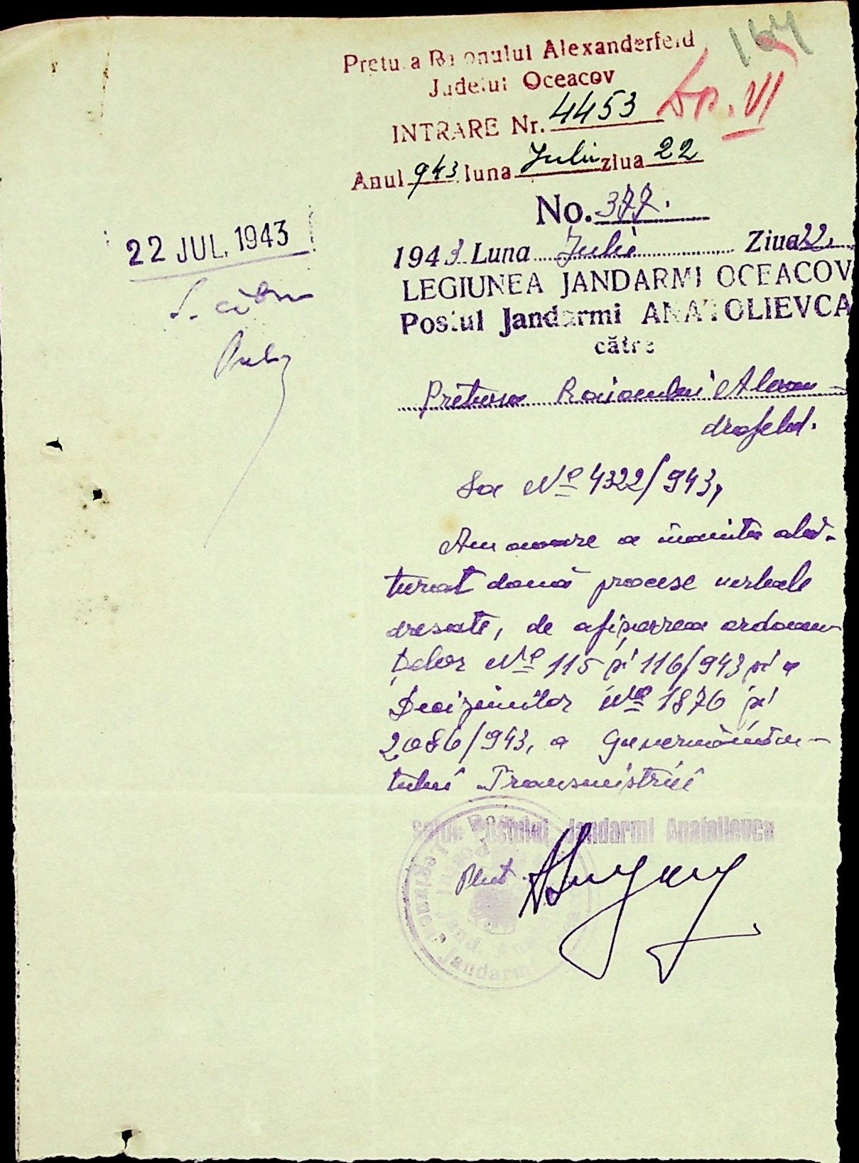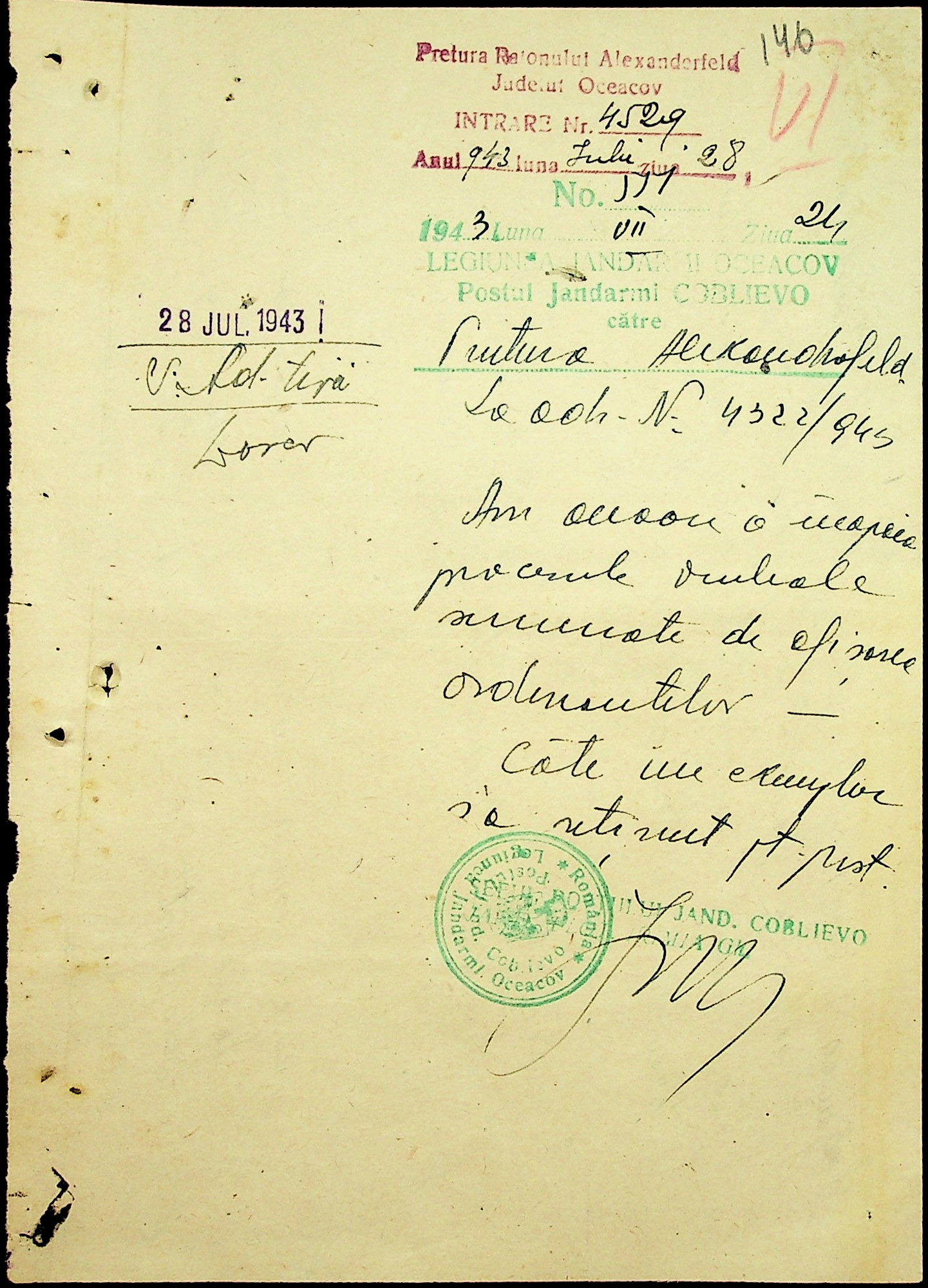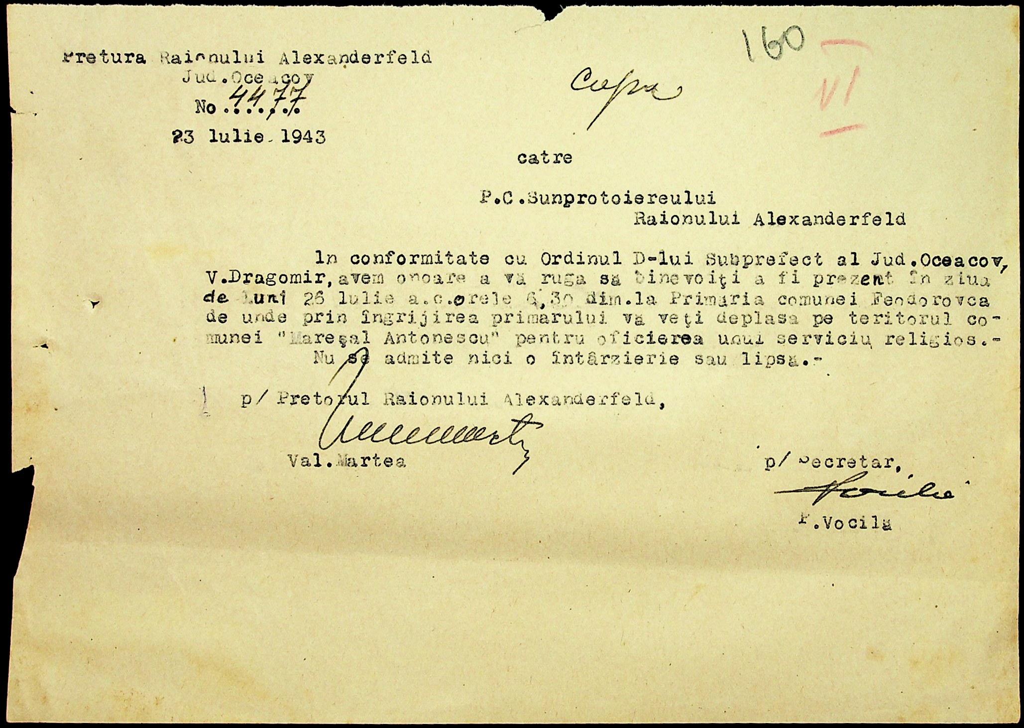 • • • • Справа № 7 “Накази, постанови цивільного губернатора Трансністрії (копії), листування з адміністративним відділом Очаківської префектури про використання місцевих співробітників на роботах під контролем румунської адміністрації, заведення російсько-румунських журналів для реєстрації актів громадянського стану, про надання канцелярського приладдя для сільськогосподарського відділу”