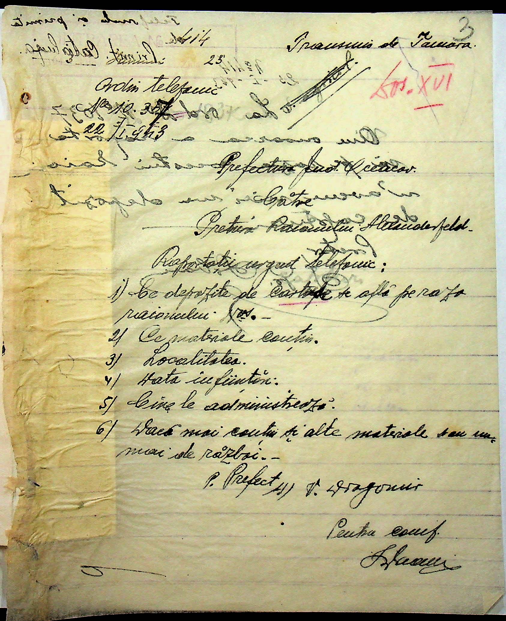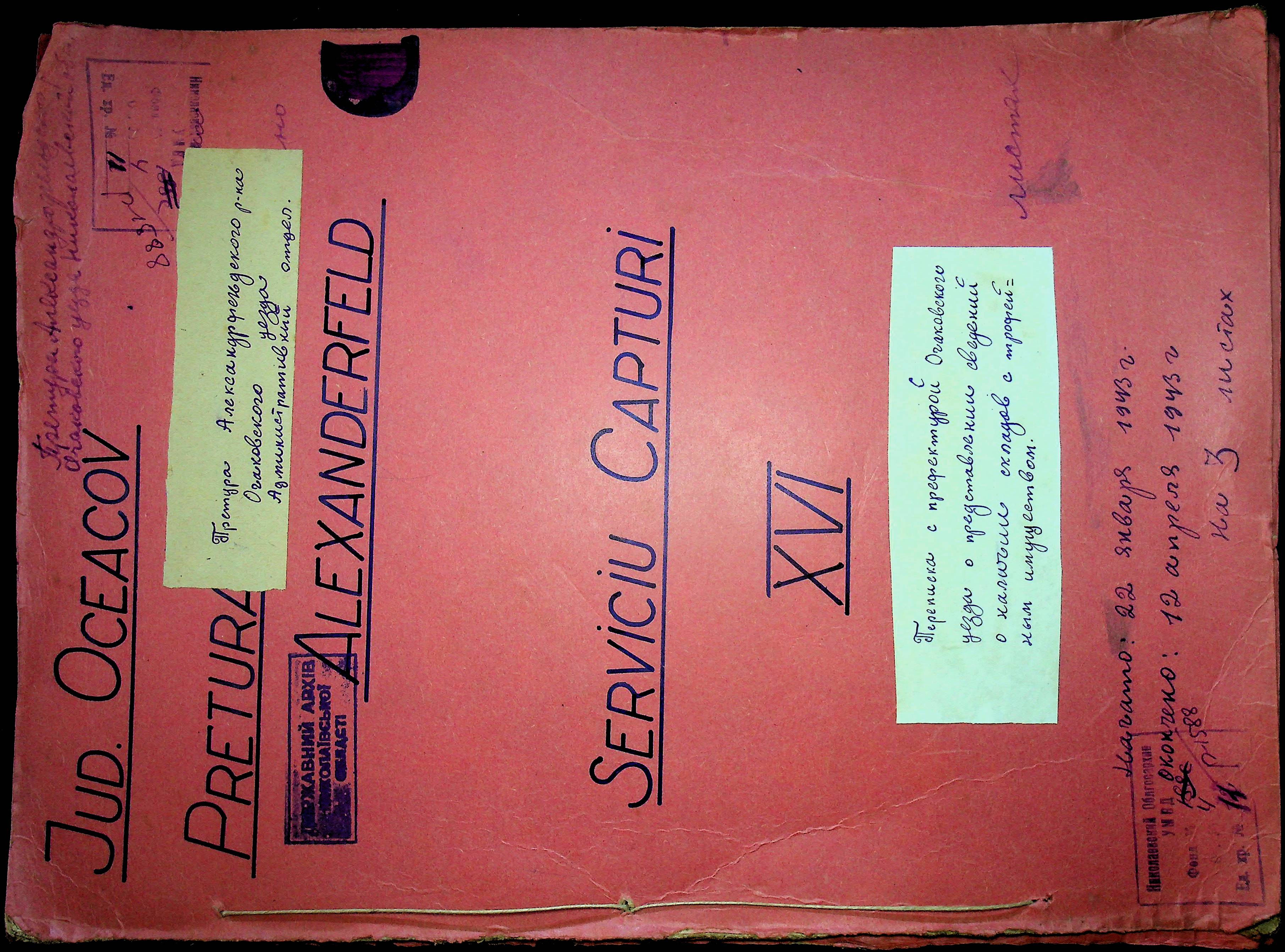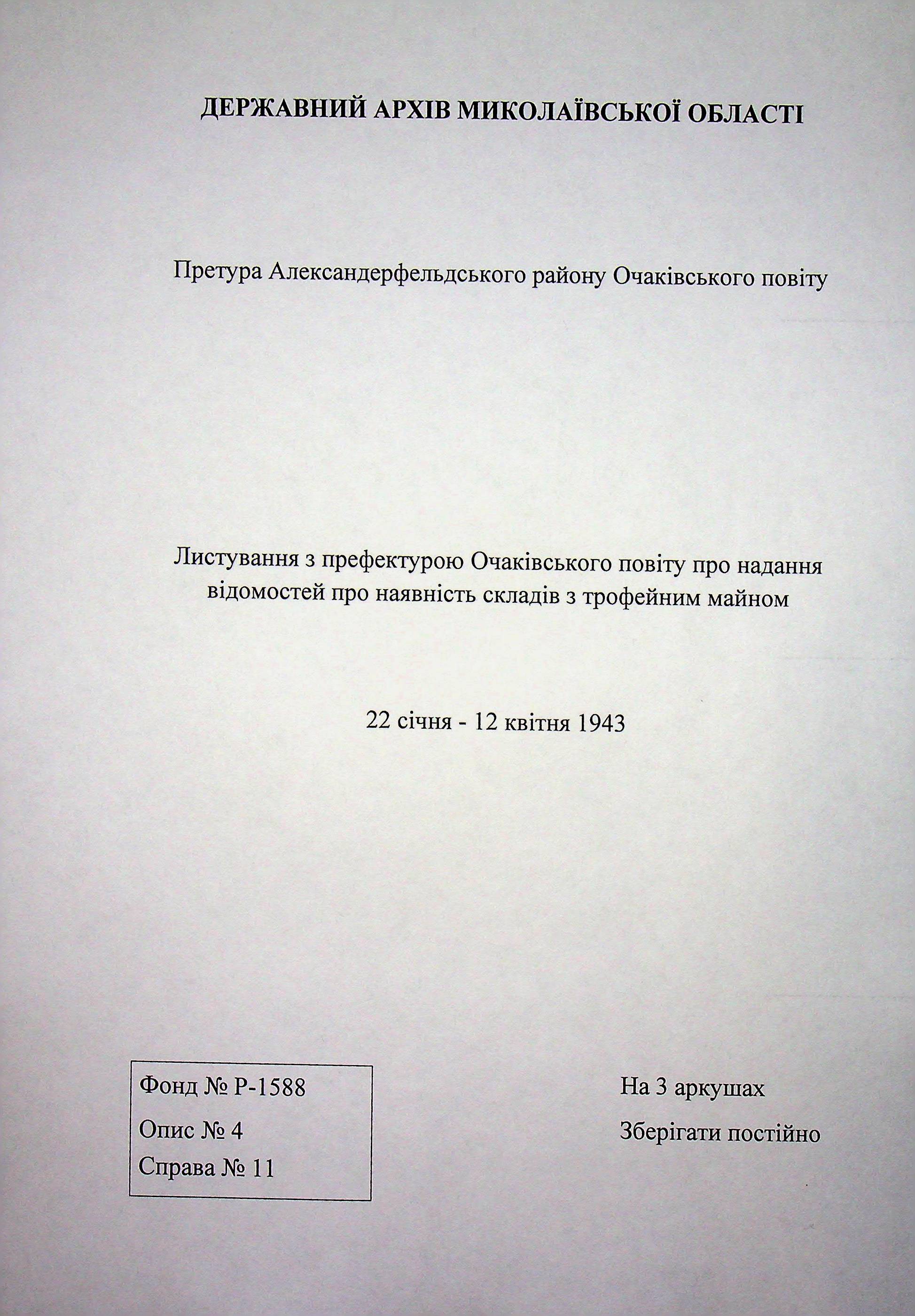 • • • • Справа № 11 “Листування з префектурою Очаківського повіту про надання відомостей про наявність складів з трофейним майном”