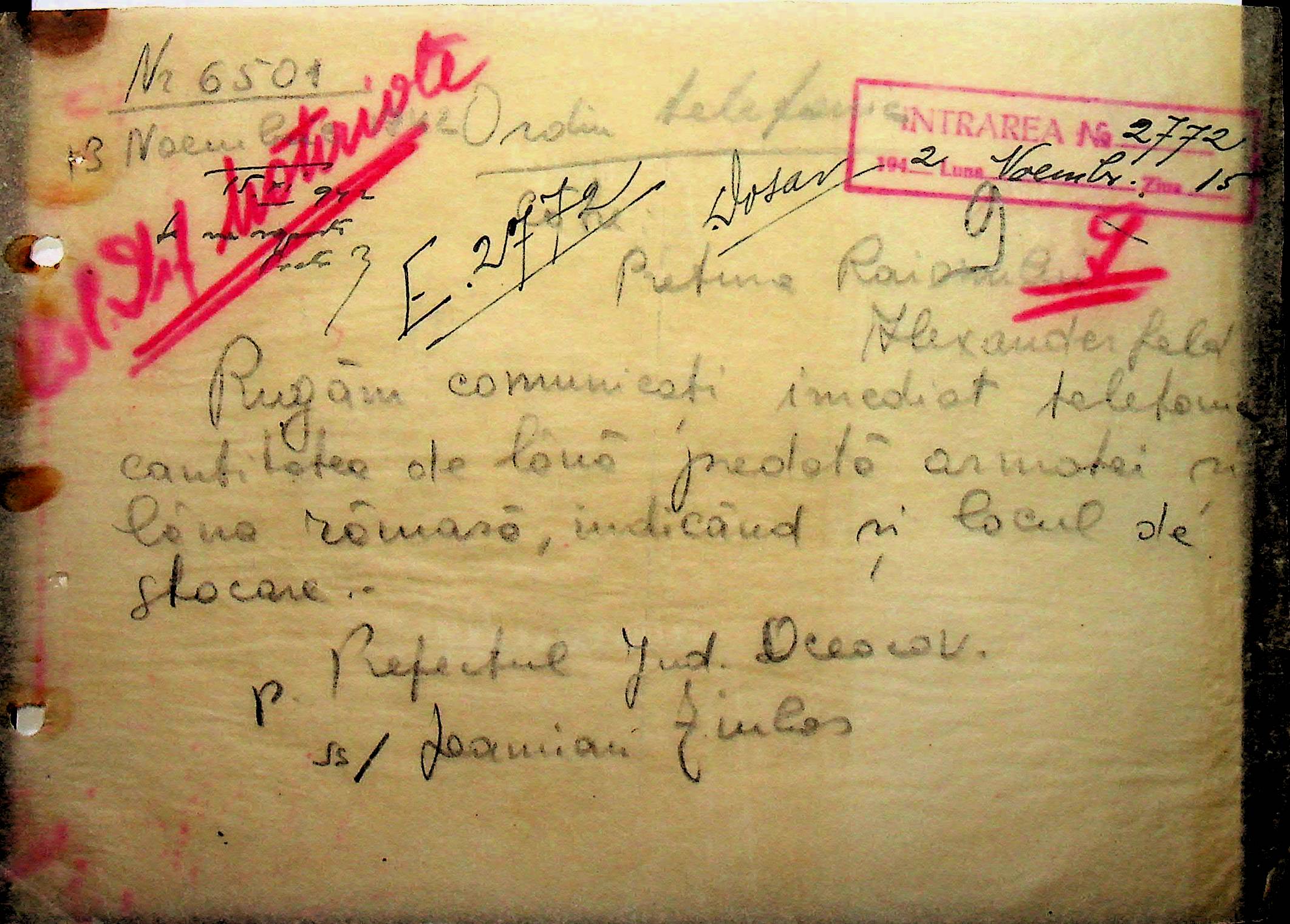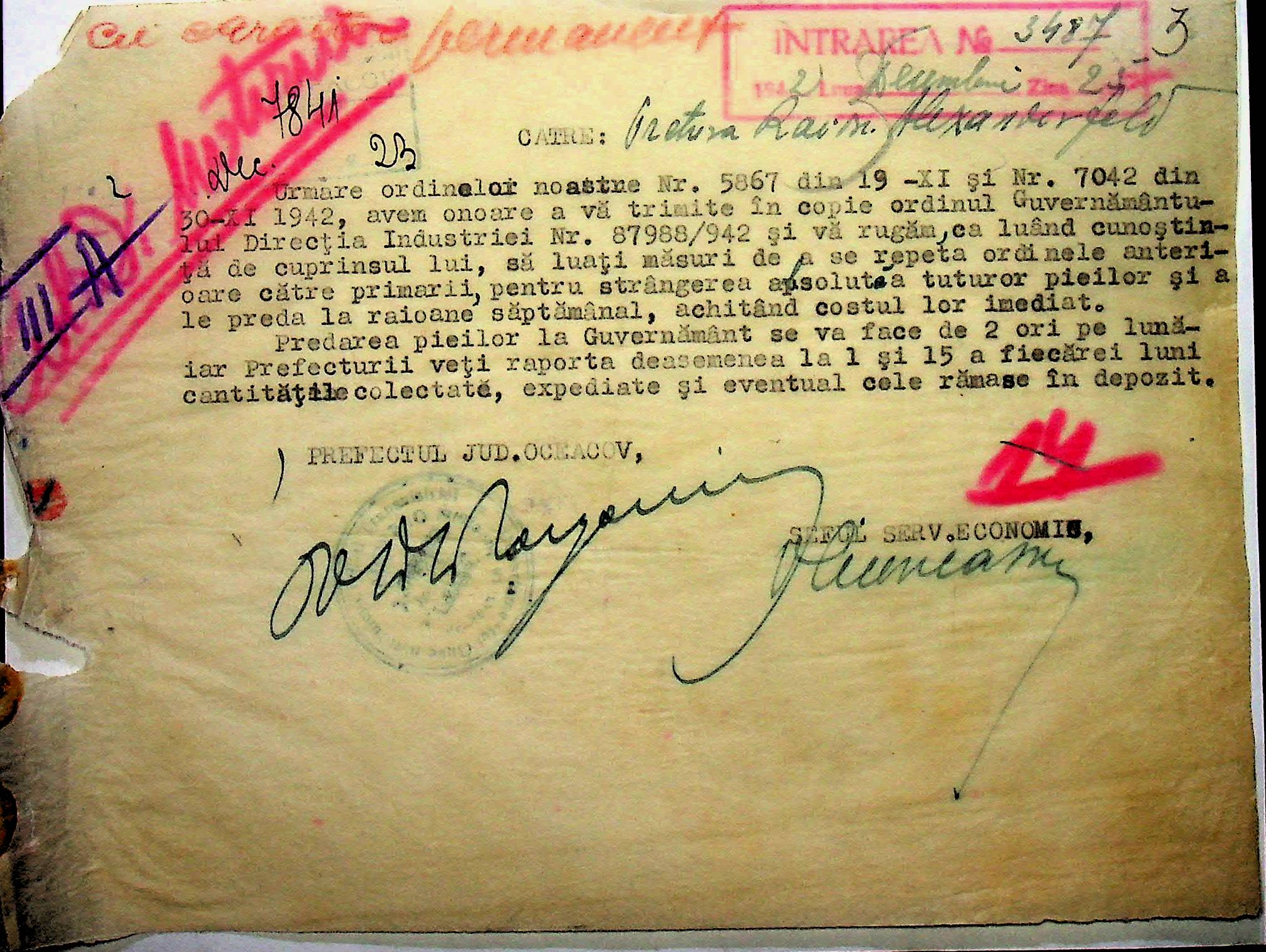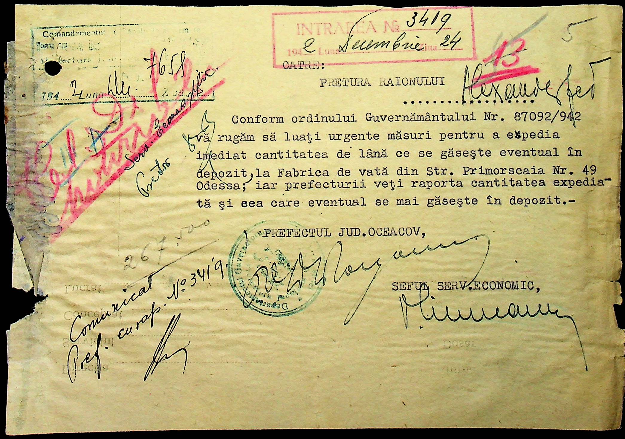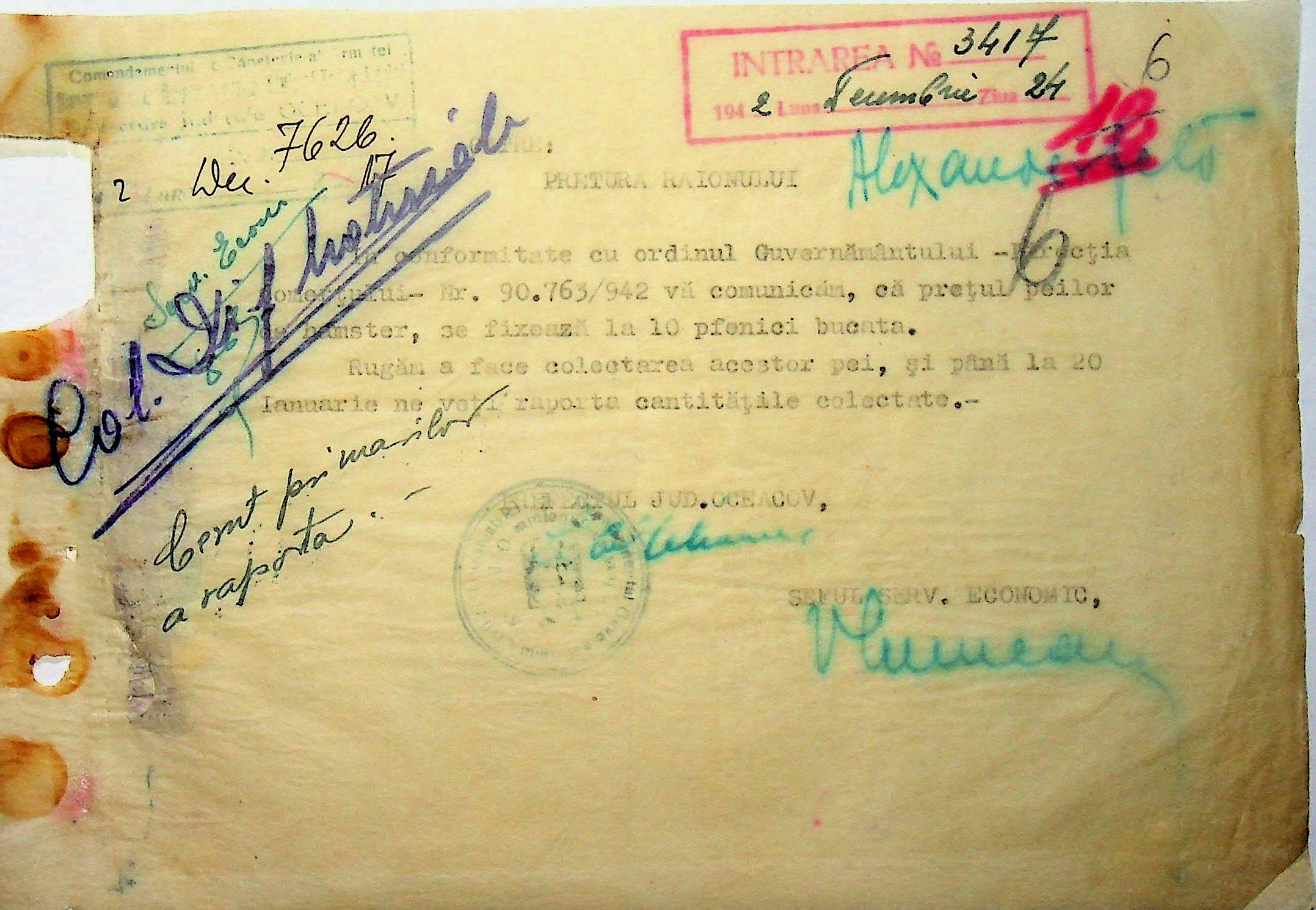 • • • • Справа № 14 “Наказ цивільного губернатора Трансністрії (копія) про бронювання тваринного жиру на бійнях. Листування з префектурою Очаківського повіту про відправку шкір тварин до м. Одеса”