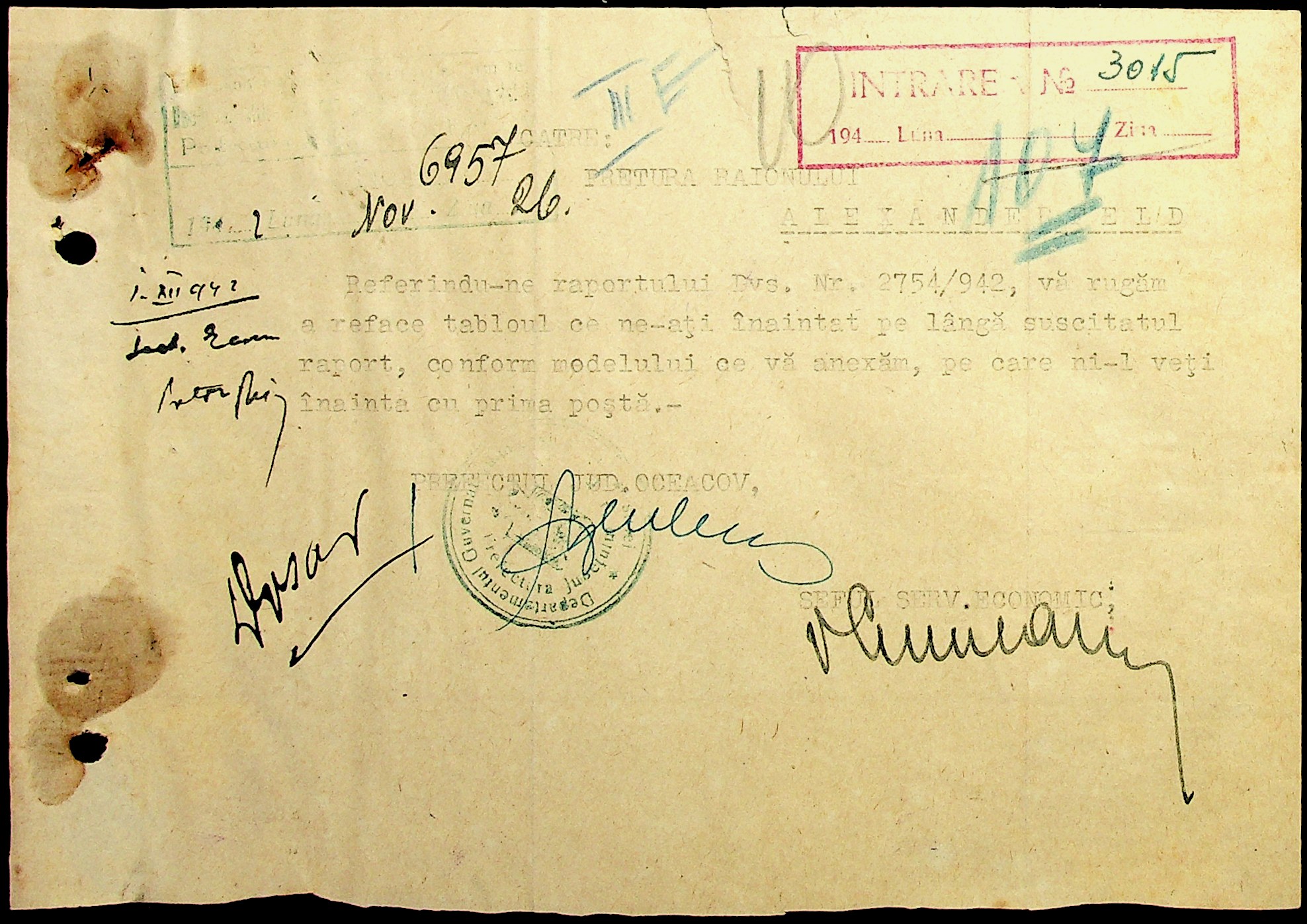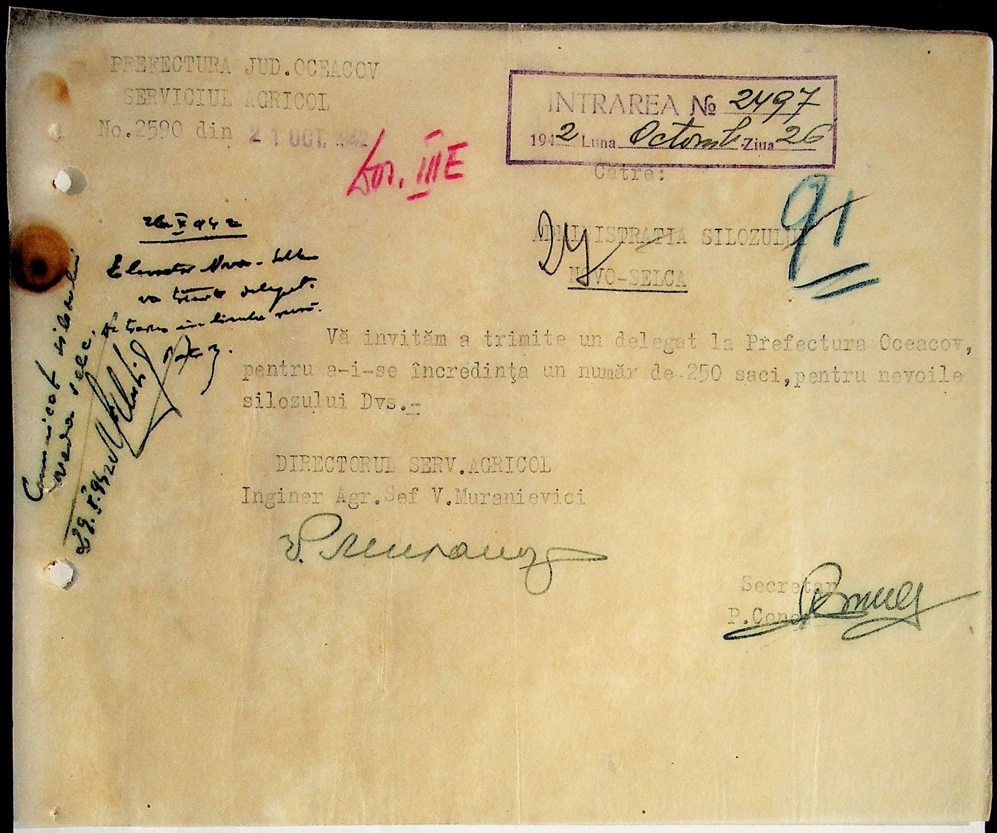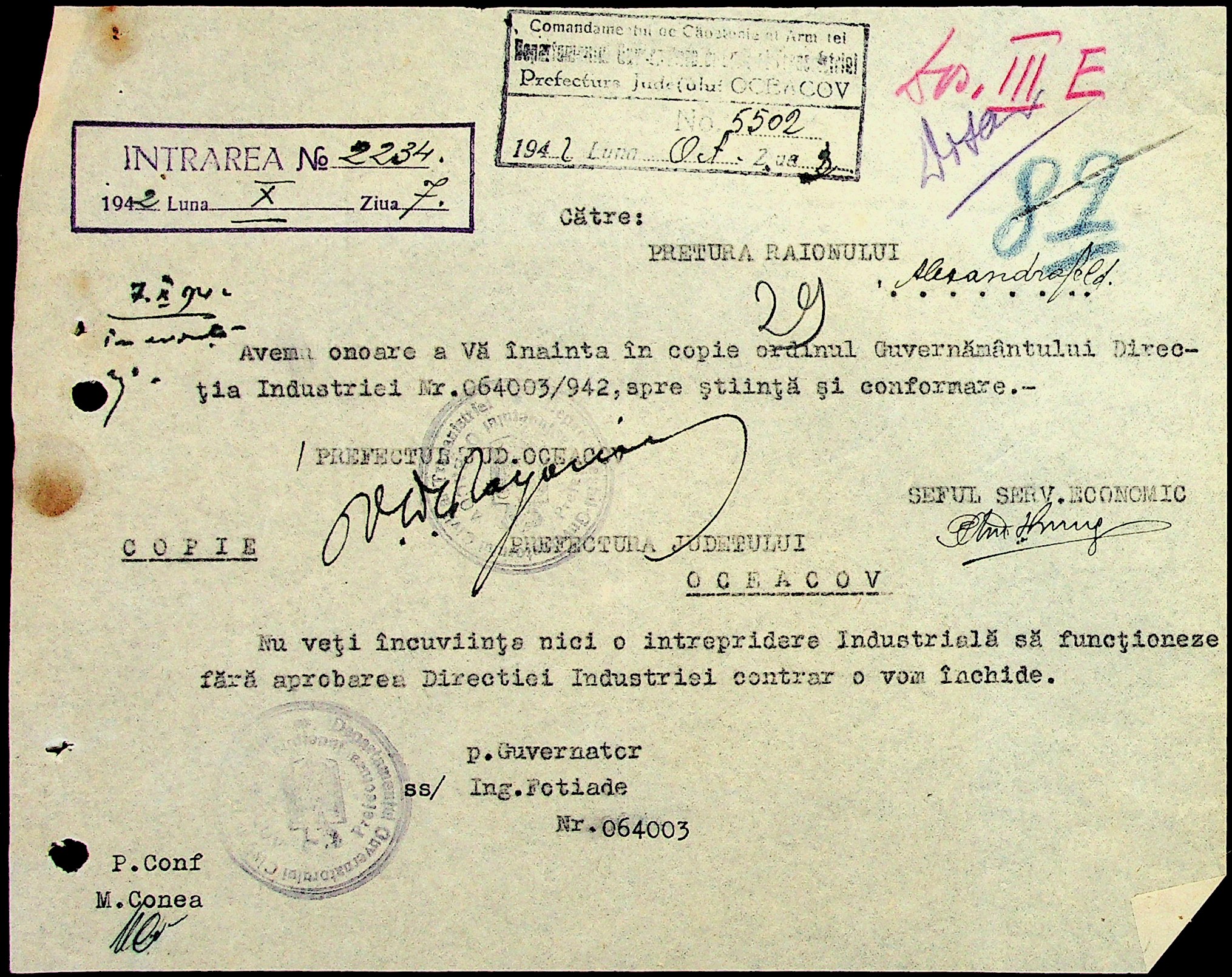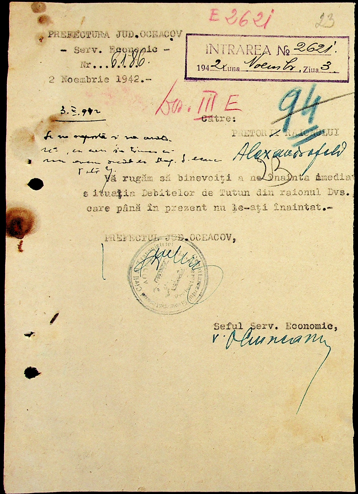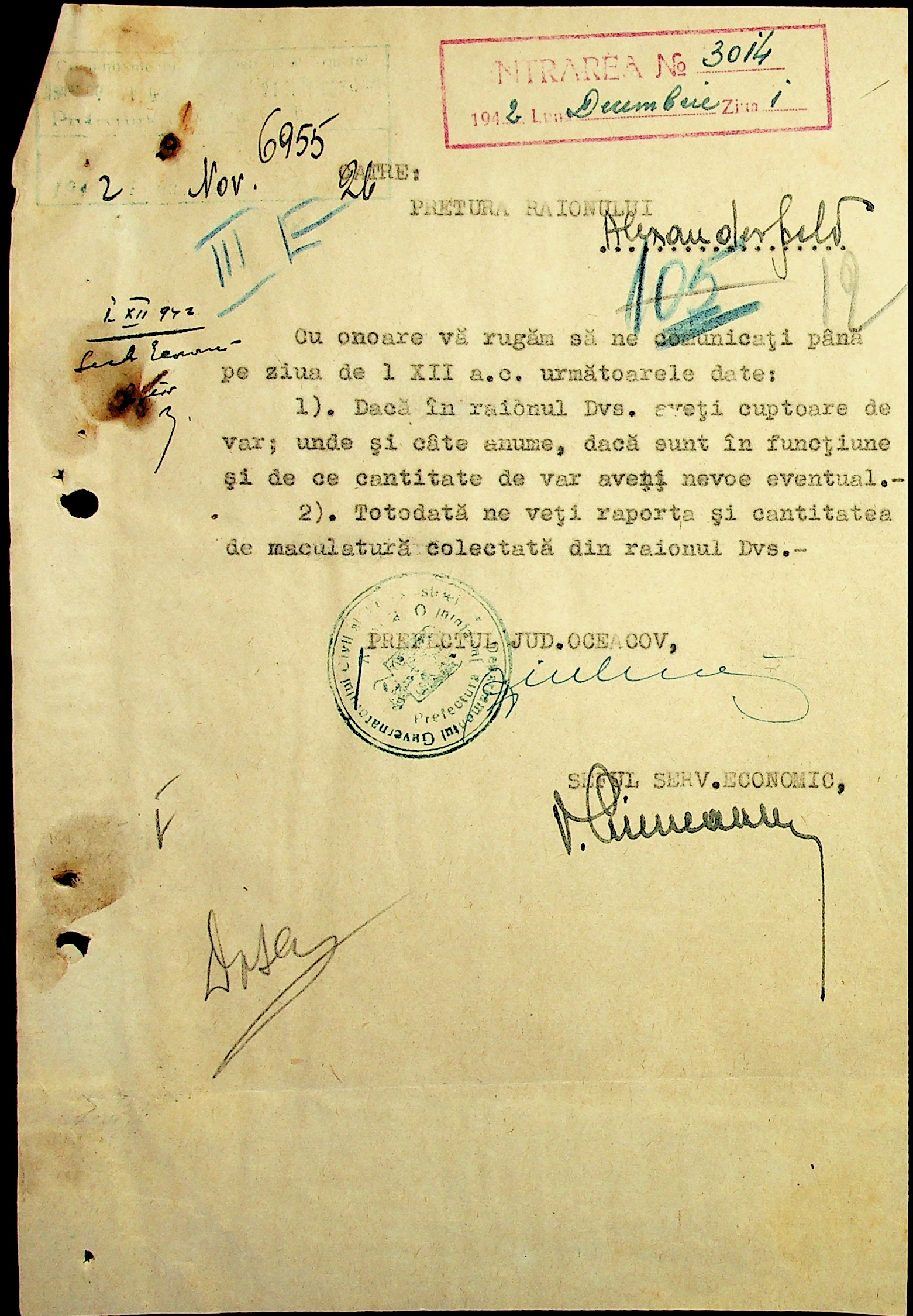 • • • • Справа № 15 “Накази, постанови цивільного губернатора Трансністрії (копії) про порядок помелу пшениці та ячменю. Листування з префектурою Очаківського повіту щодо складання відомостей про наявність підприємств в районі та продаж цукру населенню”