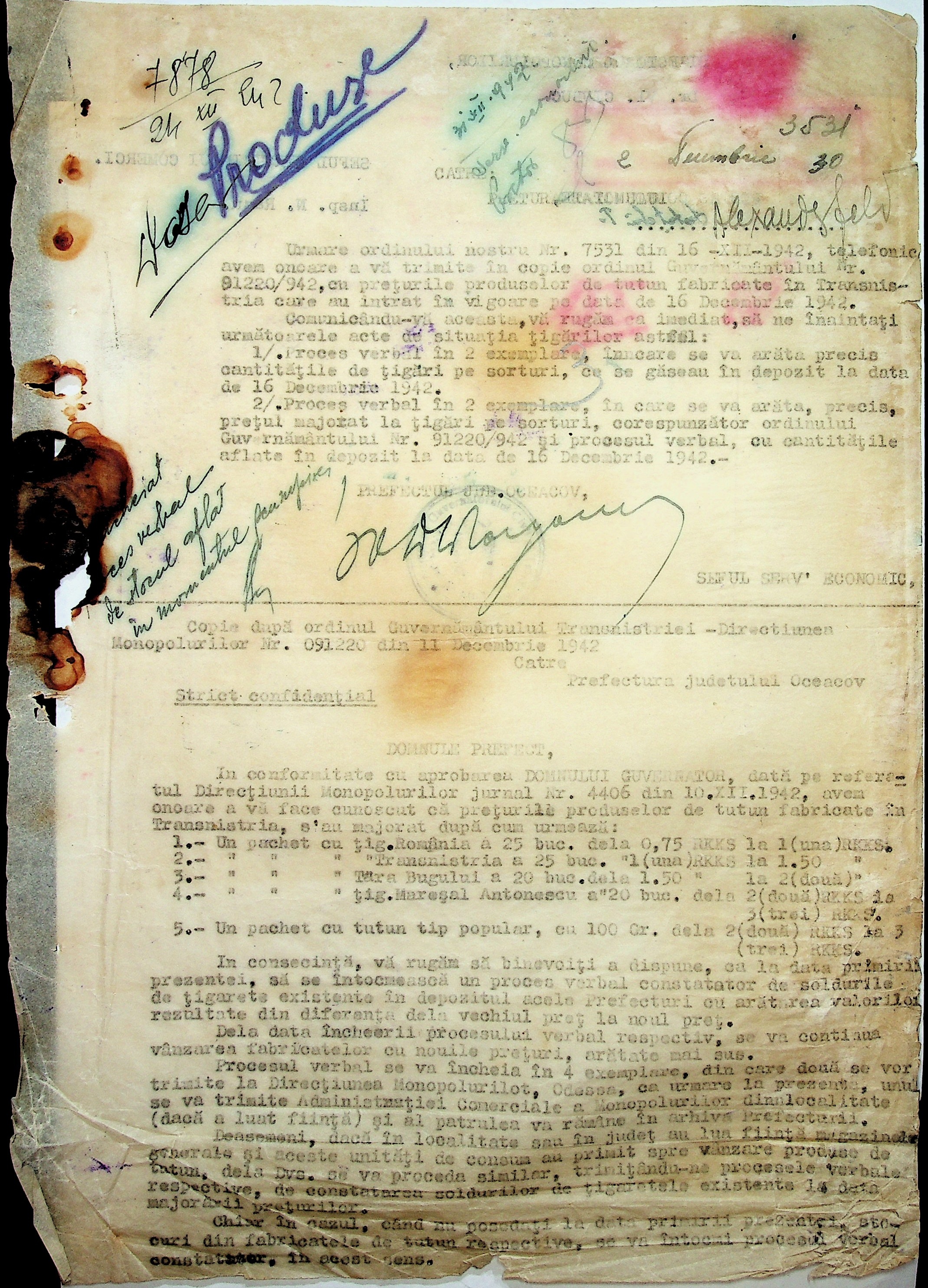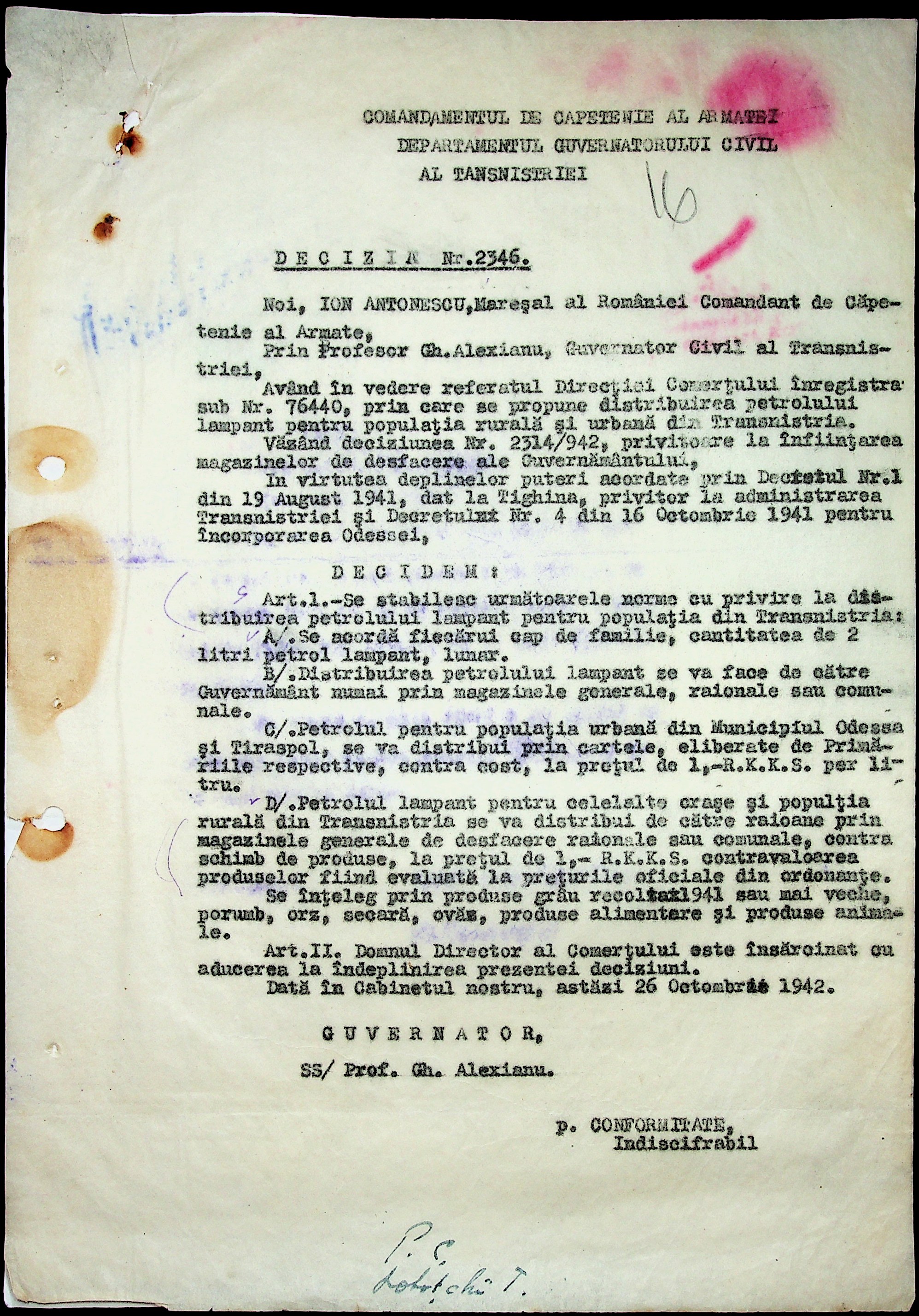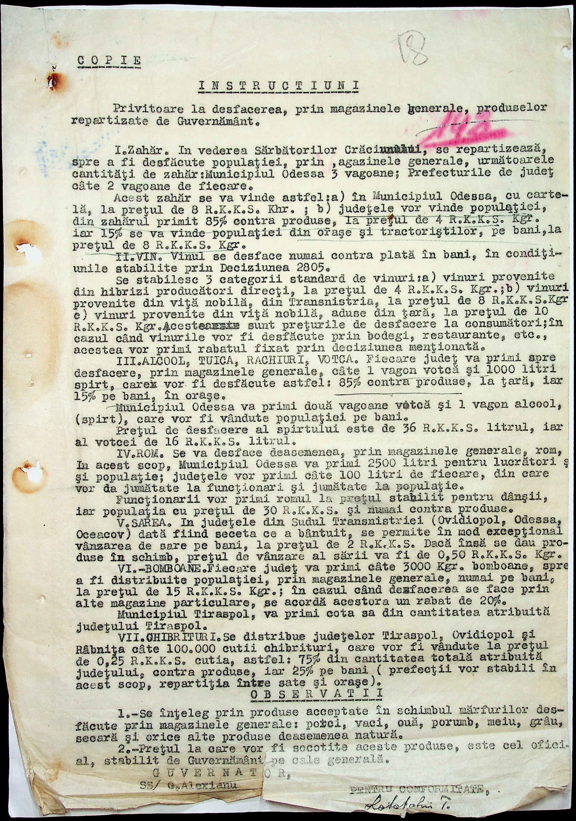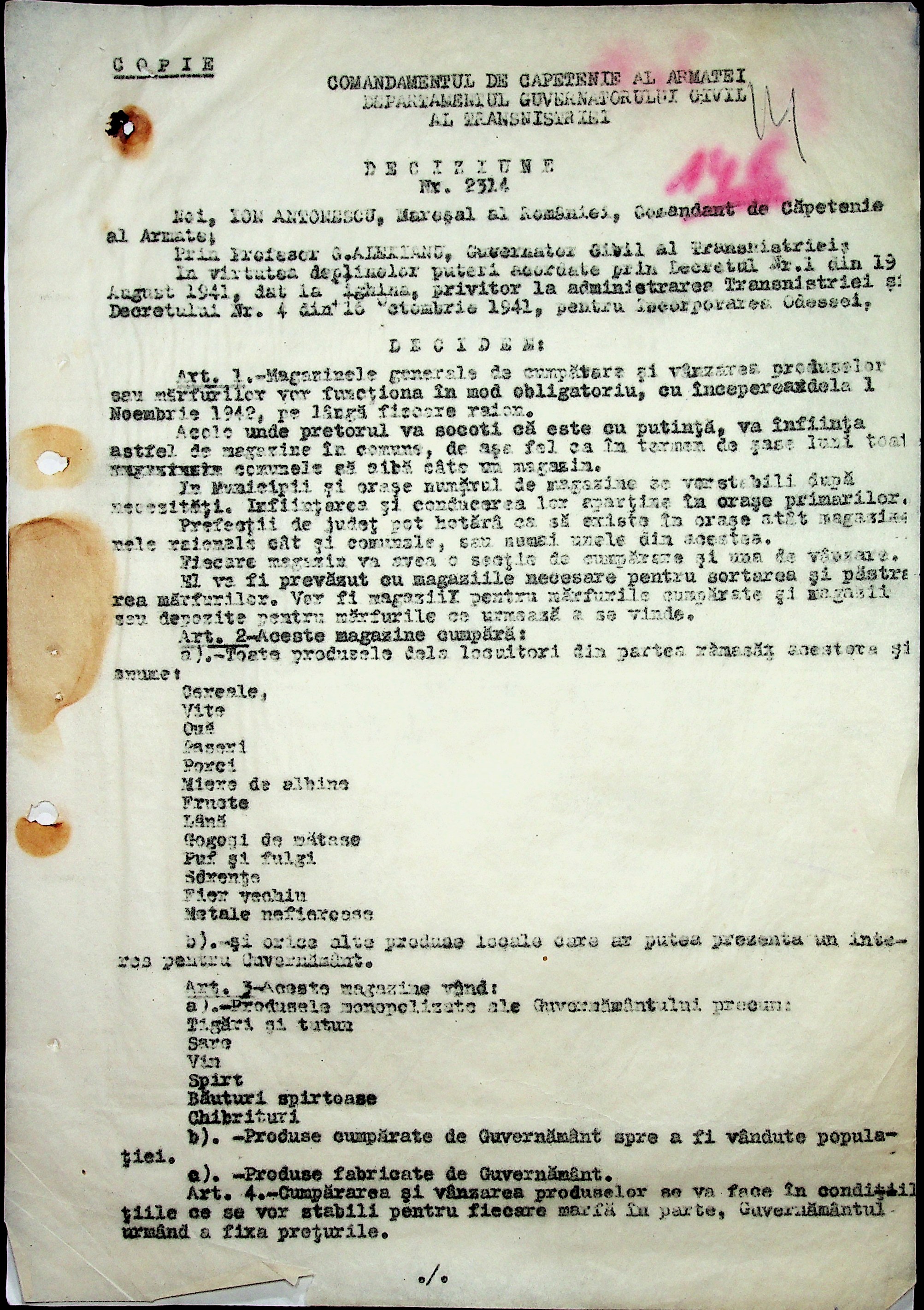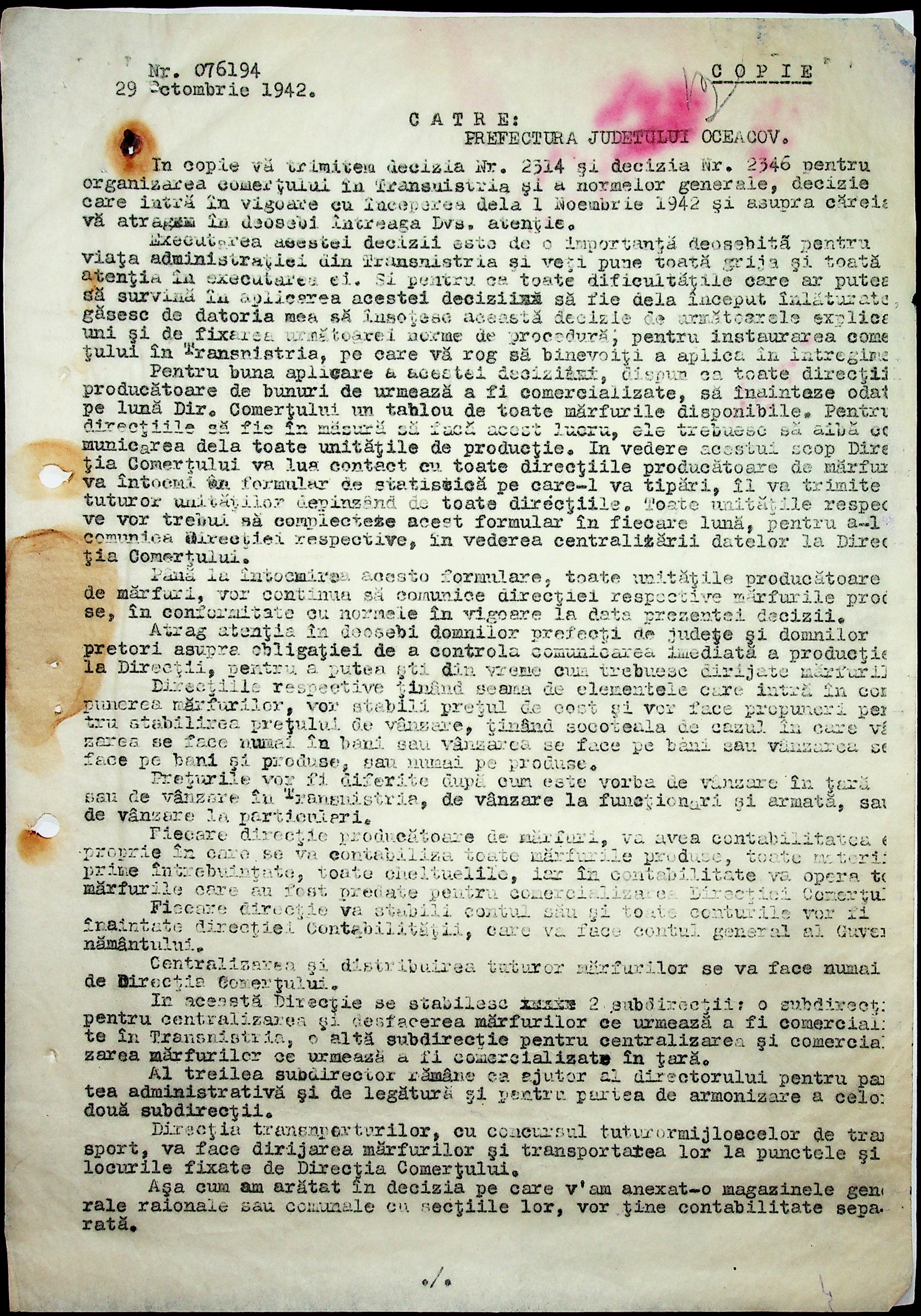 • • • • Справа № 19 “Постанови, інструкції цивільного губернатора Трансністрії (копії) про організацію у кожному районі центрального магазину, встановлення норми гасу для населення. Відомості про рух товарів по району”
