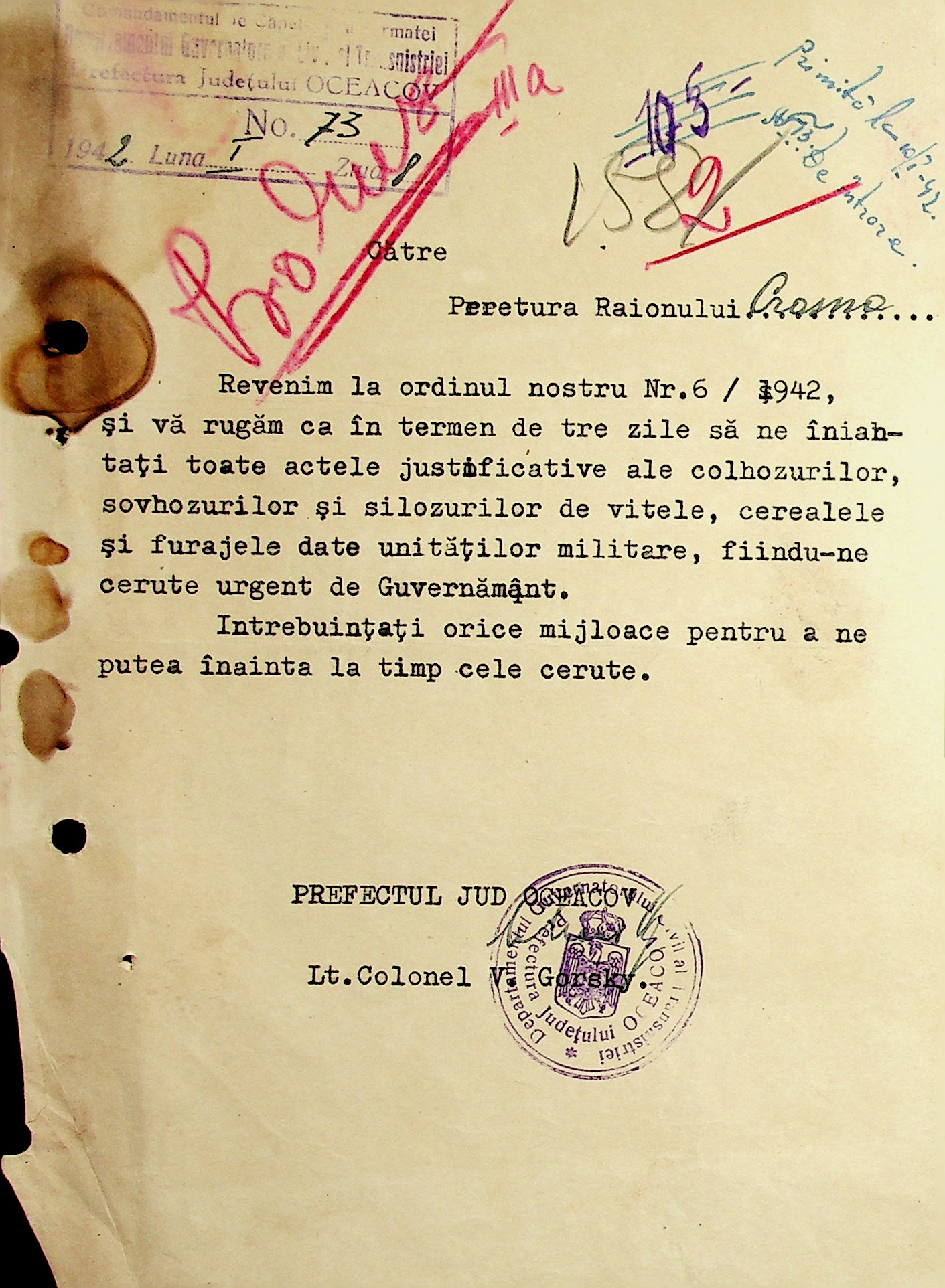 • • • • Справа № 19 “Постанови, інструкції цивільного губернатора Трансністрії (копії) про організацію у кожному районі центрального магазину, встановлення норми гасу для населення. Відомості про рух товарів по району”