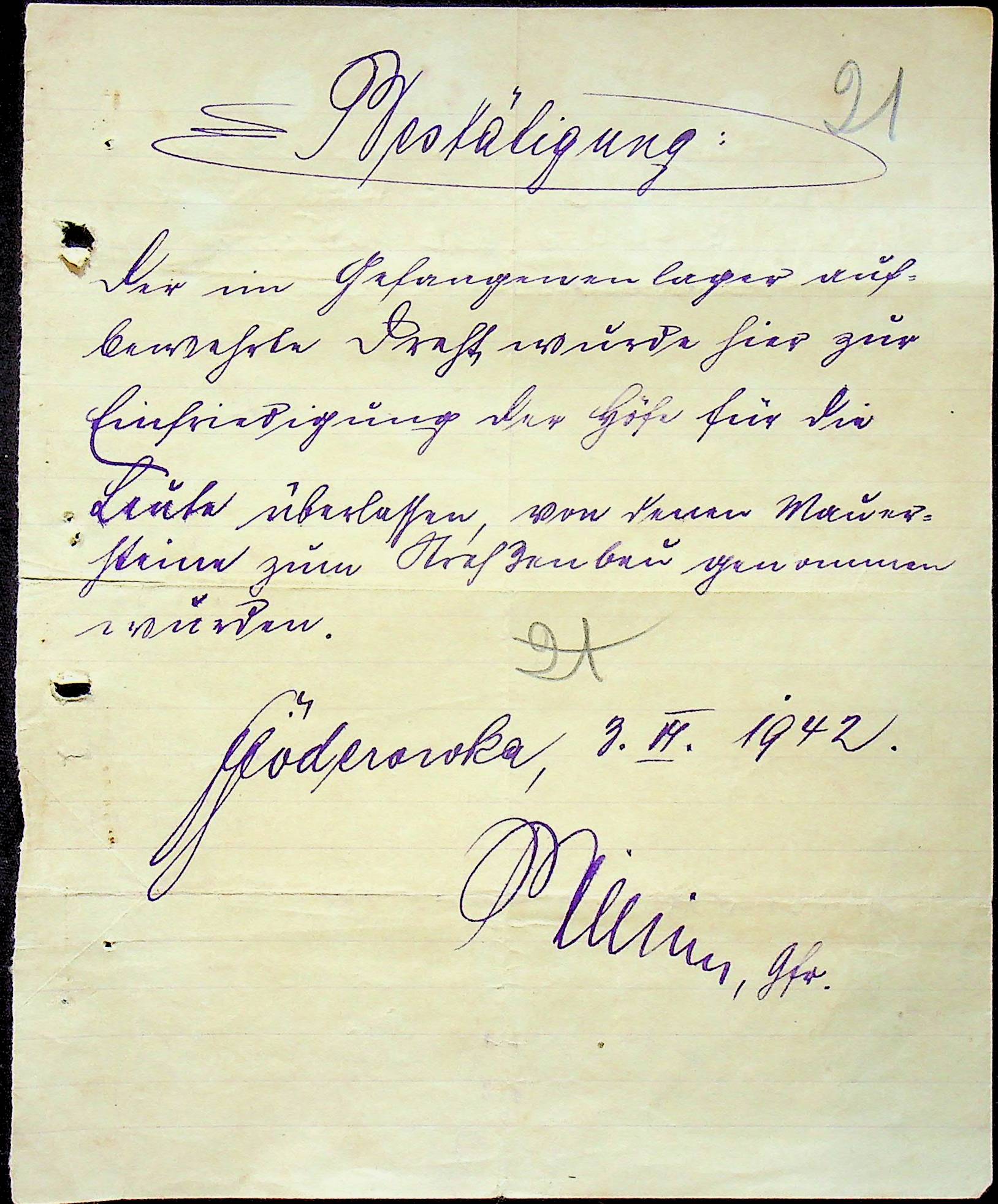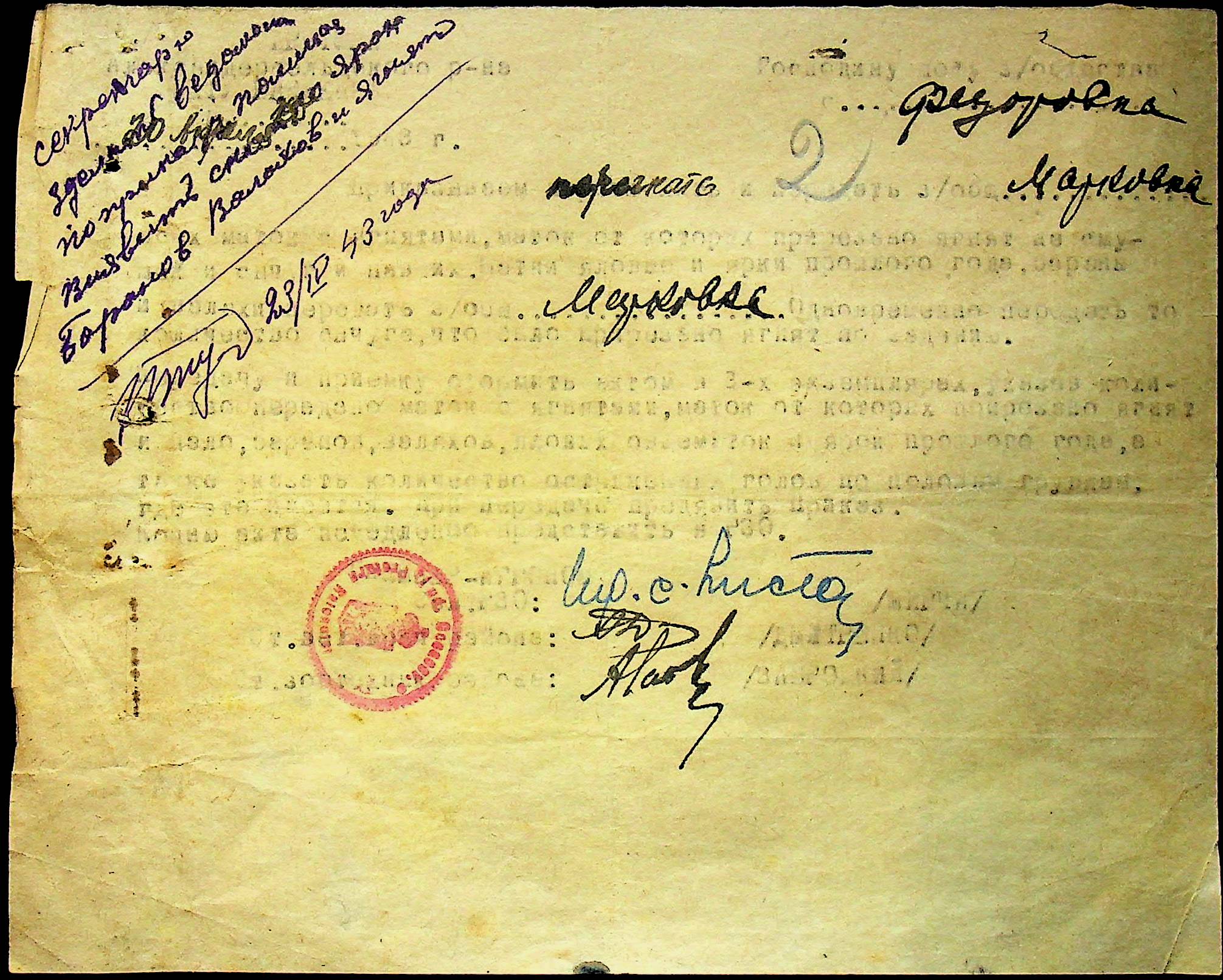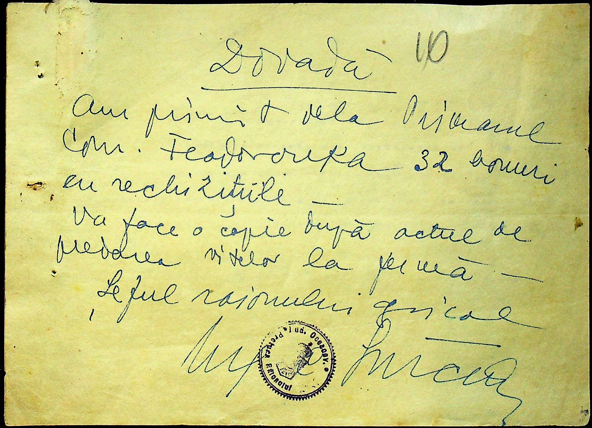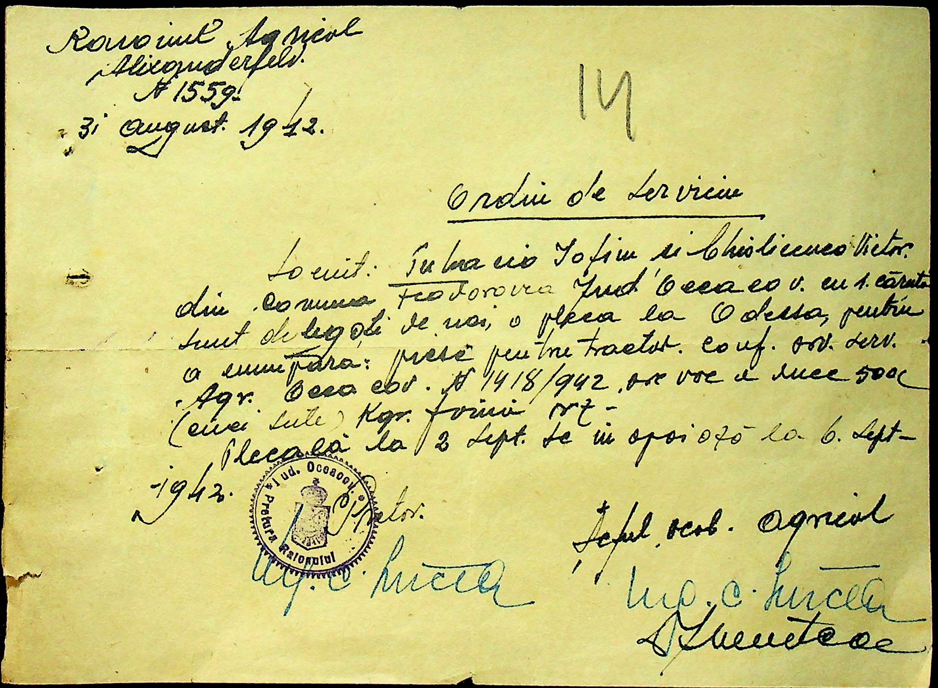 • • • • Справа № 22 “Листування зі старостами про відправку 10 підвод для транспортування зерна військовим частинам, відпуск молока телефоністам 82 компанії. Приписи на відрядження, видані робітникам та службовцям Александерфельдської претури”