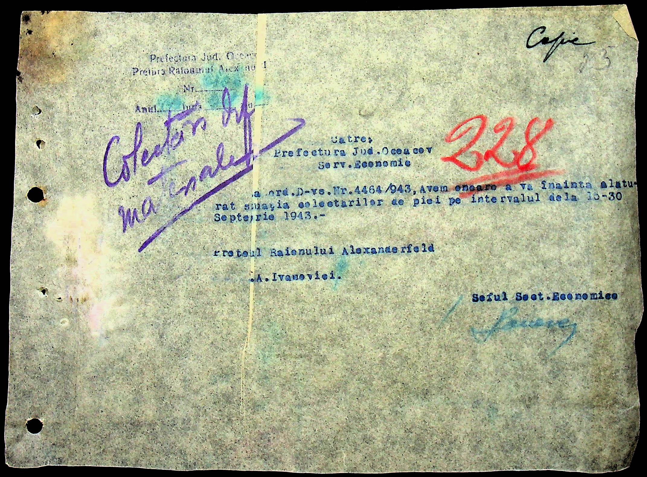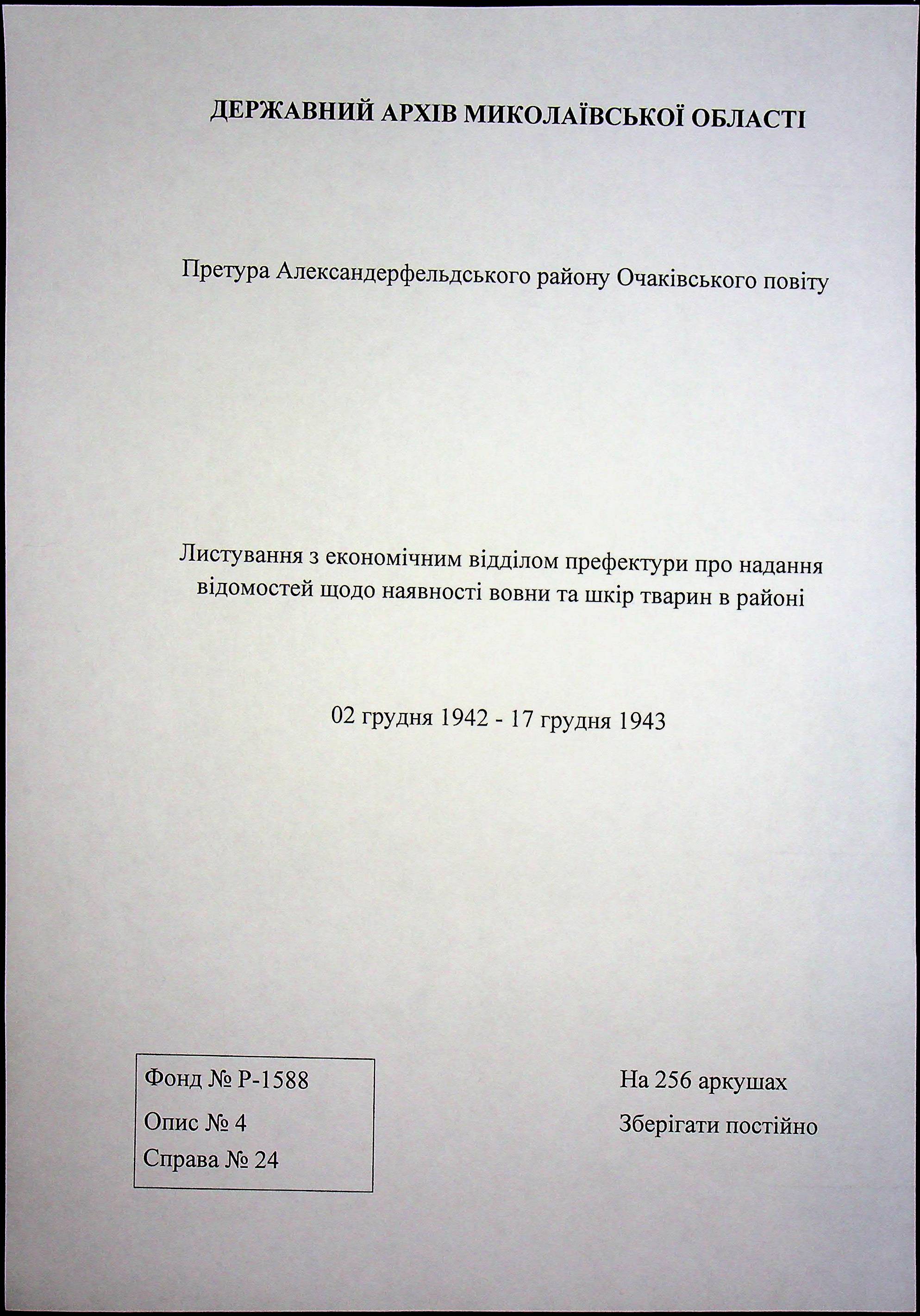 • • • • Справа № 24 “Листування з економічним відділом префектури про надання відомостей щодо наявності вовни та шкір тварин в районі”