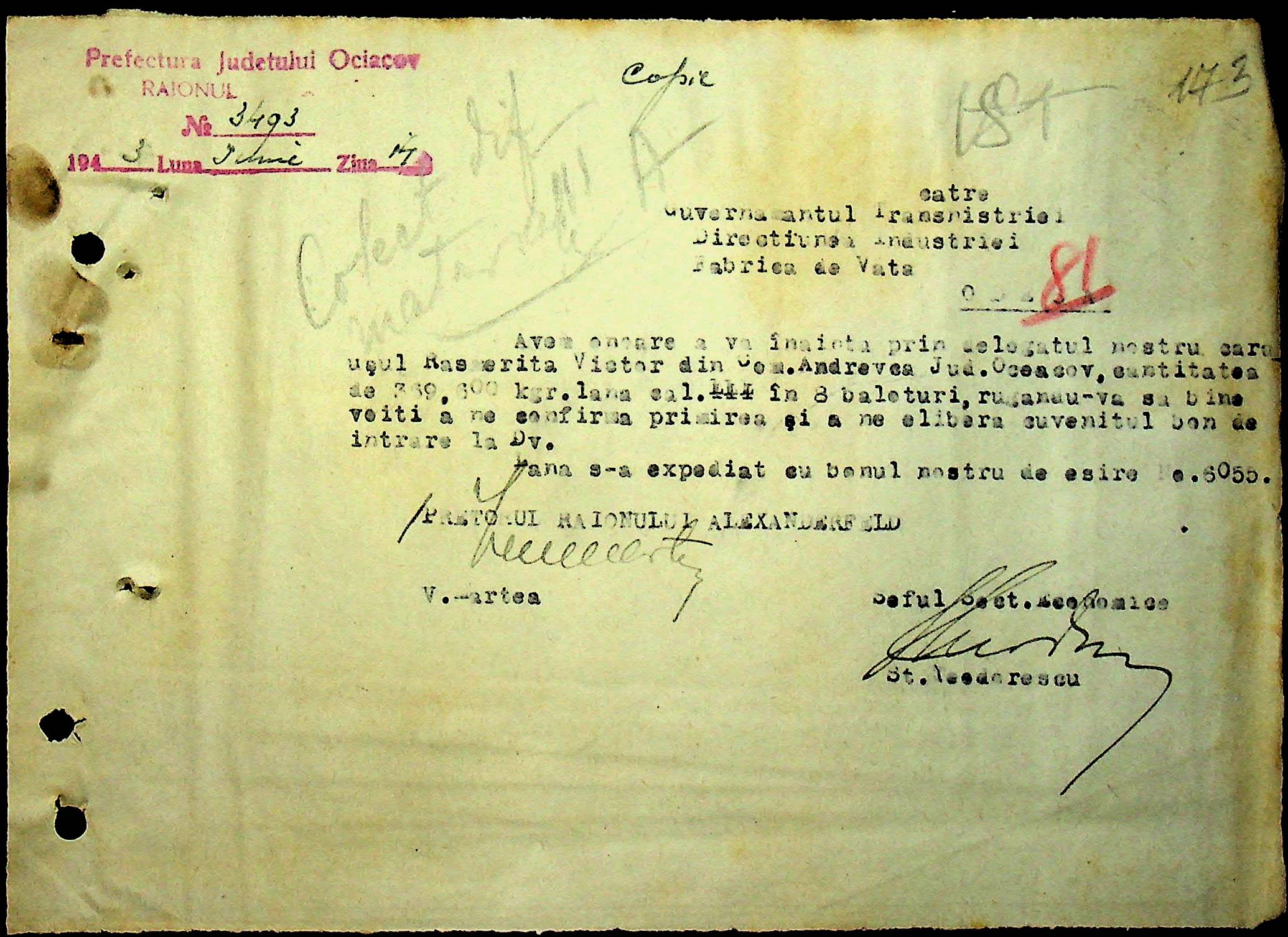 • • • • Справа № 24 “Листування з економічним відділом префектури про надання відомостей щодо наявності вовни та шкір тварин в районі”