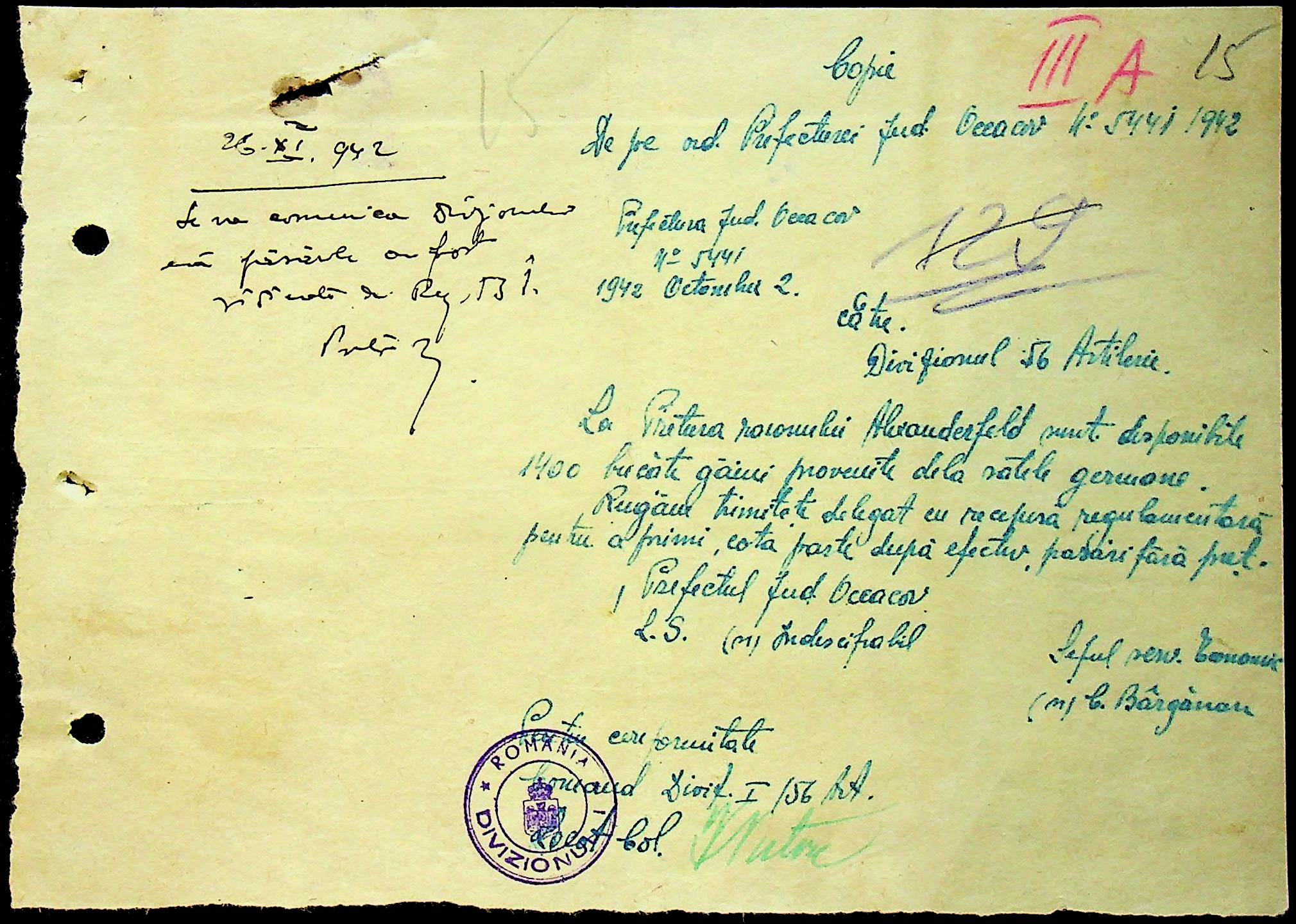• • • • Справа № 25 “Листування з економічним відділом Очаківської префектури про відпуск продуктів для військових частин та офіцерських їдалень, обов’язкову здачу молока на молочні пункти Александерфельдського району”