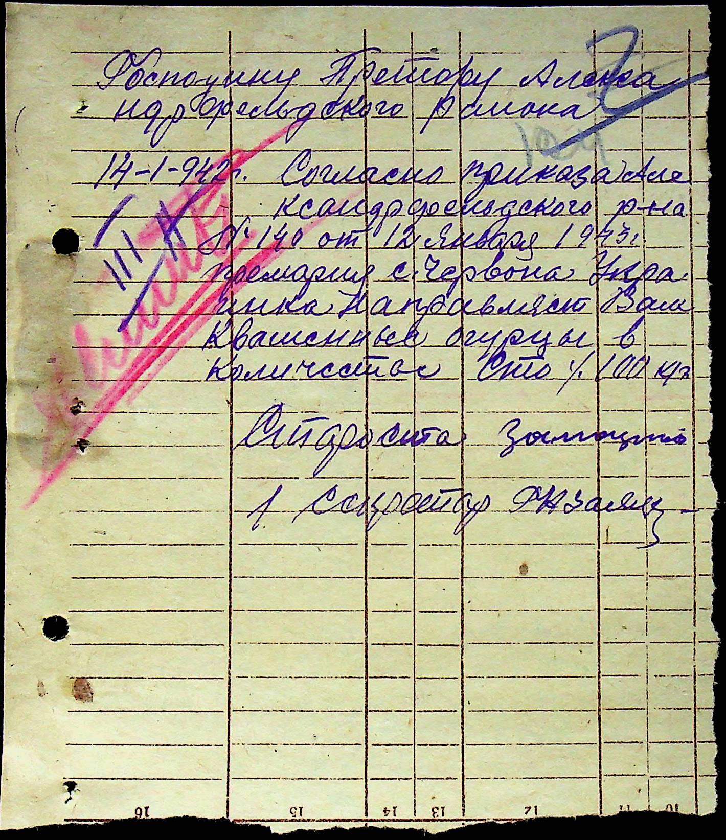 • • • • Справа № 25 “Листування з економічним відділом Очаківської префектури про відпуск продуктів для військових частин та офіцерських їдалень, обов’язкову здачу молока на молочні пункти Александерфельдського району”