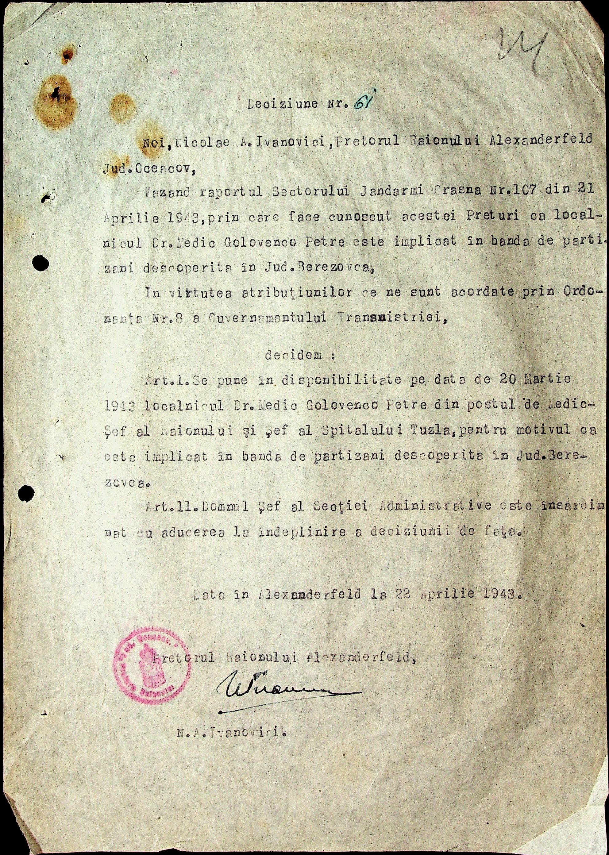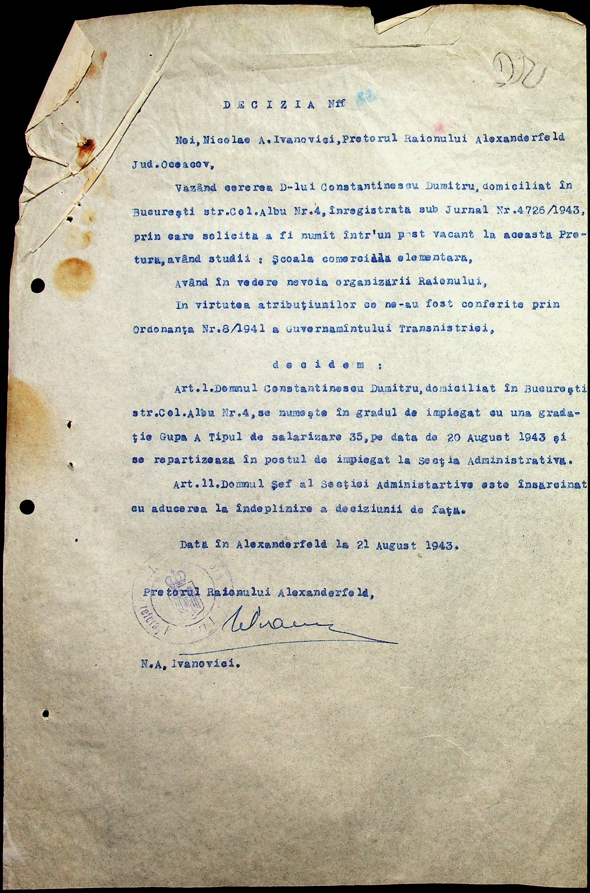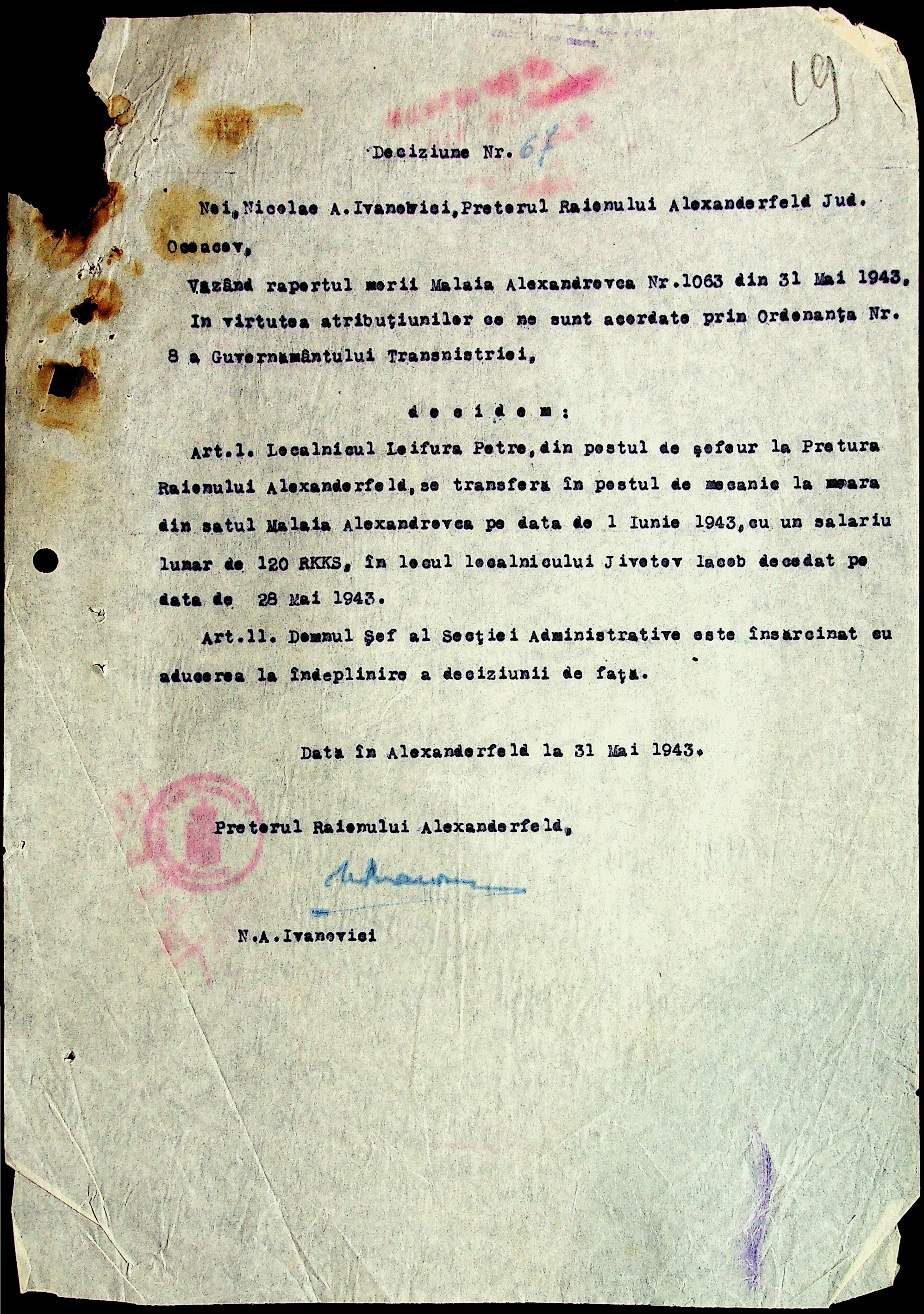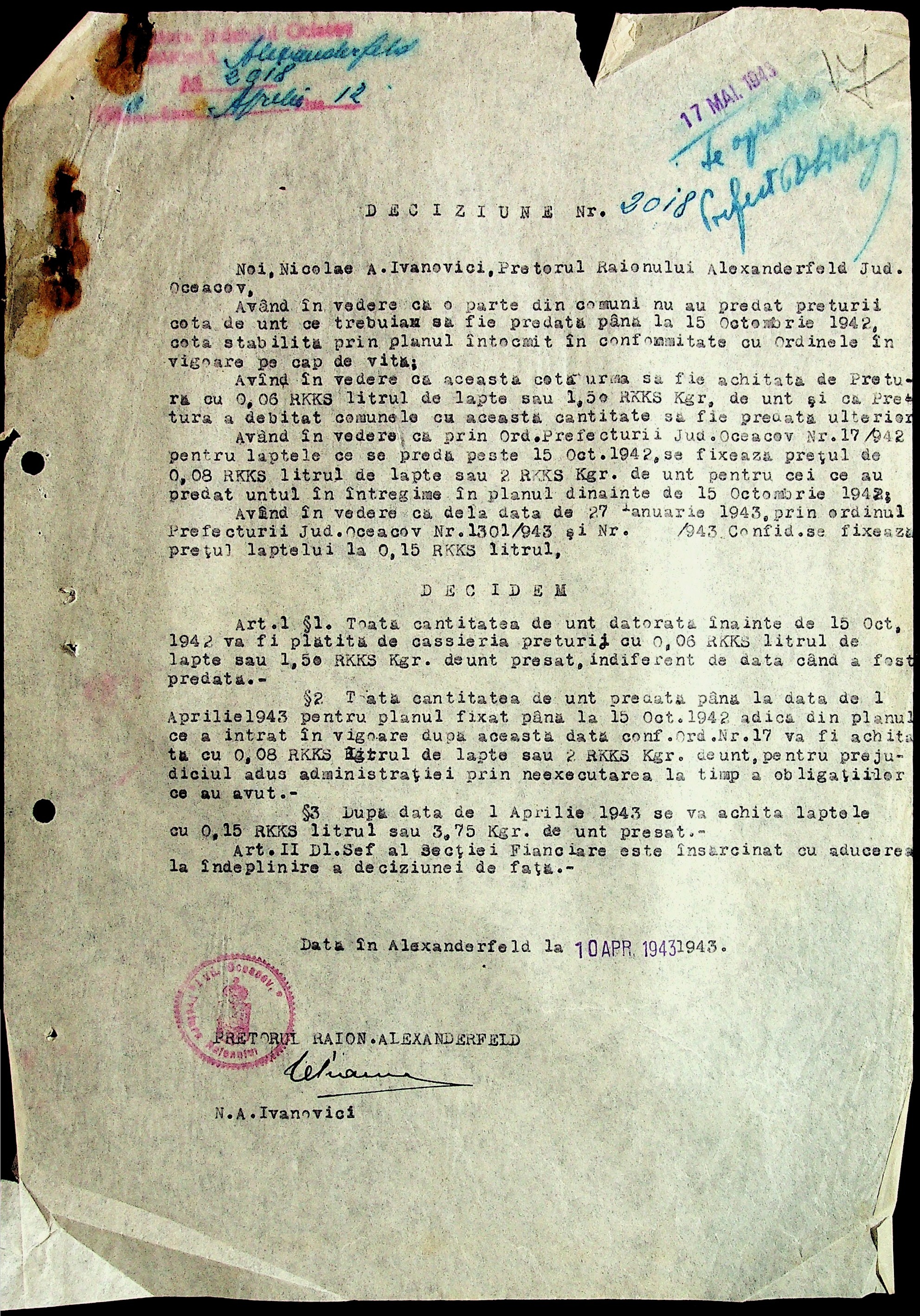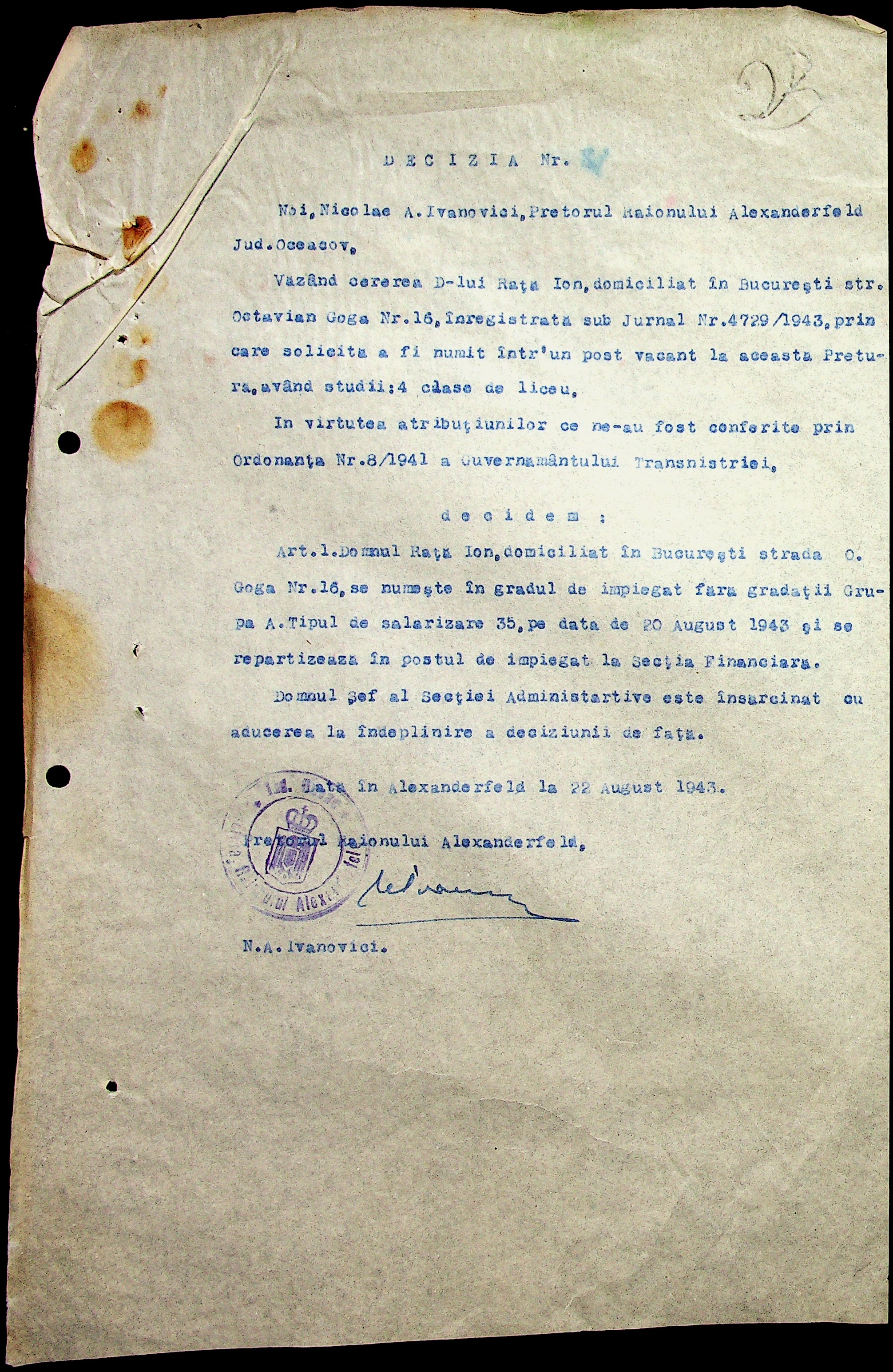 • • • • Справа № 29 “Постанови цивільного губернатора Трансністрії (копії) та претора Александерфельдського району, листування з економічним відділом префектури щодо продажу продуктів населенню, рух товарів по магазинам та реалізацію солі”