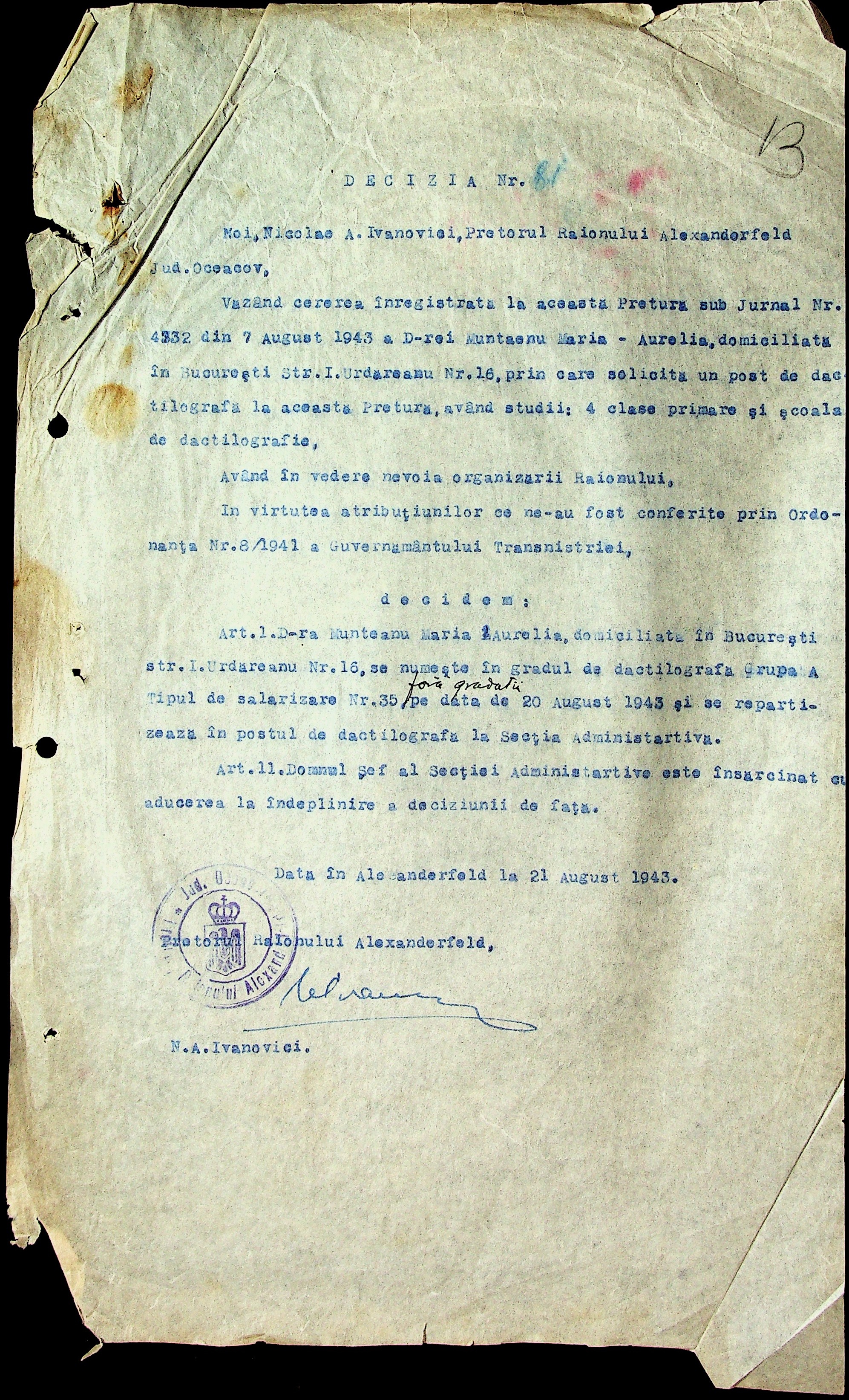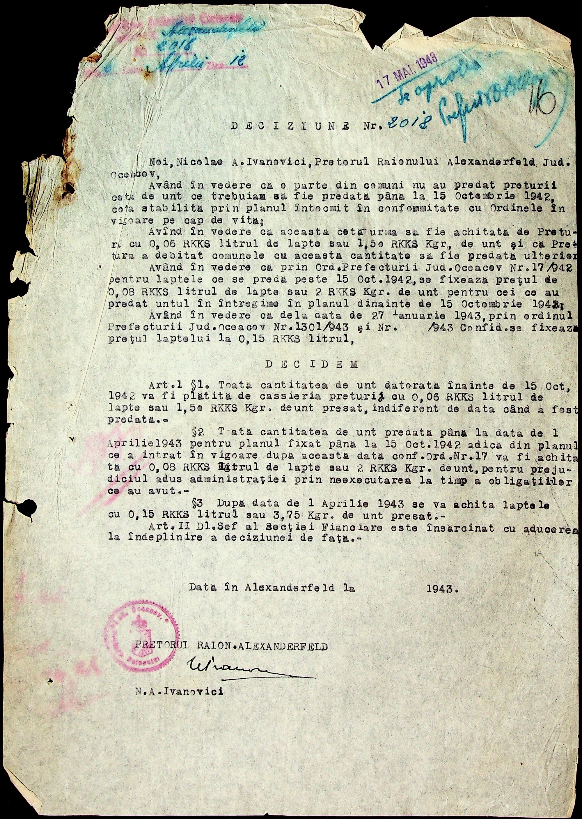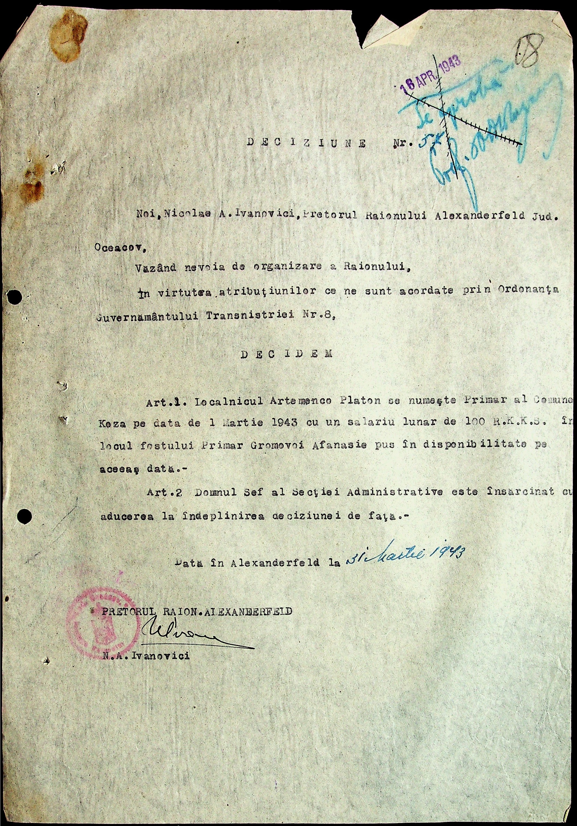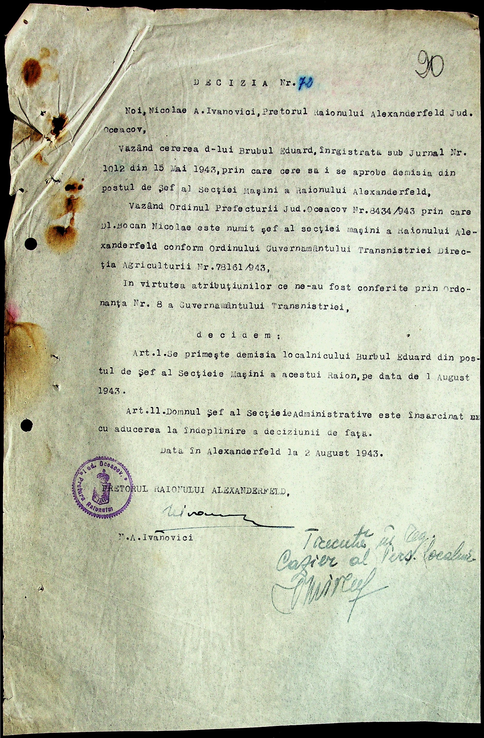 • • • • Справа № 29 “Постанови цивільного губернатора Трансністрії (копії) та претора Александерфельдського району, листування з економічним відділом префектури щодо продажу продуктів населенню, рух товарів по магазинам та реалізацію солі”