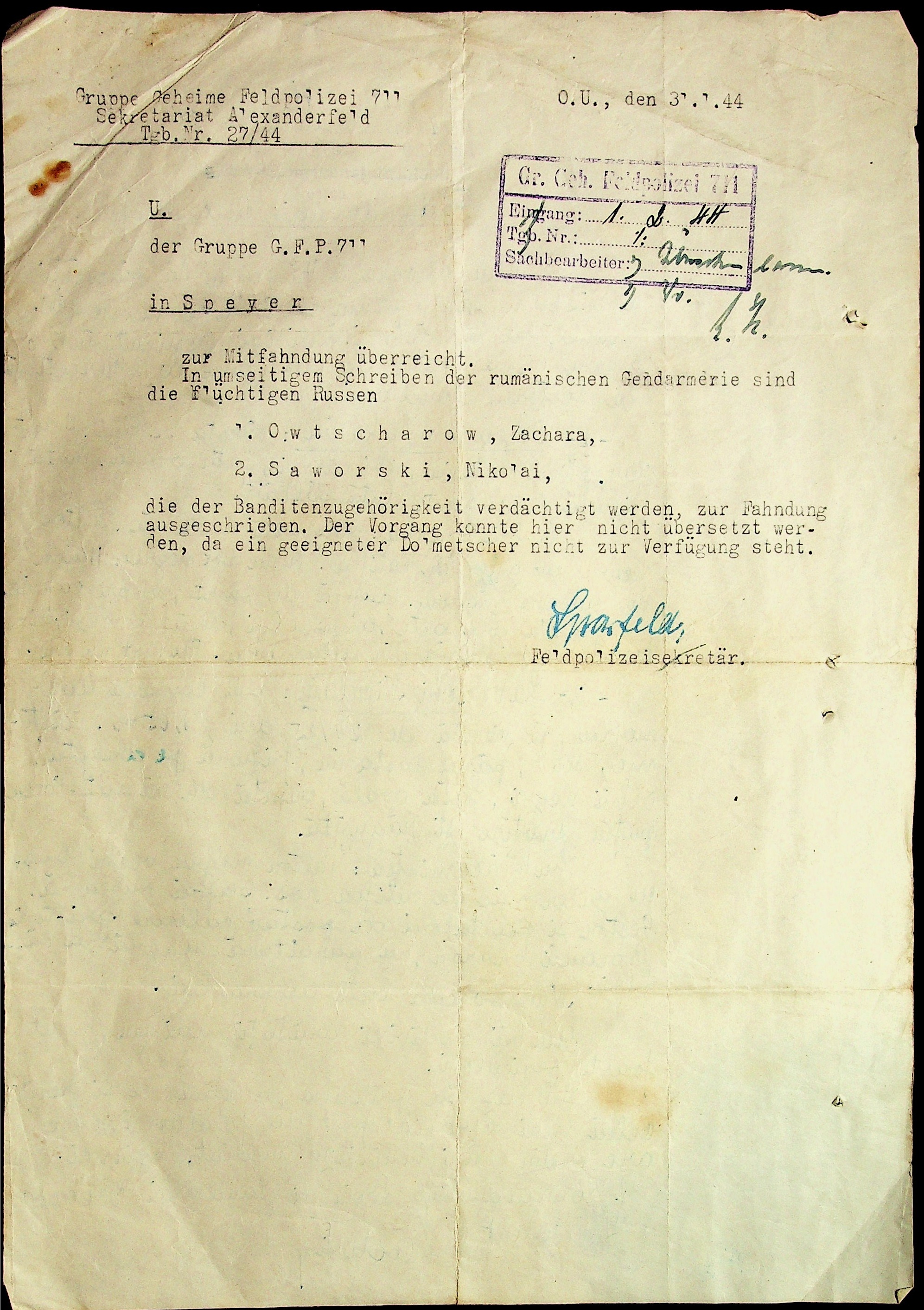 ◦ ◦ ◦ Опис № 4 справ постійного зберігання за 1942–1944 роки