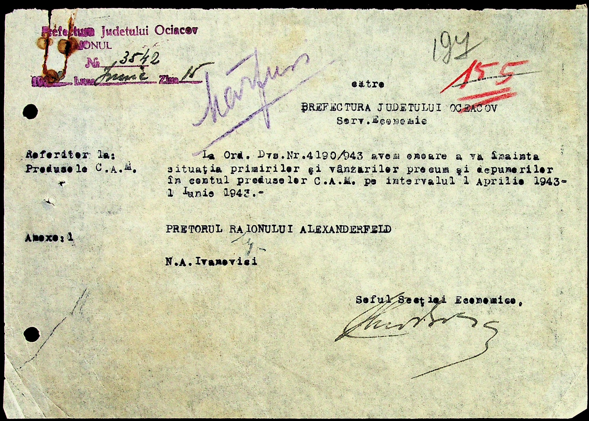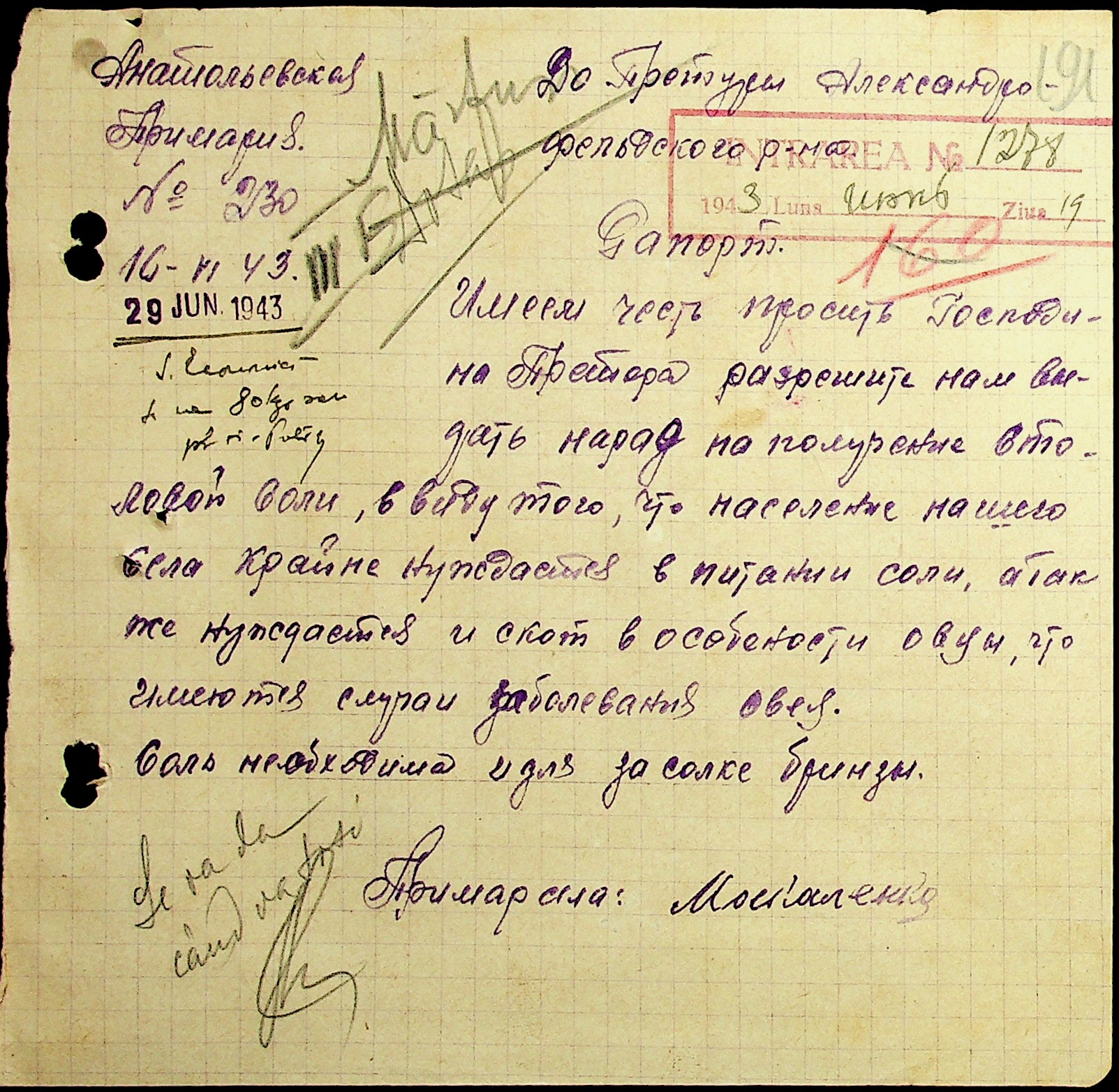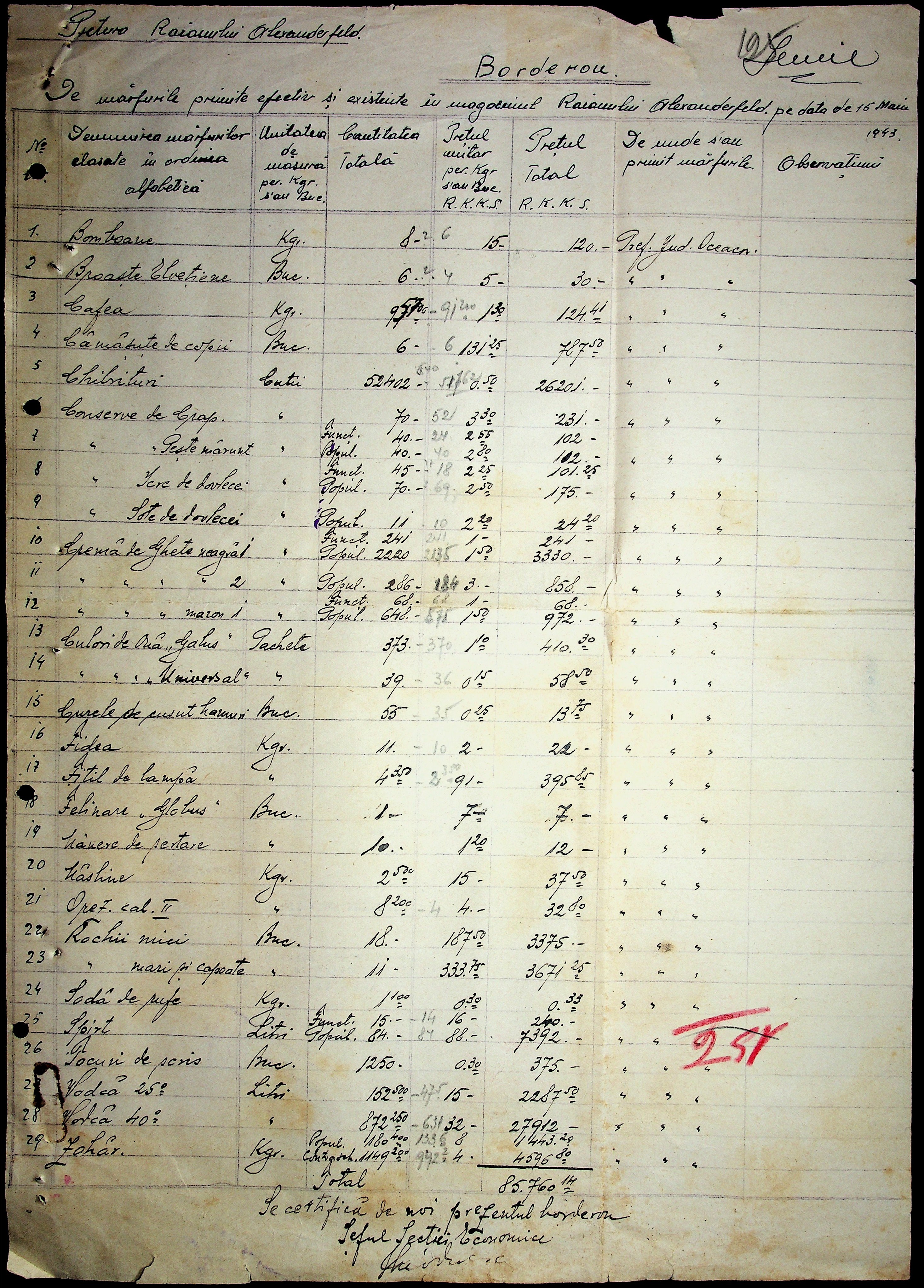 • • • • Справа № 29 “Постанови цивільного губернатора Трансністрії (копії) та претора Александерфельдського району, листування з економічним відділом префектури щодо продажу продуктів населенню, рух товарів по магазинам та реалізацію солі”