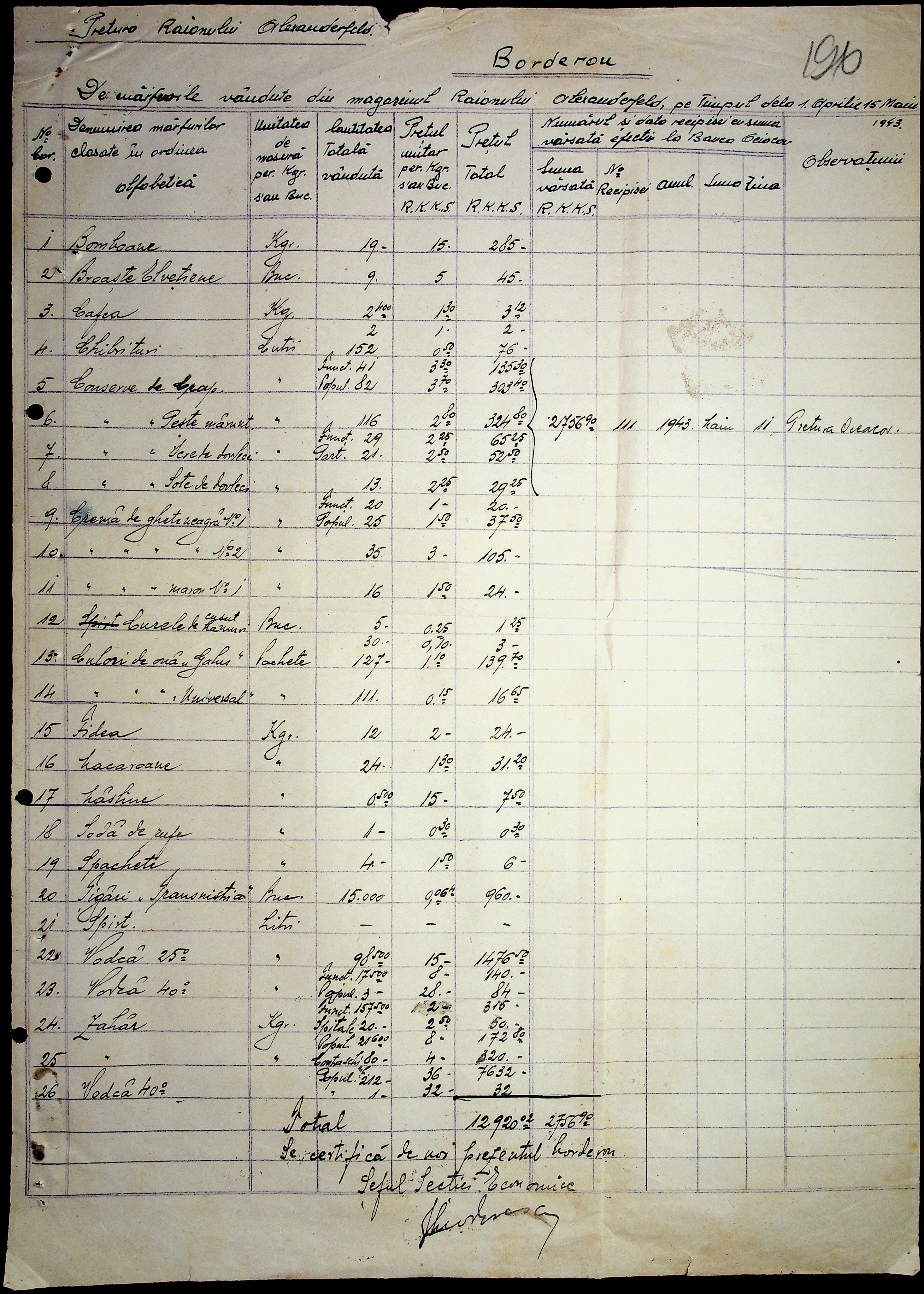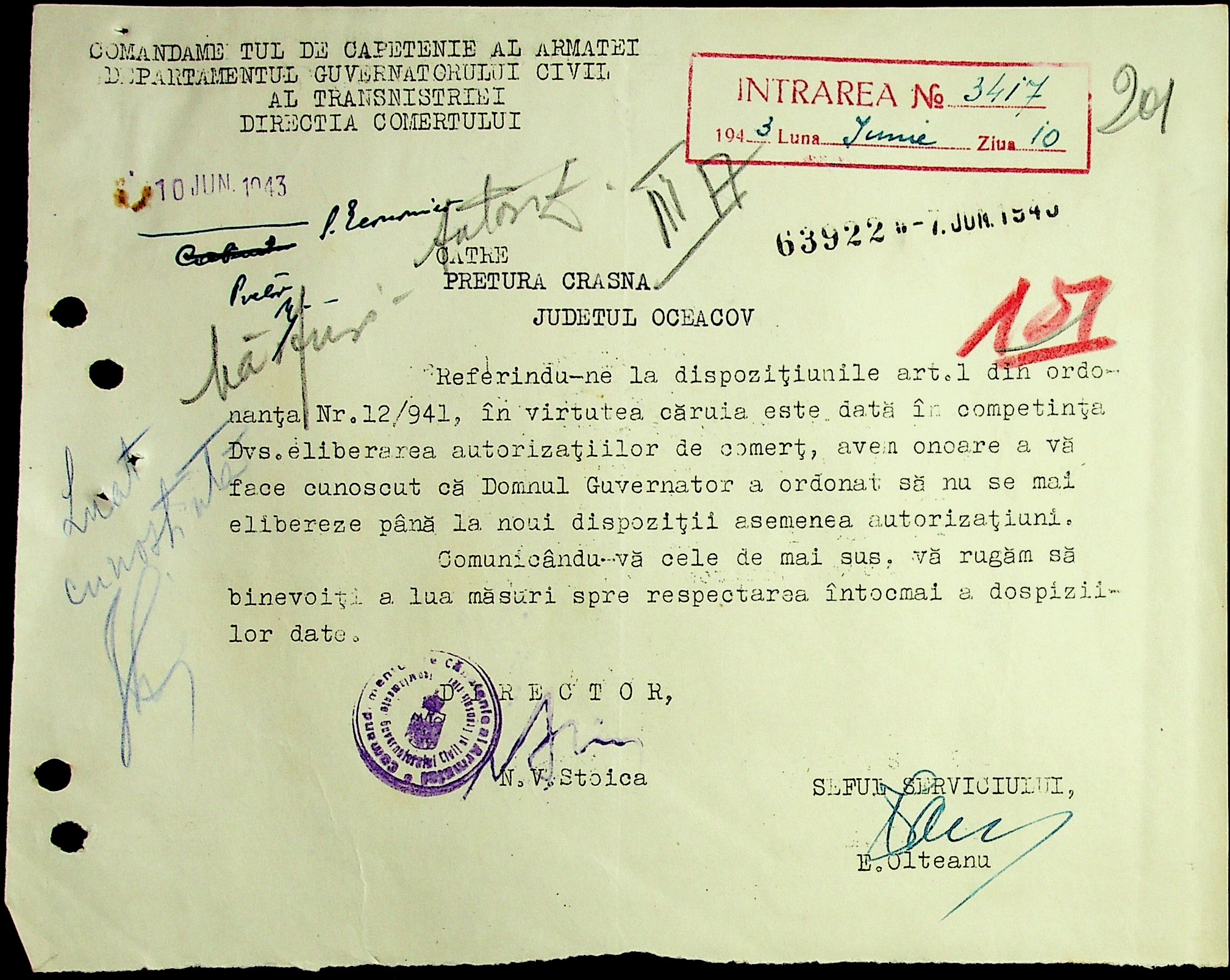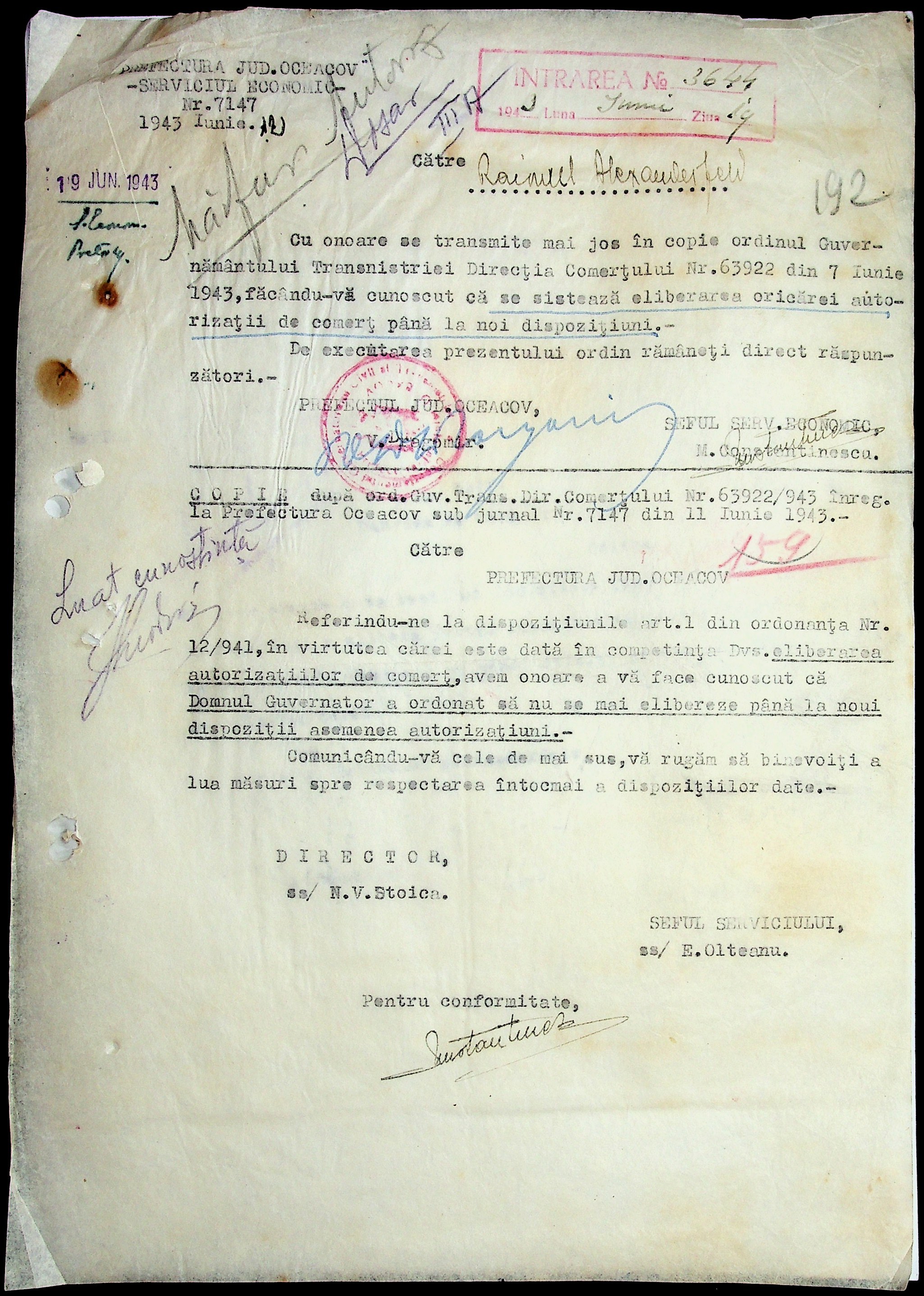 • • • • Справа № 29 “Постанови цивільного губернатора Трансністрії (копії) та претора Александерфельдського району, листування з економічним відділом префектури щодо продажу продуктів населенню, рух товарів по магазинам та реалізацію солі”