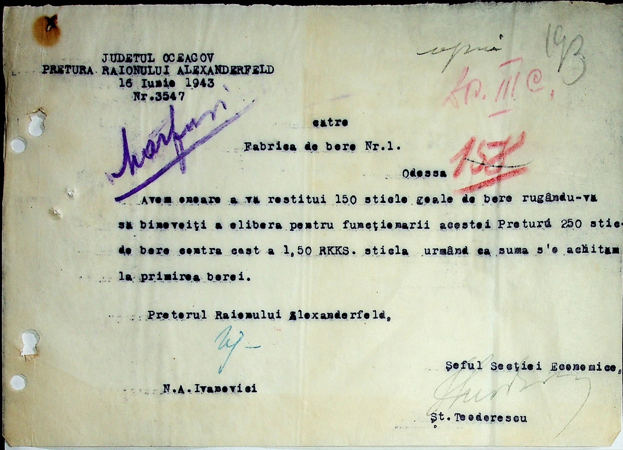 ◦ ◦ Фонд № Н-1588 “Претура Александерфельдського району Очаківського повіту”