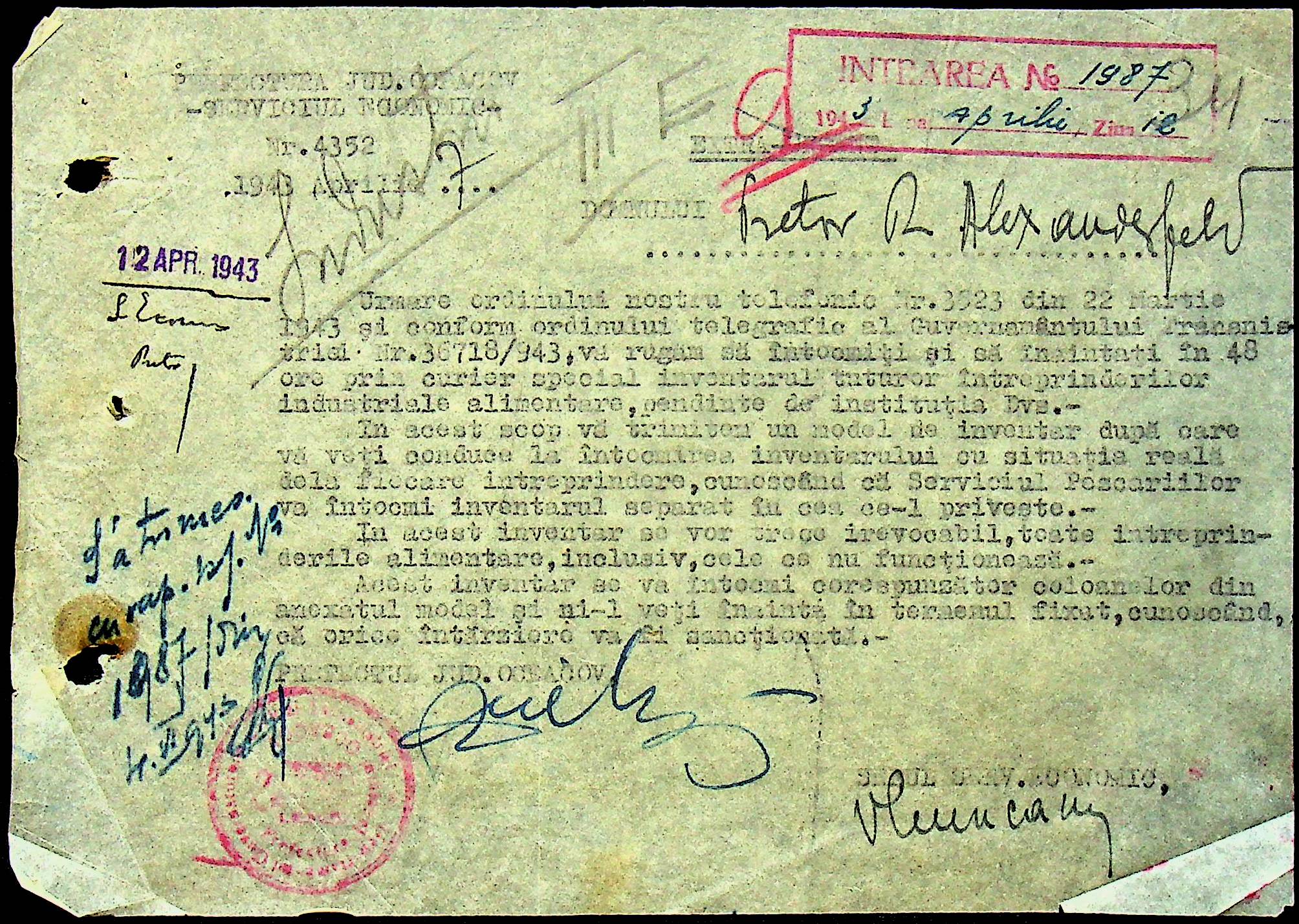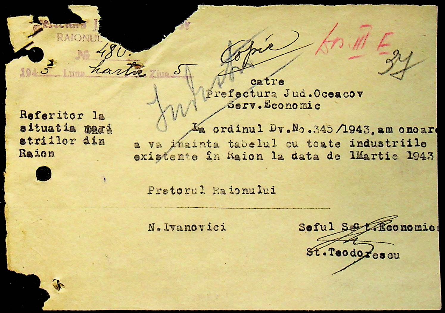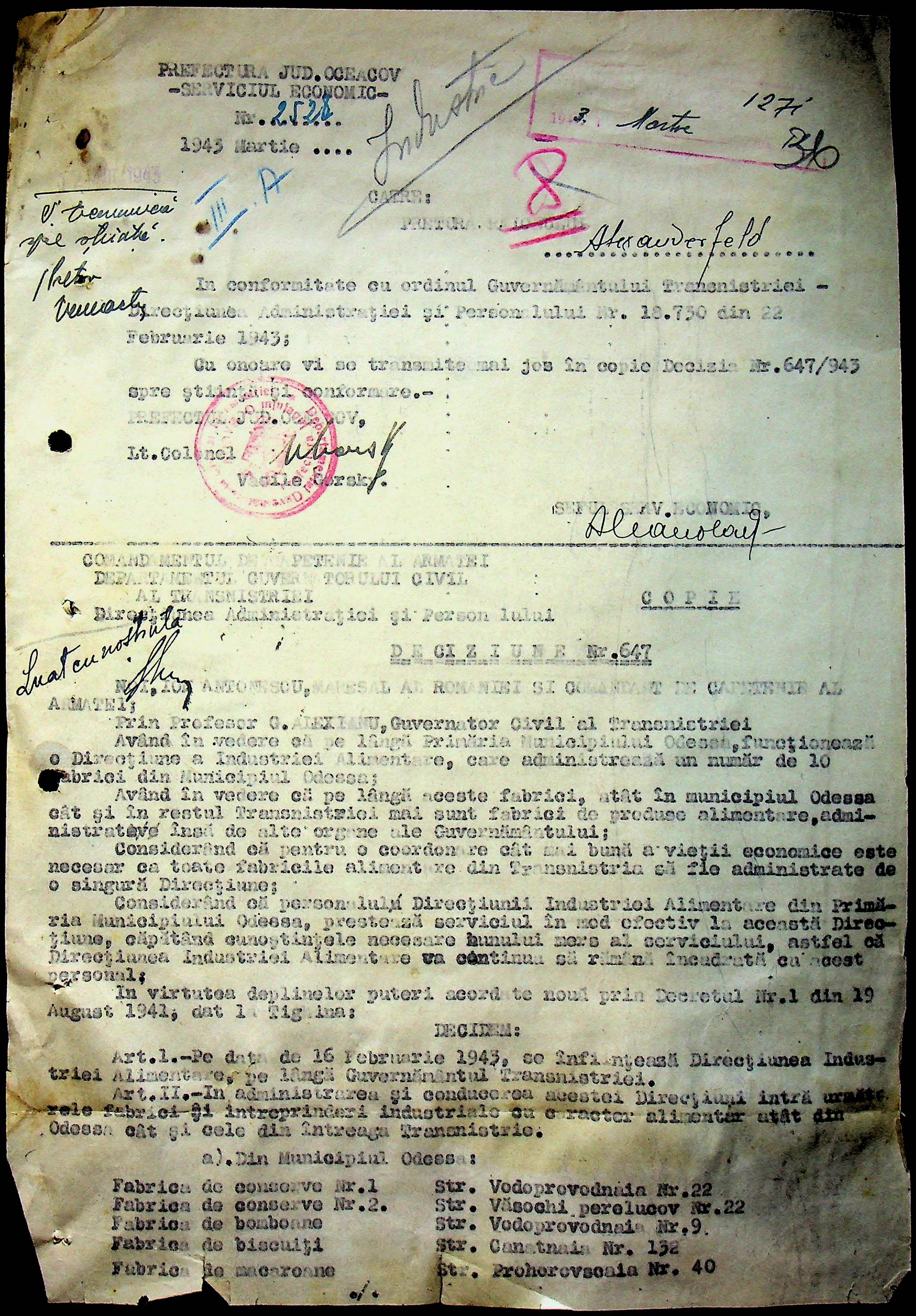 • • • • Справа № 30 “Постанови цивільного губернатора Трансністрії (копії) про організацію при губернаторстві Трансністрії дирекції харчової промисловості. Листування з економічним відділом префектури про забій худоби в с. Анатоліївка Александерфельдського району”