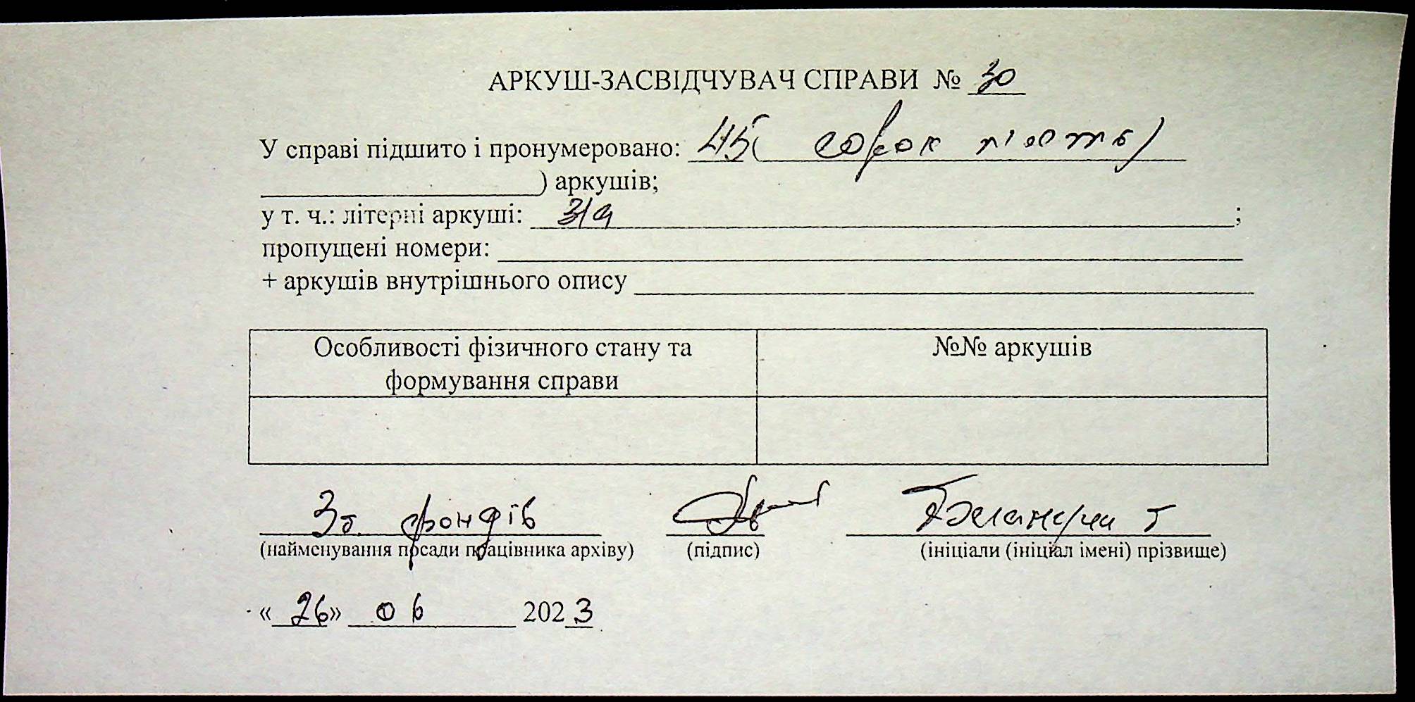 ◦ ◦ ◦ Опис № 4 справ постійного зберігання за 1942–1944 роки