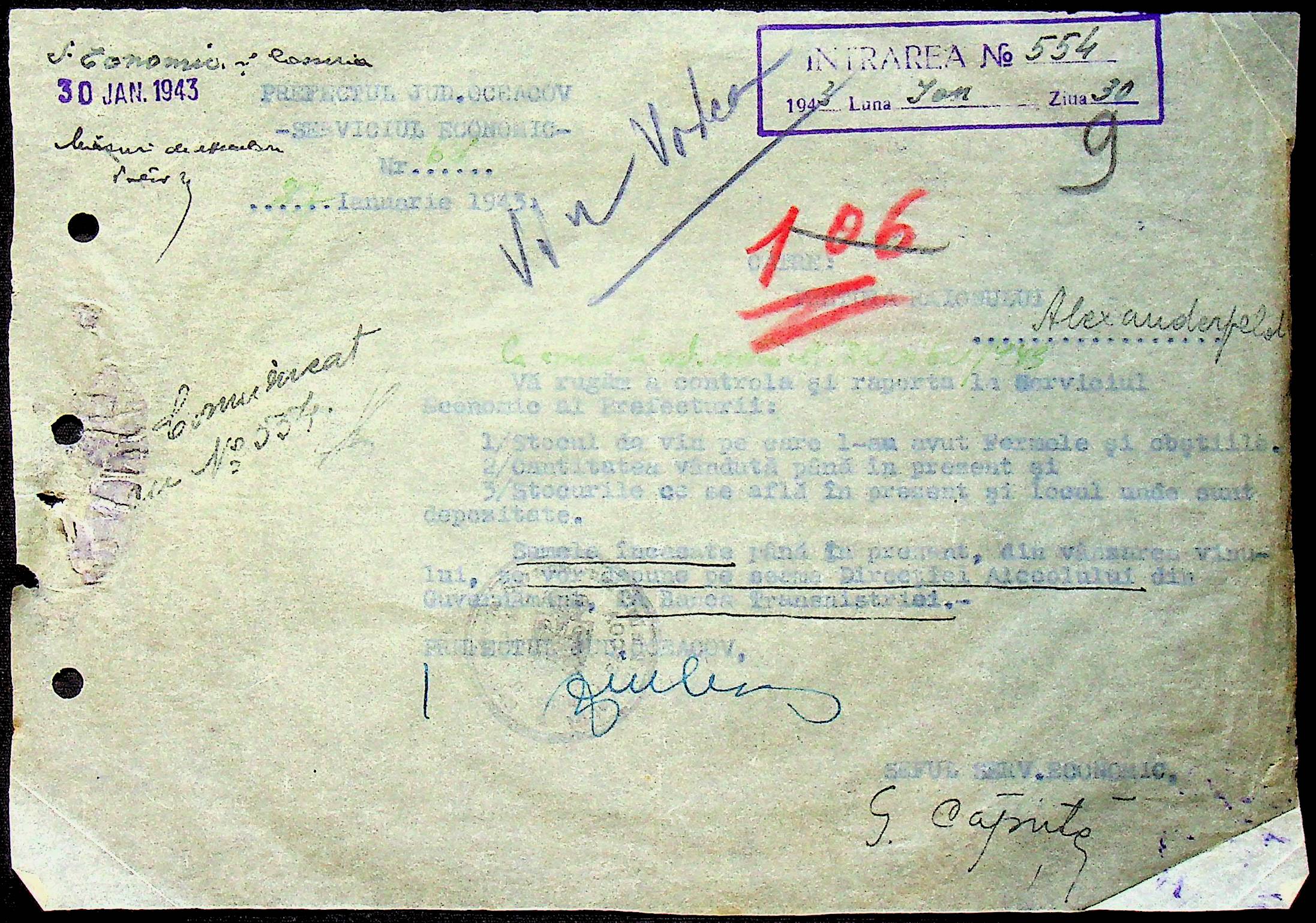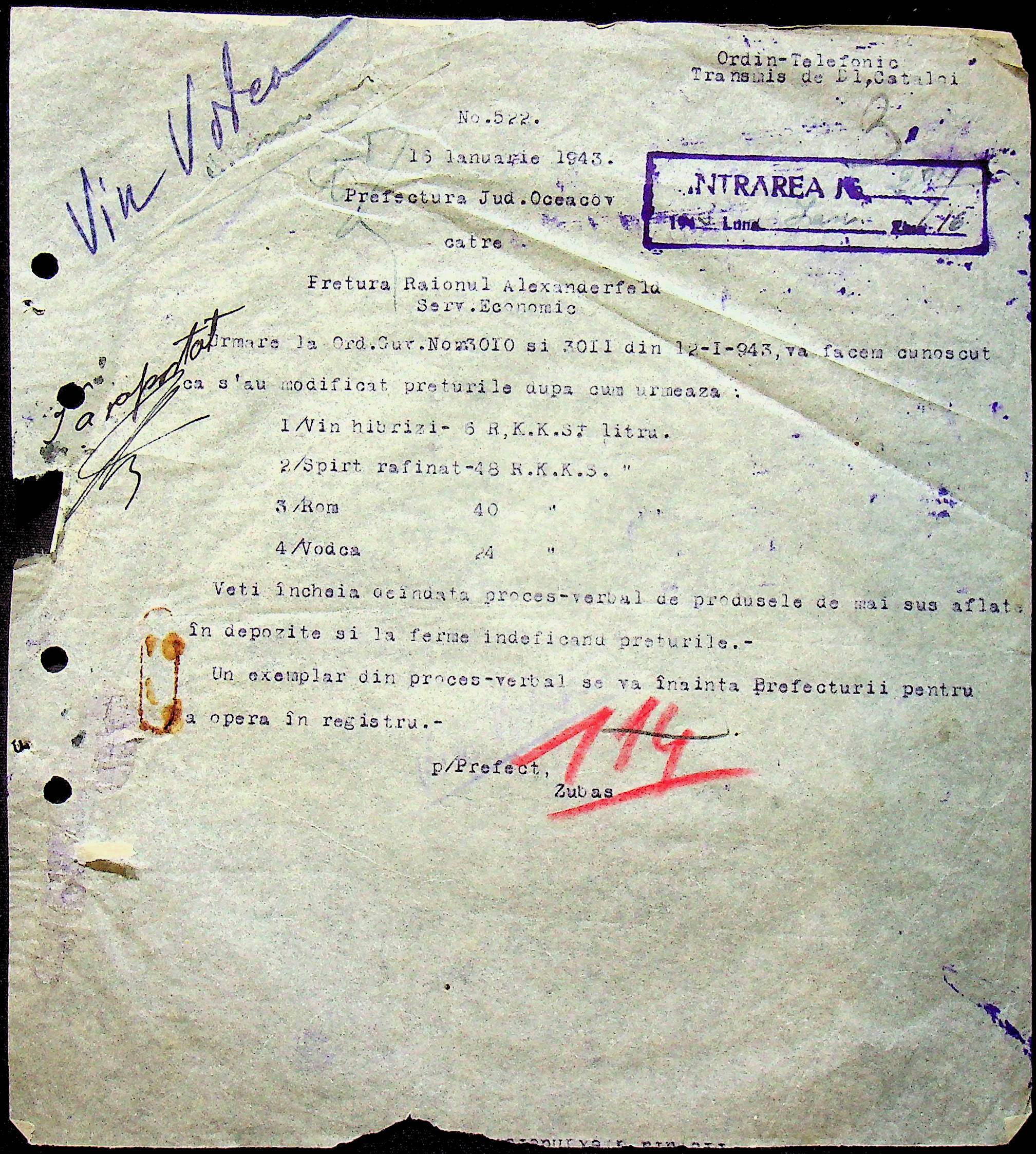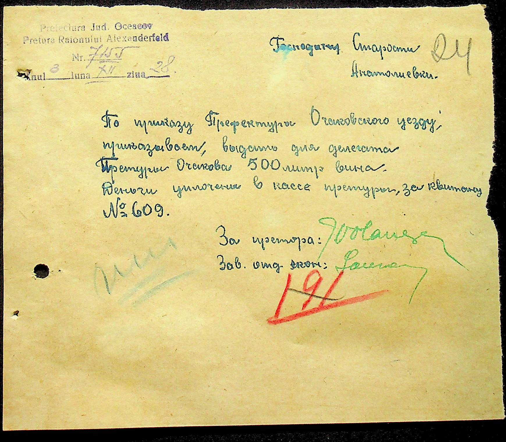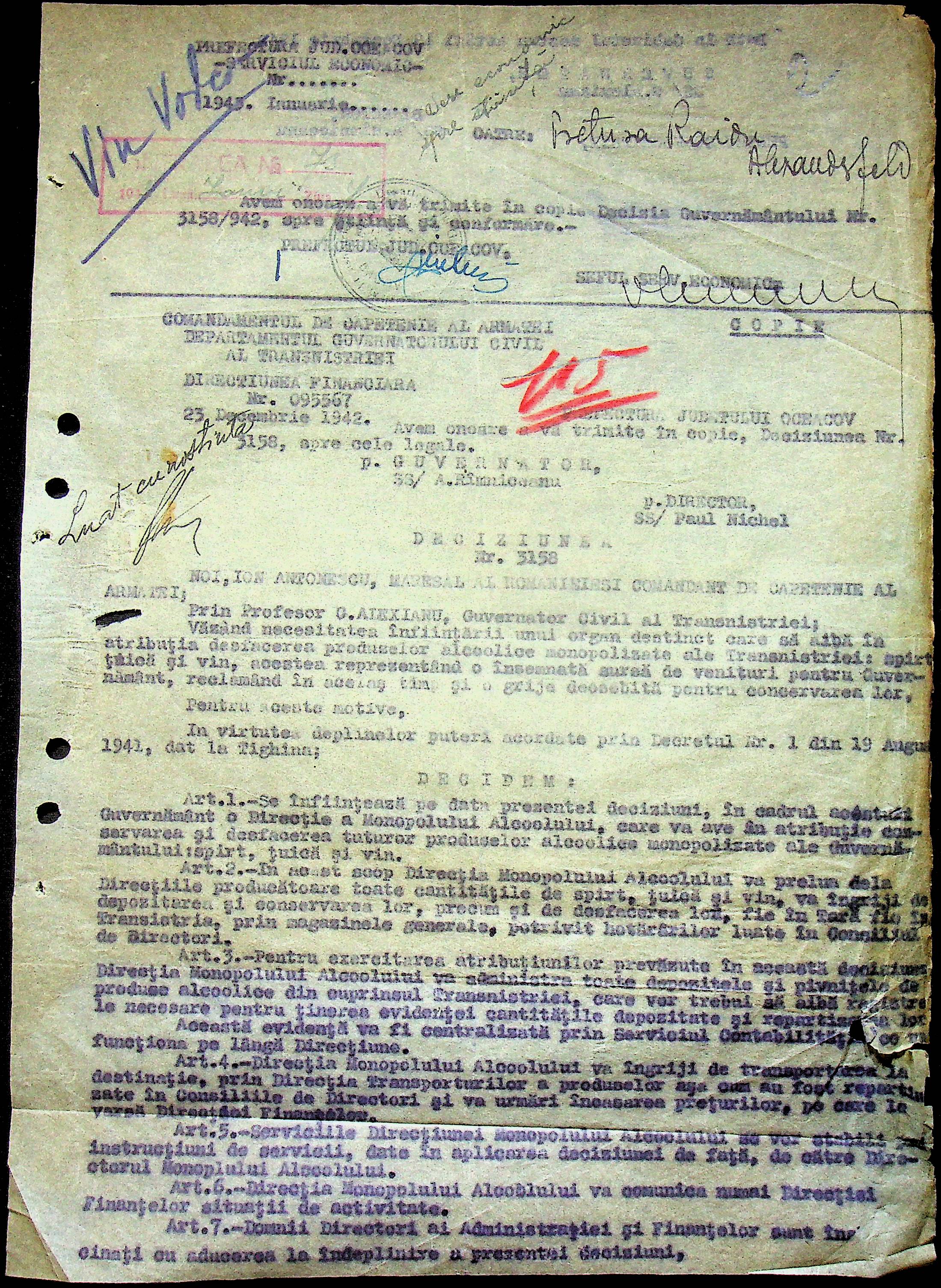 • • • • Справа № 35 “Постанови цивільного губернатора Трансністрії (копії) про продаж спиртних напоїв та встановлення цін на вино. Листування з префектурою Очаківського повіту про відпуск вина для військових частин”