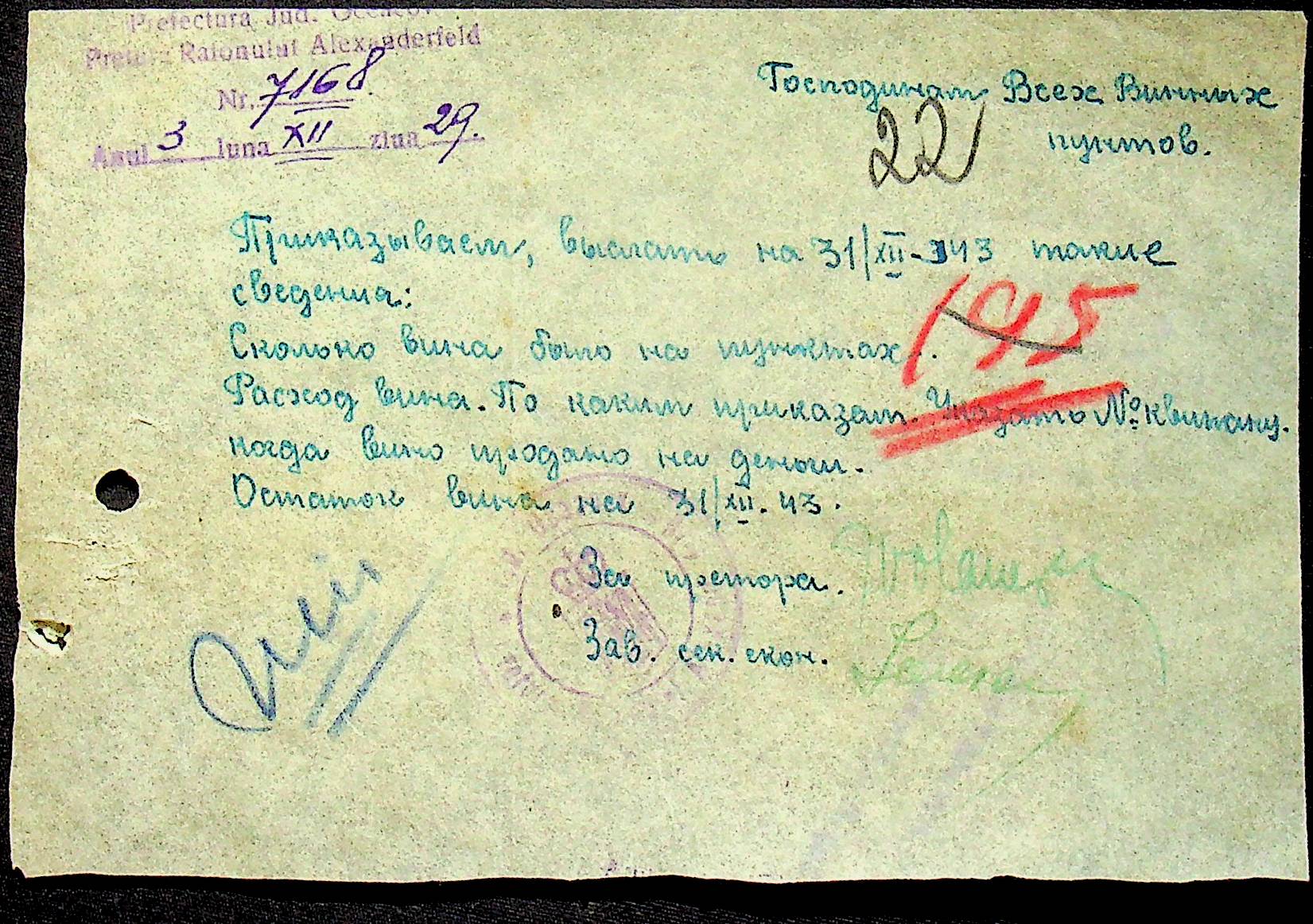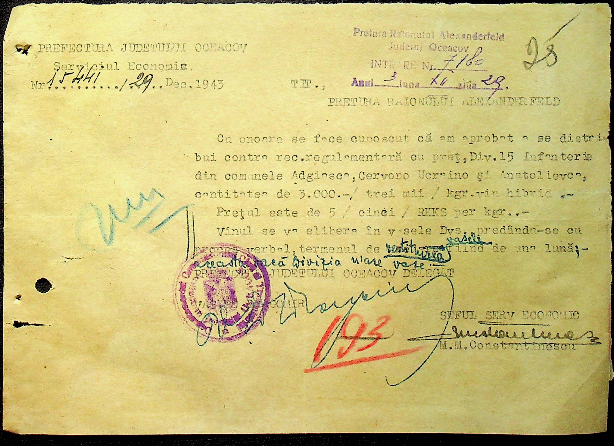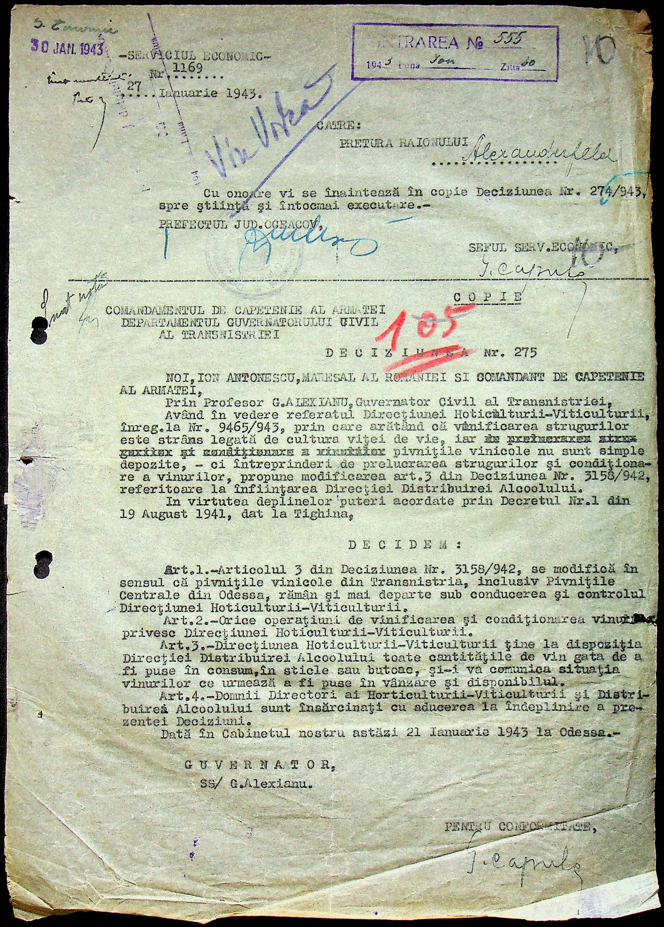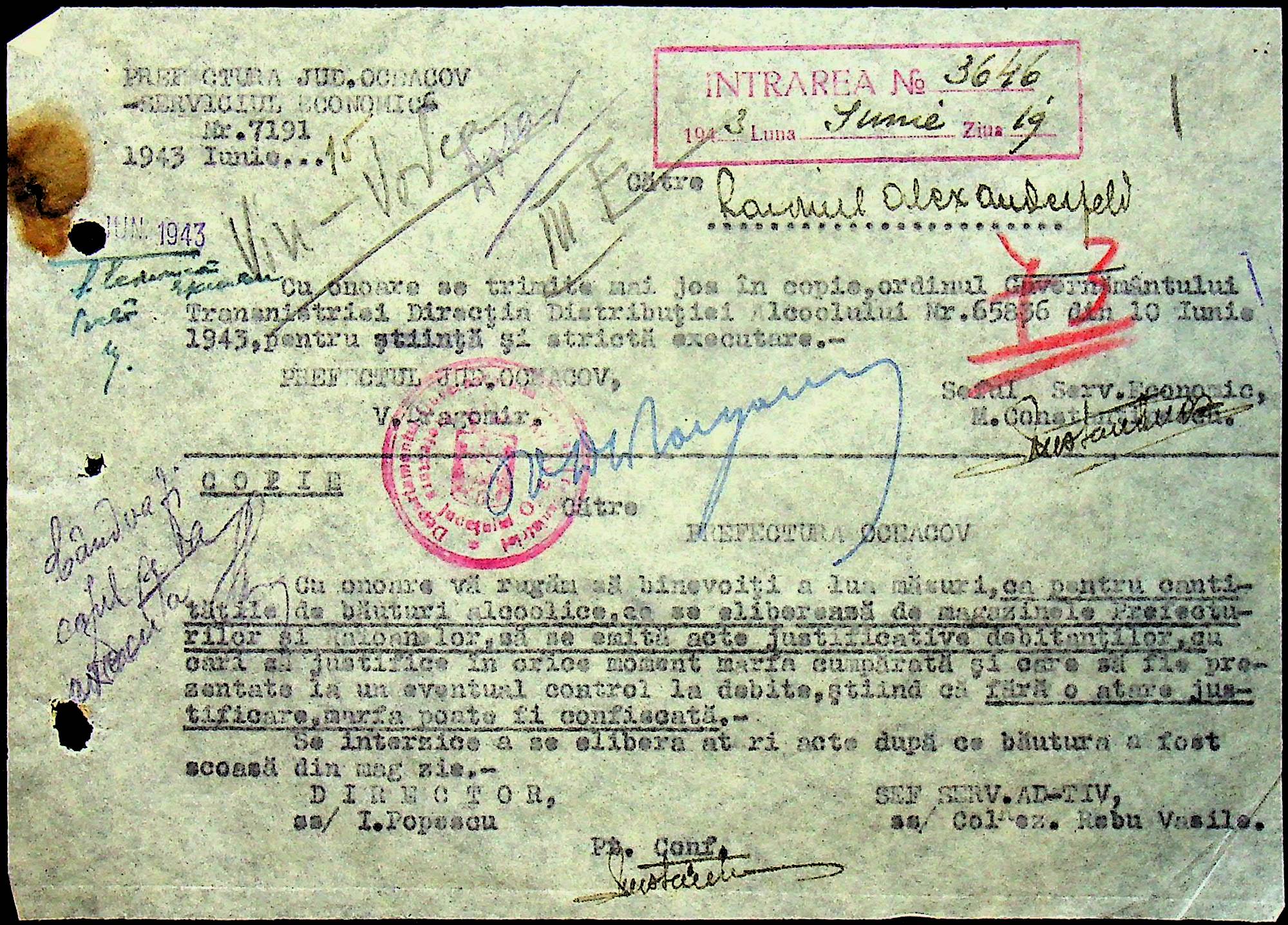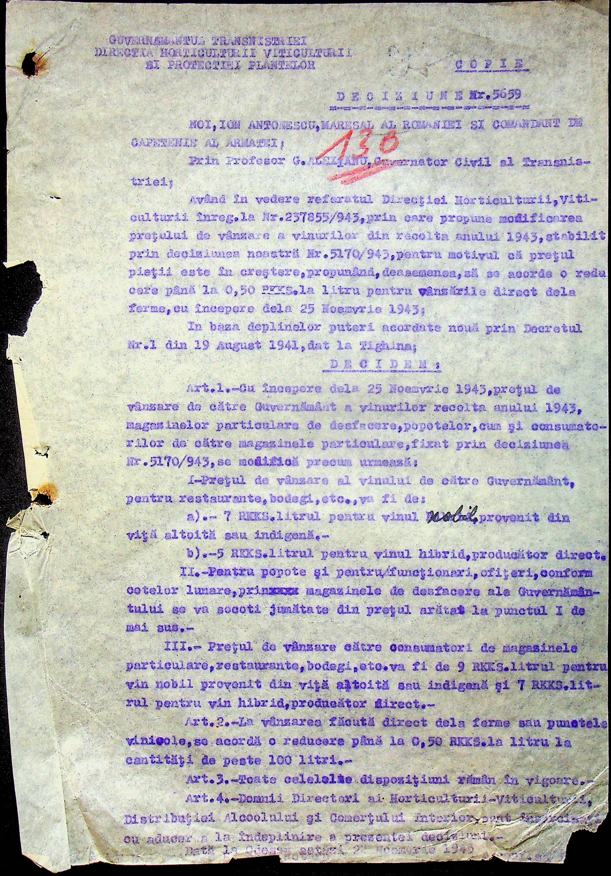 • • • • Справа № 35 “Постанови цивільного губернатора Трансністрії (копії) про продаж спиртних напоїв та встановлення цін на вино. Листування з префектурою Очаківського повіту про відпуск вина для військових частин”