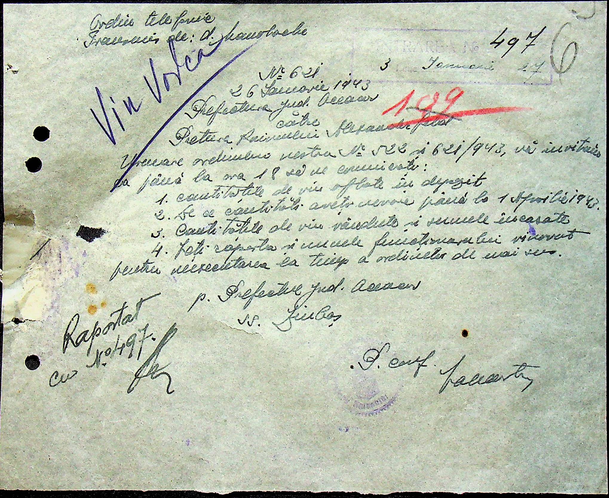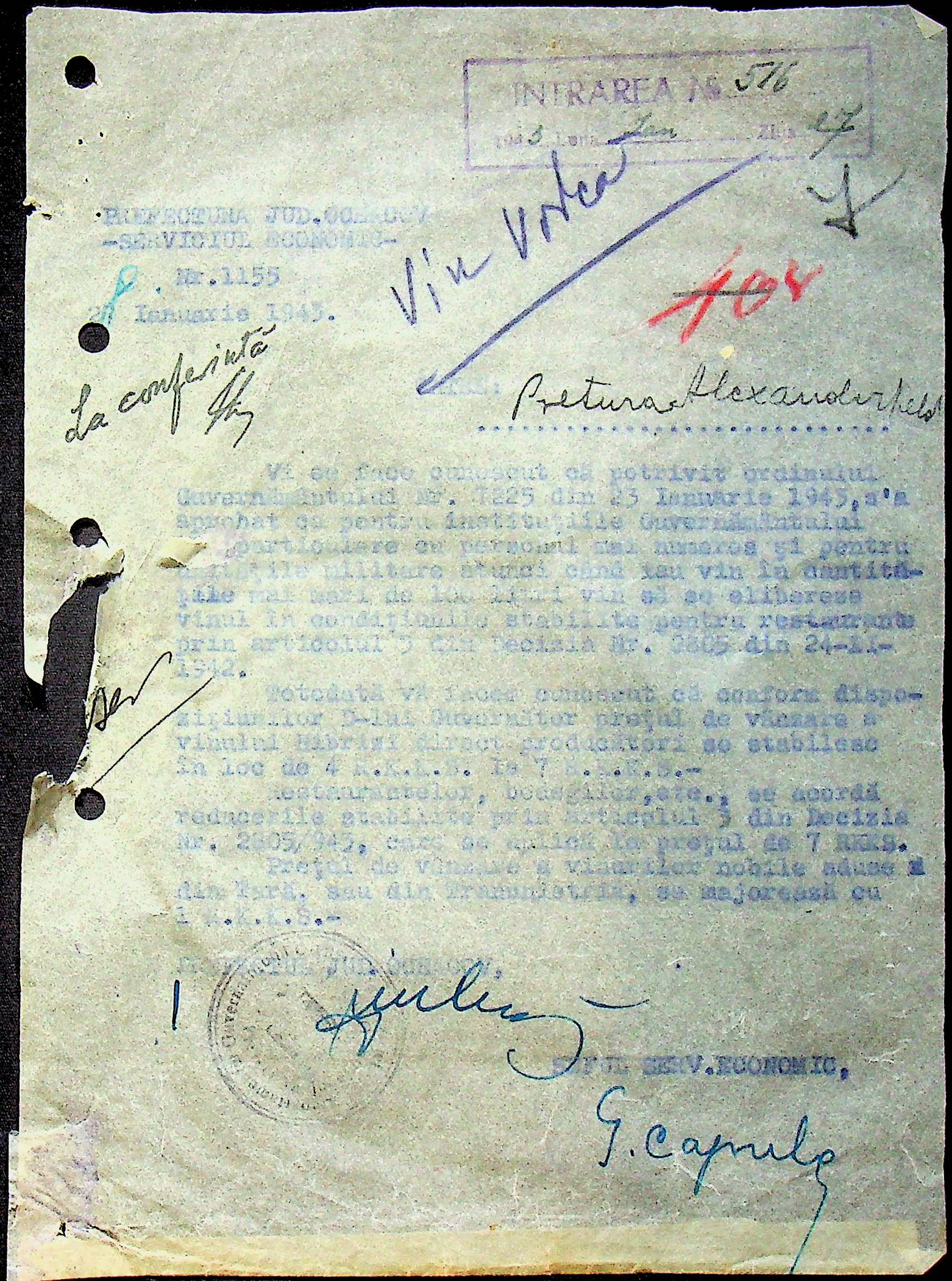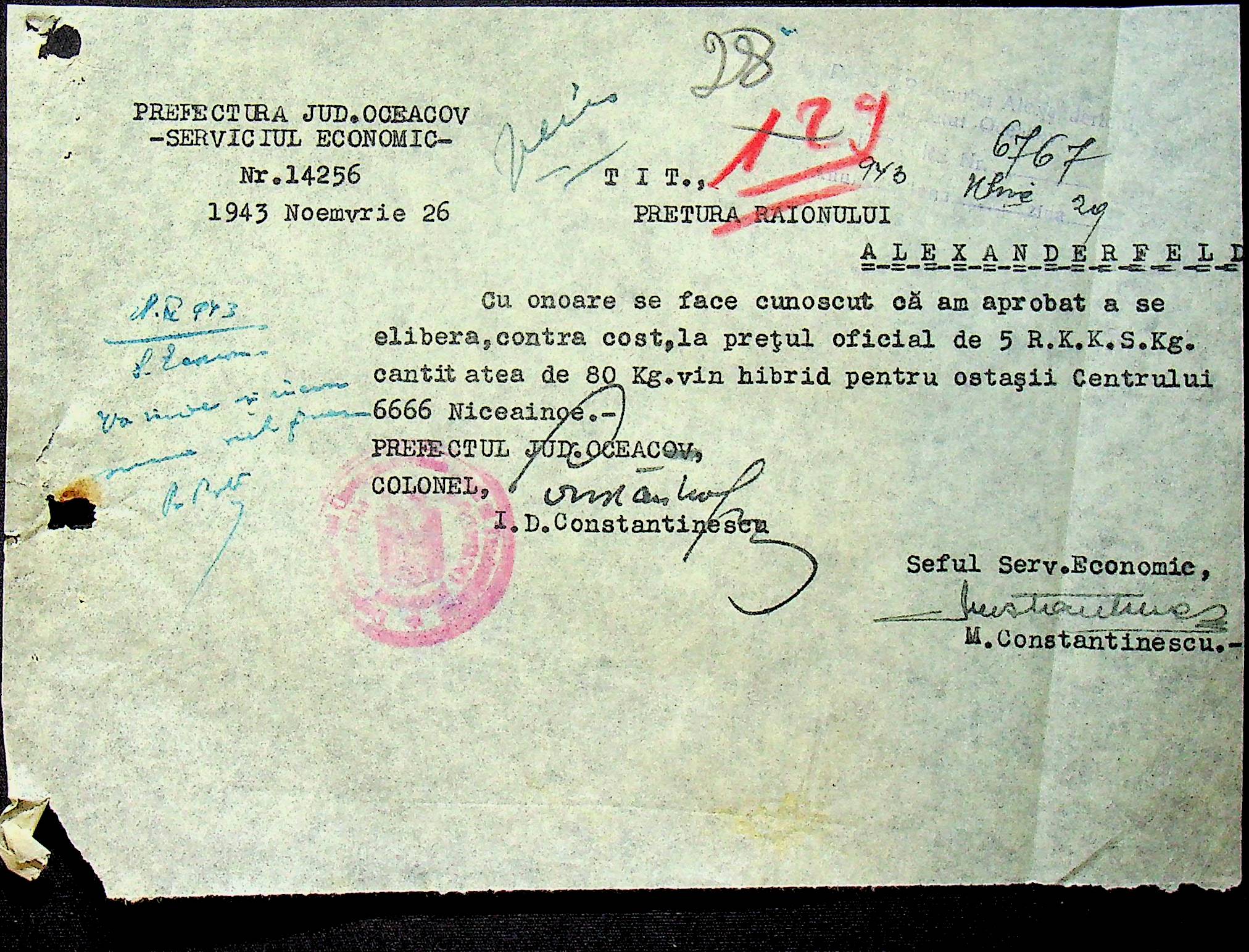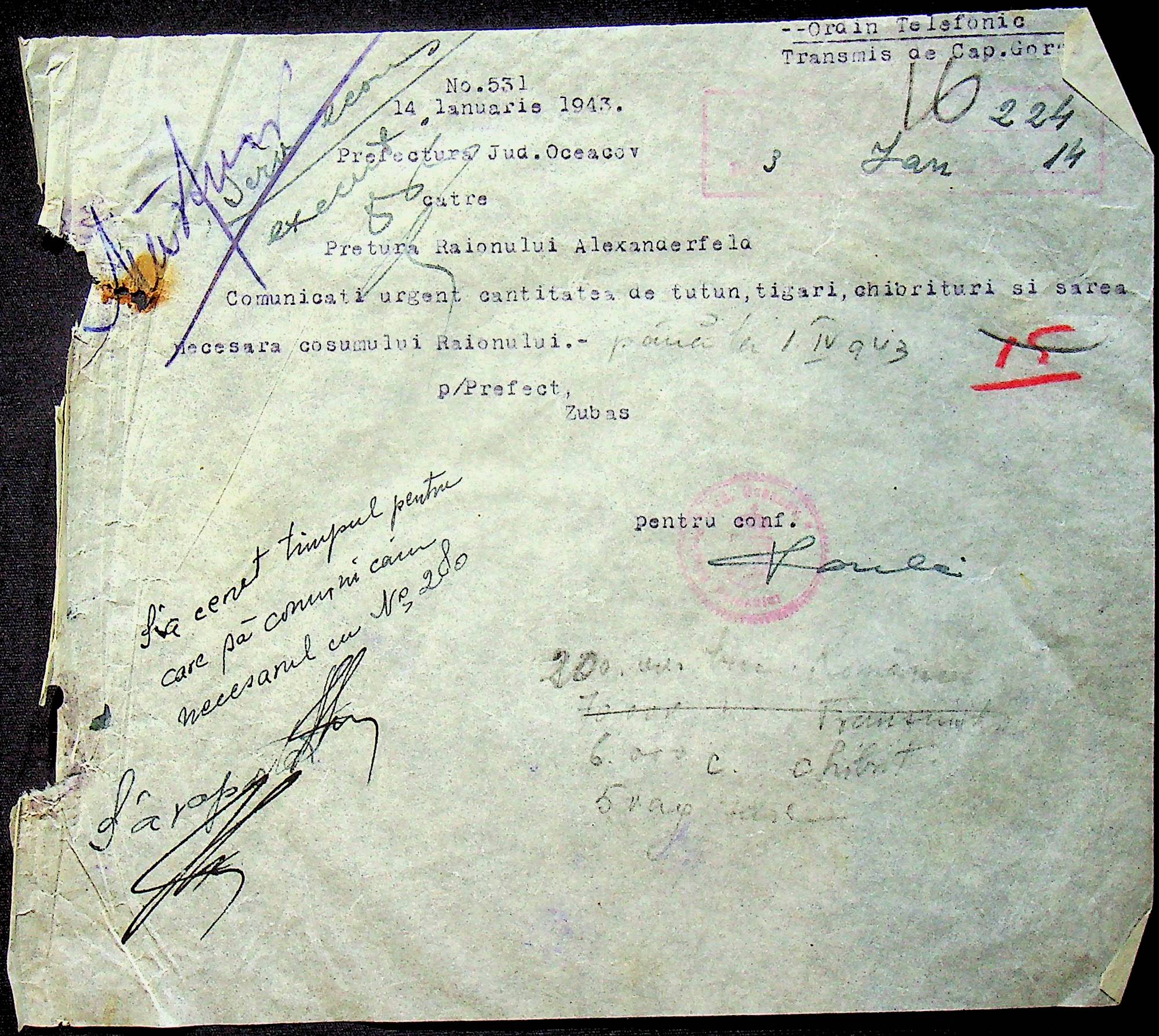 • • • • Справа № 35 “Постанови цивільного губернатора Трансністрії (копії) про продаж спиртних напоїв та встановлення цін на вино. Листування з префектурою Очаківського повіту про відпуск вина для військових частин”