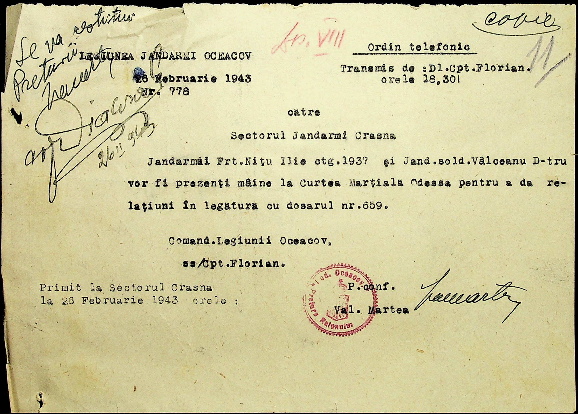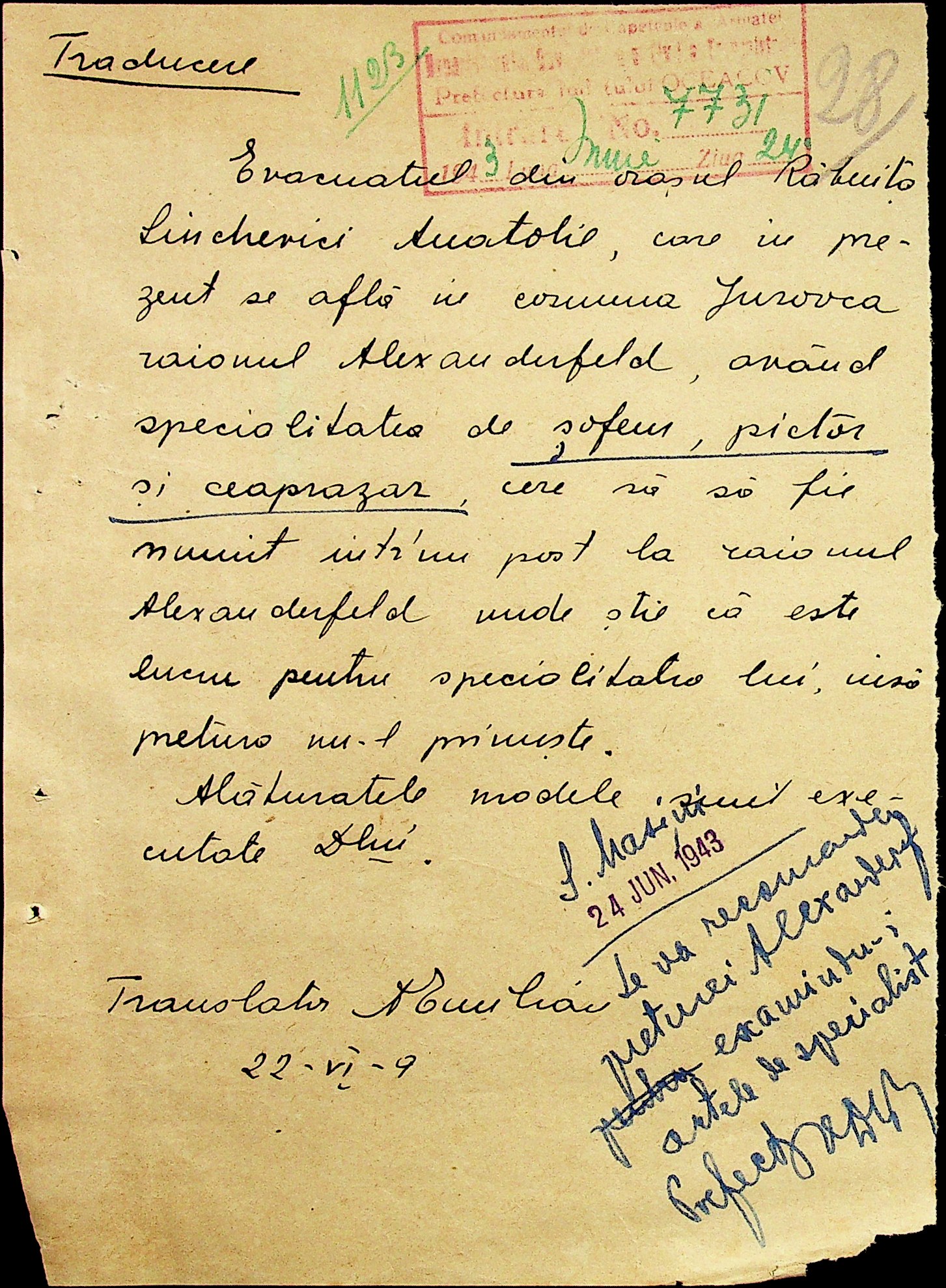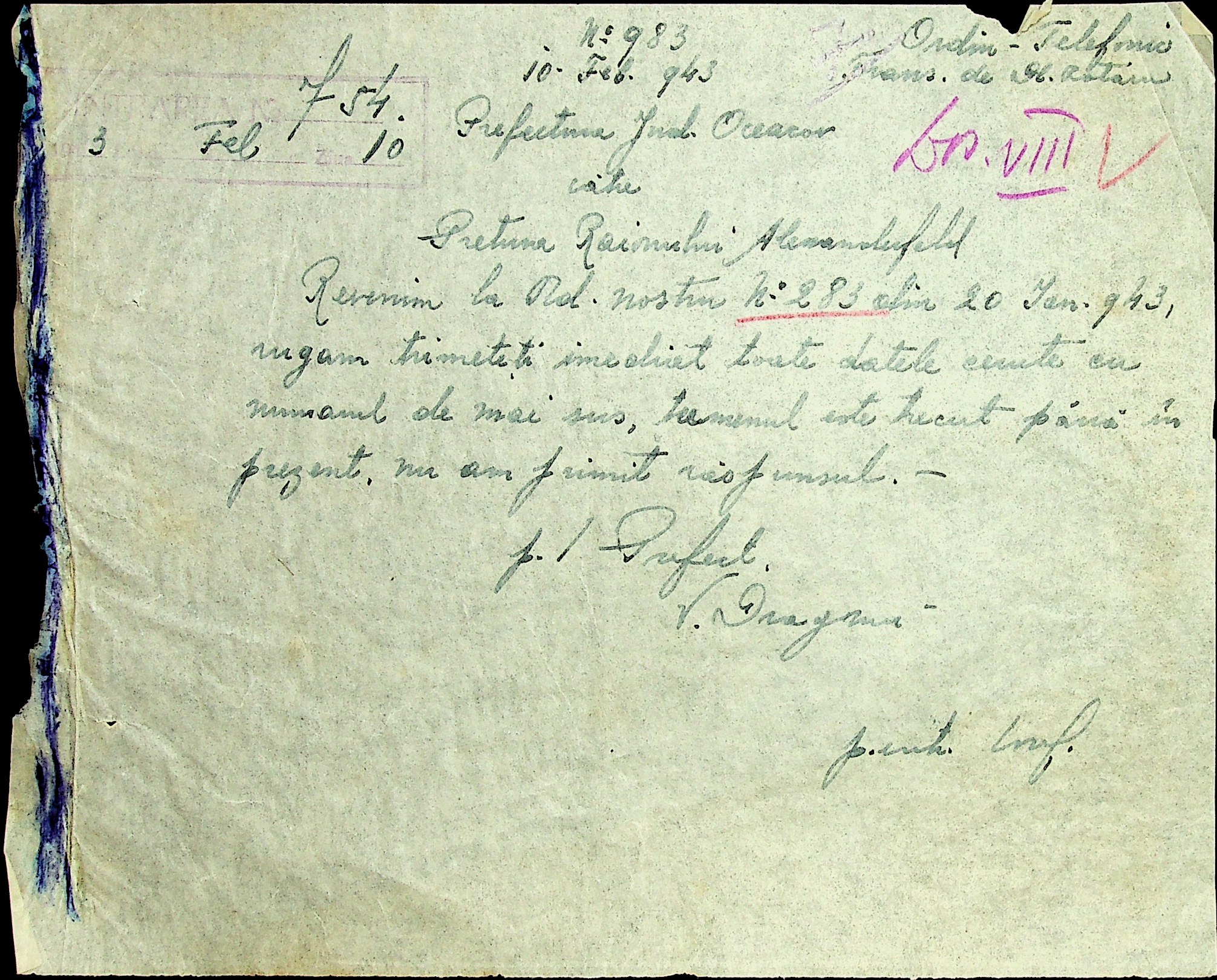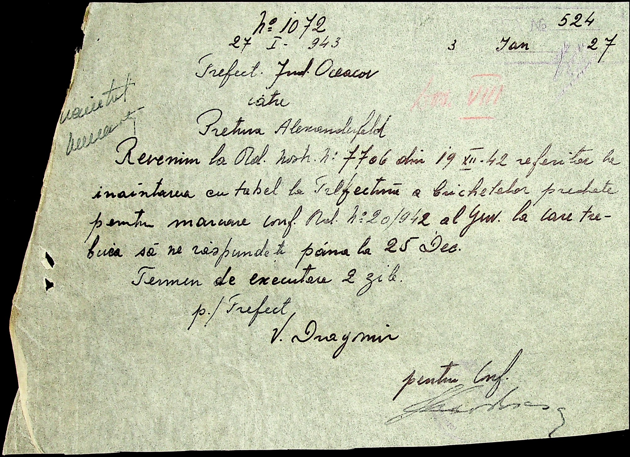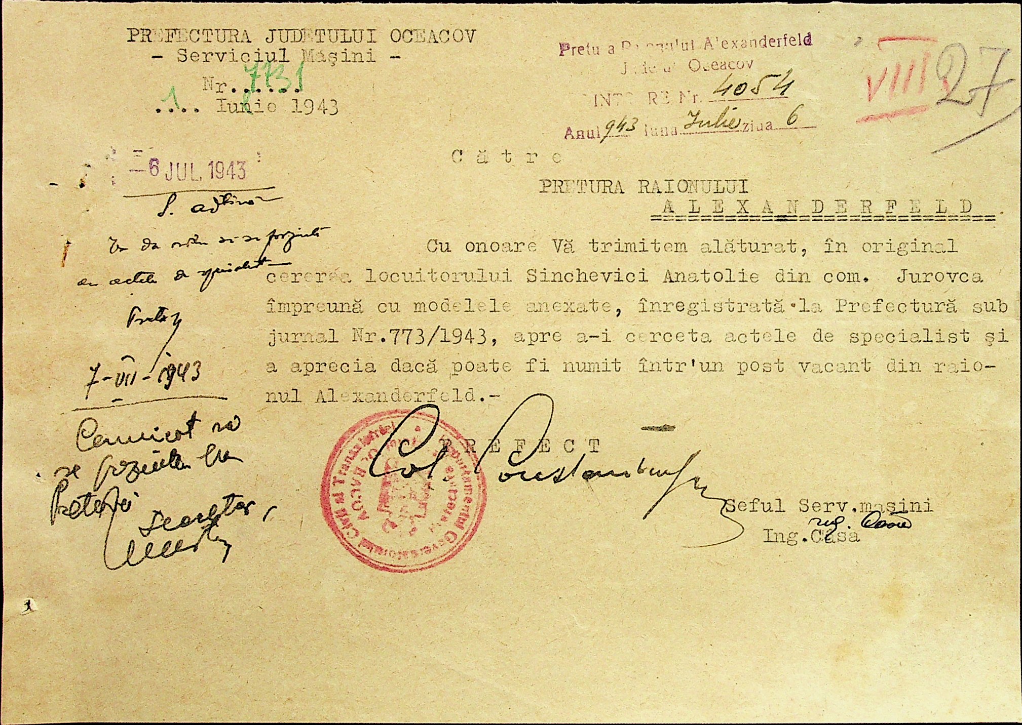 • • • • Справа № 36 “Інструкція цивільного губернатора Трансністрії (копія) про відправку товарів залізницею. Листування з префектурою Очаківського повіту про арешт трактористів Тимофєєва Стефана та Кравченка Олексія за відмову виходити на роботу, Відомості про наявність вуликів у товариствах і на фермах Александерфельдського району”