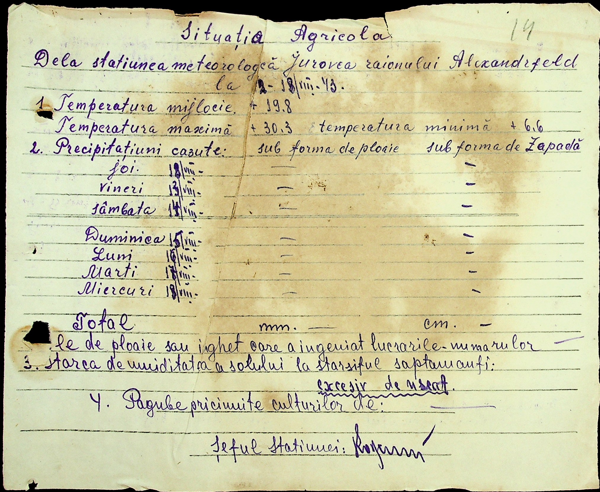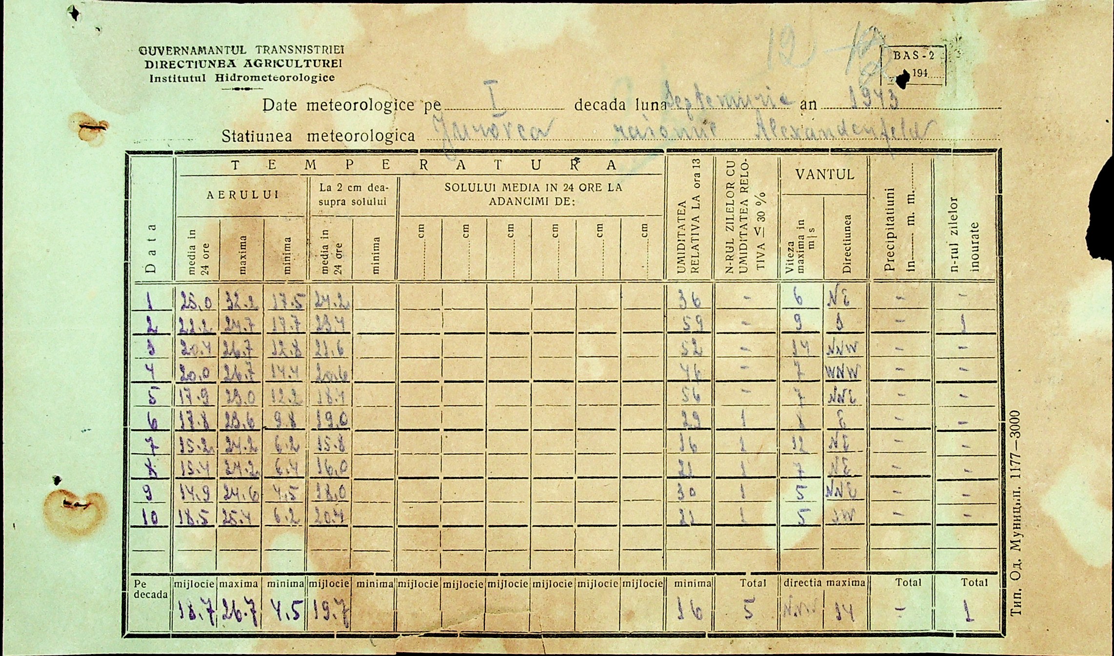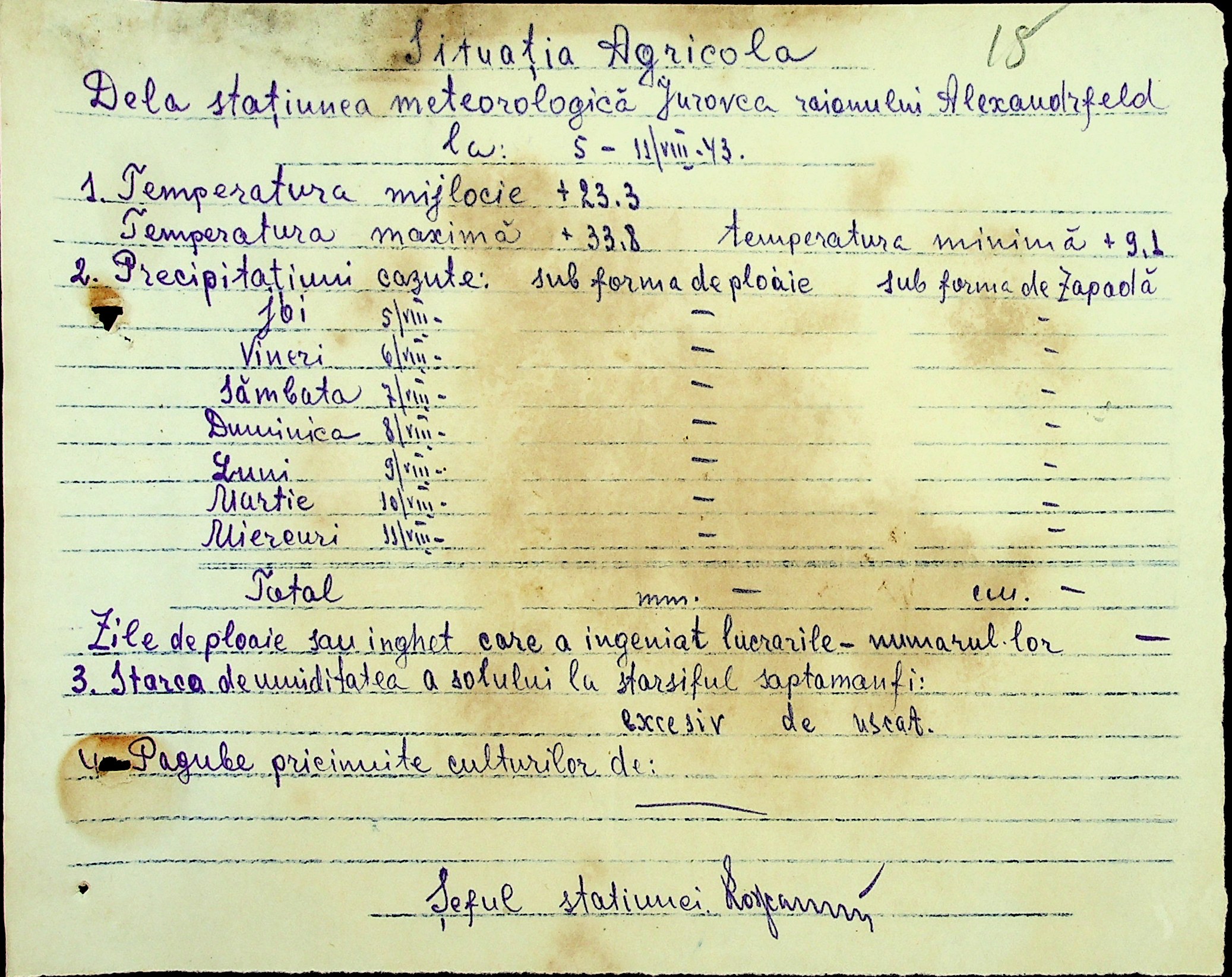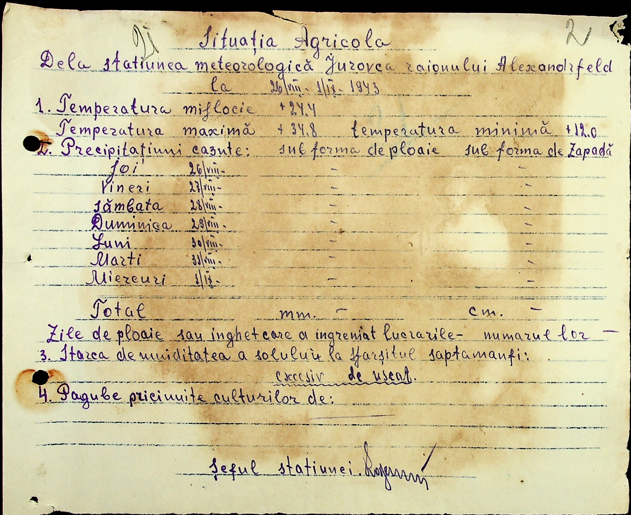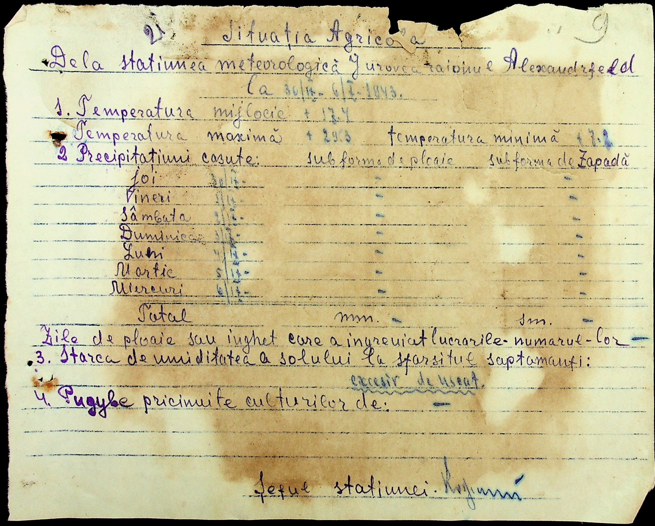 • • • • Справа № 49 “Наказ дирекції агрокультур губернаторства Трансністрії (копія) про надання метеорологічною станцією с. Журівка відомостей про прогноз погоди та зведень спостережень до Гідрометеорологічного інституту м. Одеса”