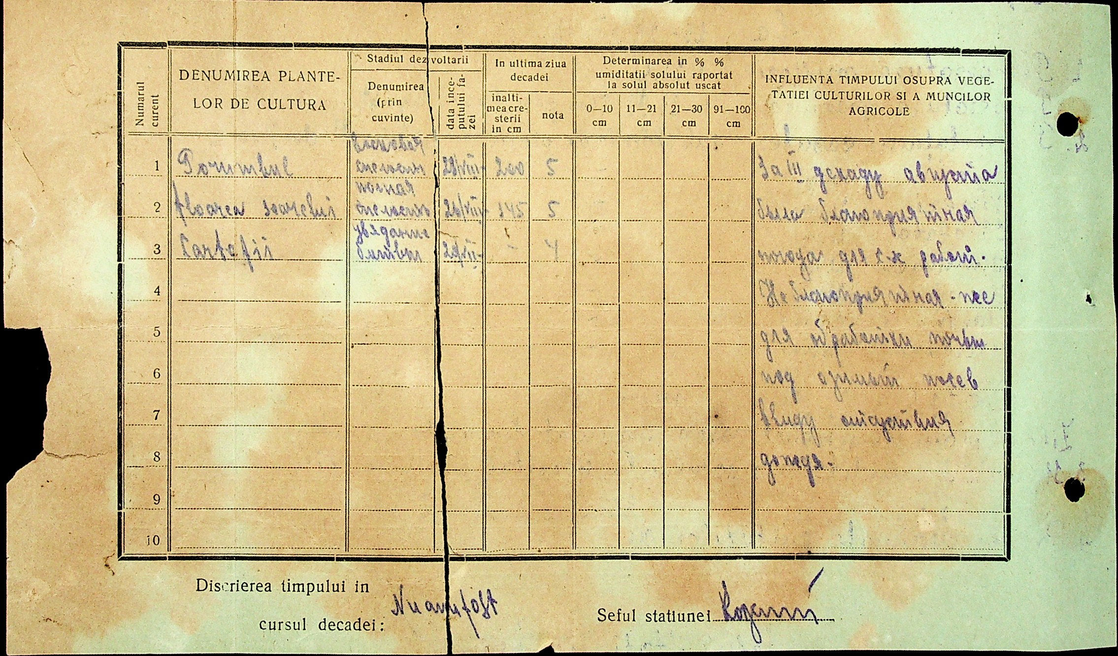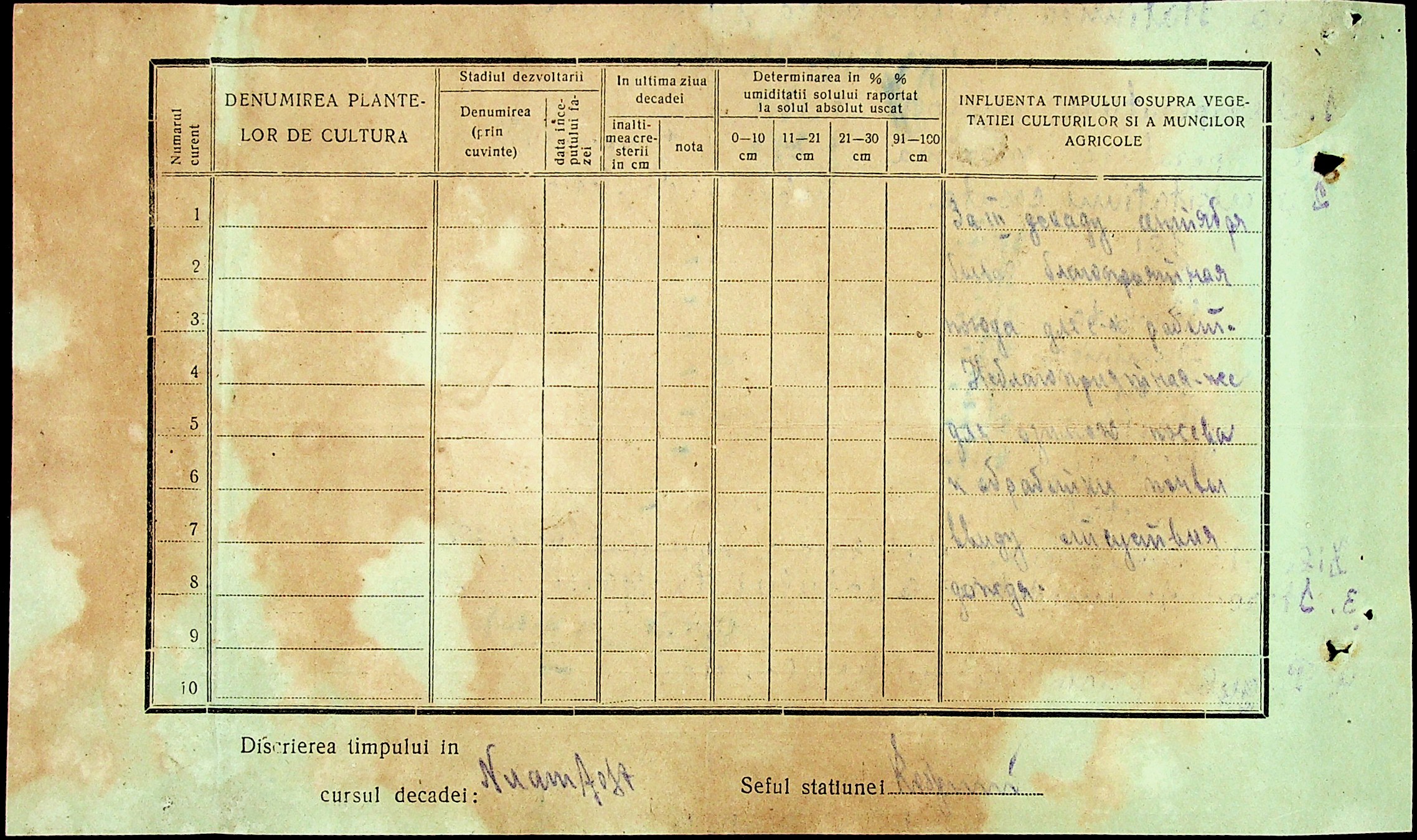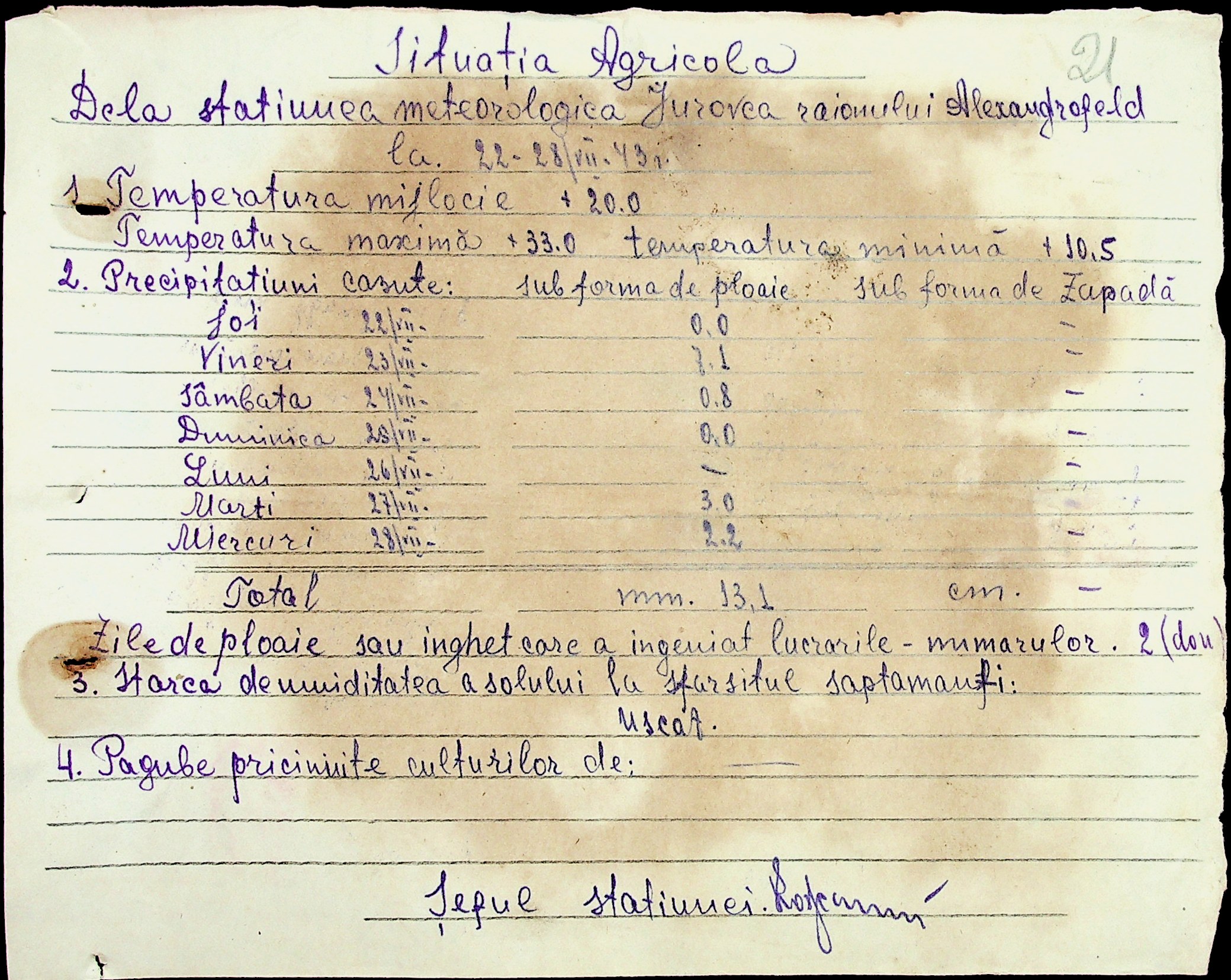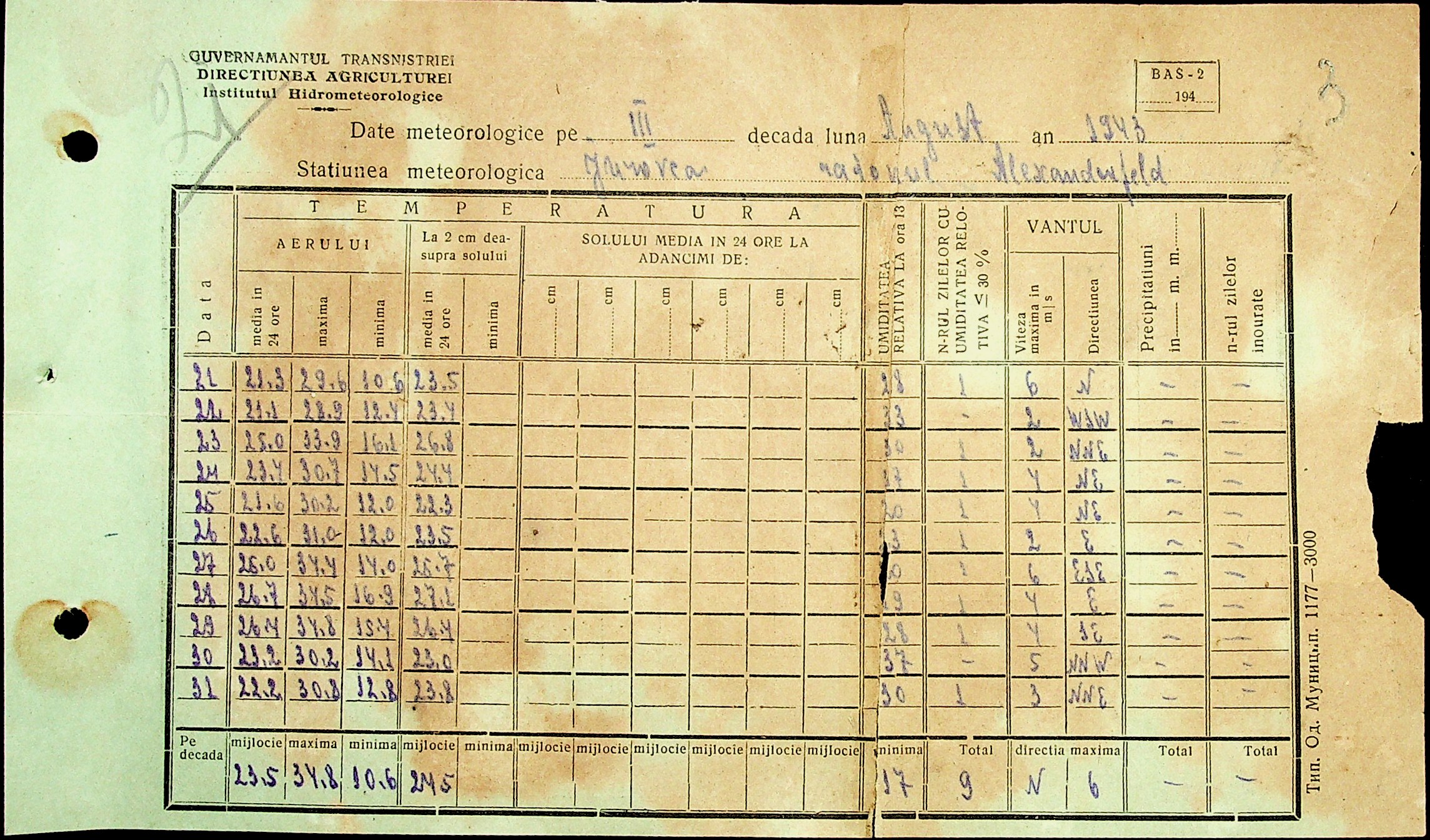 • • • • Справа № 49 “Наказ дирекції агрокультур губернаторства Трансністрії (копія) про надання метеорологічною станцією с. Журівка відомостей про прогноз погоди та зведень спостережень до Гідрометеорологічного інституту м. Одеса”