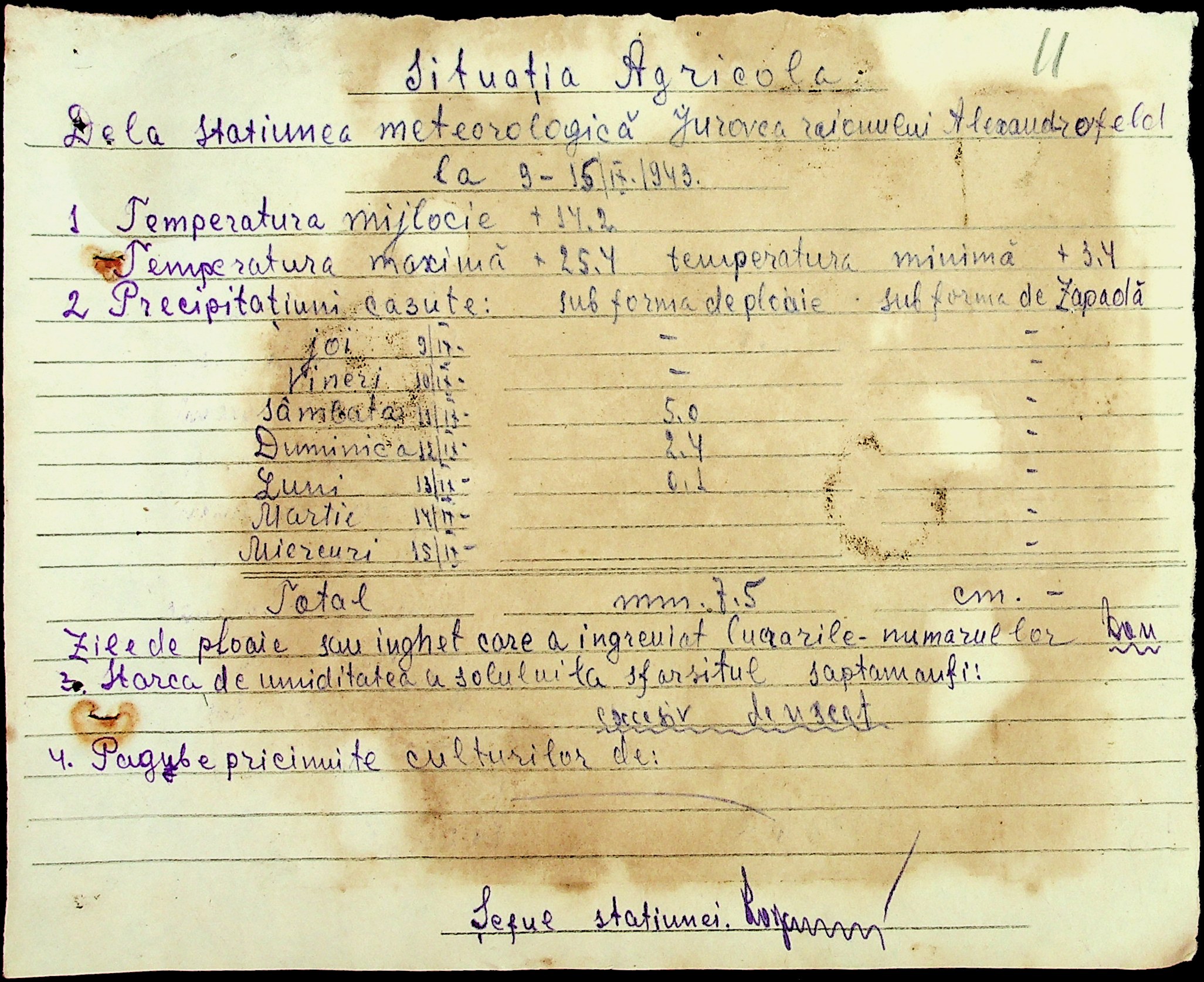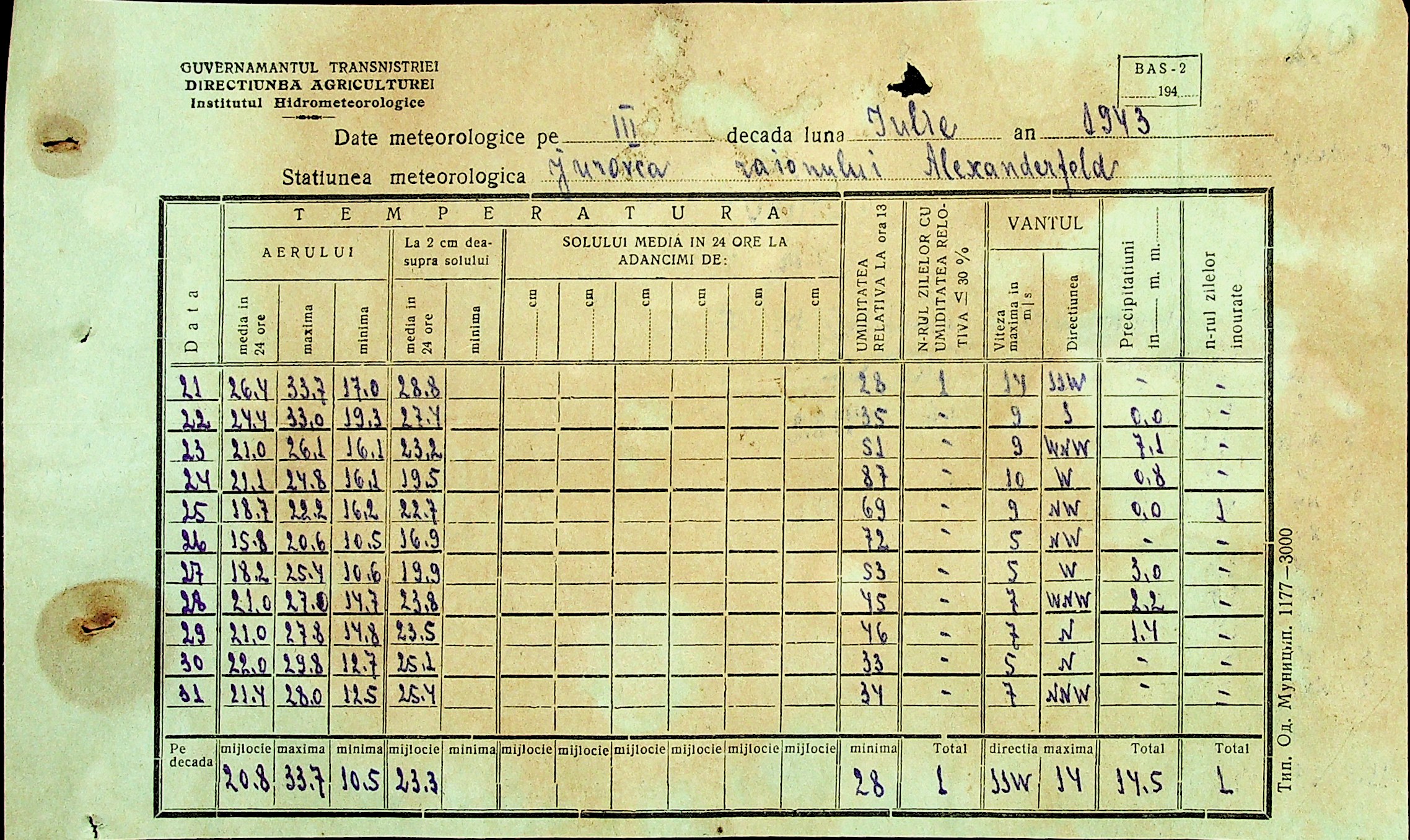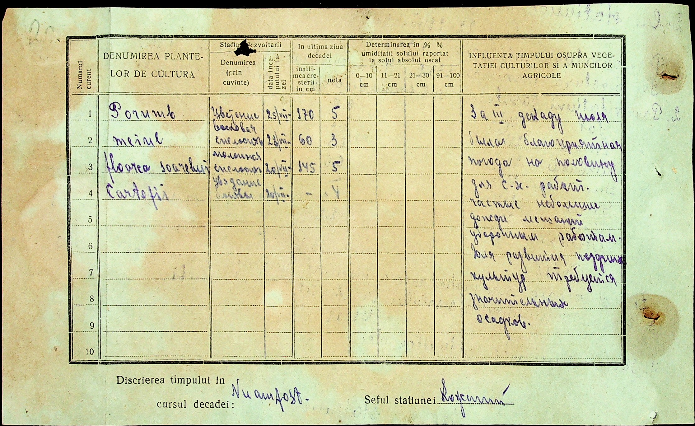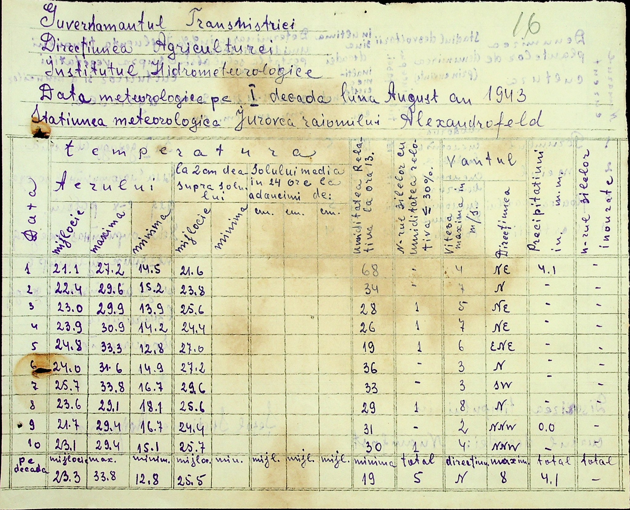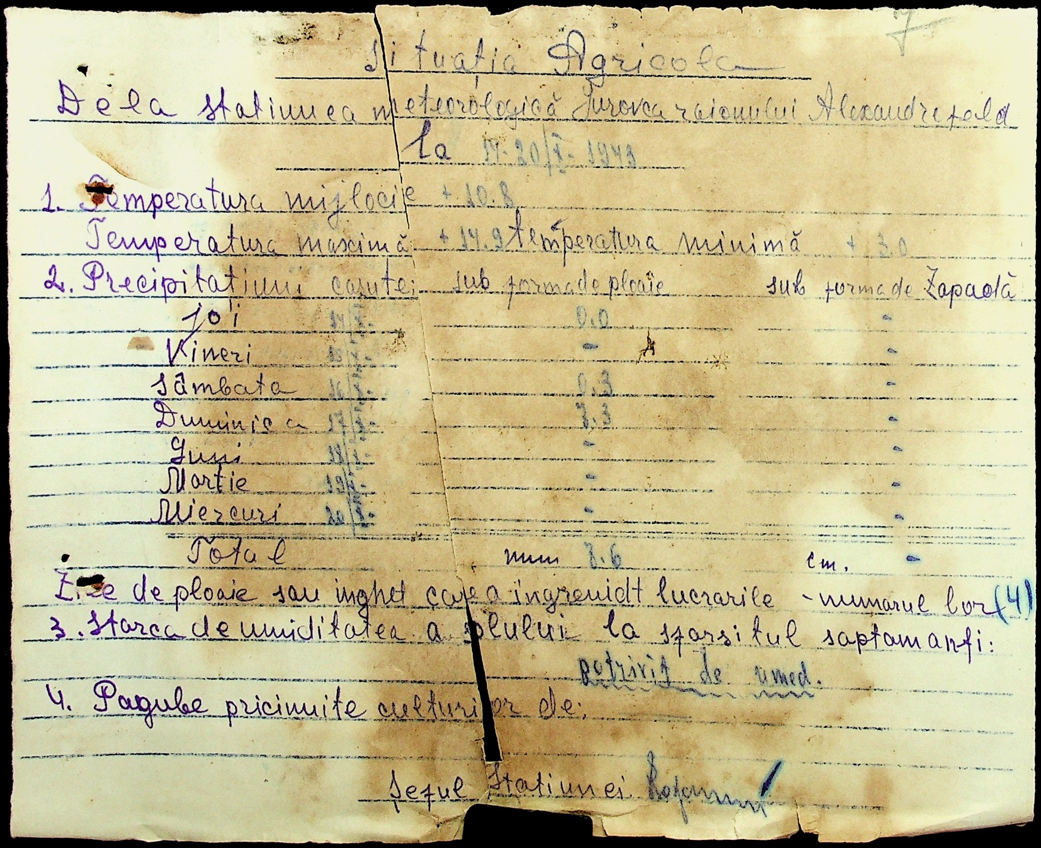• • • • Справа № 49 “Наказ дирекції агрокультур губернаторства Трансністрії (копія) про надання метеорологічною станцією с. Журівка відомостей про прогноз погоди та зведень спостережень до Гідрометеорологічного інституту м. Одеса”