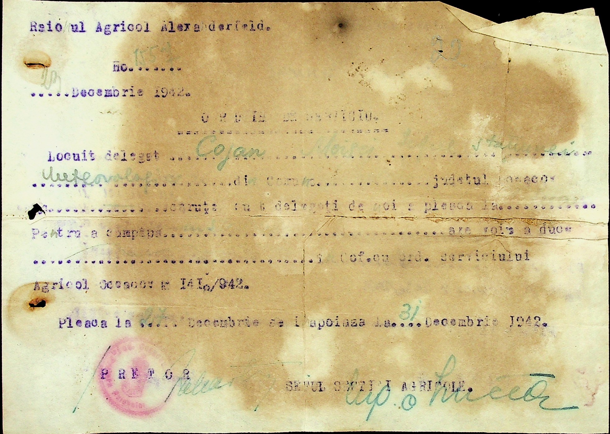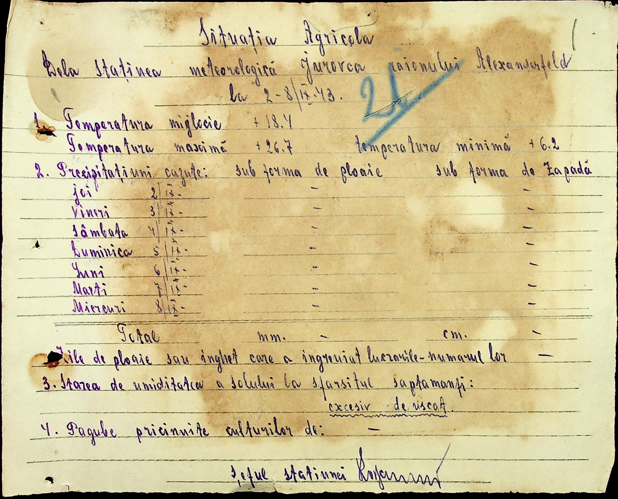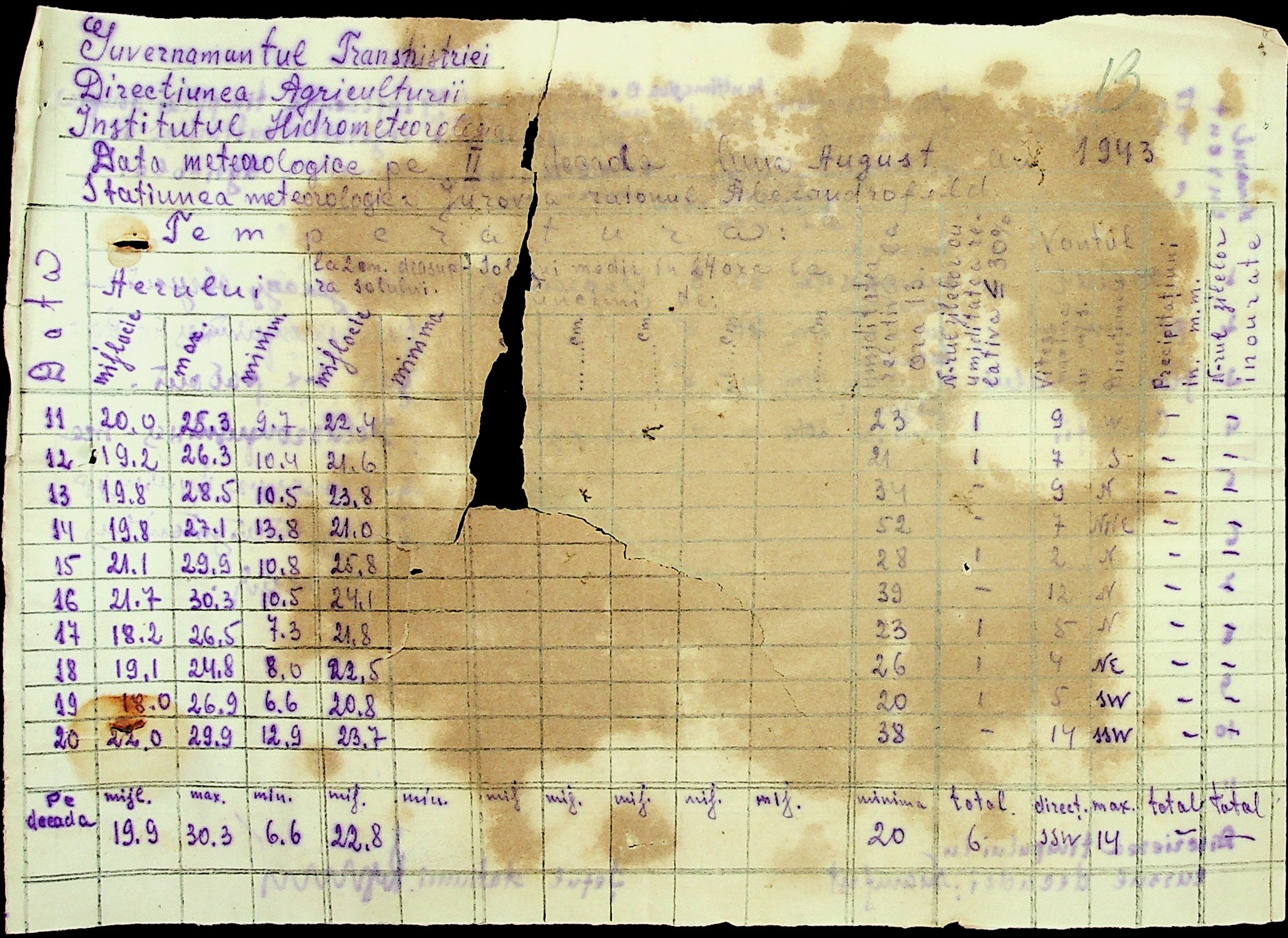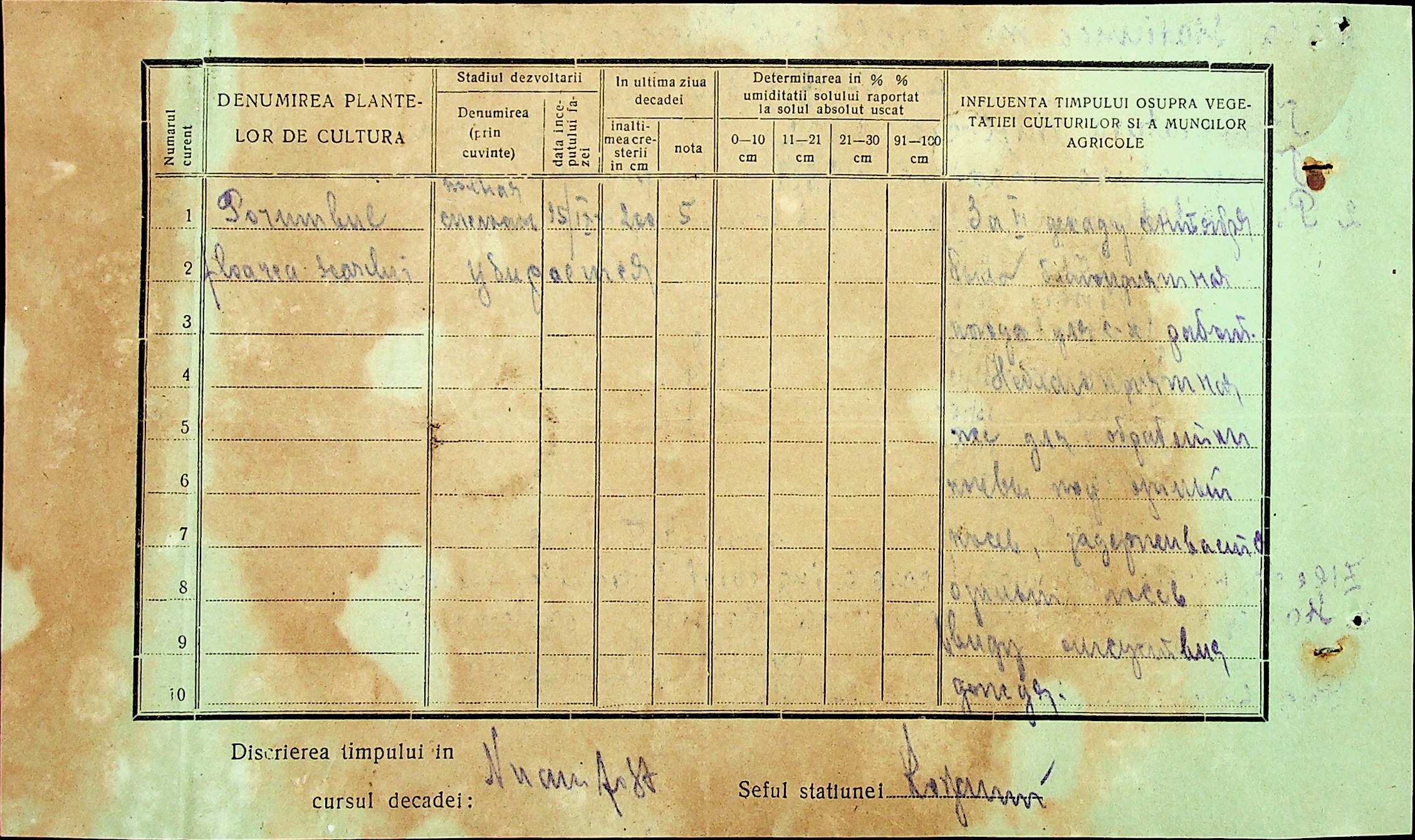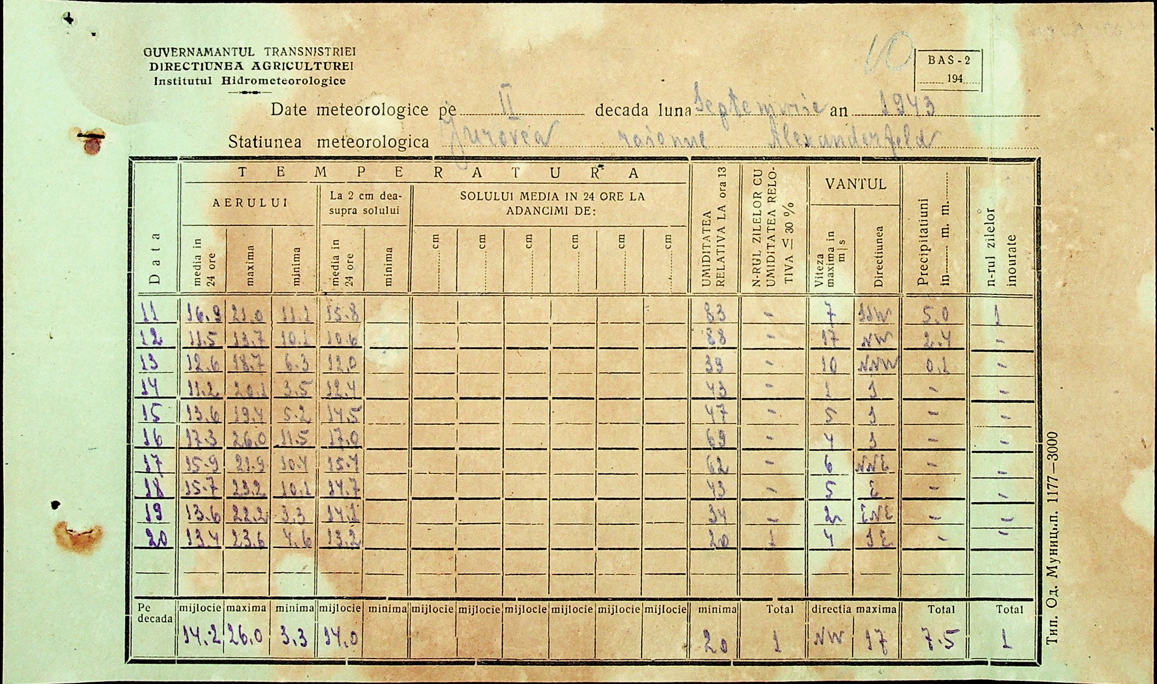 • • • • Справа № 49 “Наказ дирекції агрокультур губернаторства Трансністрії (копія) про надання метеорологічною станцією с. Журівка відомостей про прогноз погоди та зведень спостережень до Гідрометеорологічного інституту м. Одеса”