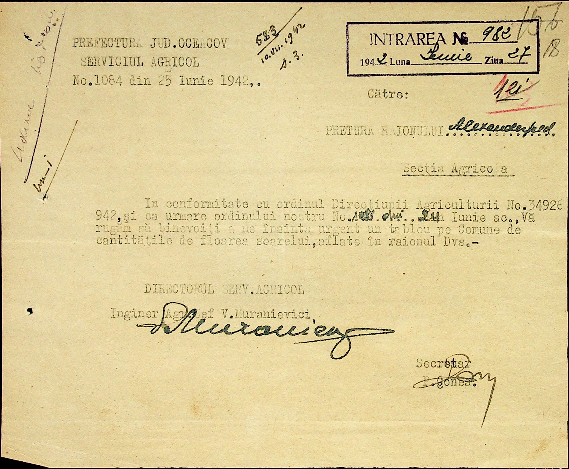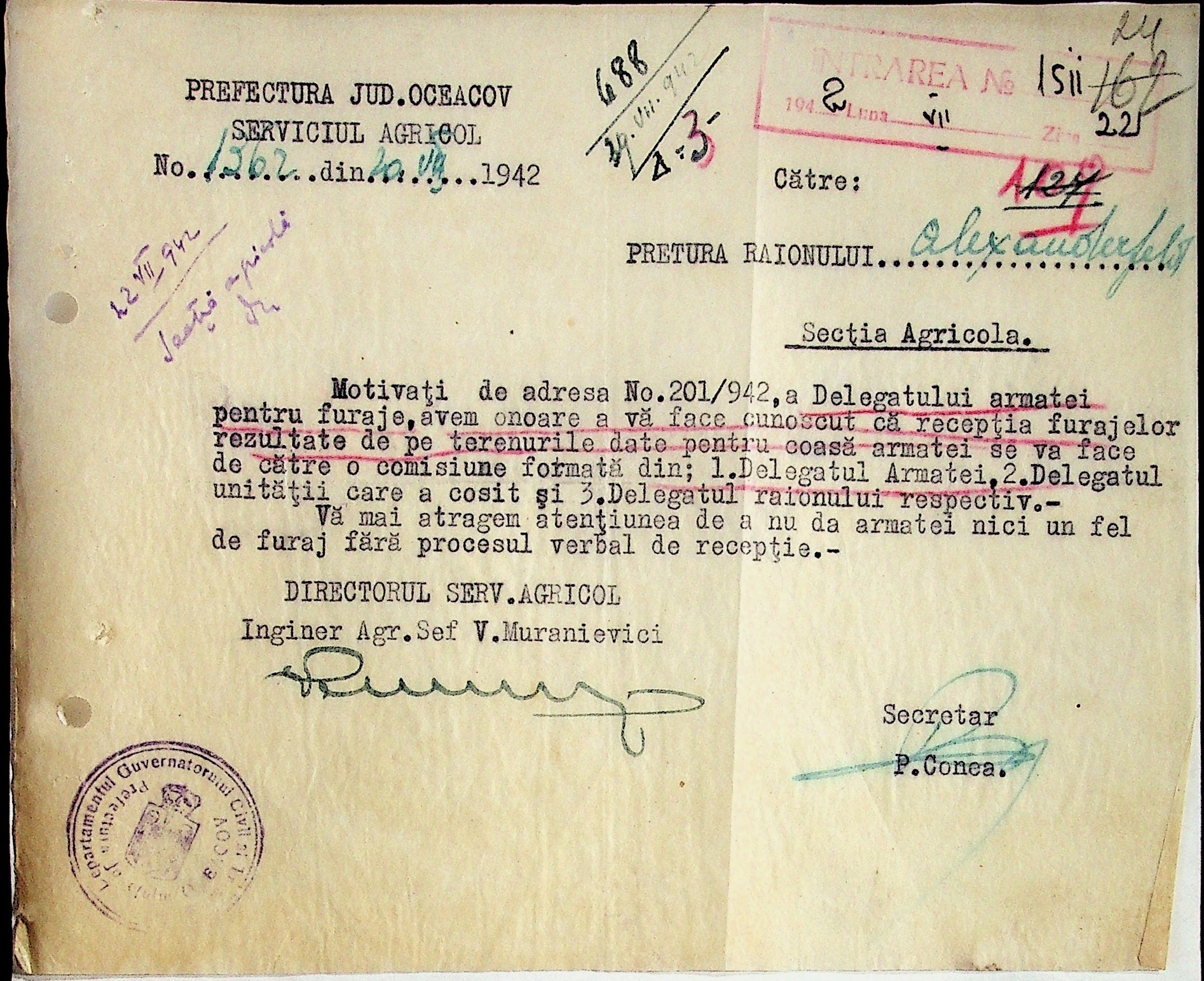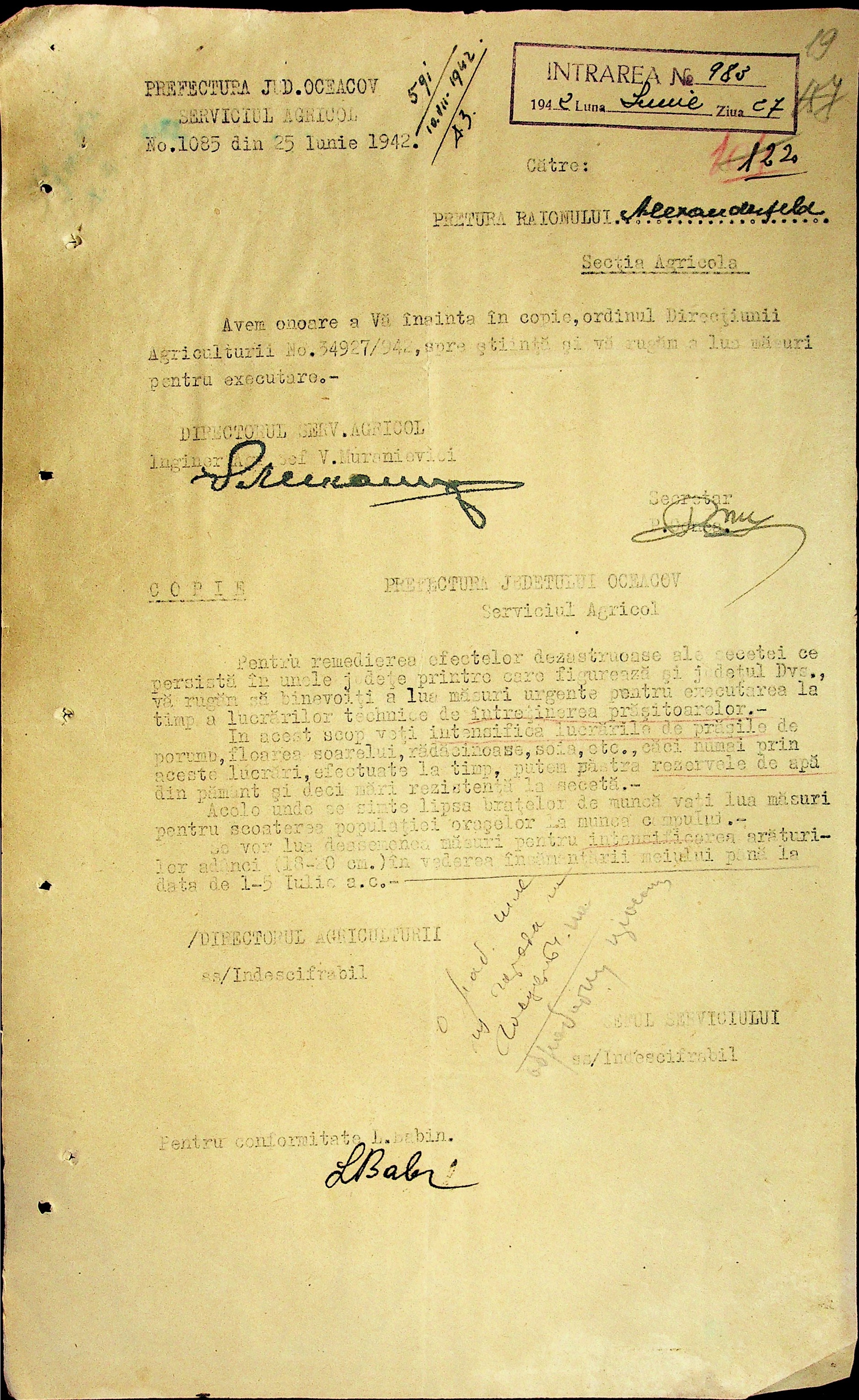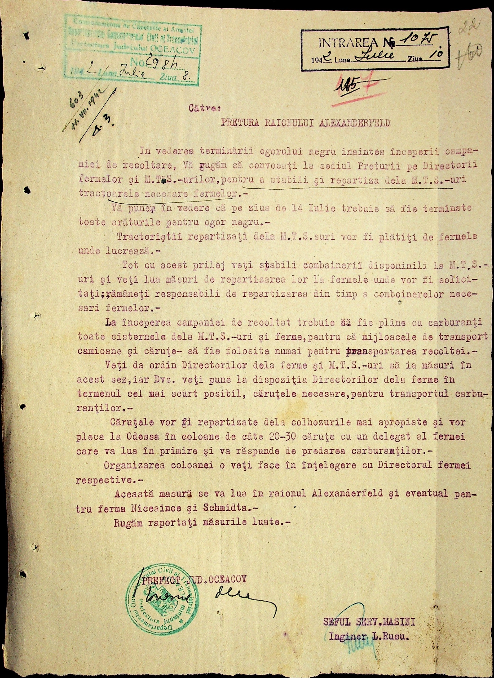 • • • • Справа № 50 “Постанови, інструкції та накази цивільного губернатора Трансністрії (копії), листування з сільськогосподарським відділом префектури про надання відомостей про засіяні площі, підготовку до весняної посівної кампанії, приведення льодовиків у належний порядок”
