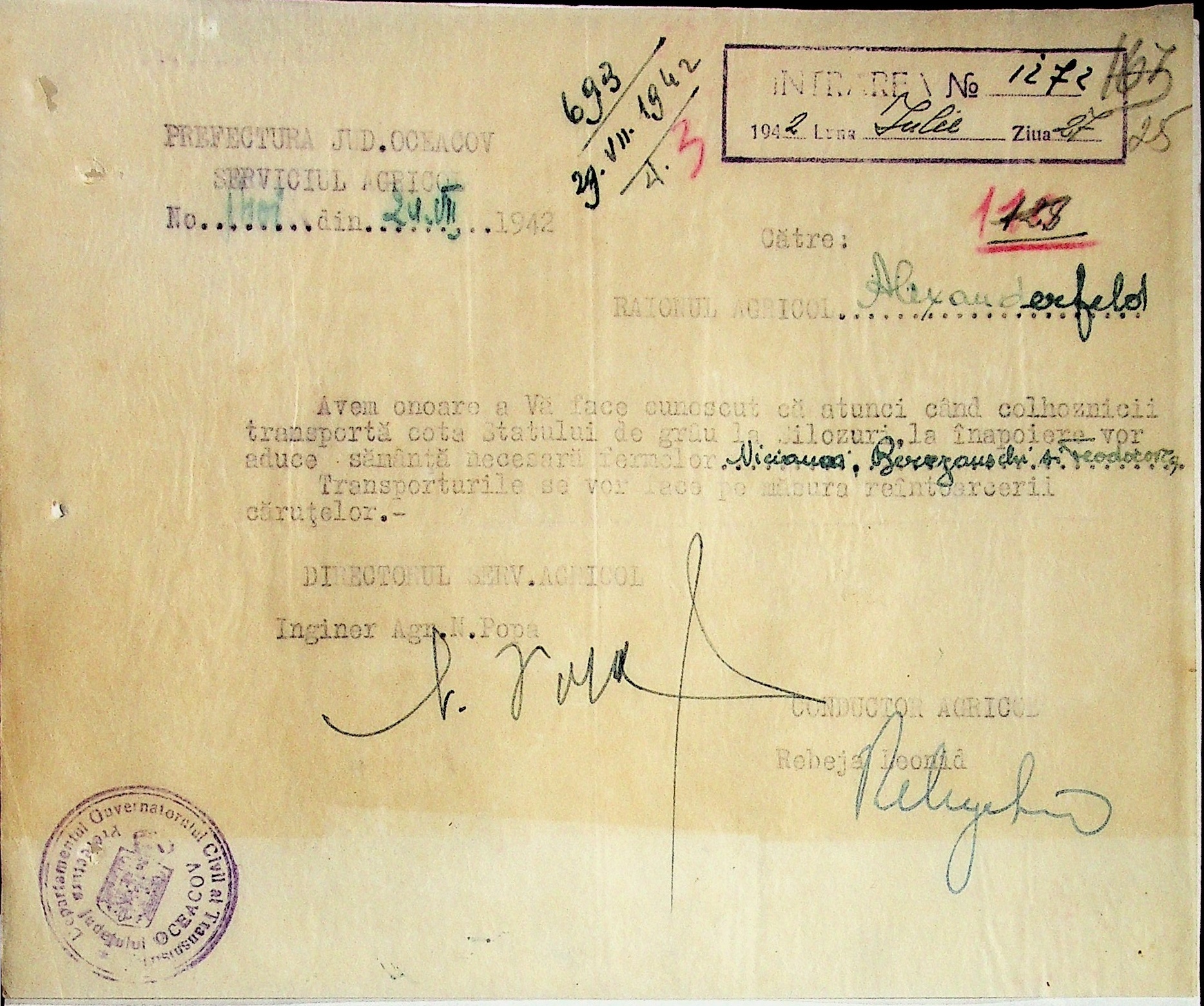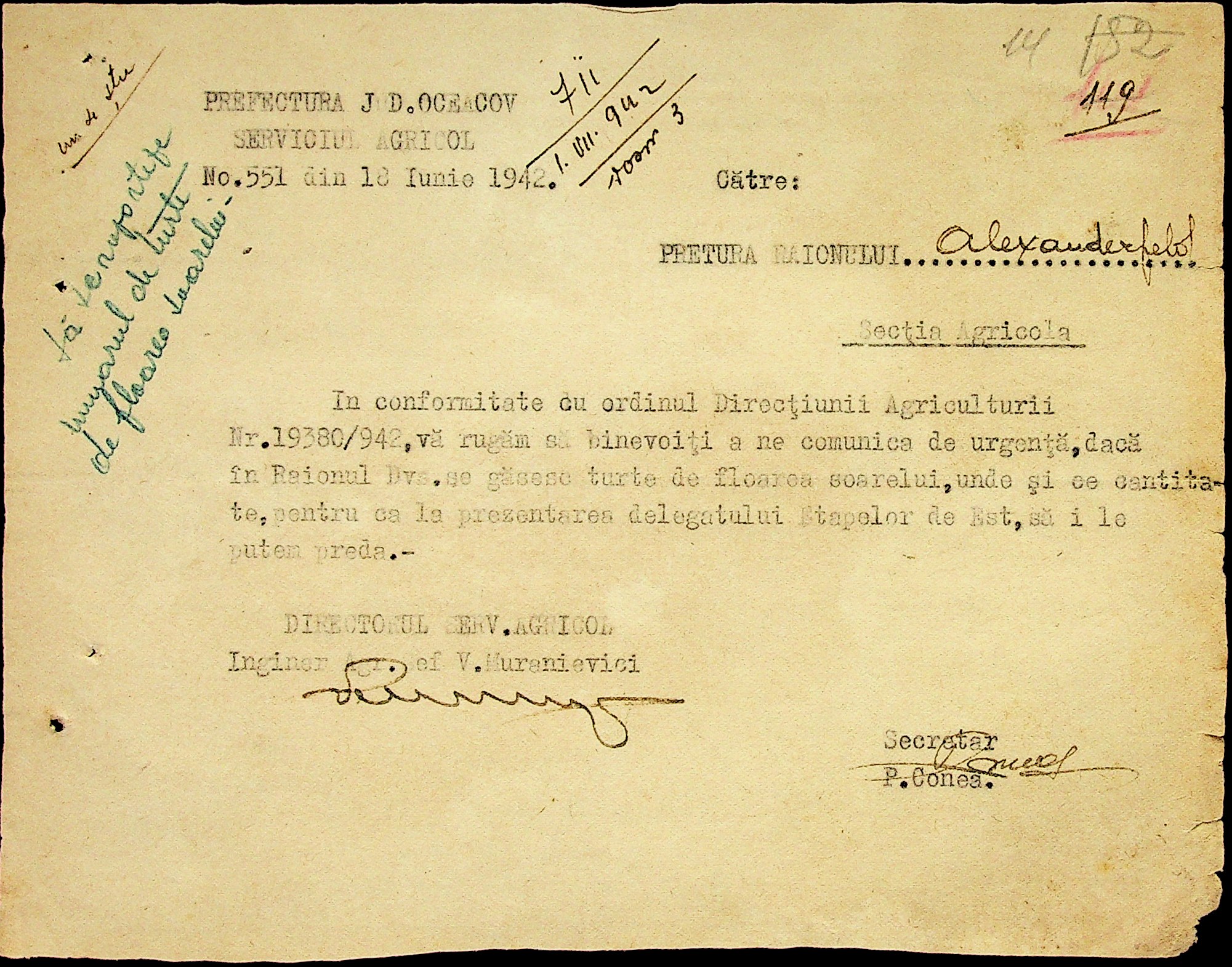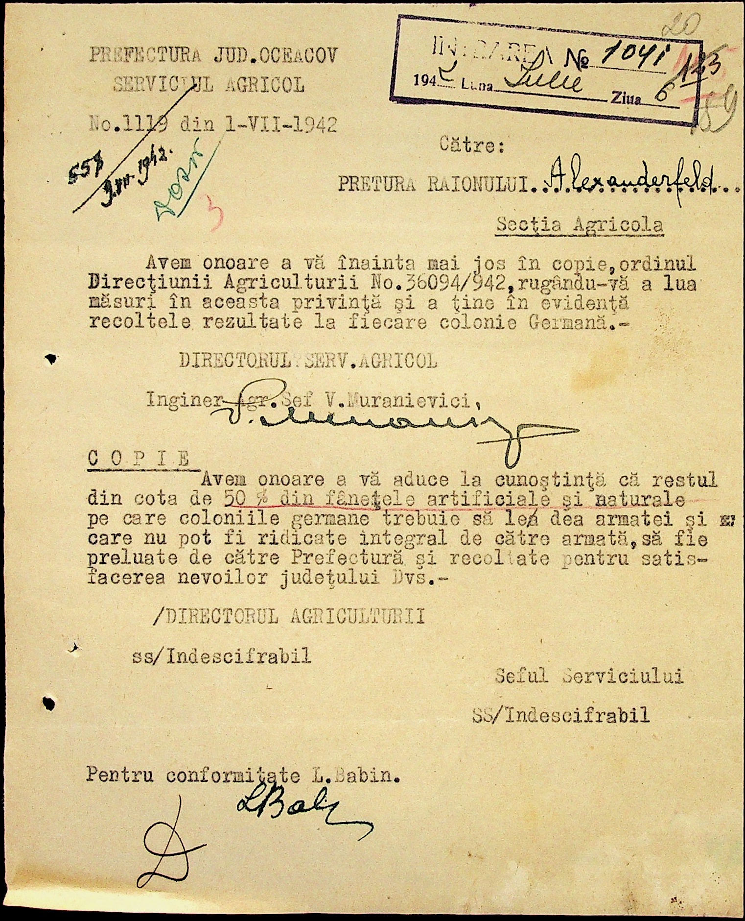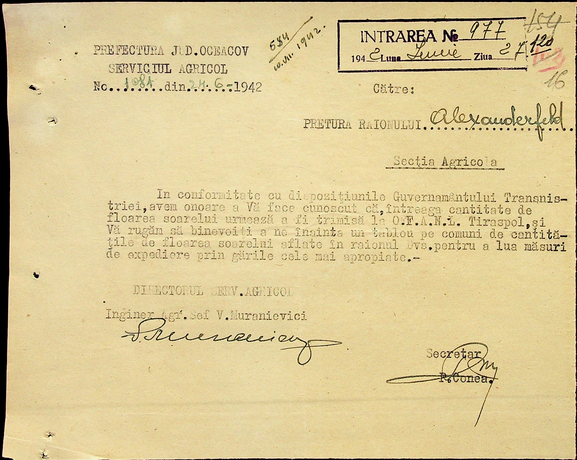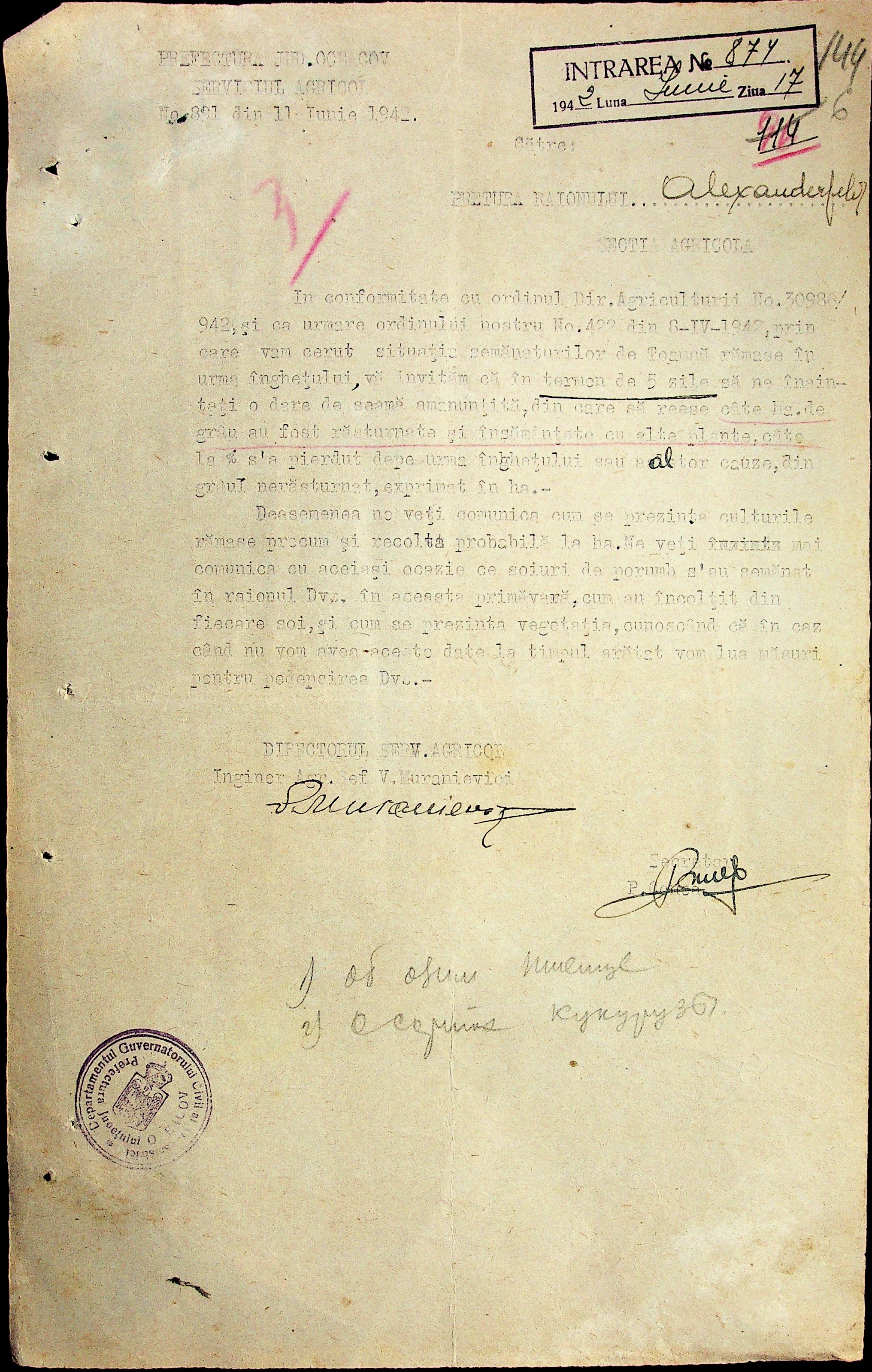 • • • • Справа № 50 “Постанови, інструкції та накази цивільного губернатора Трансністрії (копії), листування з сільськогосподарським відділом префектури про надання відомостей про засіяні площі, підготовку до весняної посівної кампанії, приведення льодовиків у належний порядок”