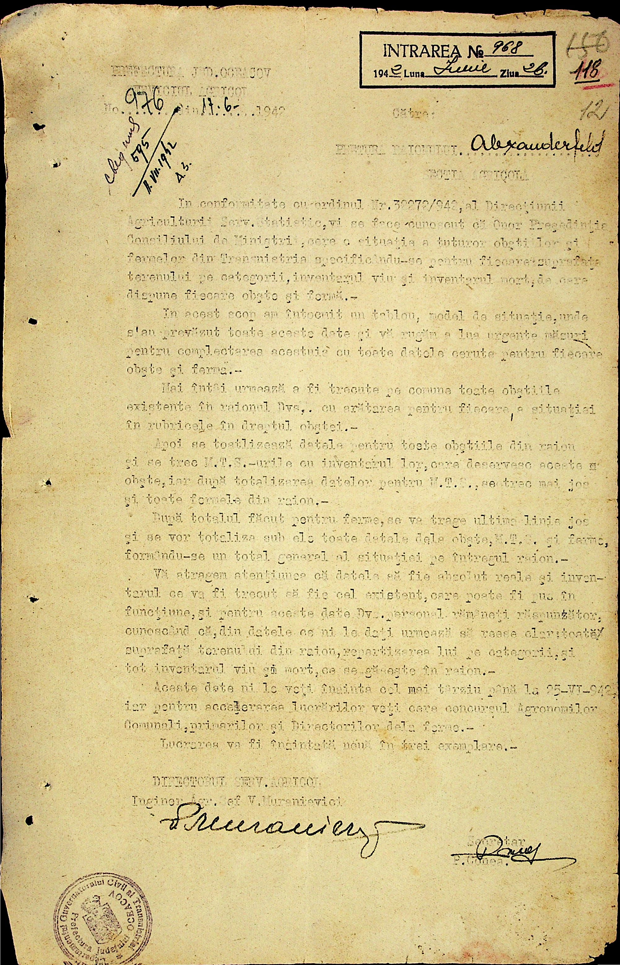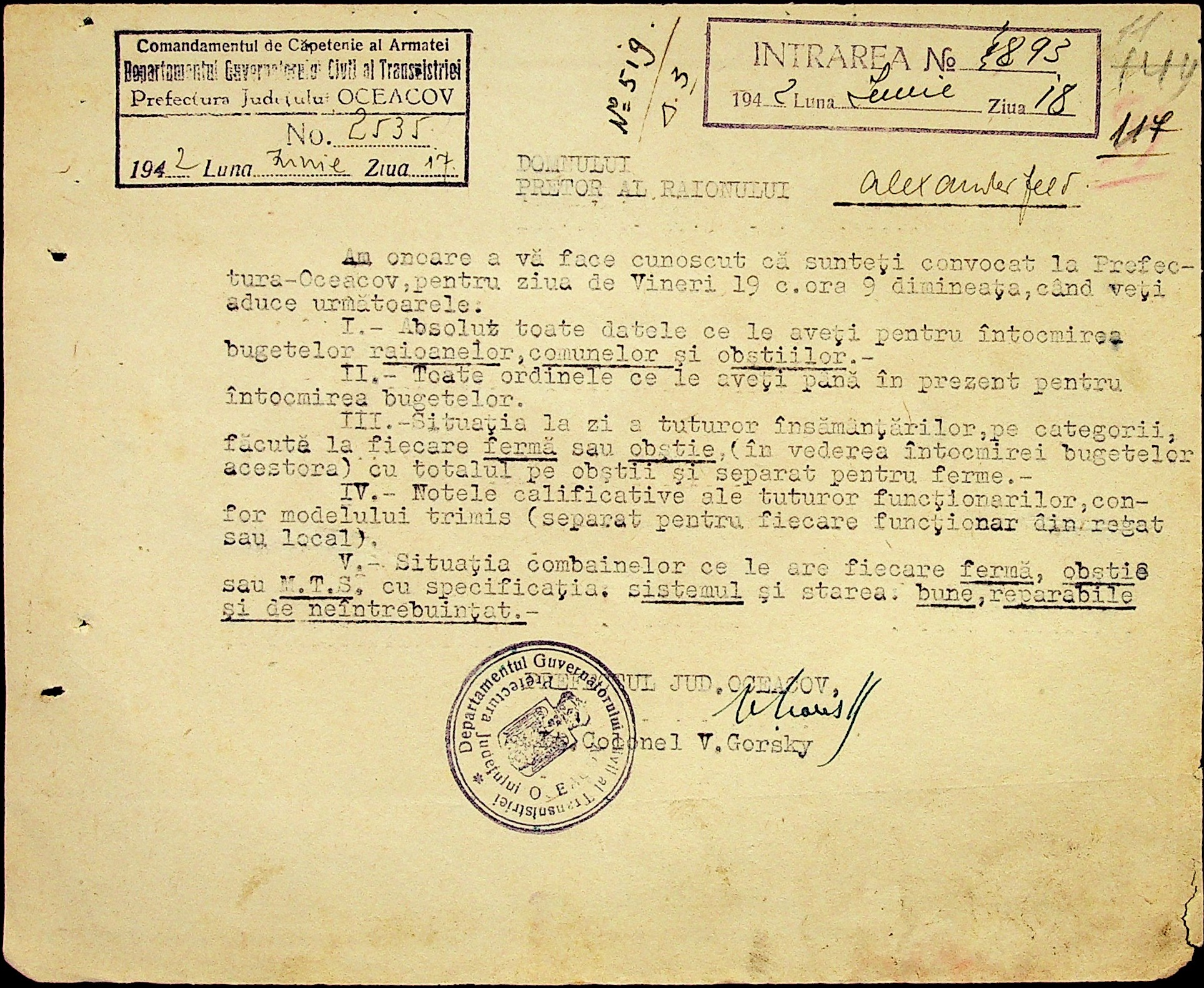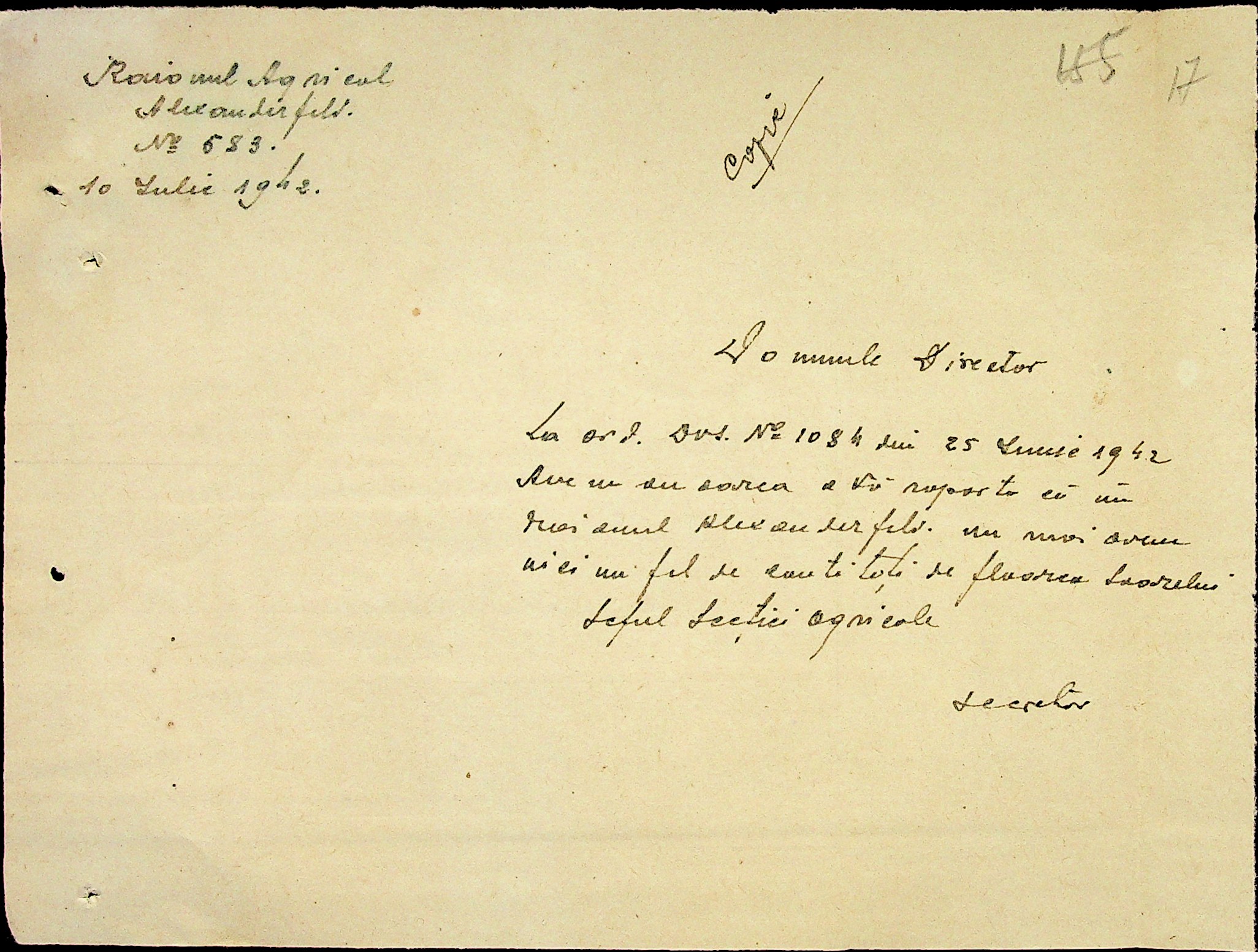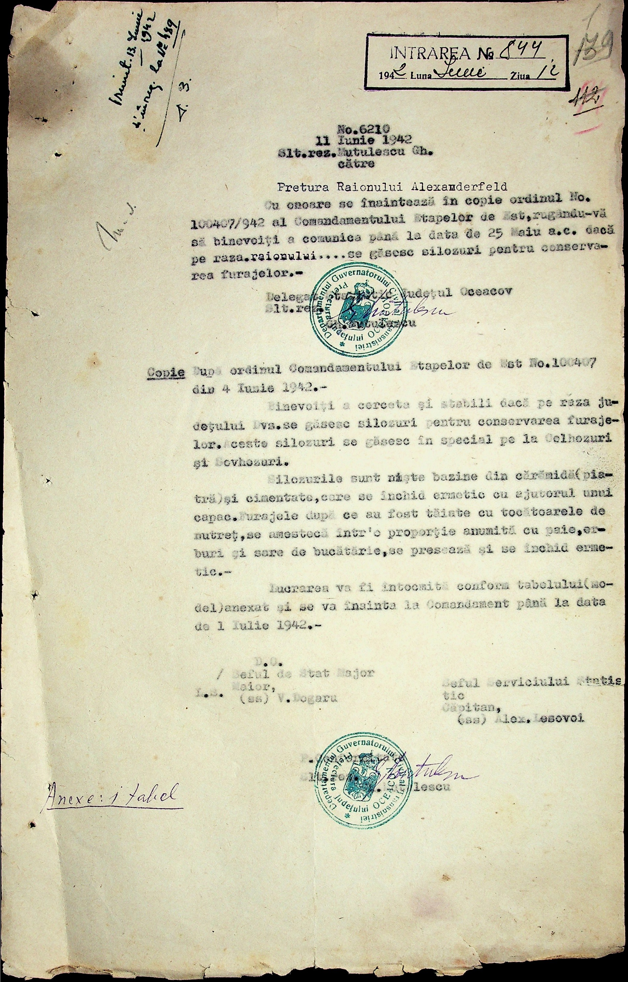 • • • • Справа № 50 “Постанови, інструкції та накази цивільного губернатора Трансністрії (копії), листування з сільськогосподарським відділом префектури про надання відомостей про засіяні площі, підготовку до весняної посівної кампанії, приведення льодовиків у належний порядок”